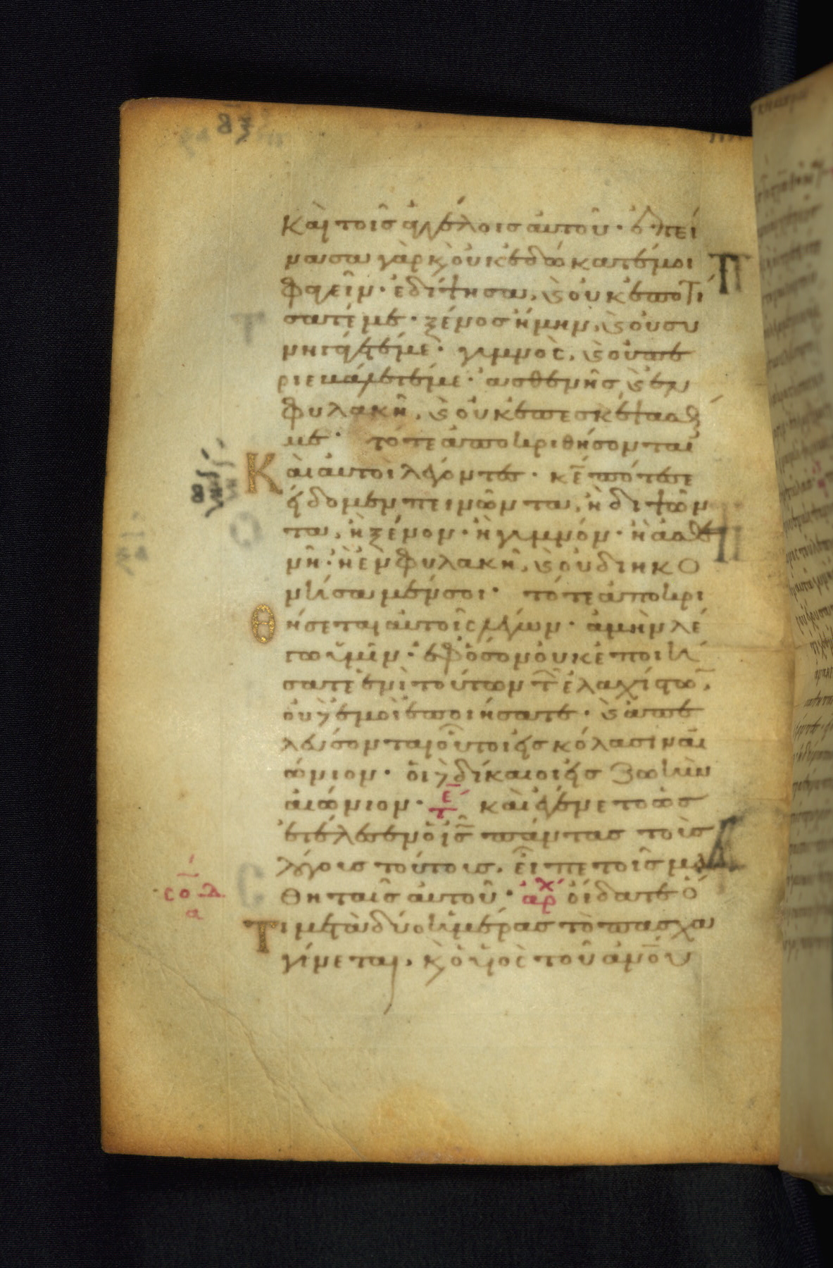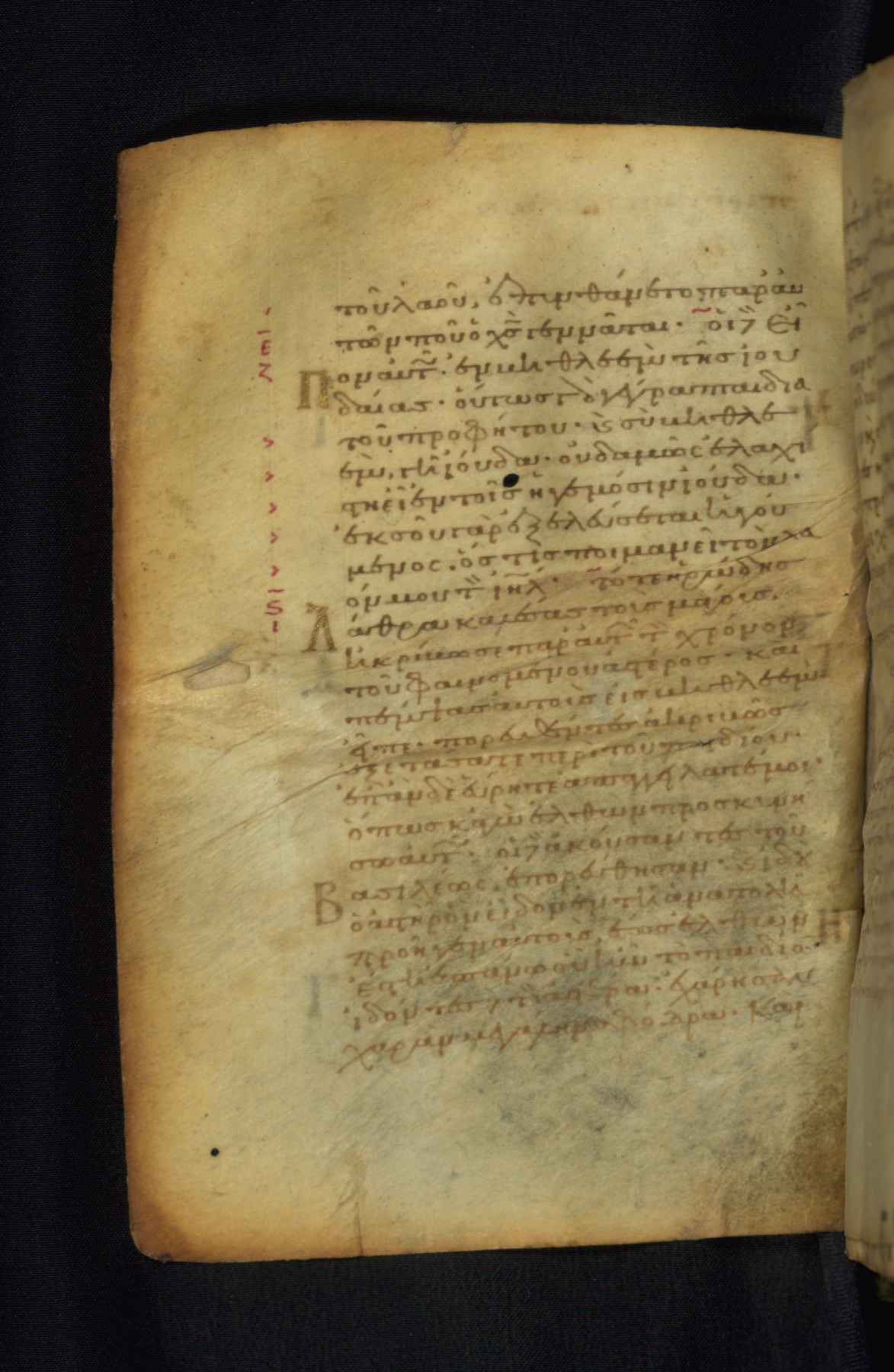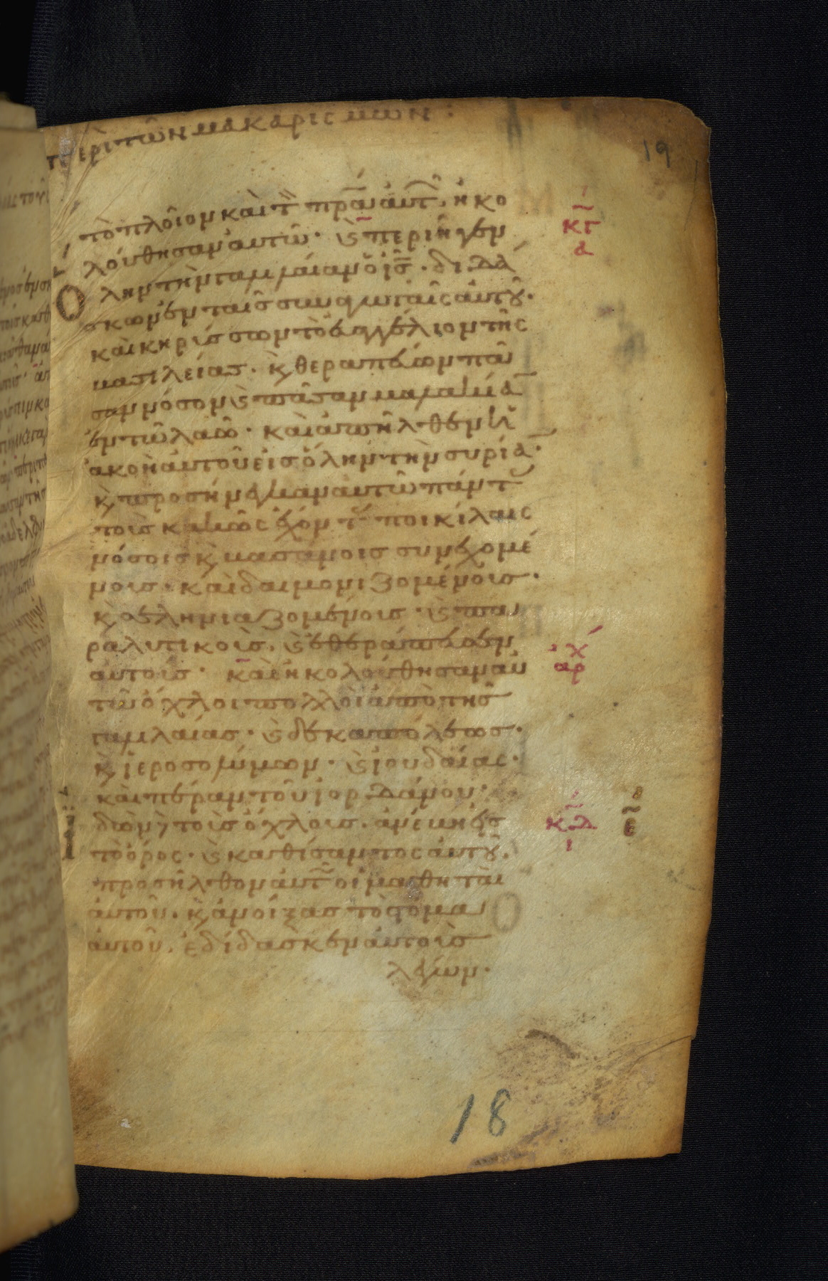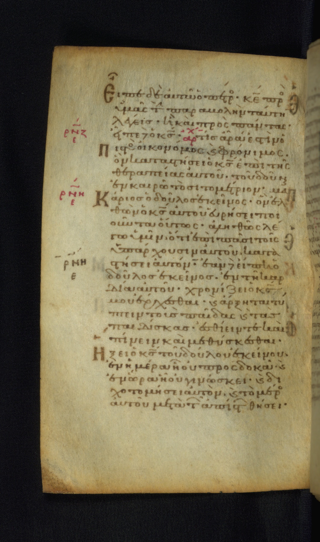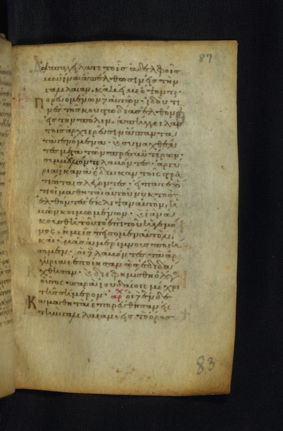 This Gospel book was likely created in the capital of the Byzantine Empire, Constantinople, in the eleventh century. The manuscript is remarkable on account of its exceptionally small size, as well as the high quality of its script and miniatures. Its extensive image cycle includes six full-page miniatures, four half-page miniatures, four historiated initials, and marginalia.