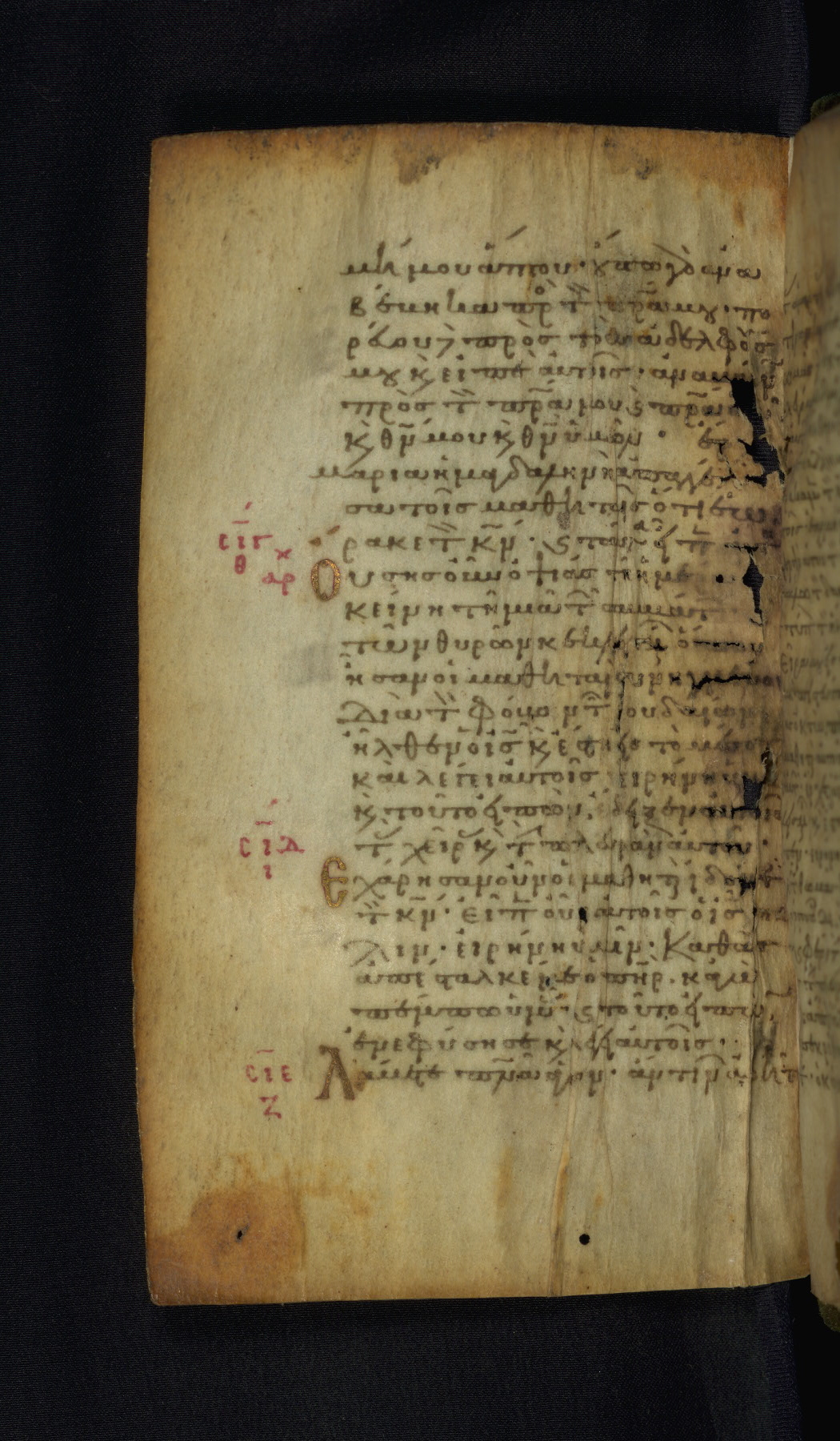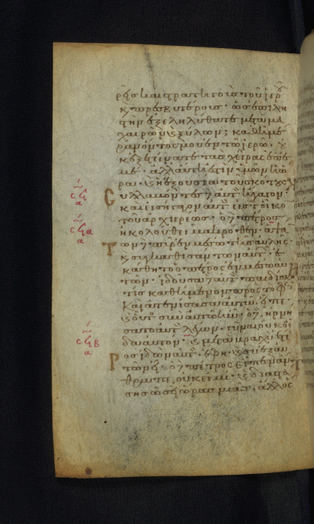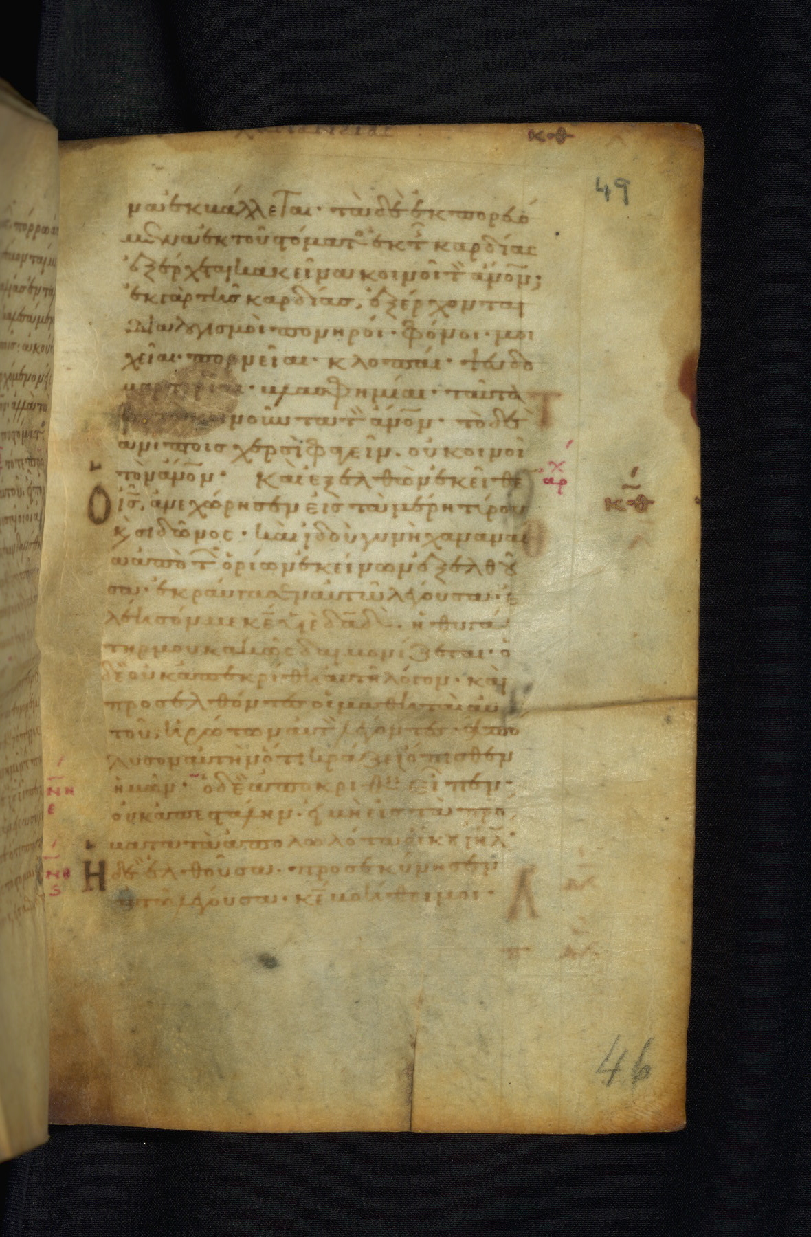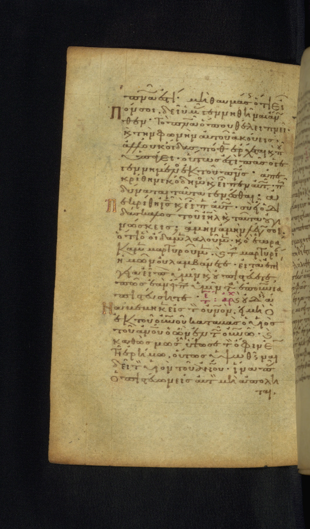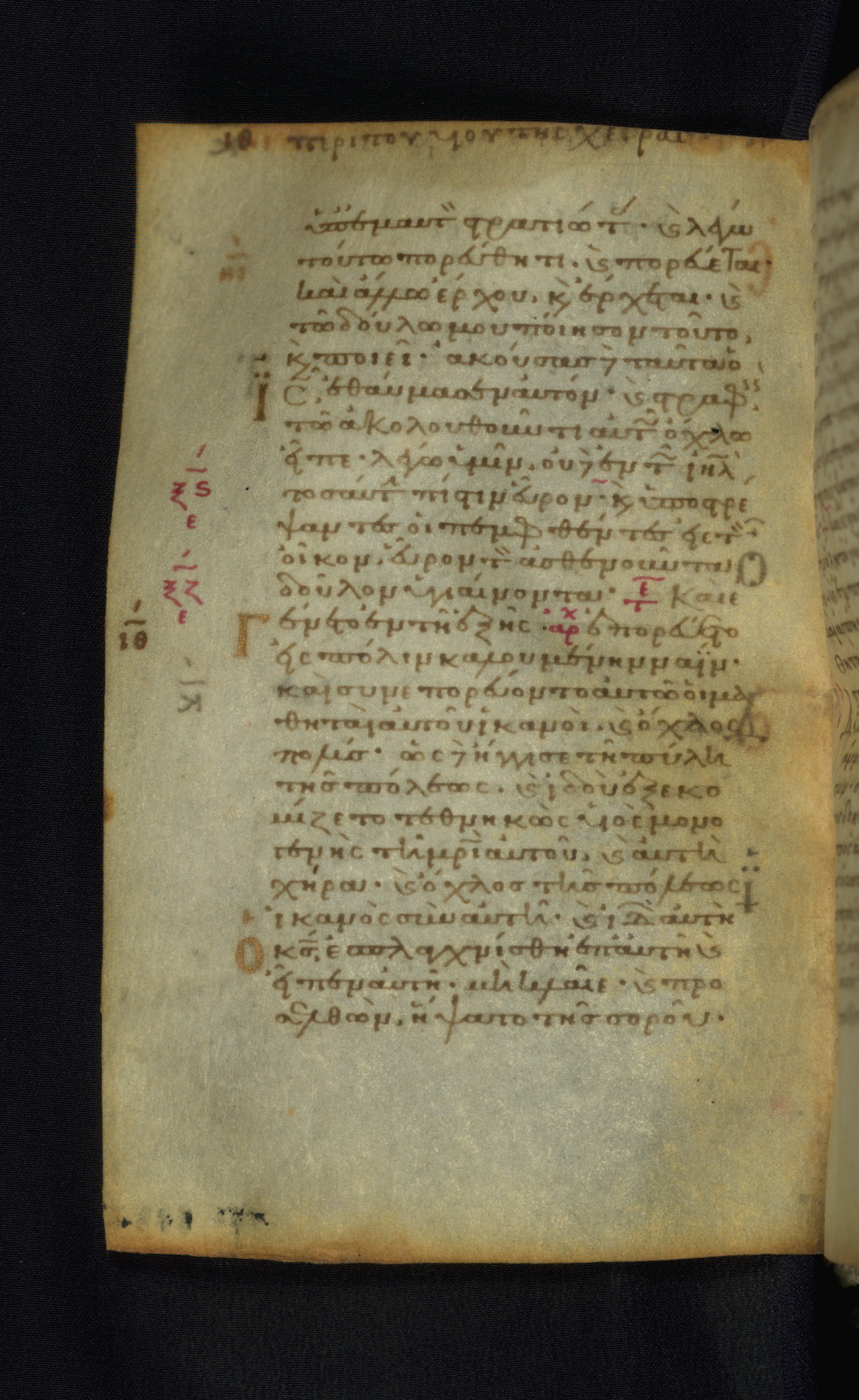 This Gospel book was likely created in the capital of the Byzantine Empire, Constantinople, in the eleventh century. The manuscript is remarkable on account of its exceptionally small size, as well as the high quality of its script and miniatures. Its extensive image cycle includes six full-page miniatures, four half-page miniatures, four historiated initials, and marginalia.