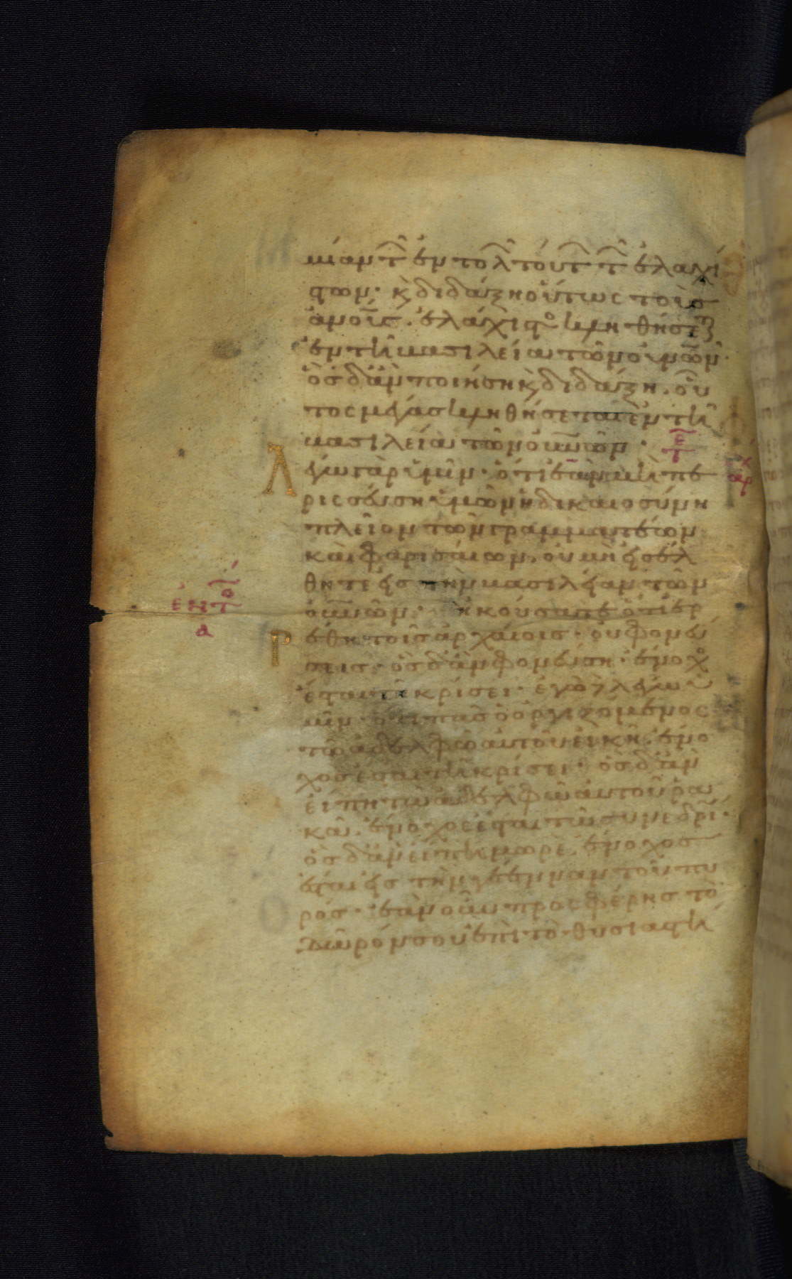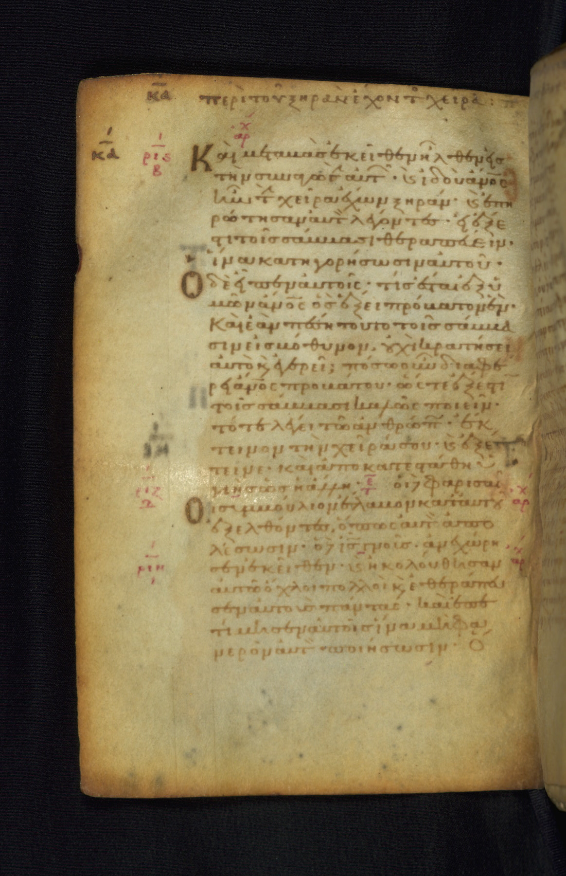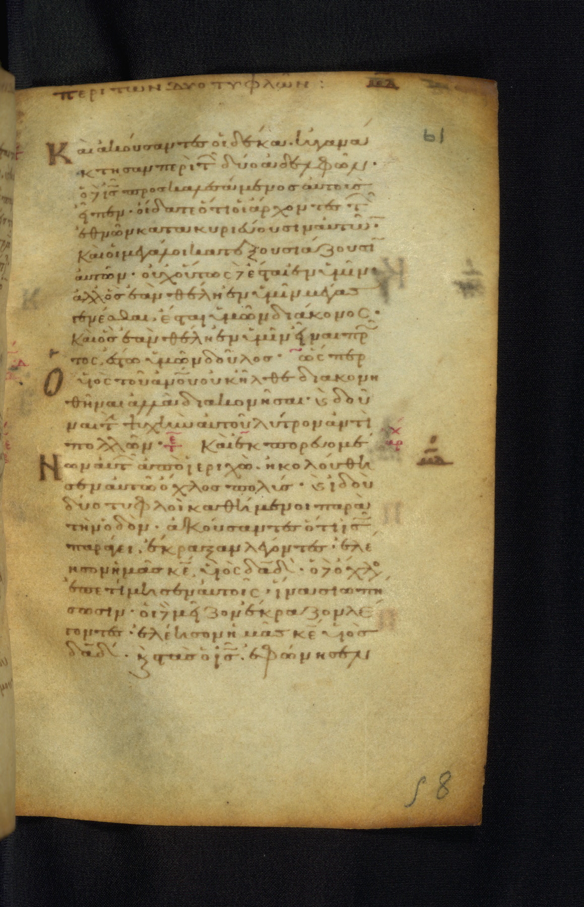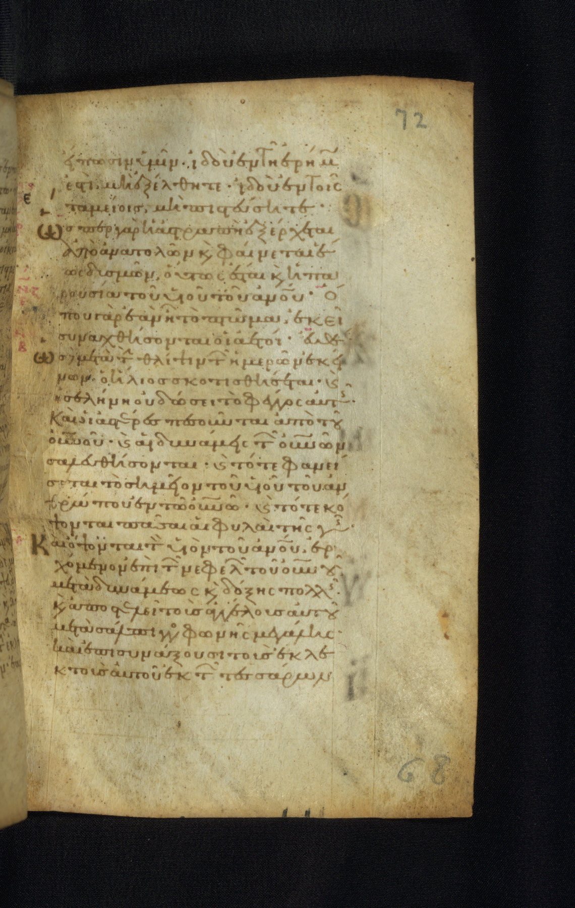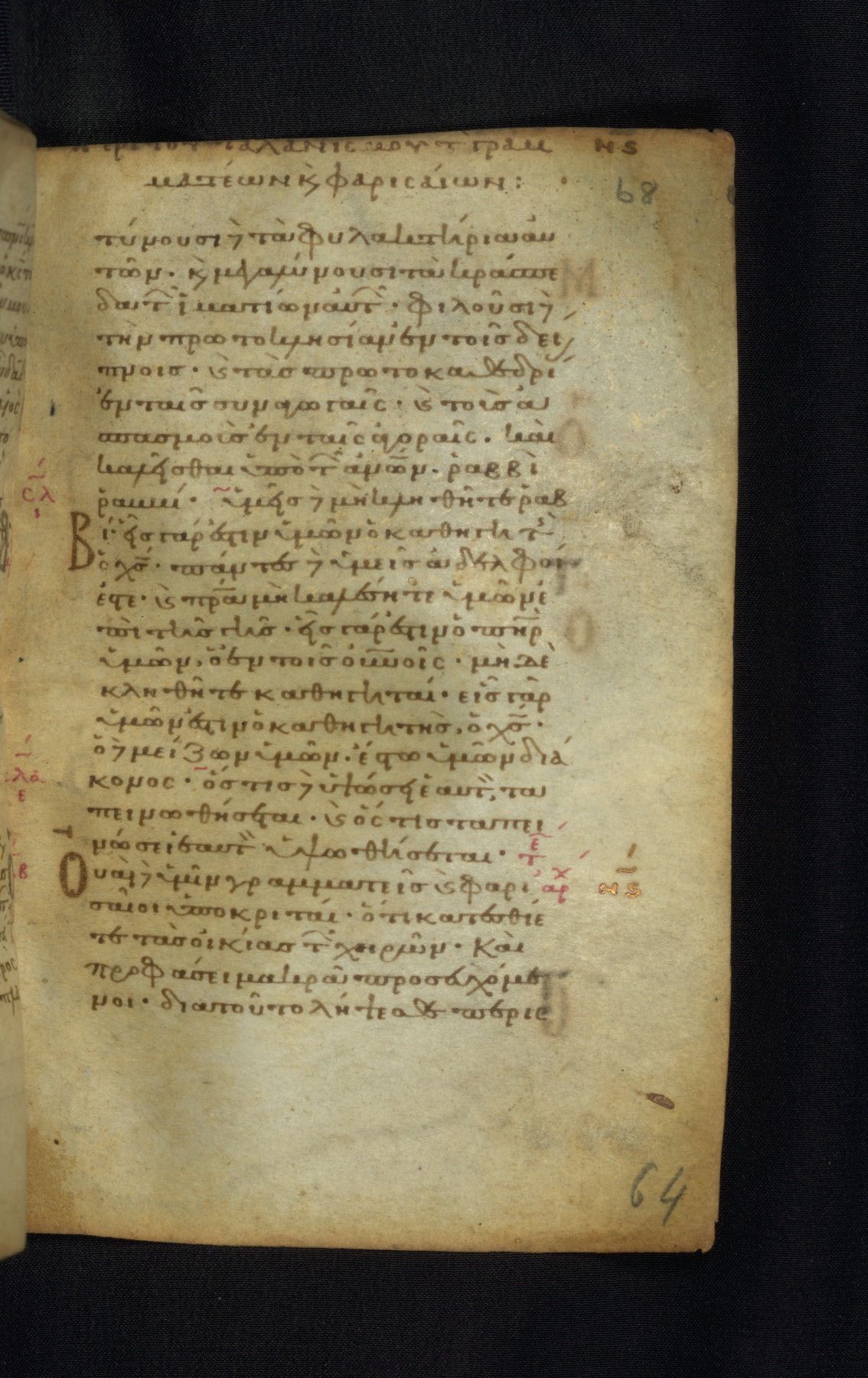 This Gospel book was likely created in the capital of the Byzantine Empire, Constantinople, in the eleventh century. The manuscript is remarkable on account of its exceptionally small size, as well as the high quality of its script and miniatures. Its extensive image cycle includes six full-page miniatures, four half-page miniatures, four historiated initials, and marginalia.