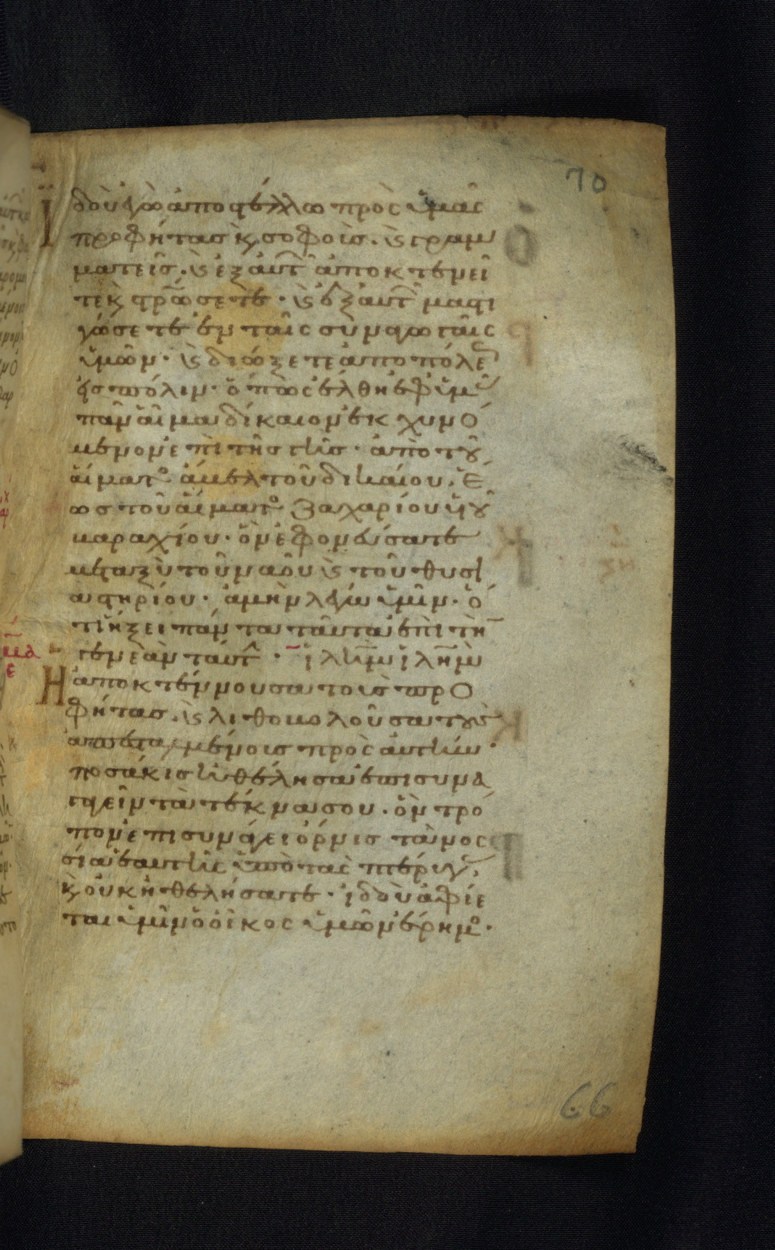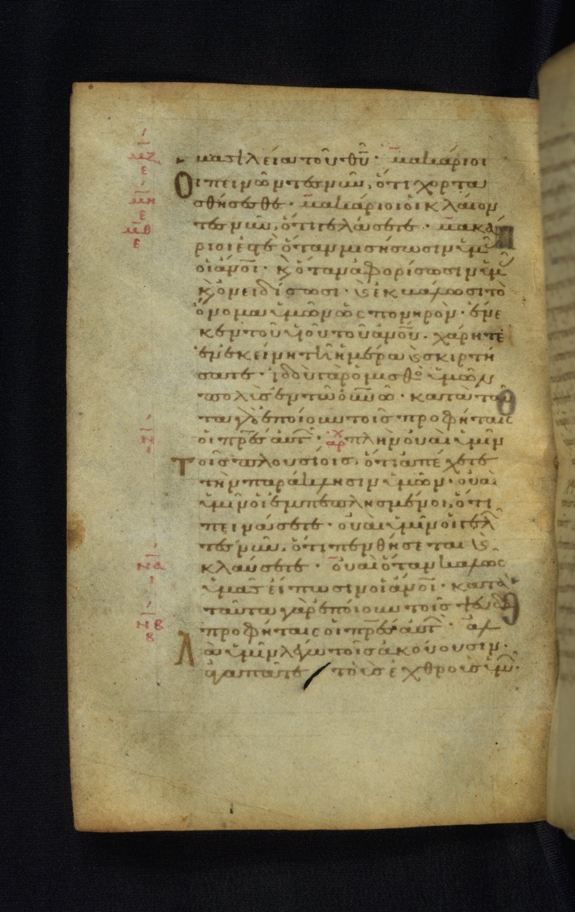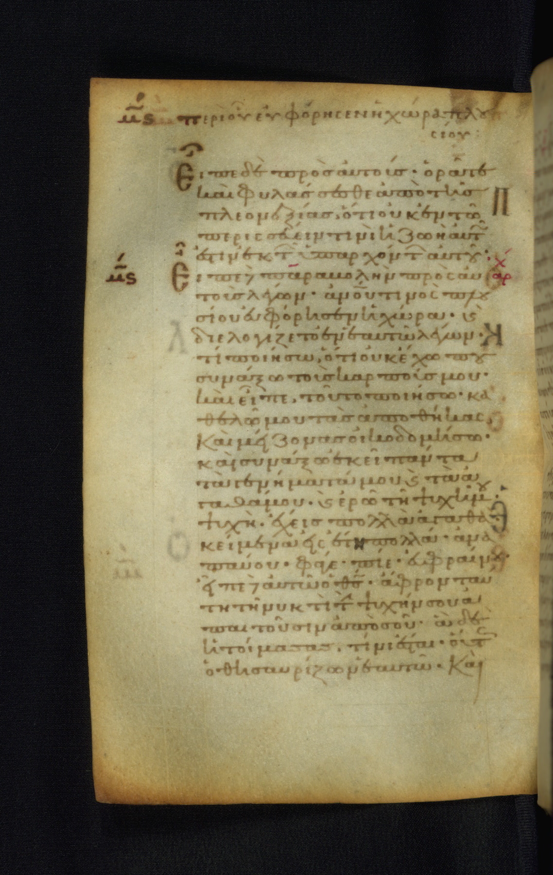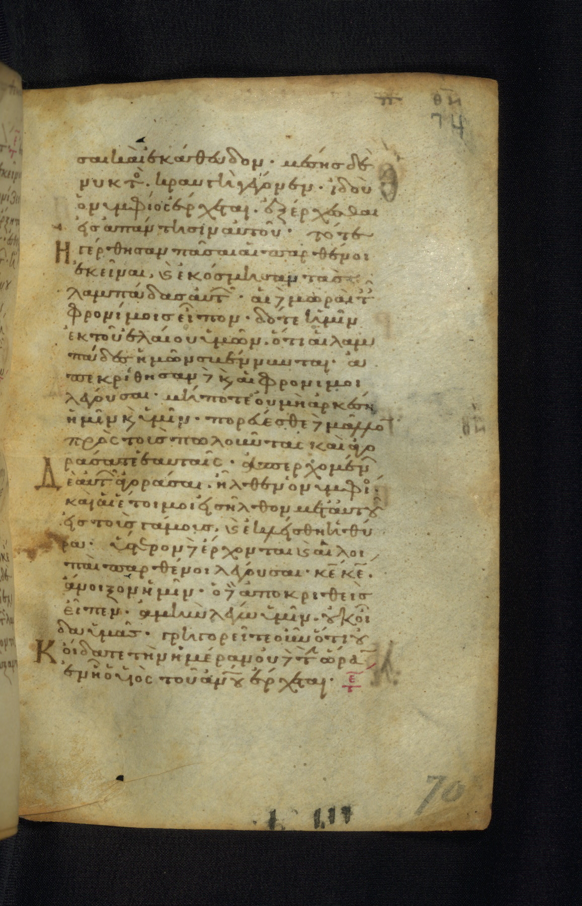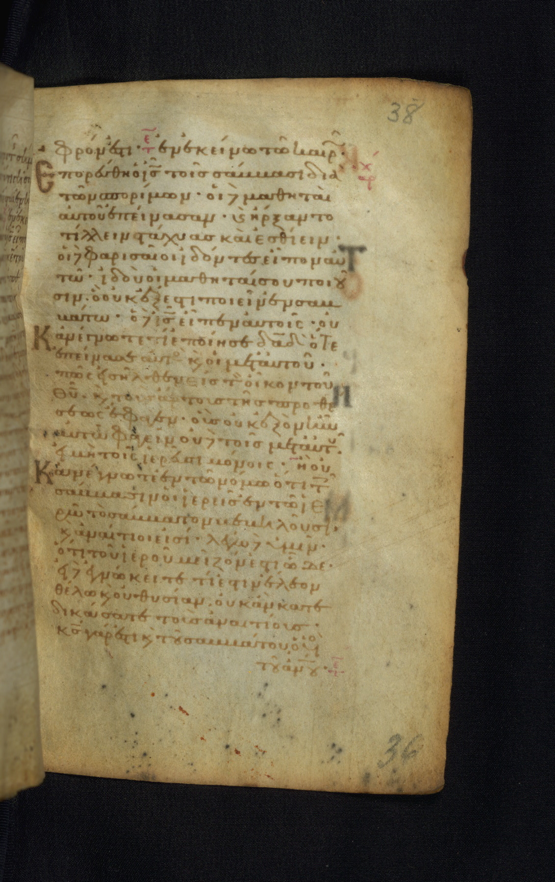 This Gospel book was likely created in the capital of the Byzantine Empire, Constantinople, in the eleventh century. The manuscript is remarkable on account of its exceptionally small size, as well as the high quality of its script and miniatures. Its extensive image cycle includes six full-page miniatures, four half-page miniatures, four historiated initials, and marginalia.