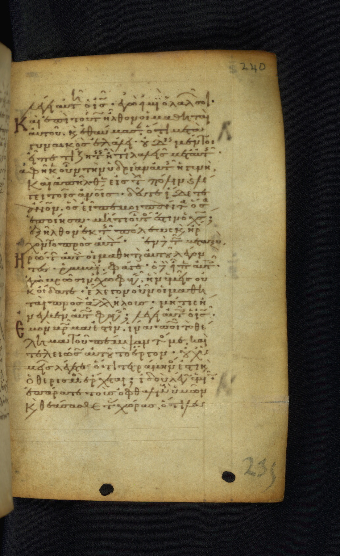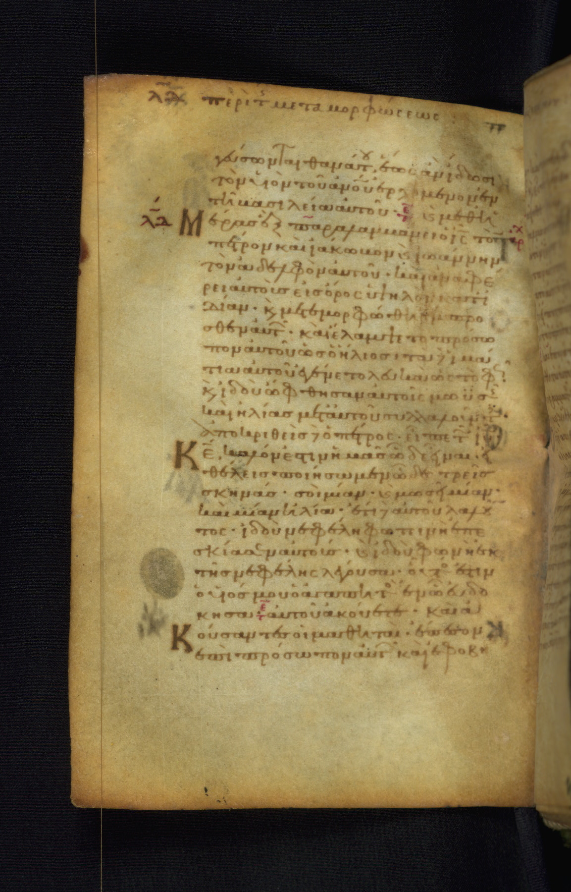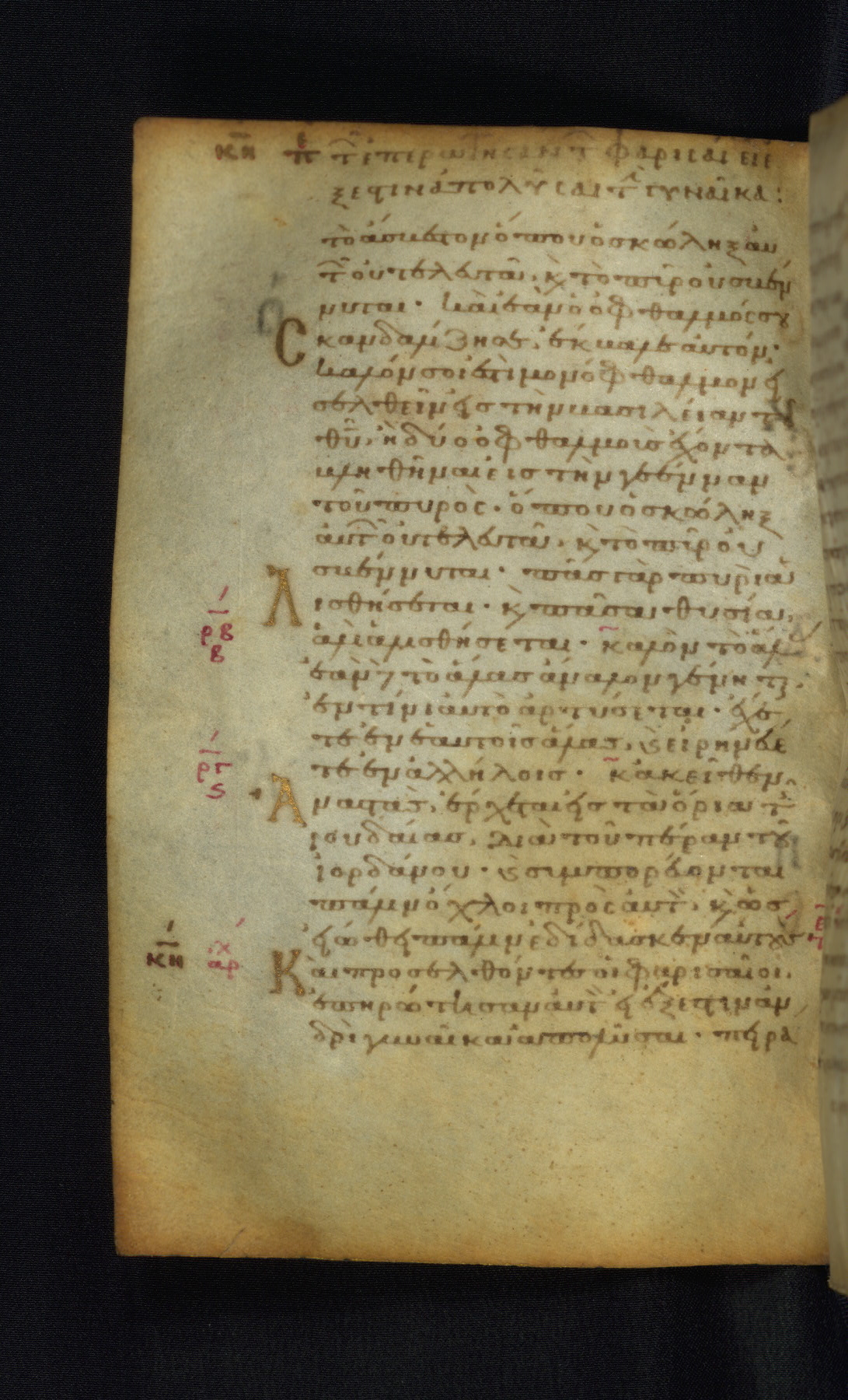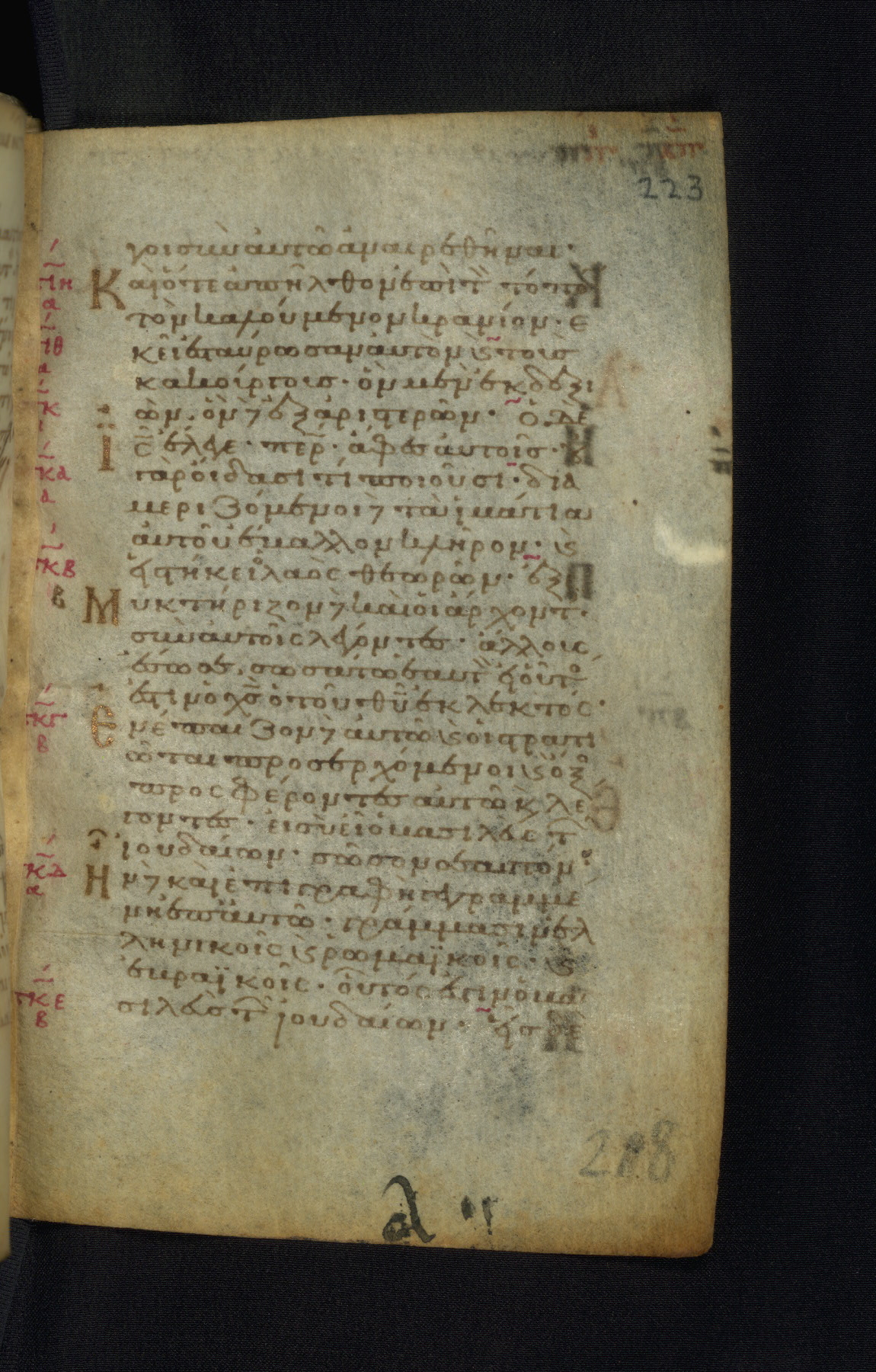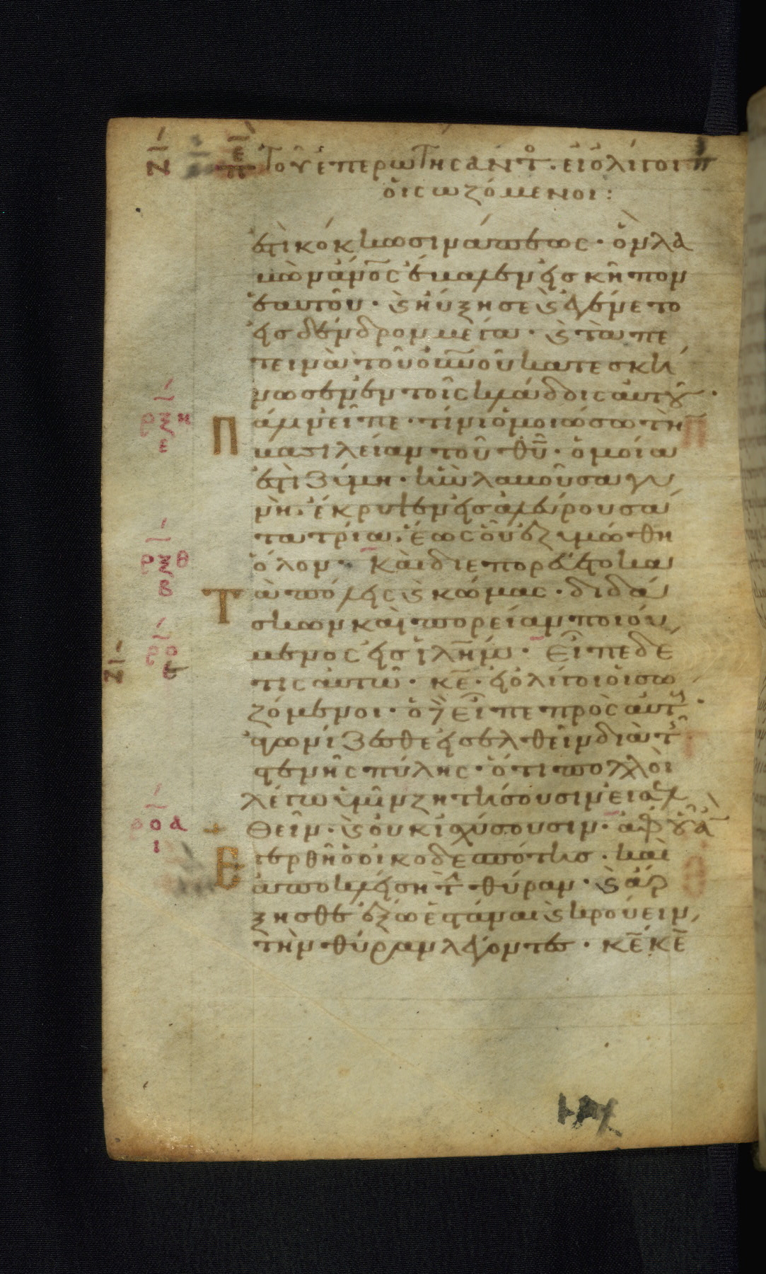 This Gospel book was likely created in the capital of the Byzantine Empire, Constantinople, in the eleventh century. The manuscript is remarkable on account of its exceptionally small size, as well as the high quality of its script and miniatures. Its extensive image cycle includes six full-page miniatures, four half-page miniatures, four historiated initials, and marginalia.