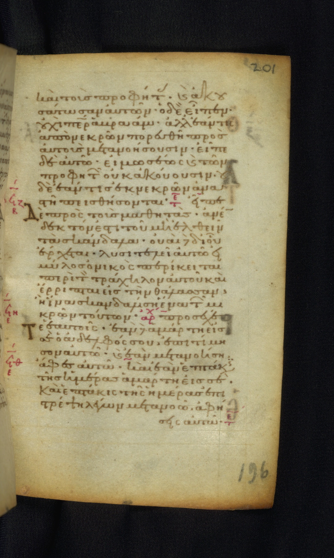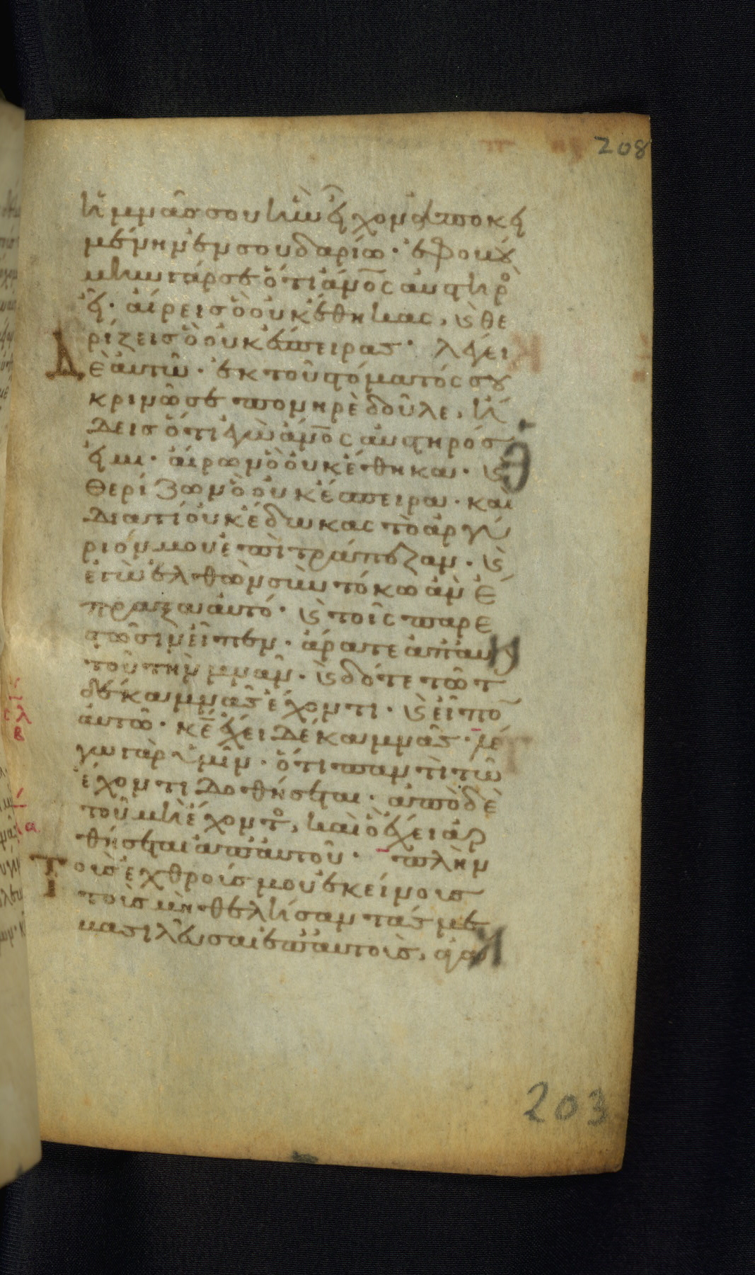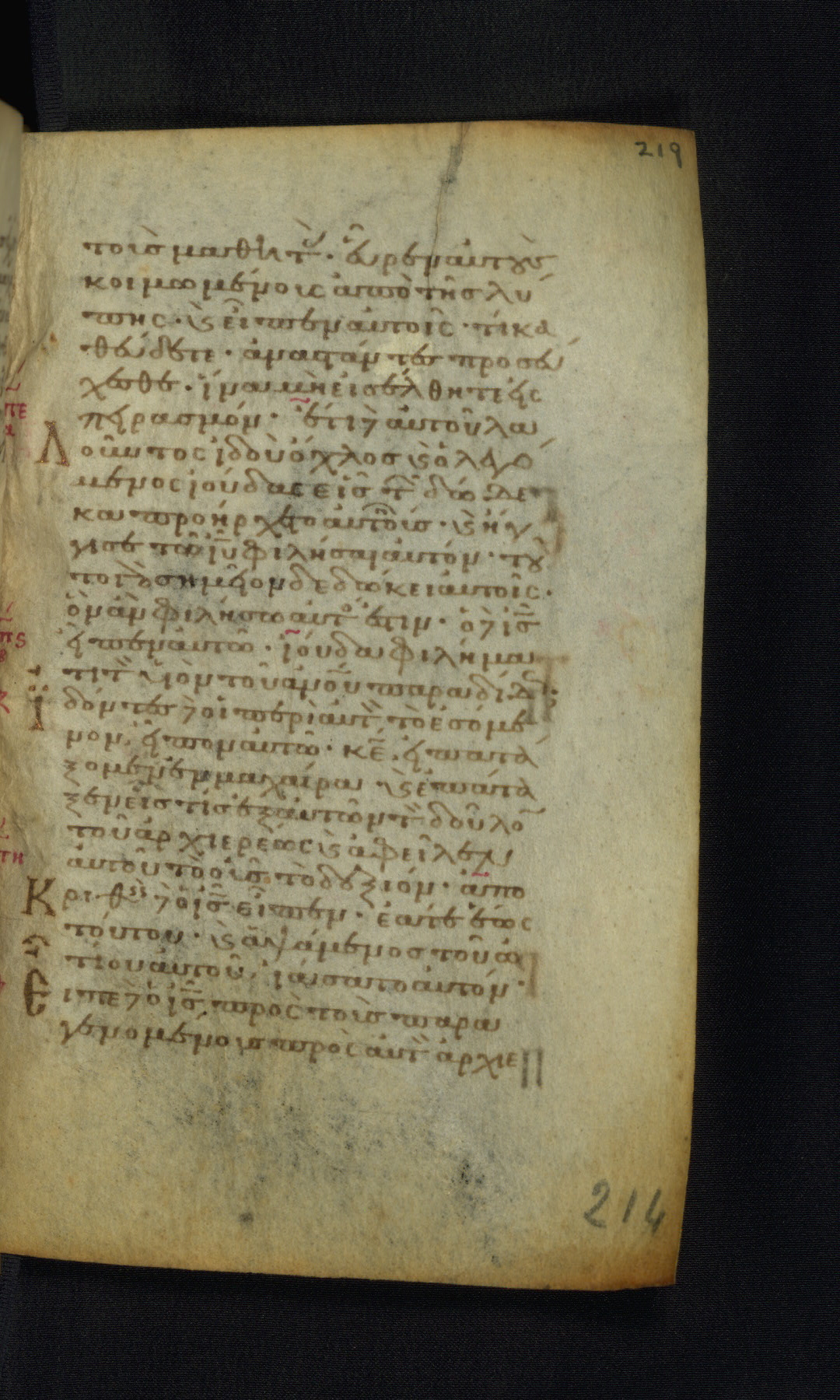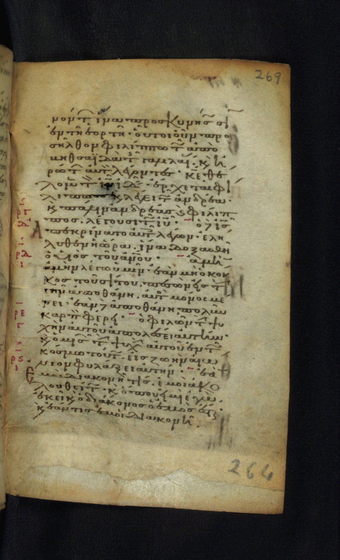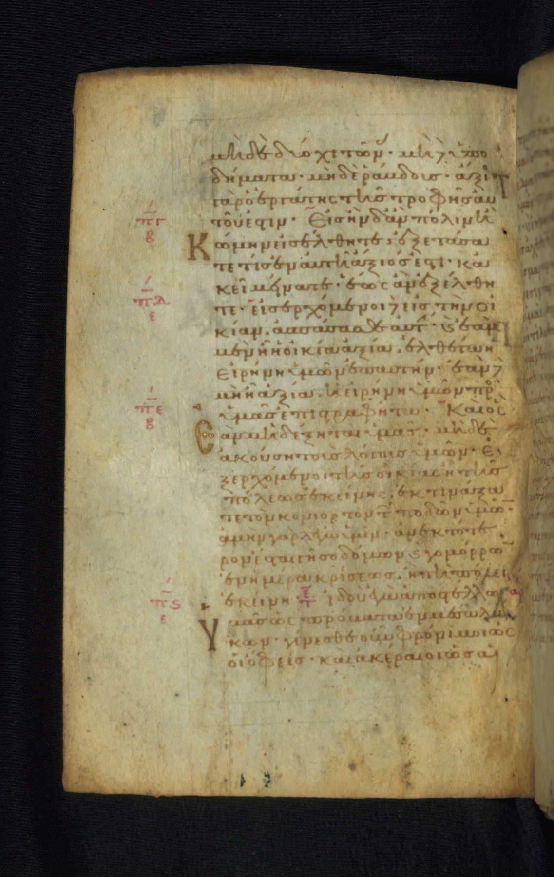 This Gospel book was likely created in the capital of the Byzantine Empire, Constantinople, in the eleventh century. The manuscript is remarkable on account of its exceptionally small size, as well as the high quality of its script and miniatures. Its extensive image cycle includes six full-page miniatures, four half-page miniatures, four historiated initials, and marginalia.