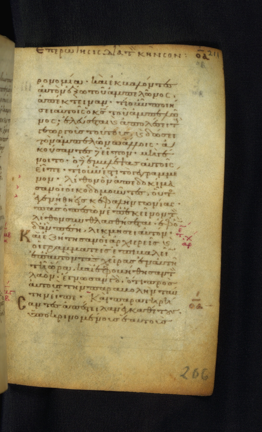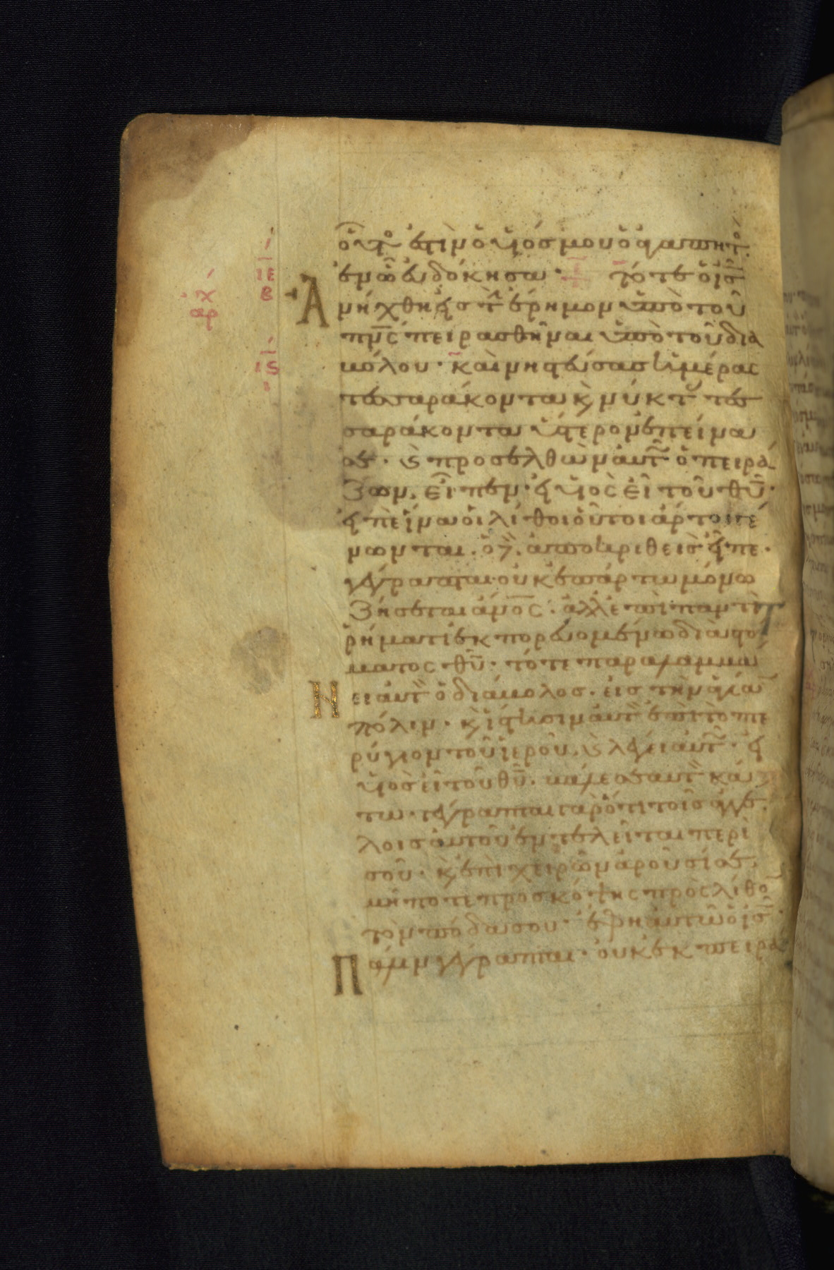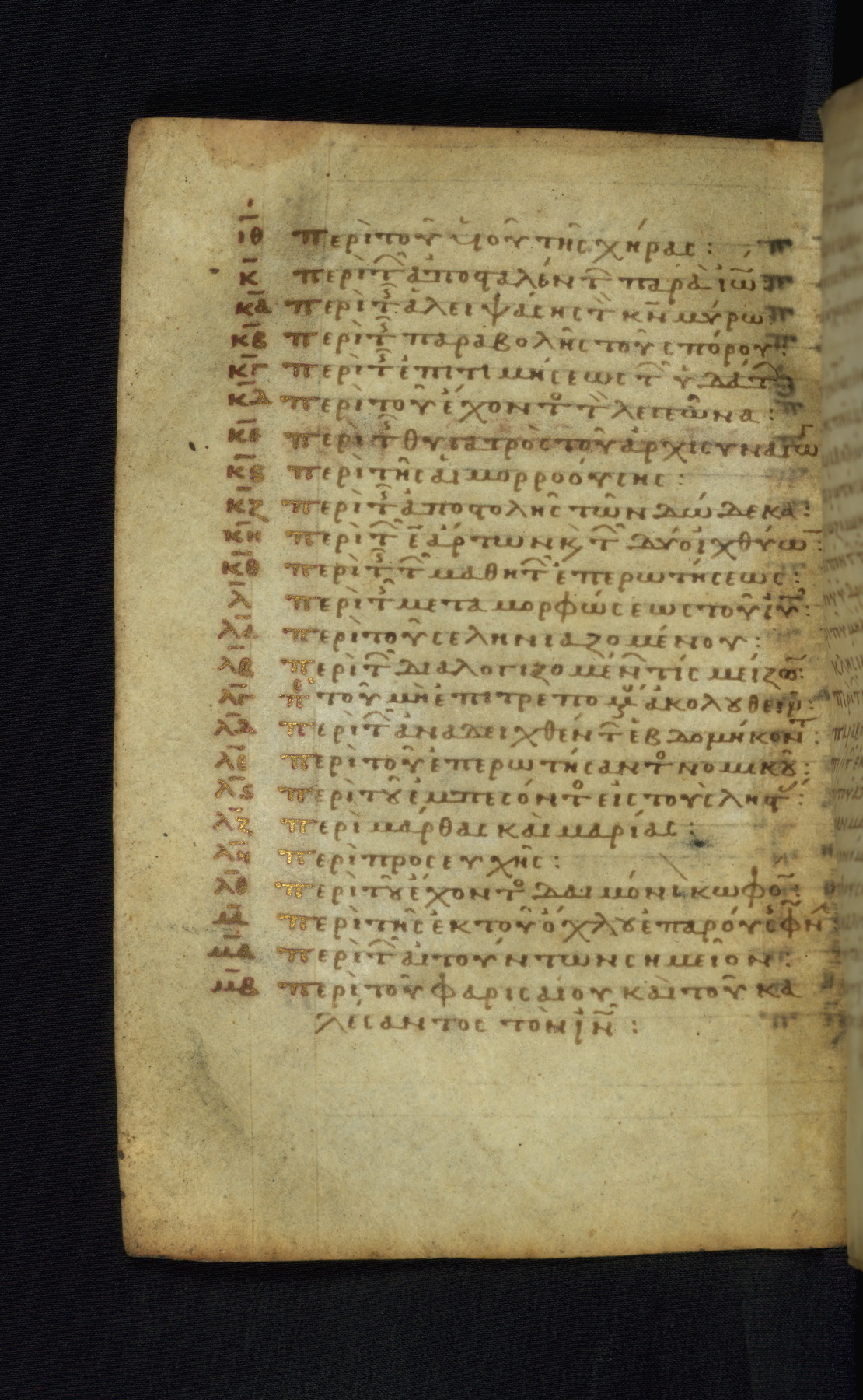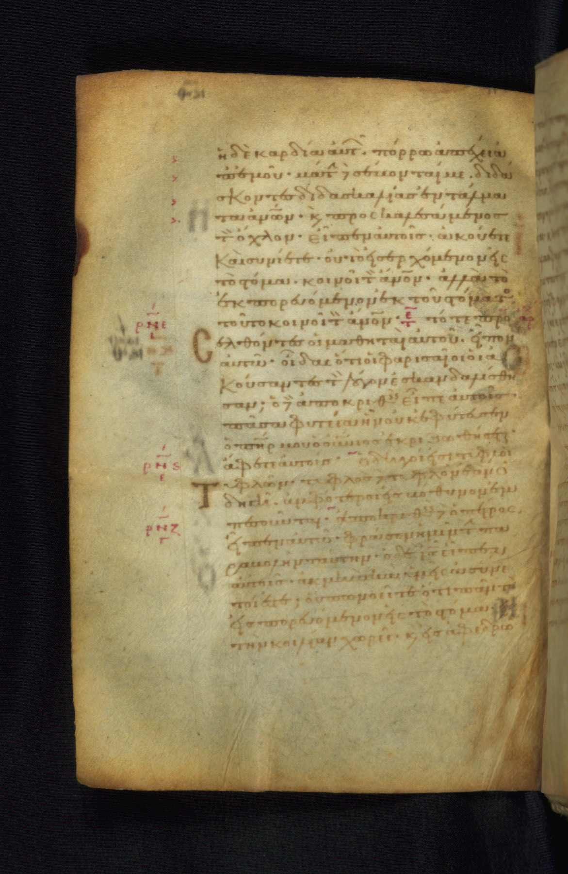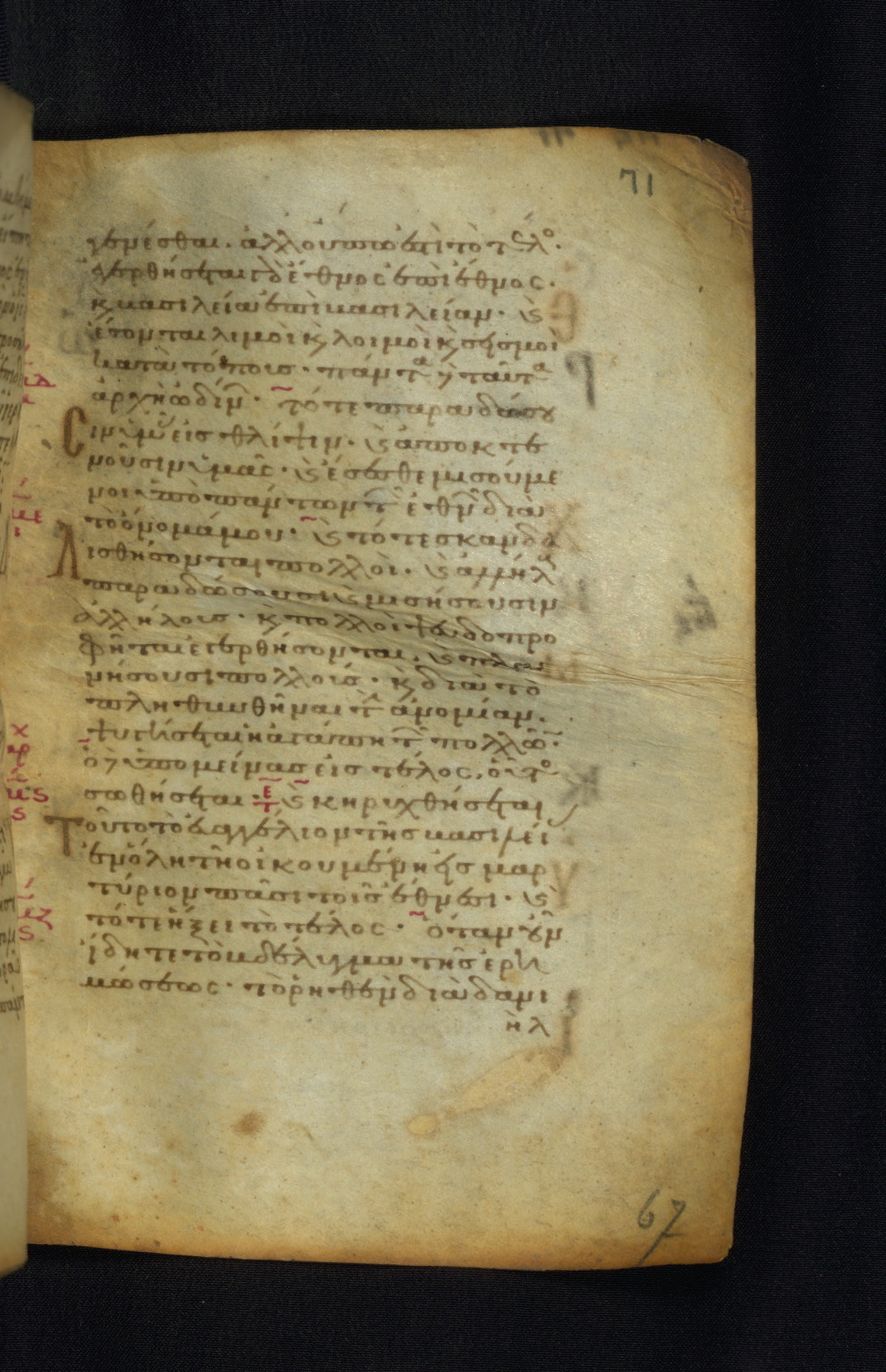 This Gospel book was likely created in the capital of the Byzantine Empire, Constantinople, in the eleventh century. The manuscript is remarkable on account of its exceptionally small size, as well as the high quality of its script and miniatures. Its extensive image cycle includes six full-page miniatures, four half-page miniatures, four historiated initials, and marginalia.