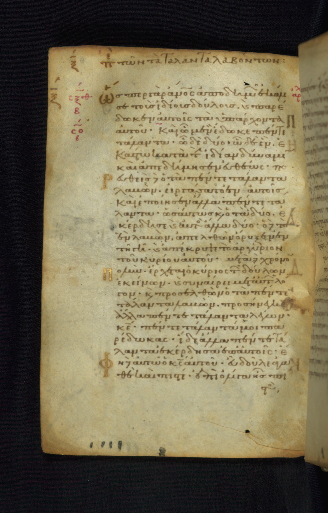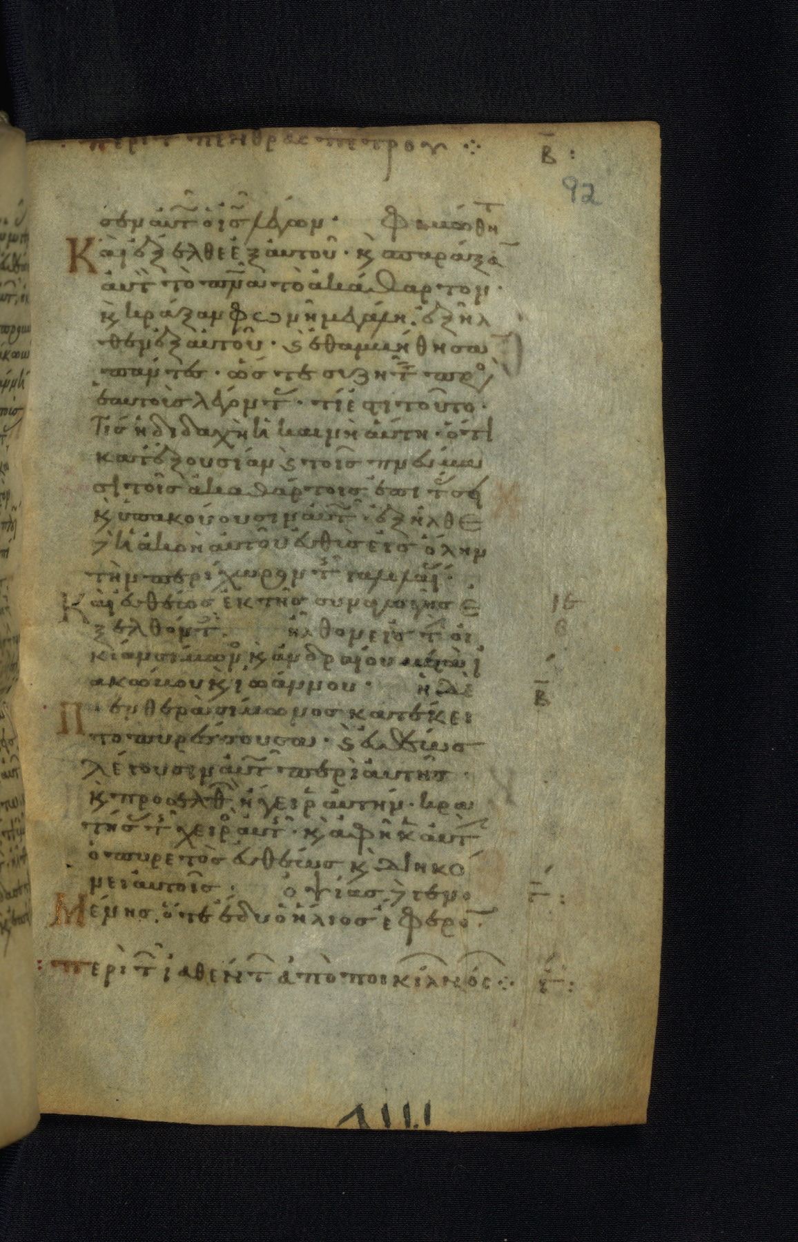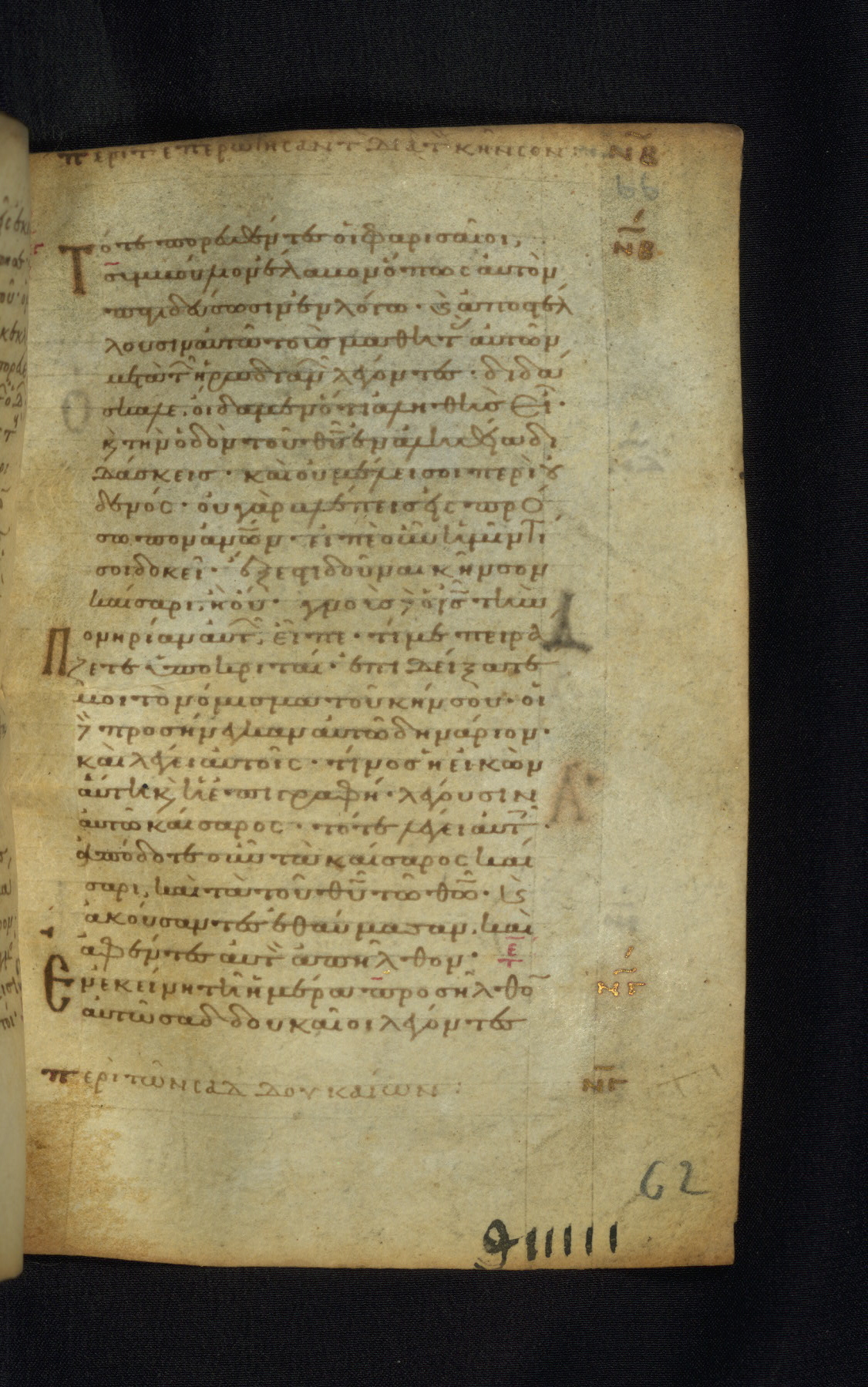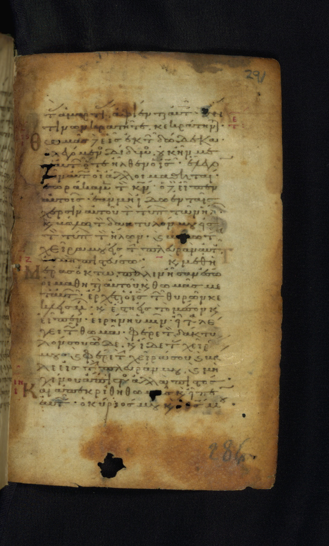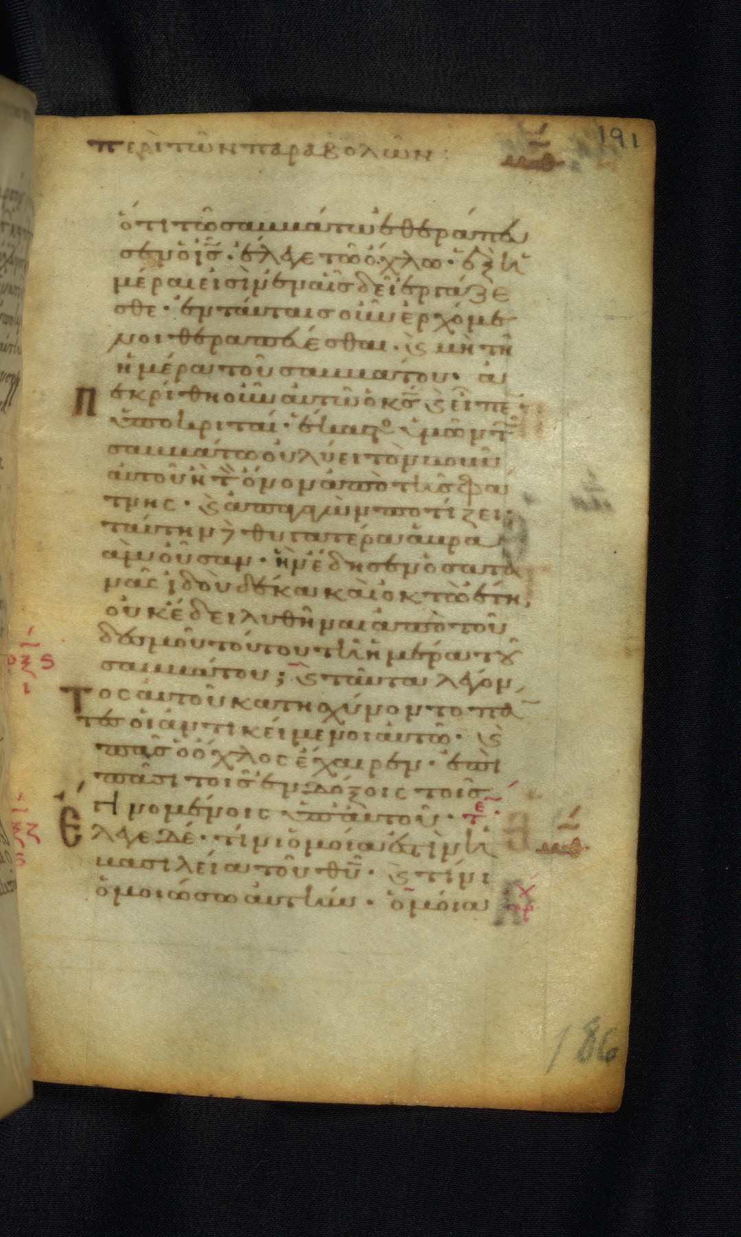This Gospel book was likely created in the capital of the Byzantine Empire, Constantinople, in the eleventh century. The manuscript is remarkable on account of its exceptionally small size, as well as the high quality of its script and miniatures. Its extensive image cycle includes six full-page miniatures, four half-page miniatures, four historiated initials, and marginalia.