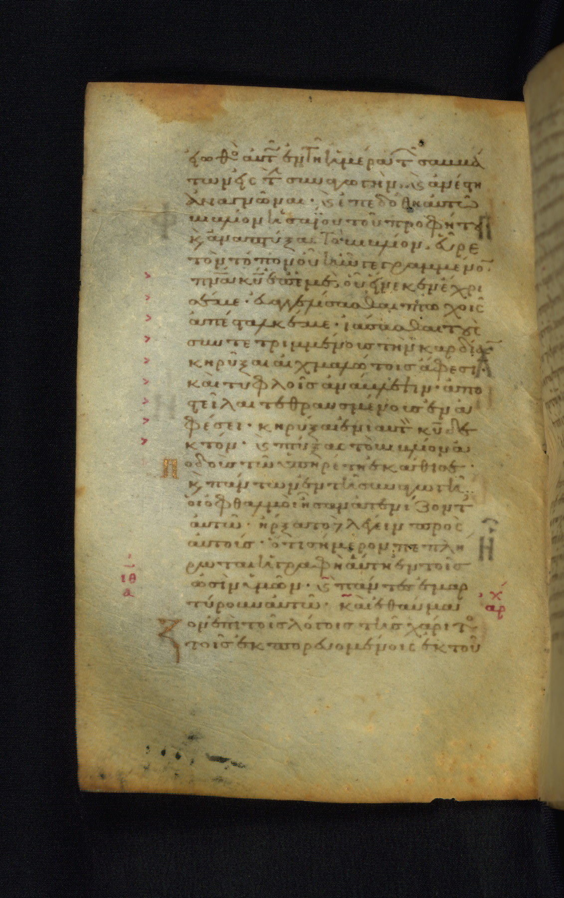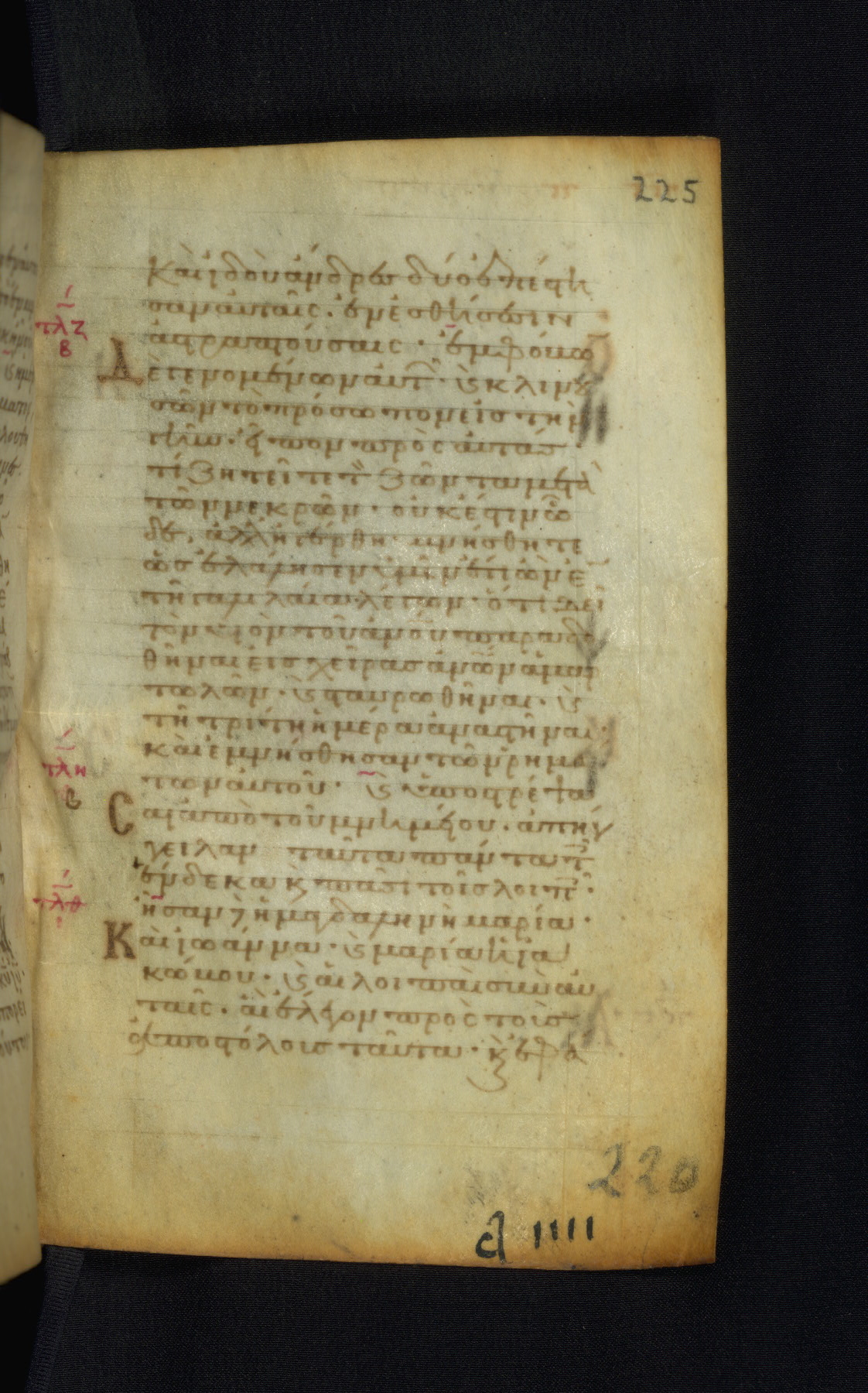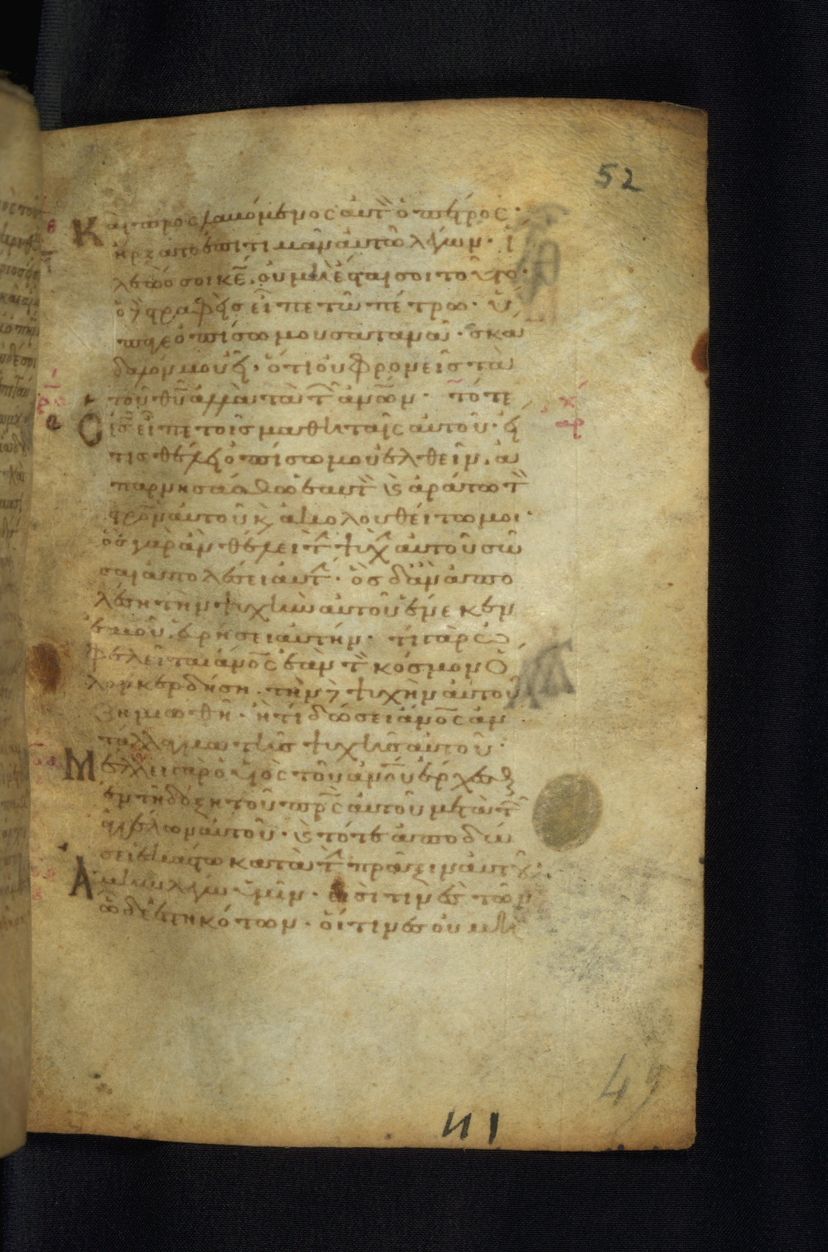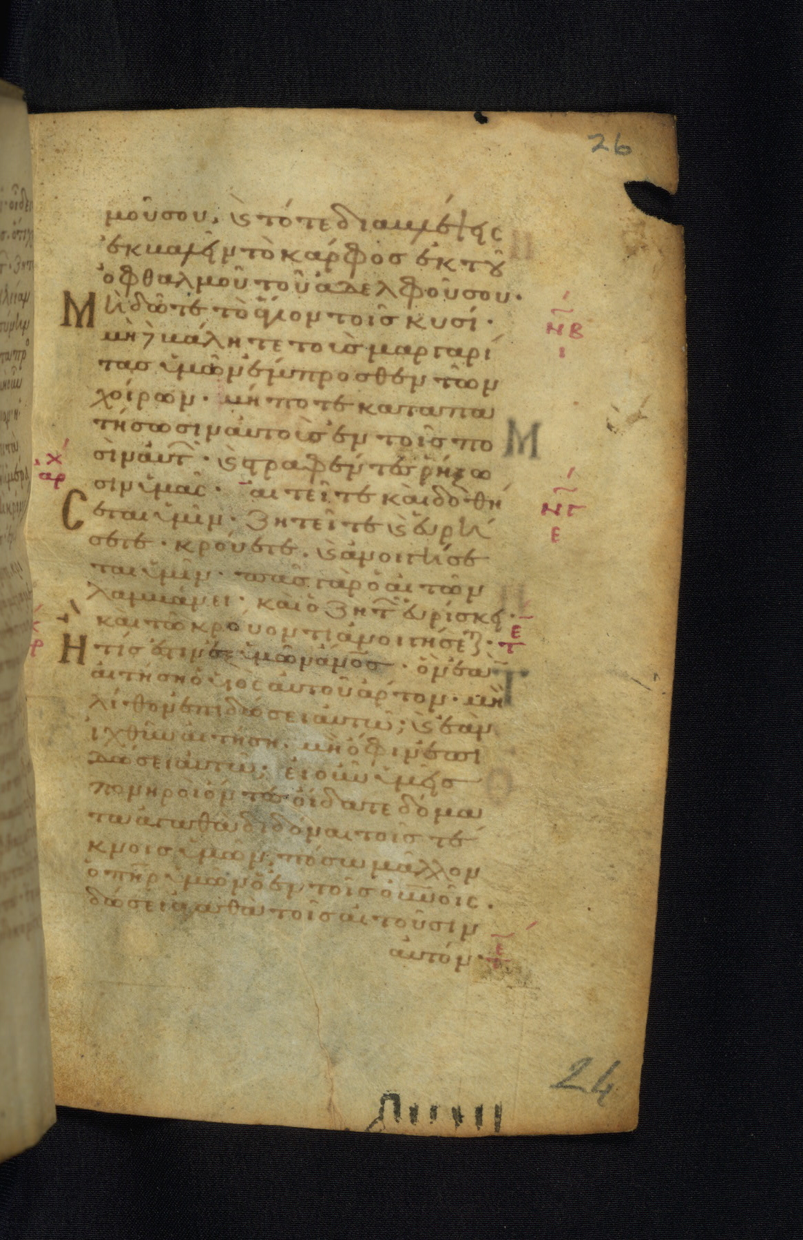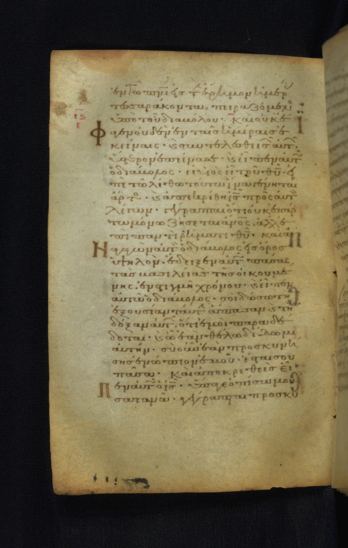 This Gospel book was likely created in the capital of the Byzantine Empire, Constantinople, in the eleventh century. The manuscript is remarkable on account of its exceptionally small size, as well as the high quality of its script and miniatures. Its extensive image cycle includes six full-page miniatures, four half-page miniatures, four historiated initials, and marginalia.