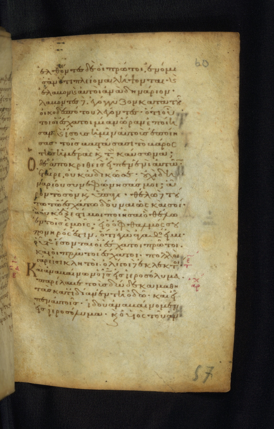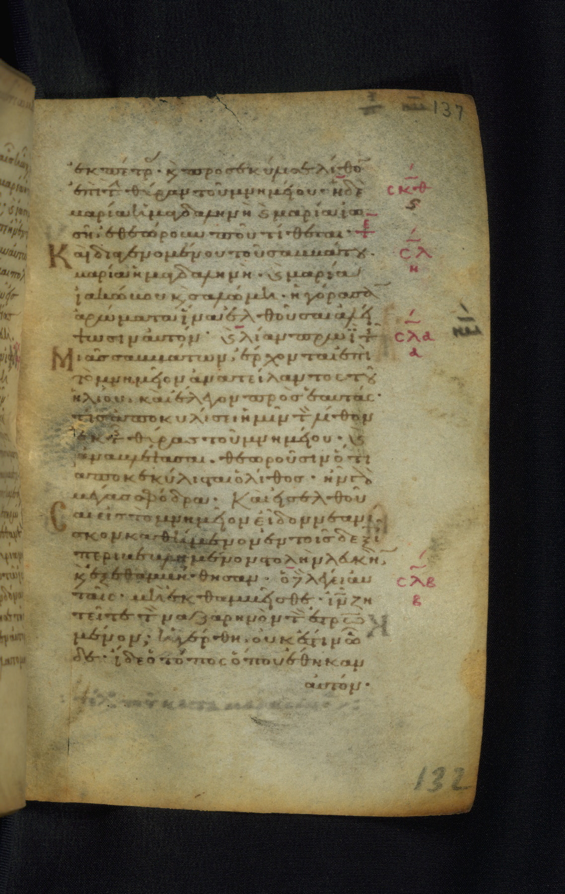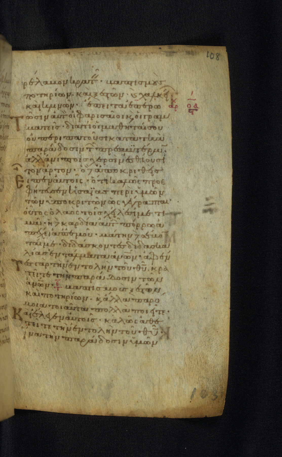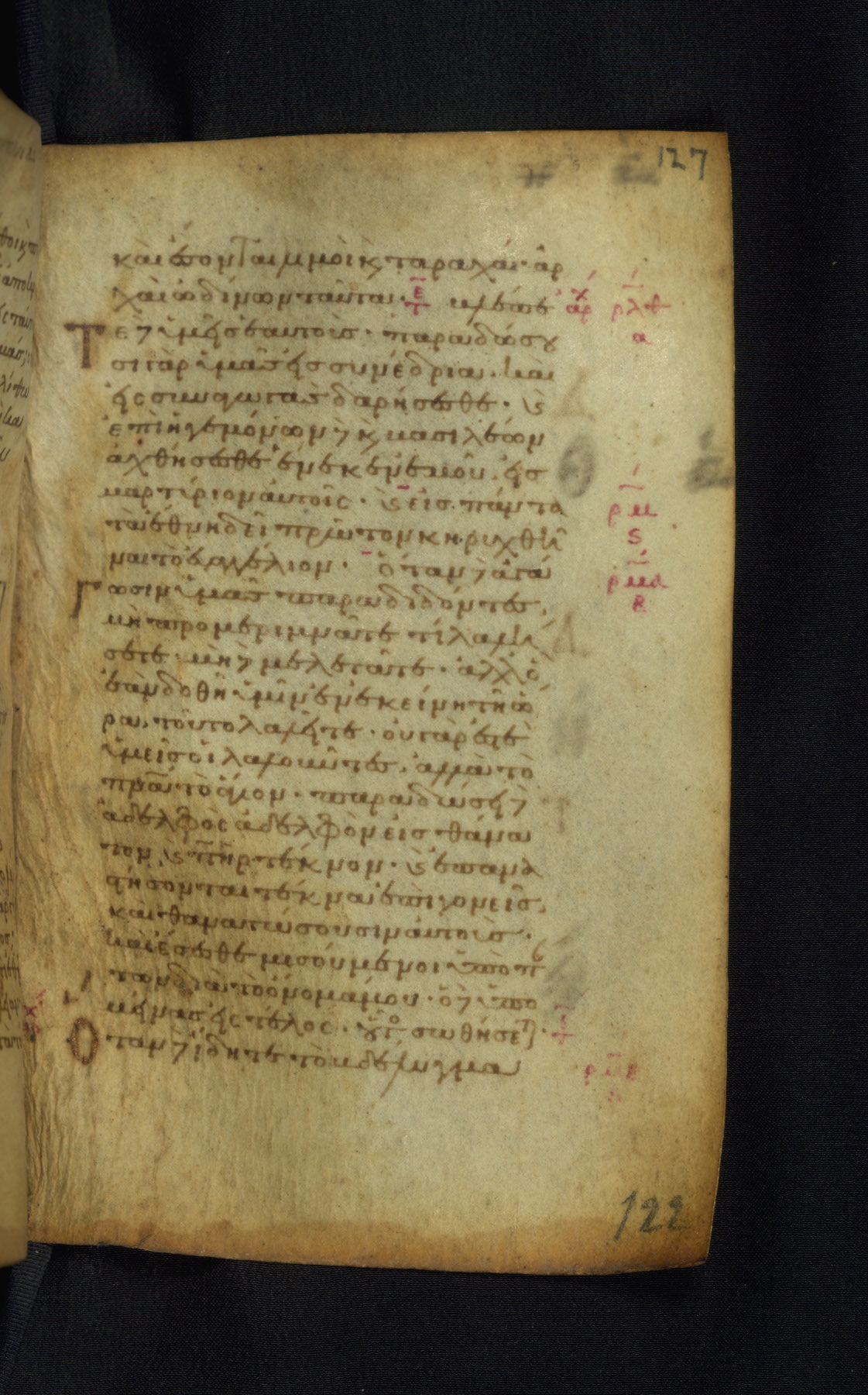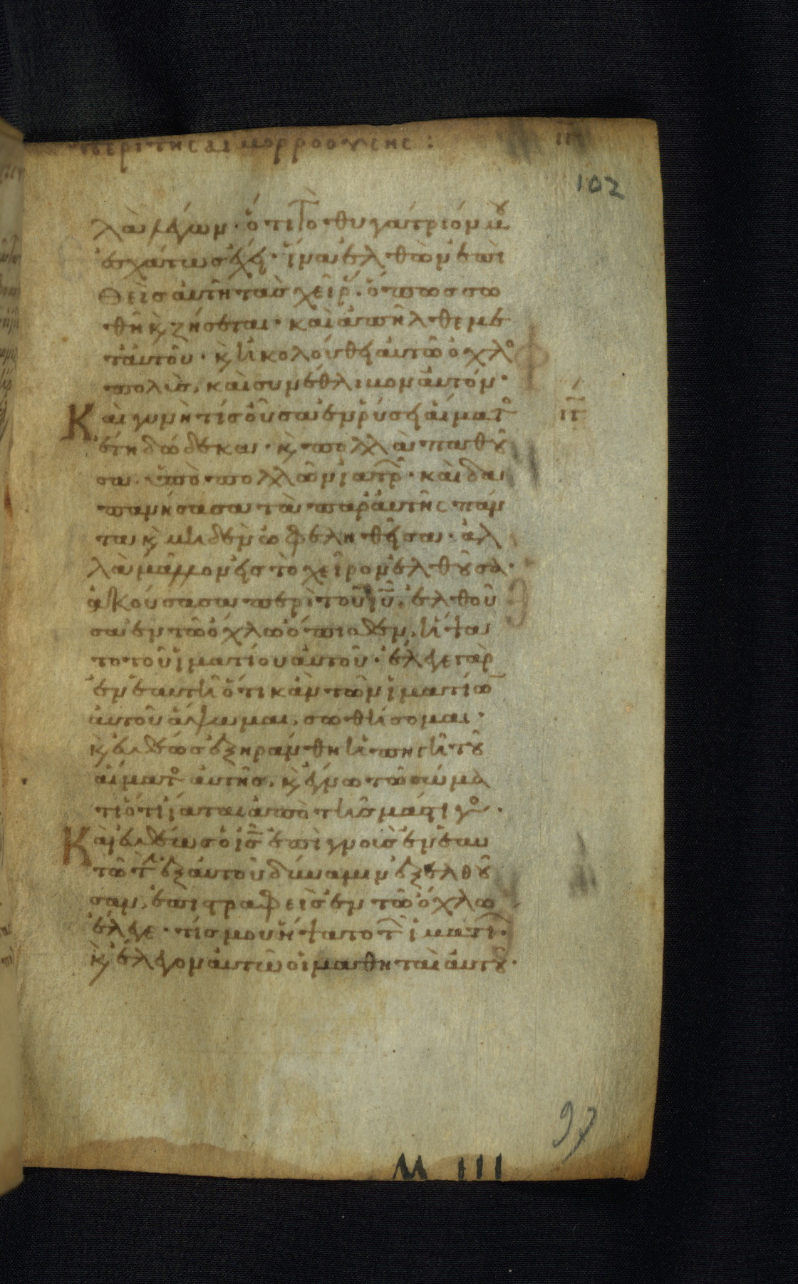 This Gospel book was likely created in the capital of the Byzantine Empire, Constantinople, in the eleventh century. The manuscript is remarkable on account of its exceptionally small size, as well as the high quality of its script and miniatures. Its extensive image cycle includes six full-page miniatures, four half-page miniatures, four historiated initials, and marginalia.