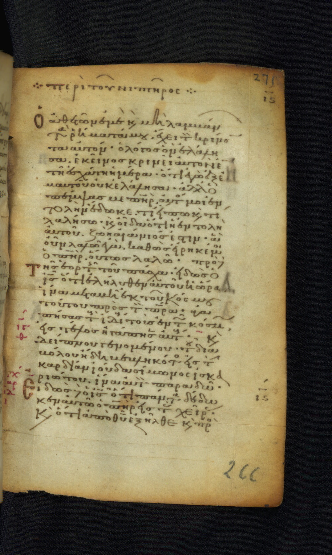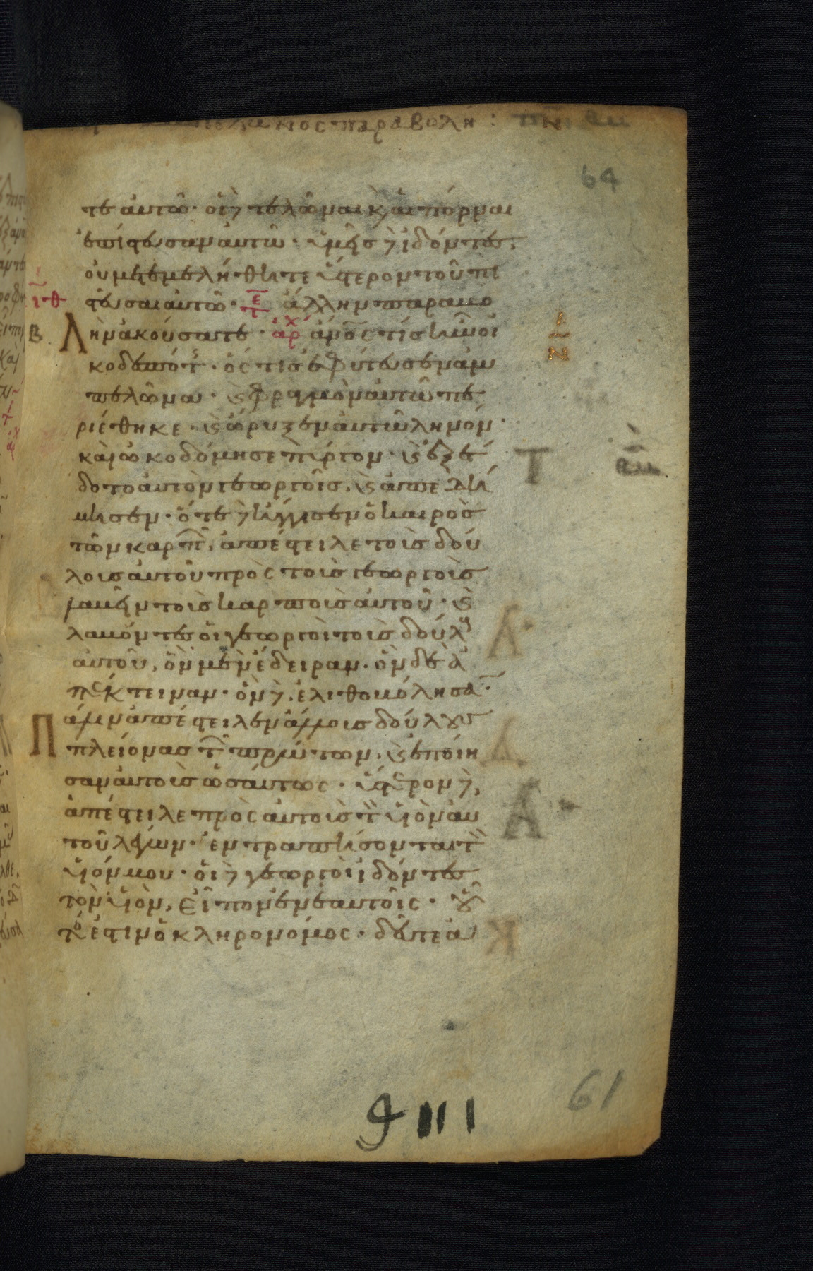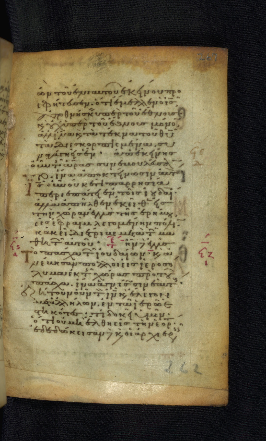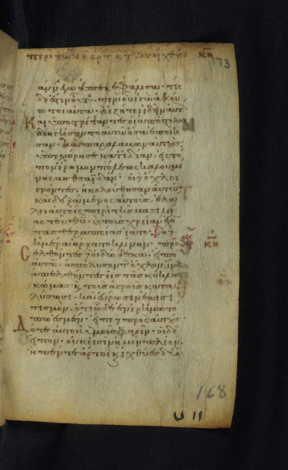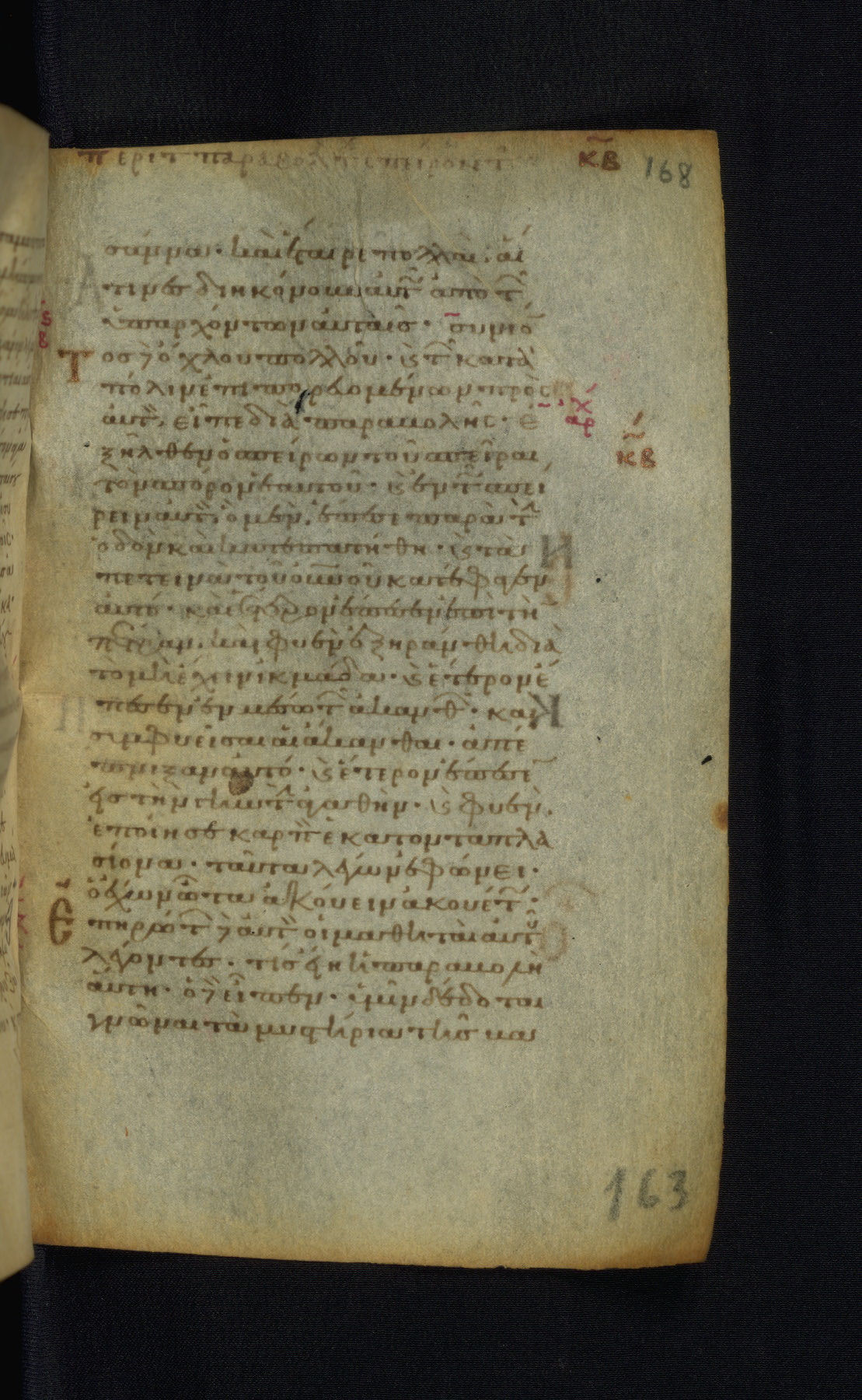 This Gospel book was likely created in the capital of the Byzantine Empire, Constantinople, in the eleventh century. The manuscript is remarkable on account of its exceptionally small size, as well as the high quality of its script and miniatures. Its extensive image cycle includes six full-page miniatures, four half-page miniatures, four historiated initials, and marginalia.