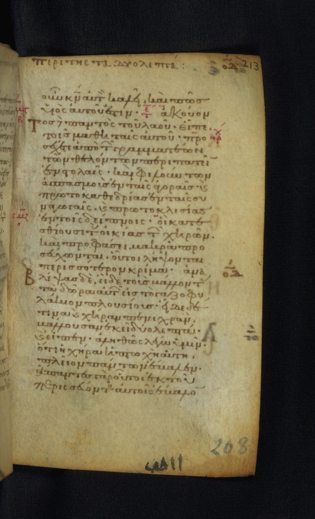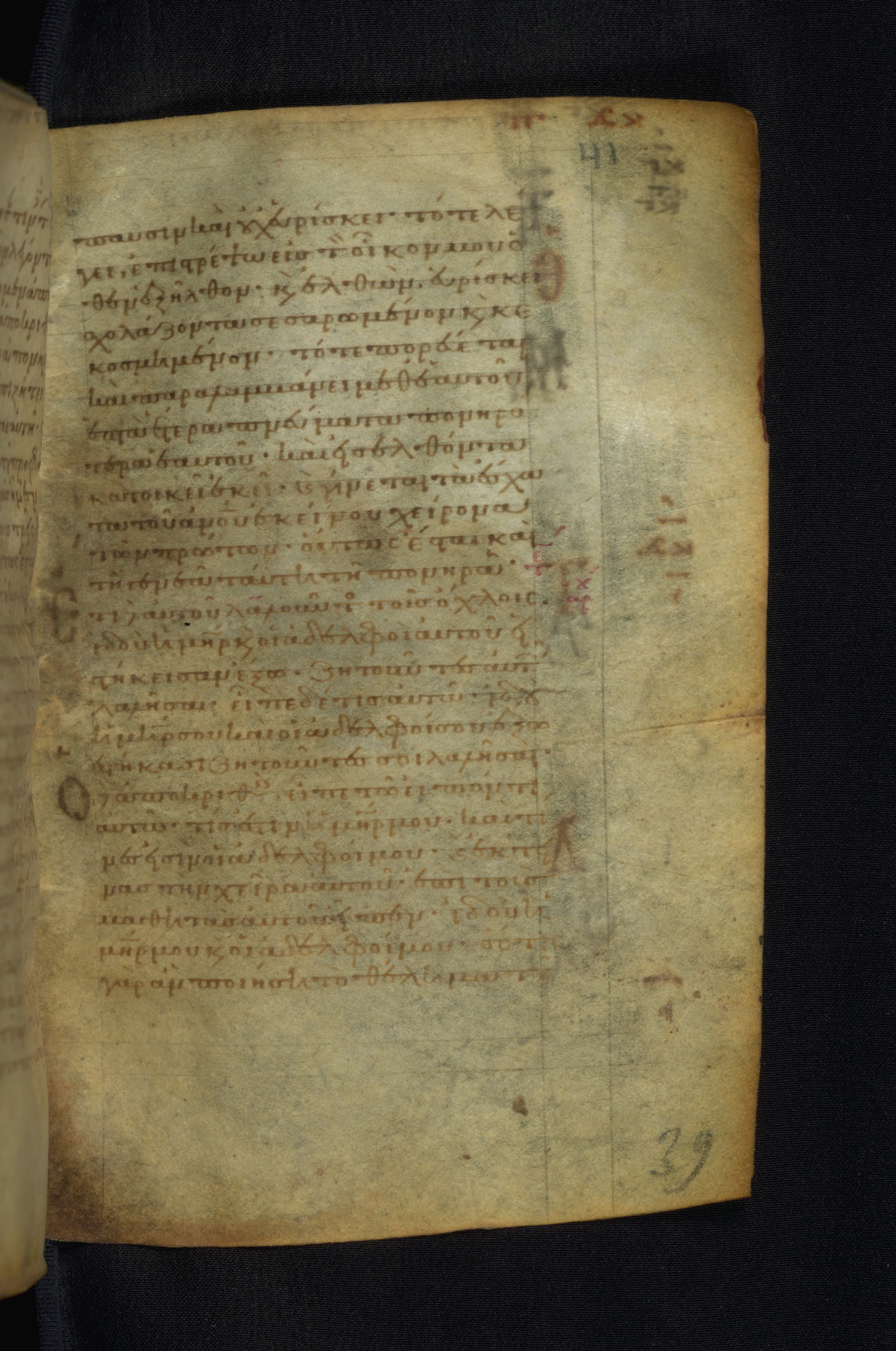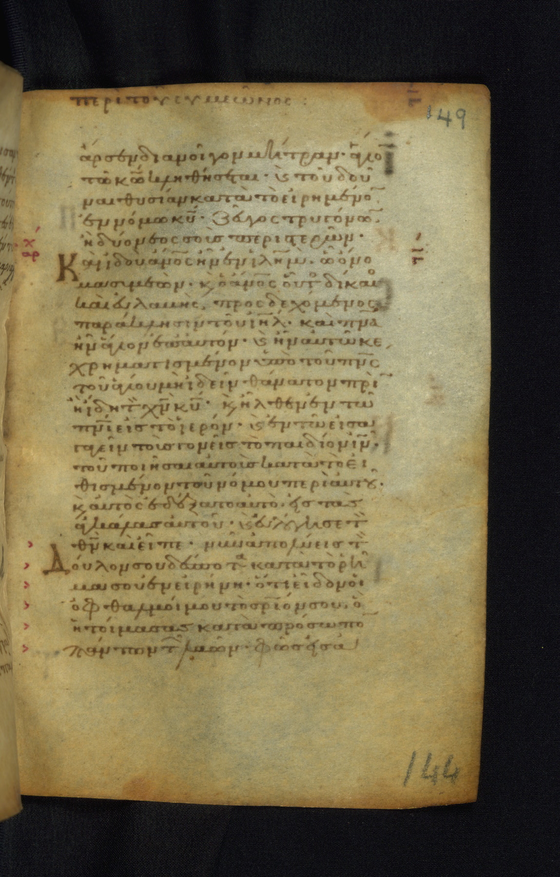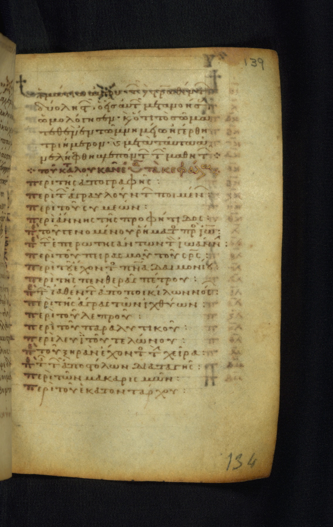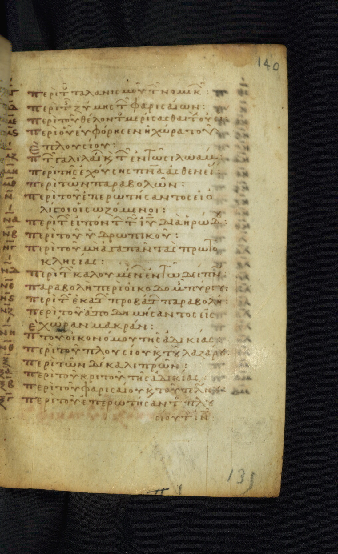 This Gospel book was likely created in the capital of the Byzantine Empire, Constantinople, in the eleventh century. The manuscript is remarkable on account of its exceptionally small size, as well as the high quality of its script and miniatures. Its extensive image cycle includes six full-page miniatures, four half-page miniatures, four historiated initials, and marginalia.