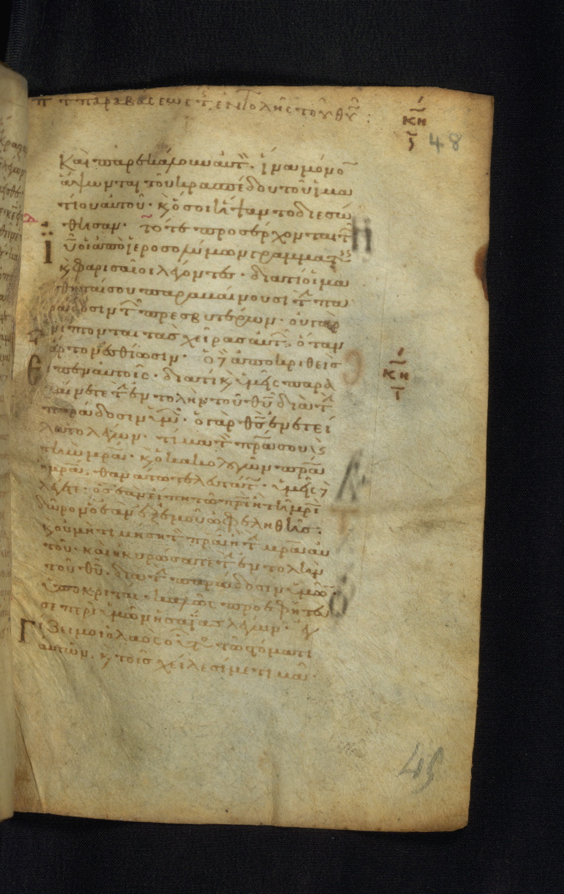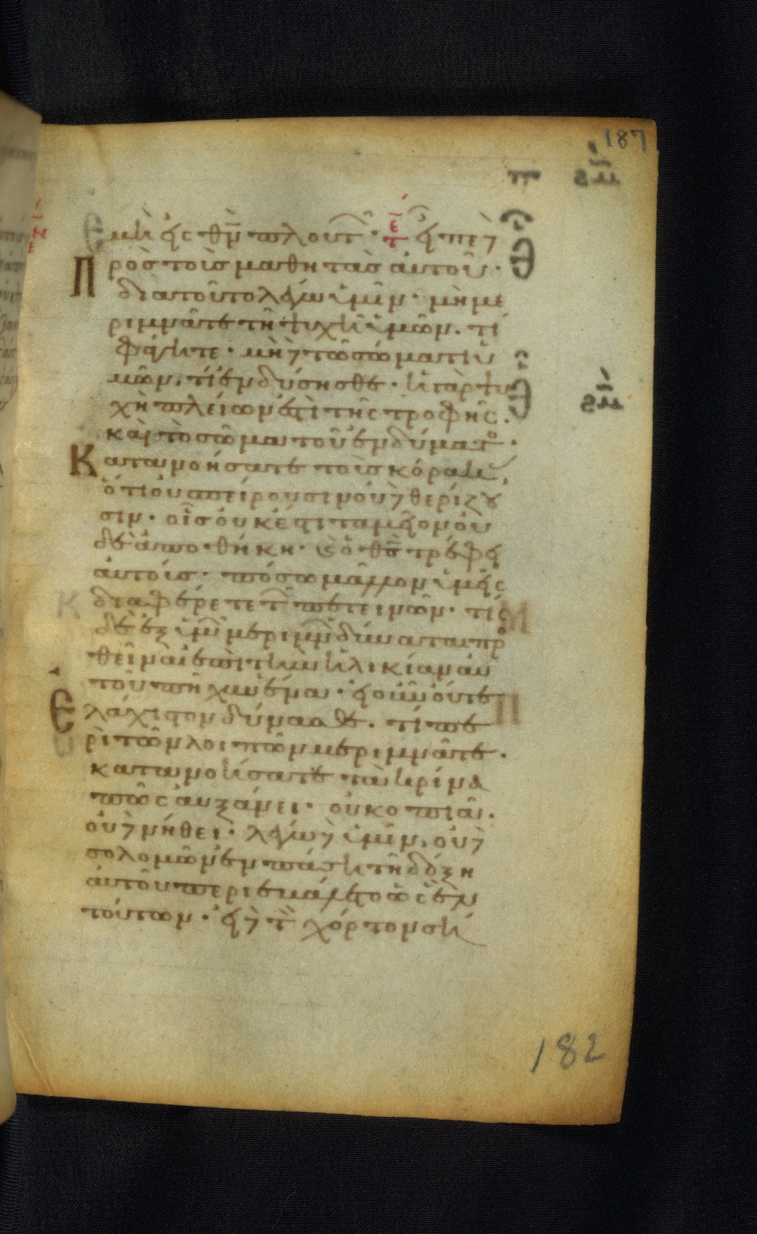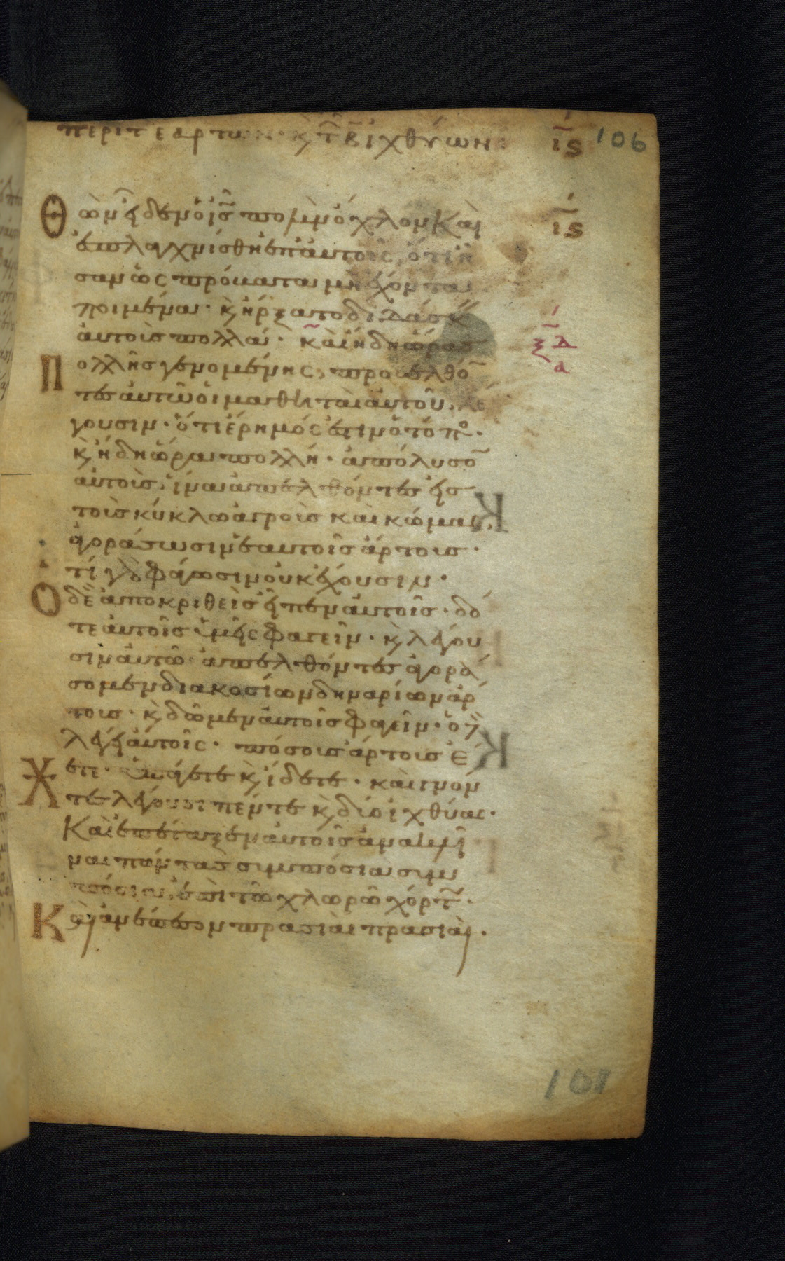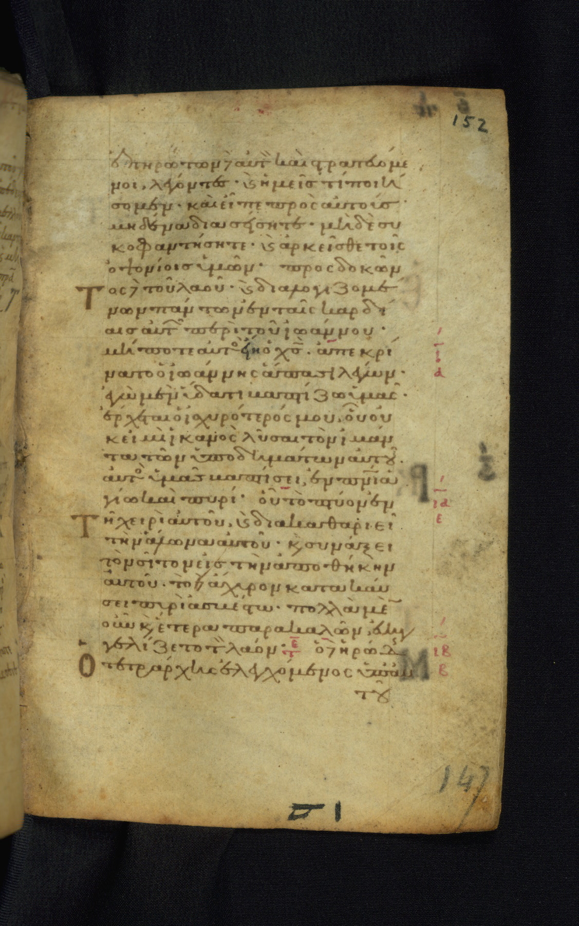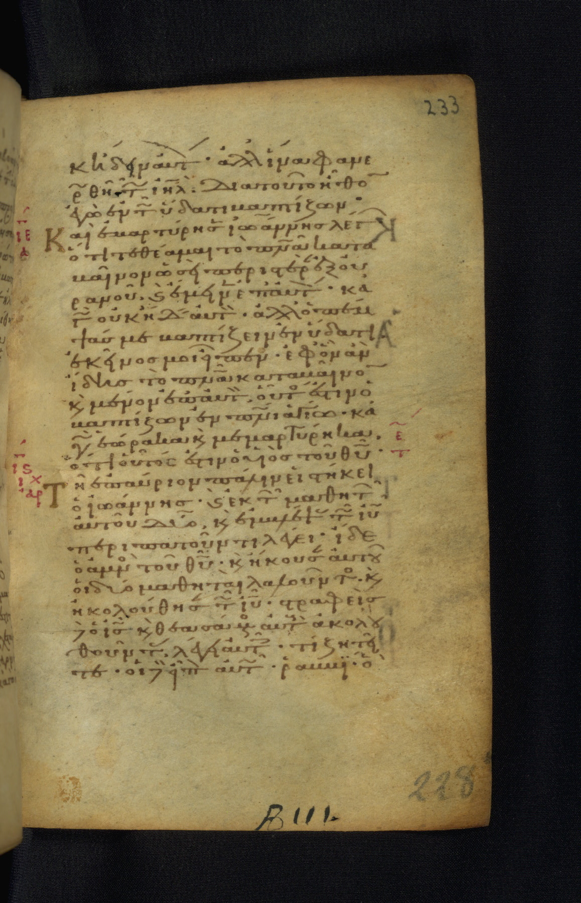 This Gospel book was likely created in the capital of the Byzantine Empire, Constantinople, in the eleventh century. The manuscript is remarkable on account of its exceptionally small size, as well as the high quality of its script and miniatures. Its extensive image cycle includes six full-page miniatures, four half-page miniatures, four historiated initials, and marginalia.