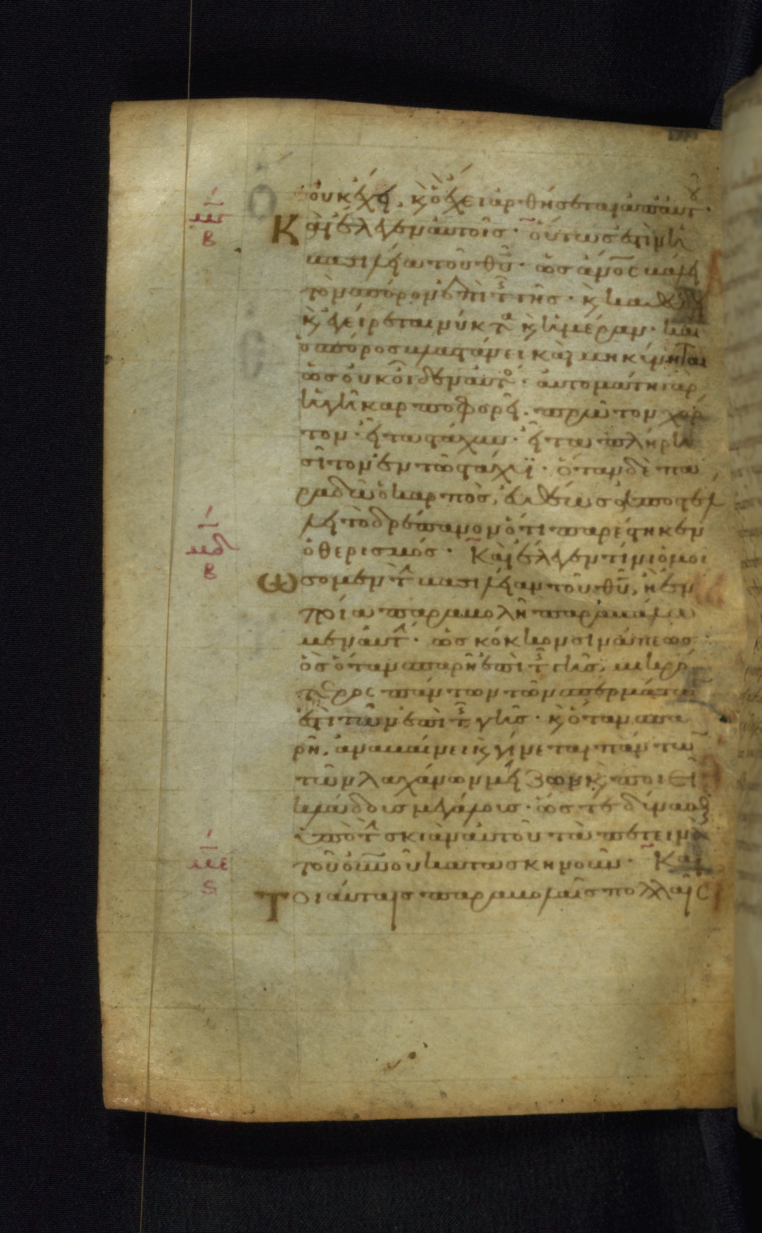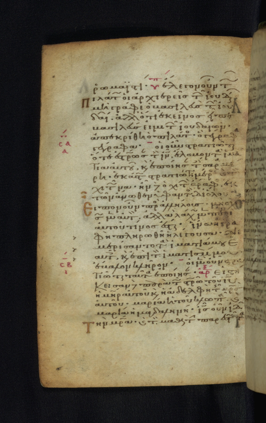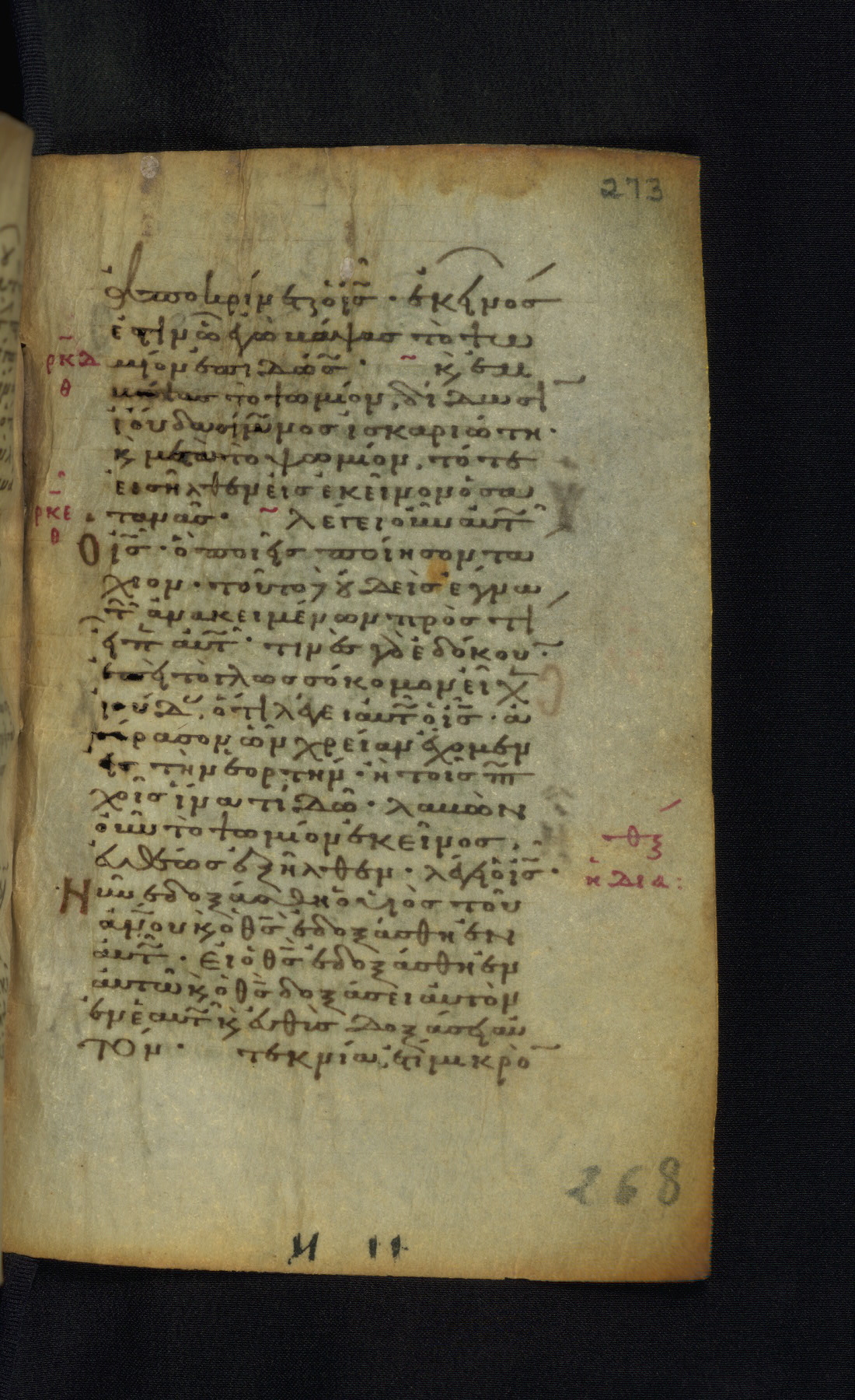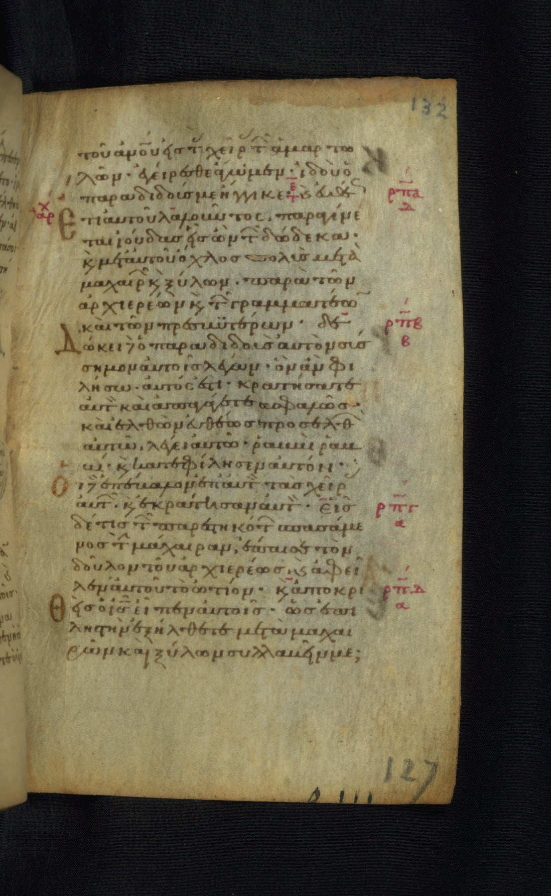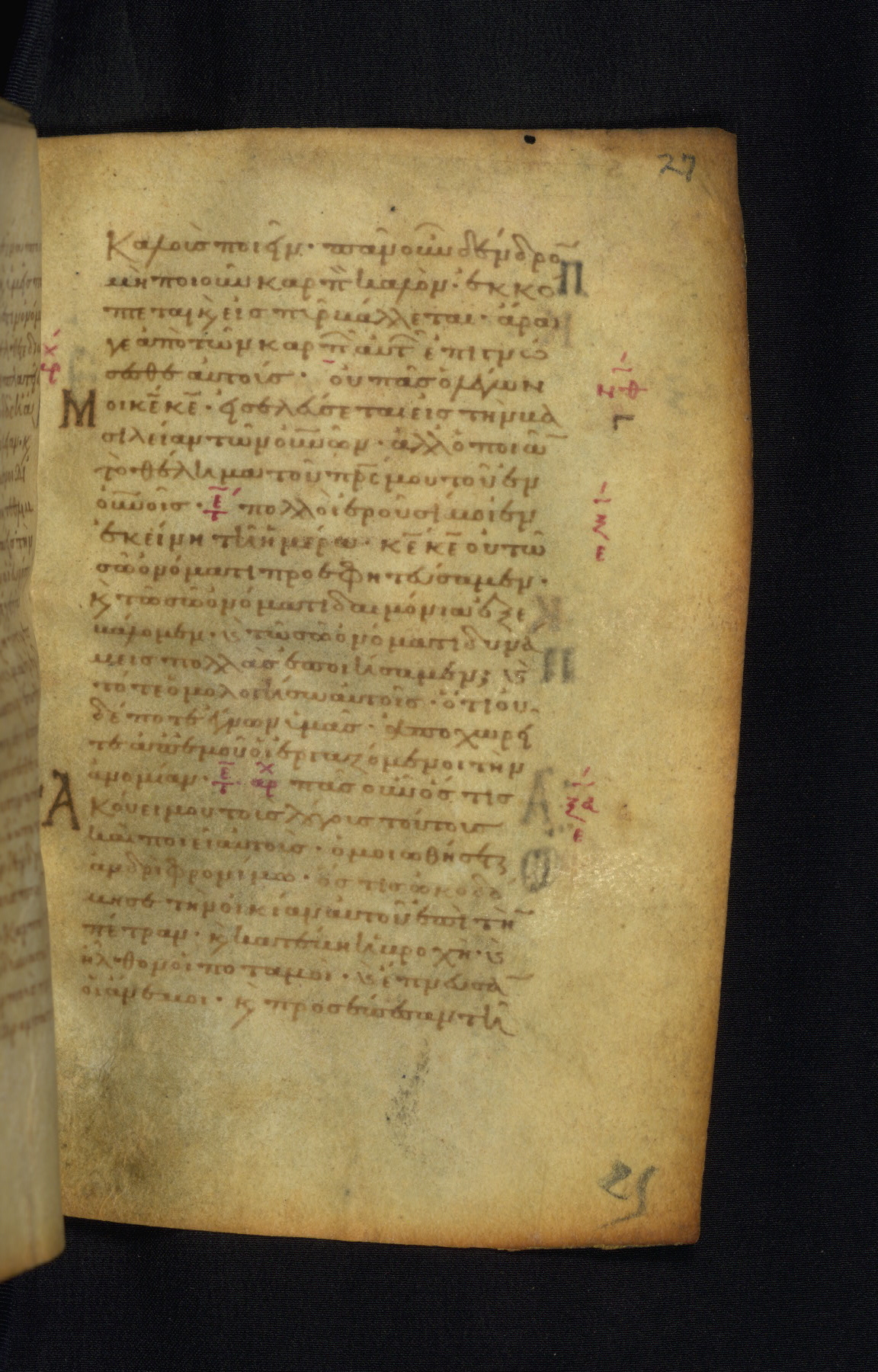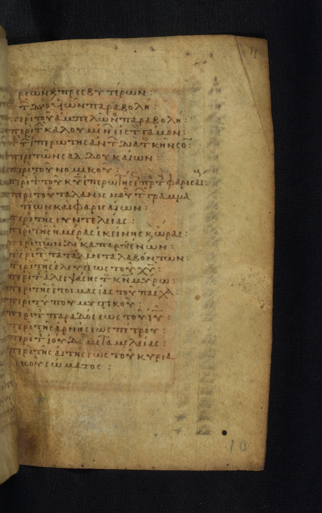 This Gospel book was likely created in the capital of the Byzantine Empire, Constantinople, in the eleventh century. The manuscript is remarkable on account of its exceptionally small size, as well as the high quality of its script and miniatures. Its extensive image cycle includes six full-page miniatures, four half-page miniatures, four historiated initials, and marginalia.