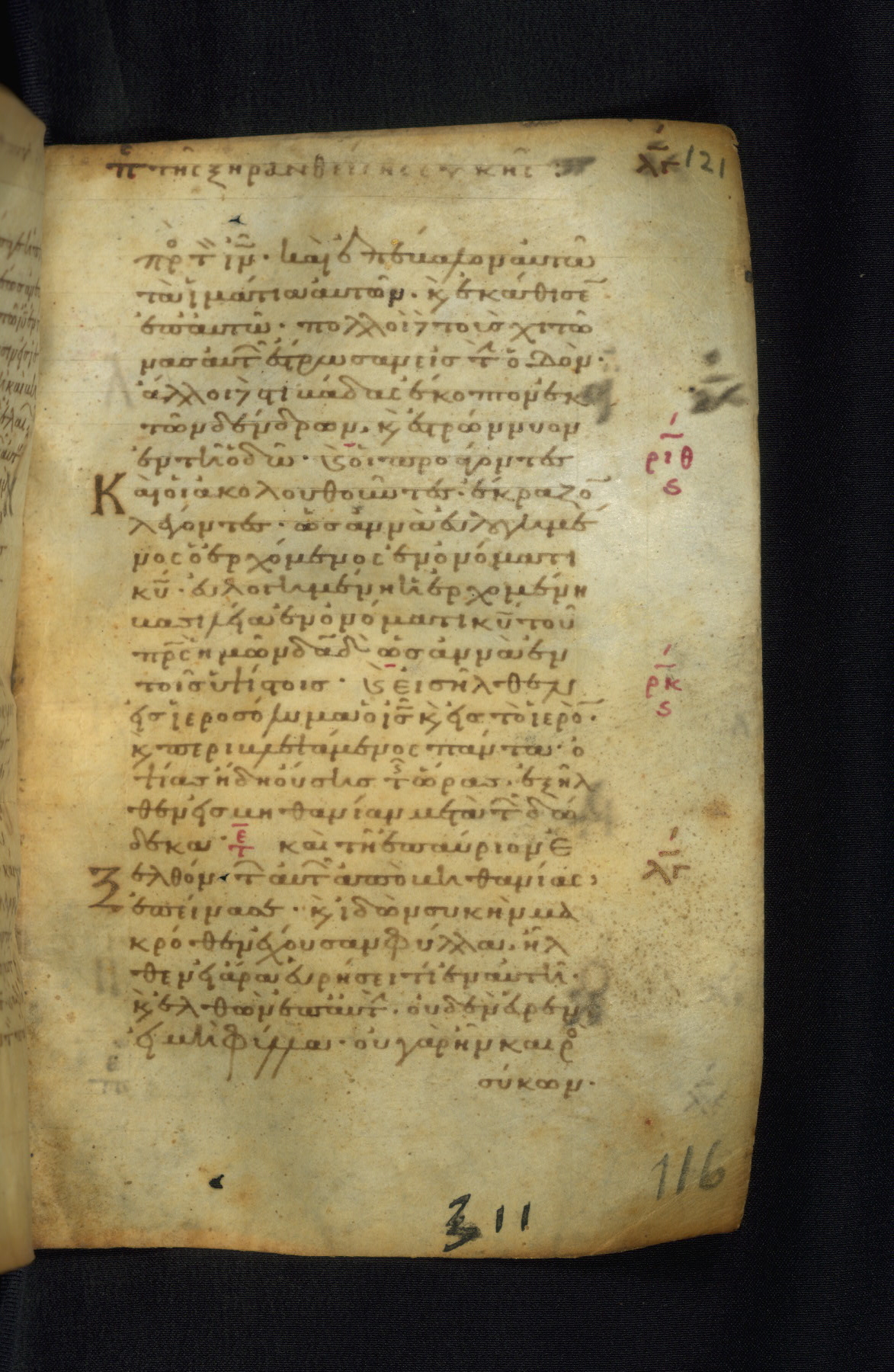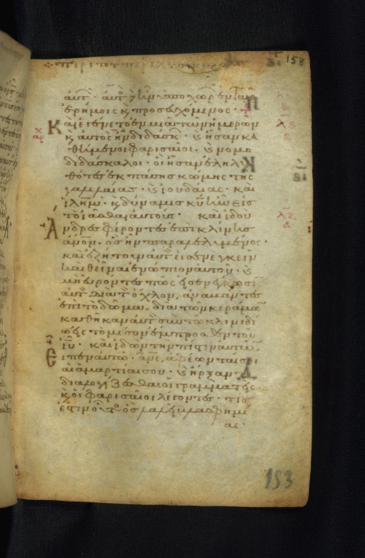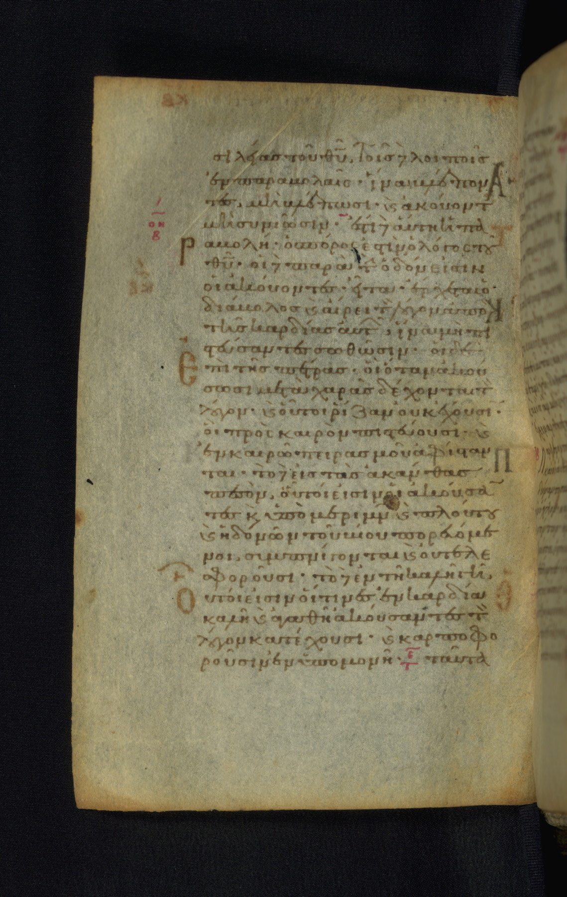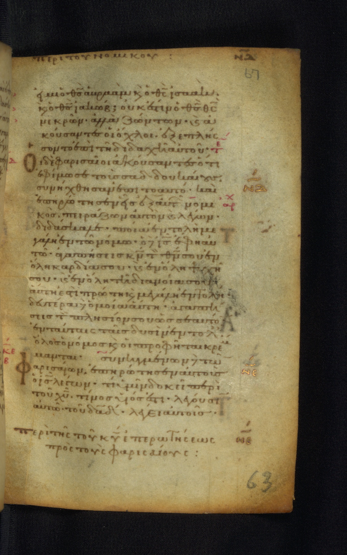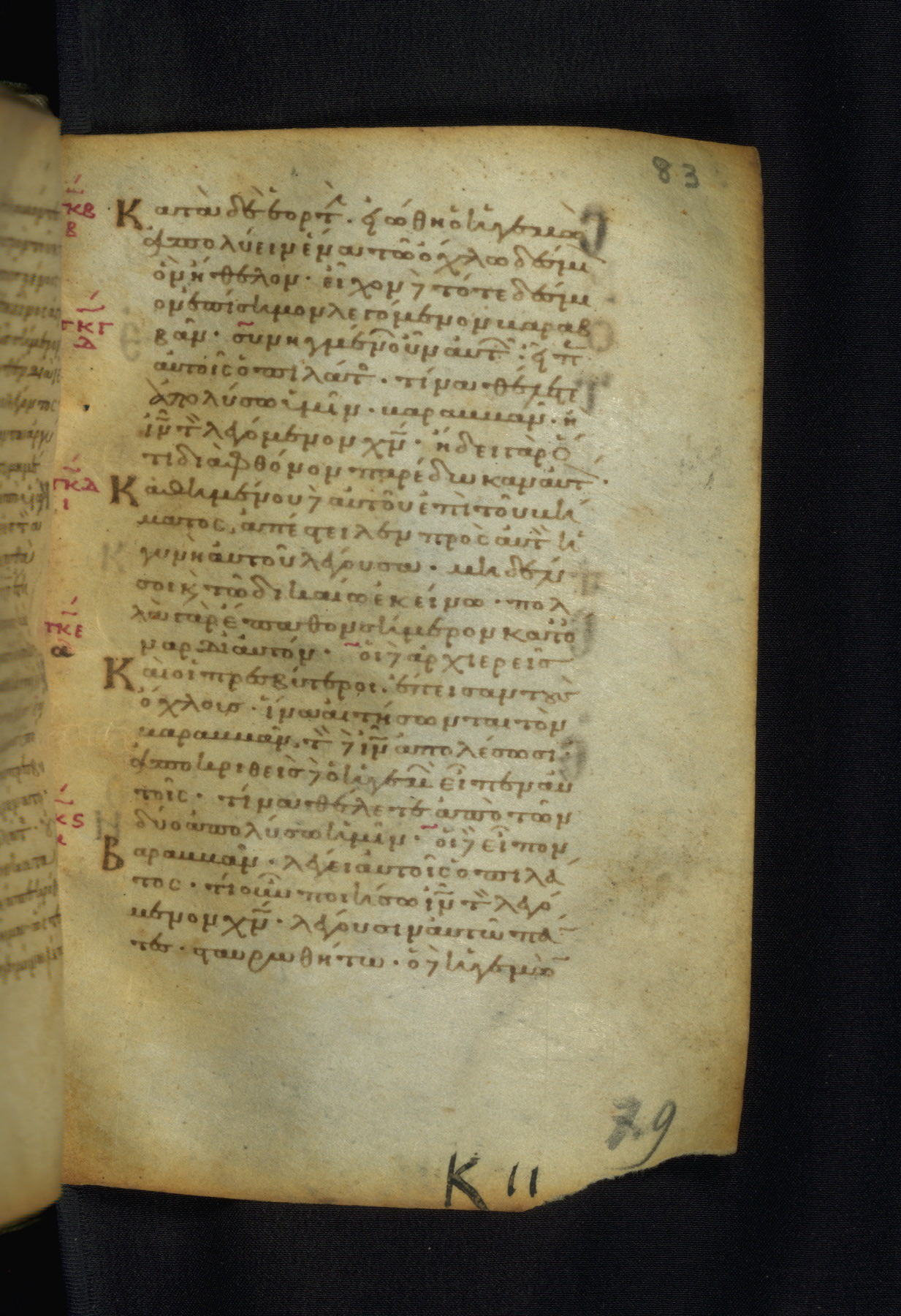 This Gospel book was likely created in the capital of the Byzantine Empire, Constantinople, in the eleventh century. The manuscript is remarkable on account of its exceptionally small size, as well as the high quality of its script and miniatures. Its extensive image cycle includes six full-page miniatures, four half-page miniatures, four historiated initials, and marginalia.