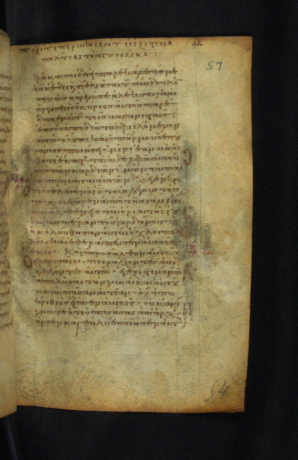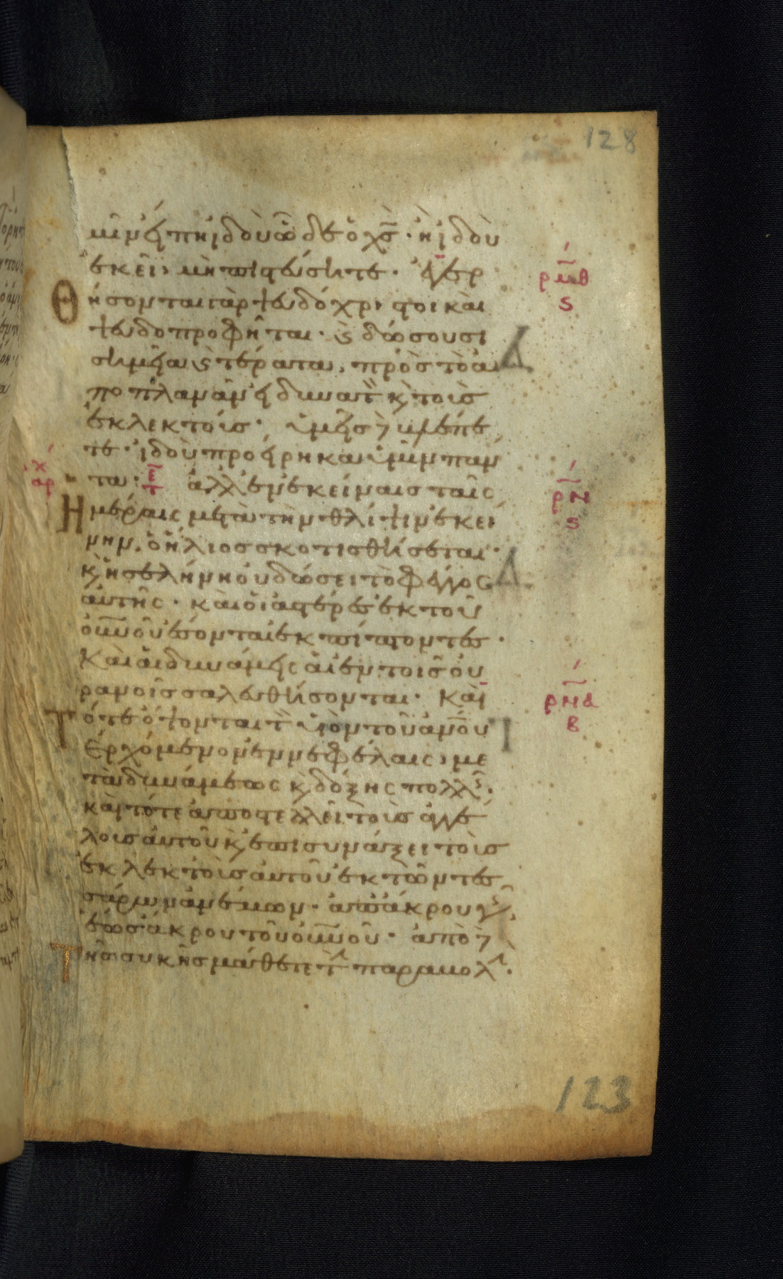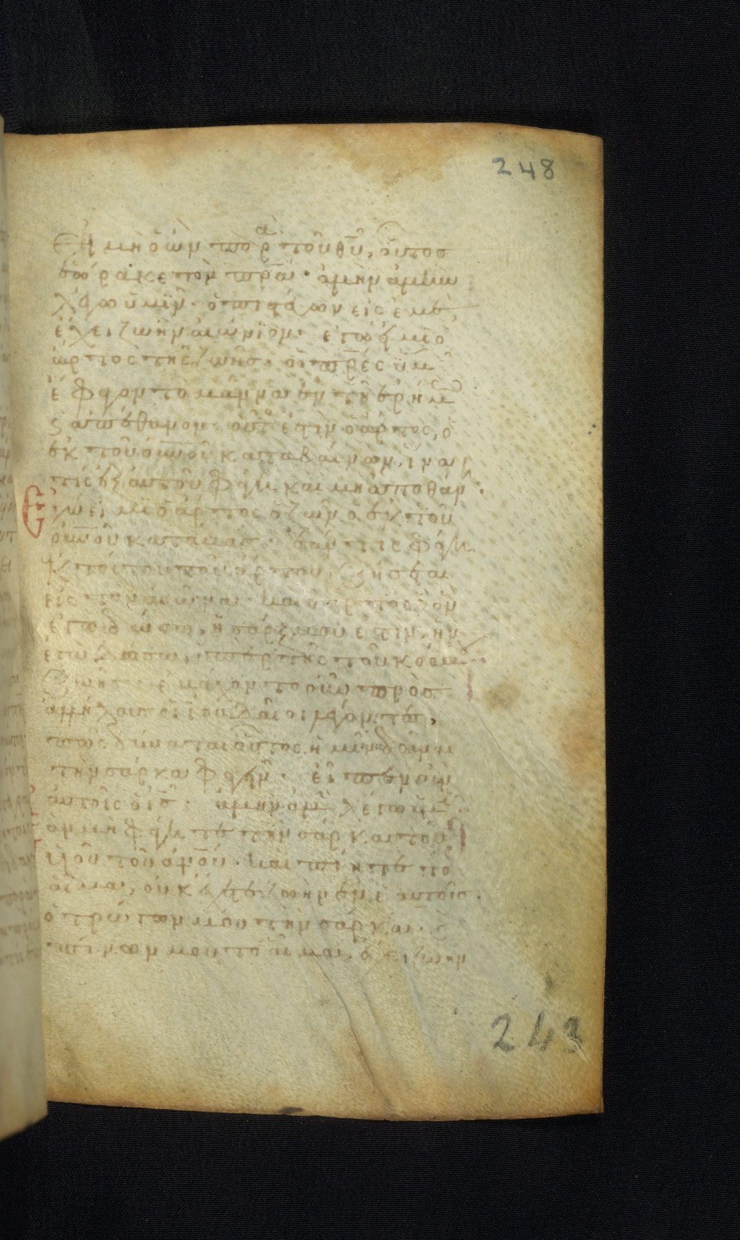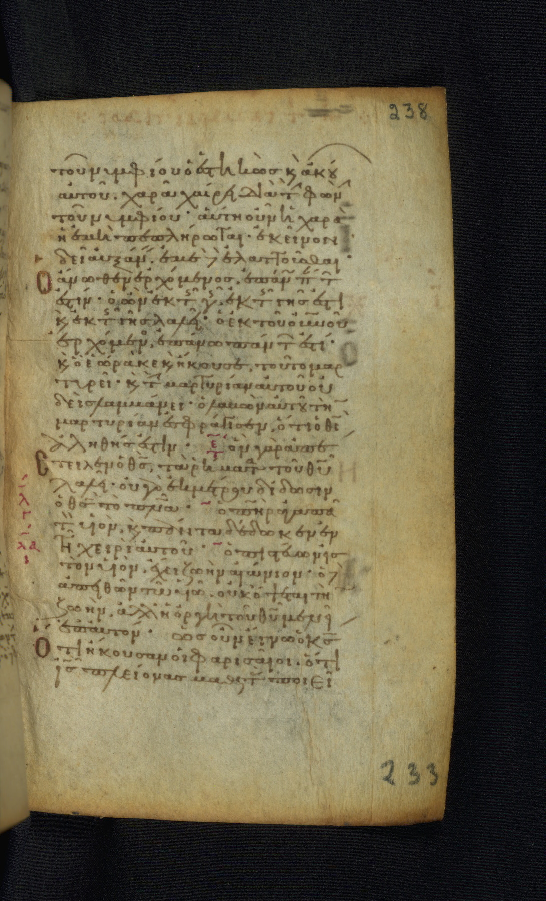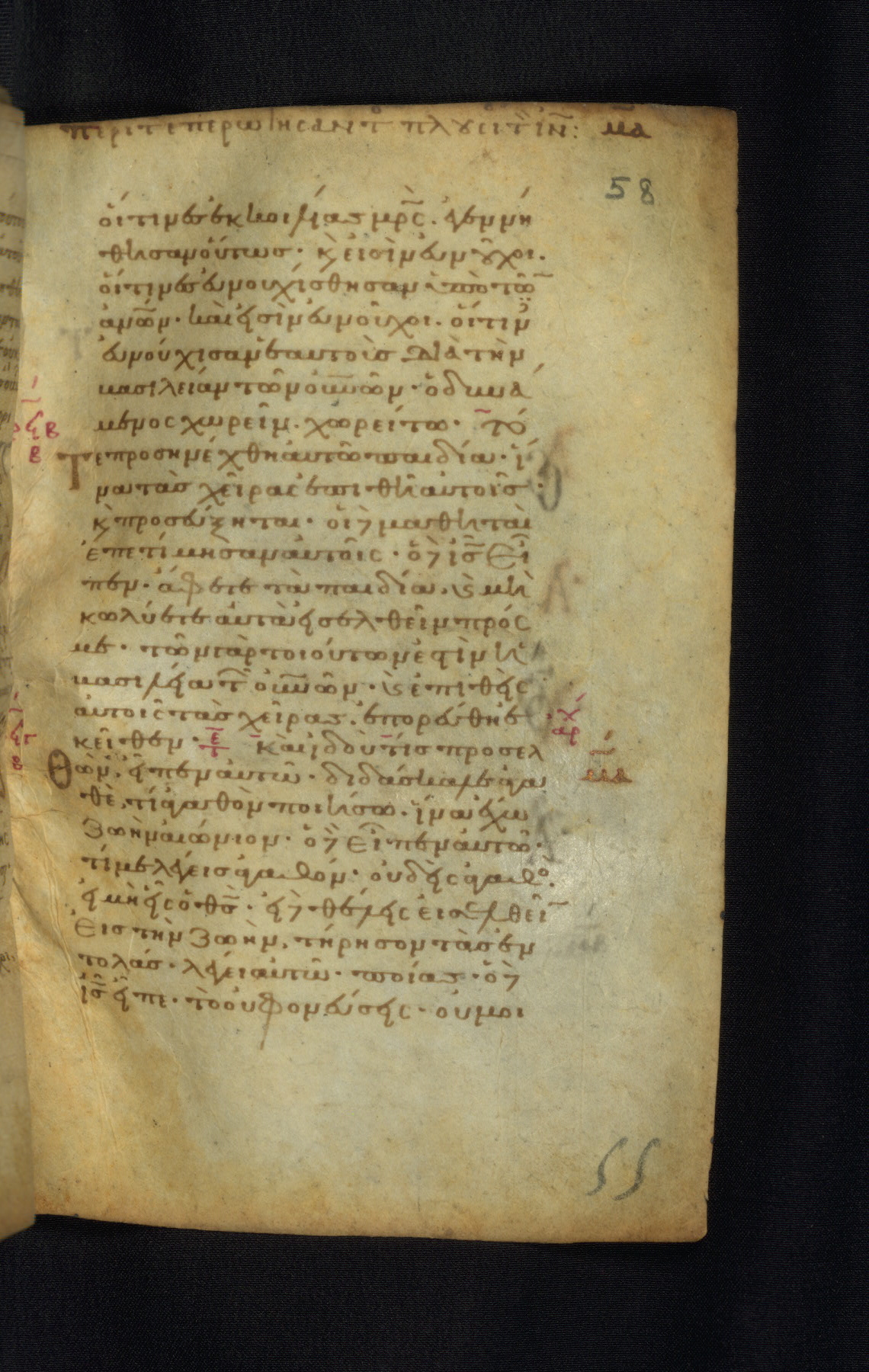 This Gospel book was likely created in the capital of the Byzantine Empire, Constantinople, in the eleventh century. The manuscript is remarkable on account of its exceptionally small size, as well as the high quality of its script and miniatures. Its extensive image cycle includes six full-page miniatures, four half-page miniatures, four historiated initials, and marginalia.
