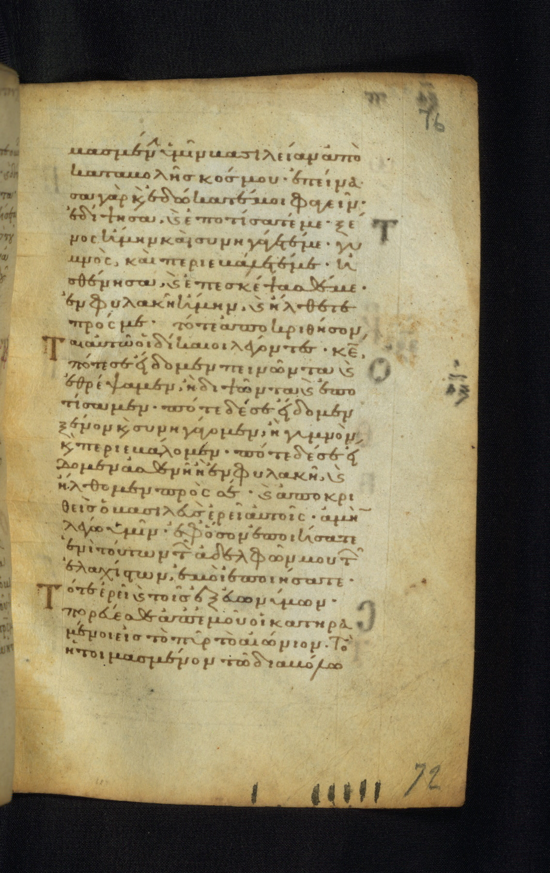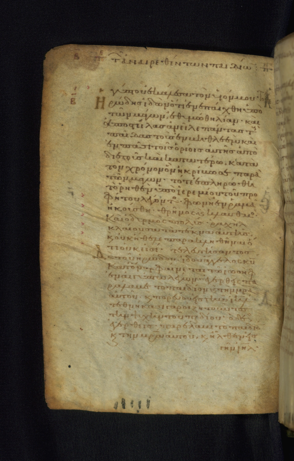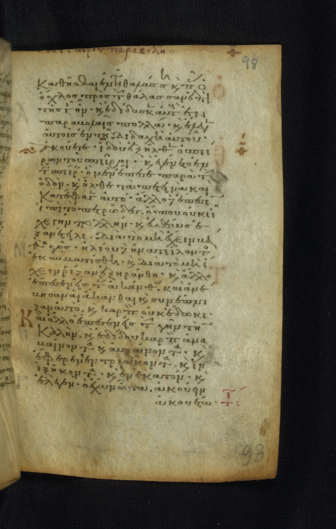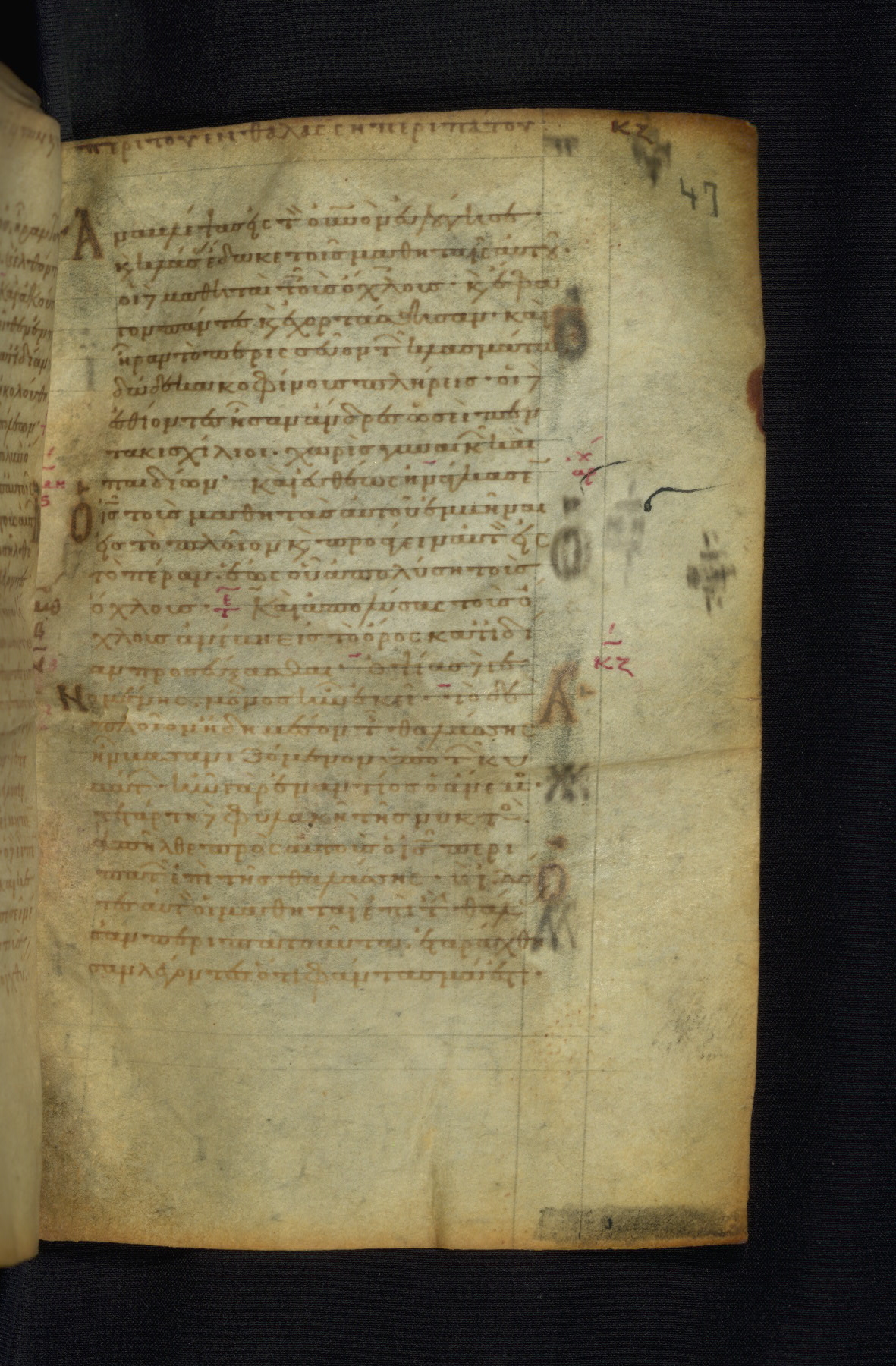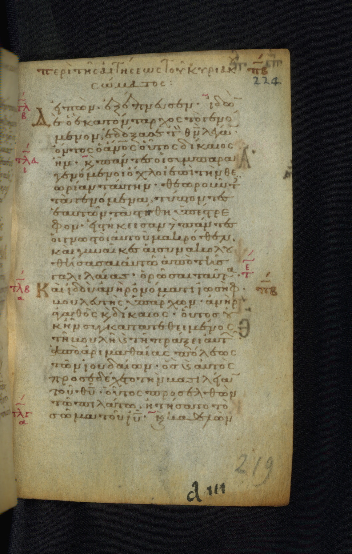 This Gospel book was likely created in the capital of the Byzantine Empire, Constantinople, in the eleventh century. The manuscript is remarkable on account of its exceptionally small size, as well as the high quality of its script and miniatures. Its extensive image cycle includes six full-page miniatures, four half-page miniatures, four historiated initials, and marginalia.