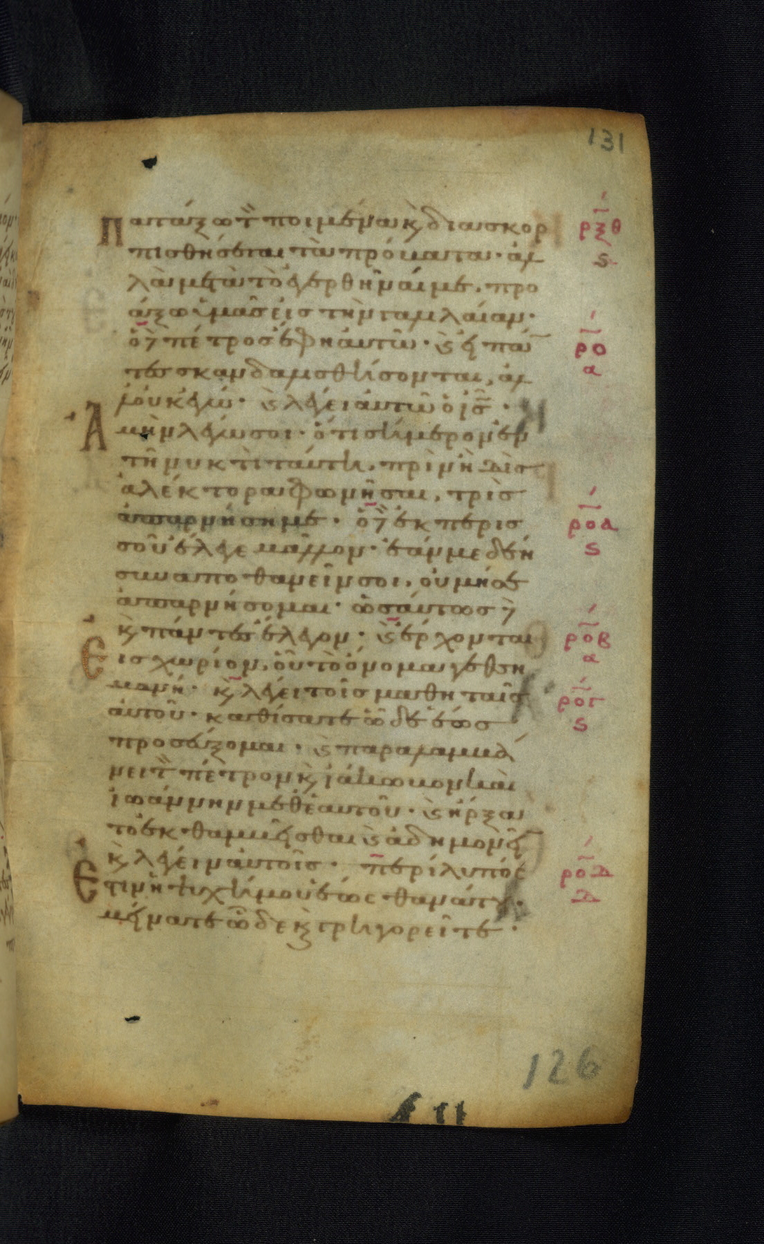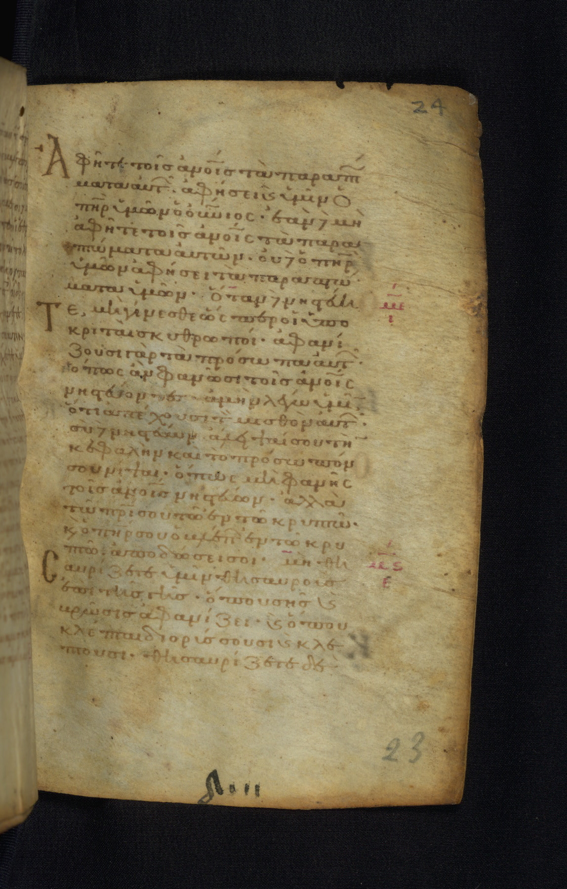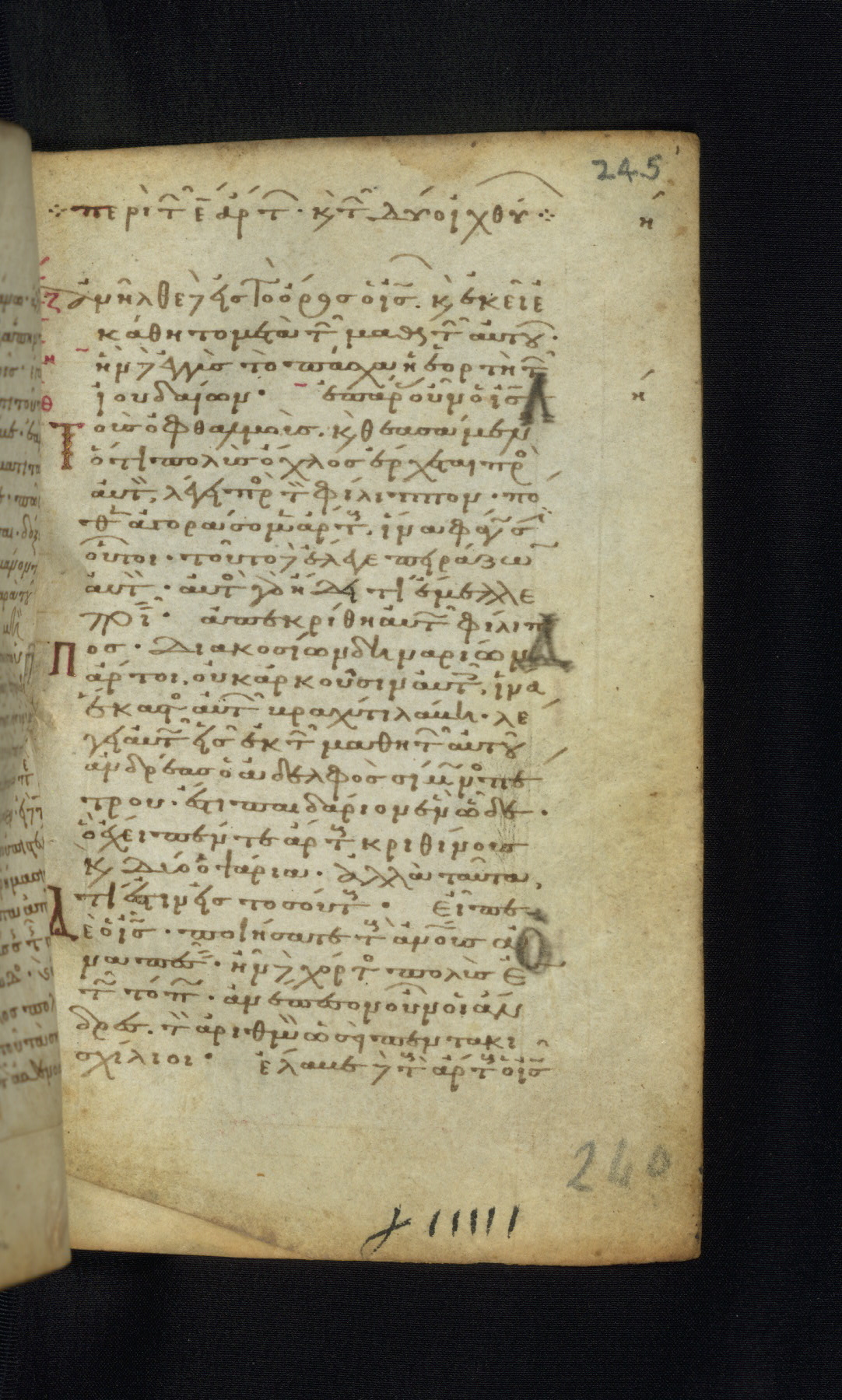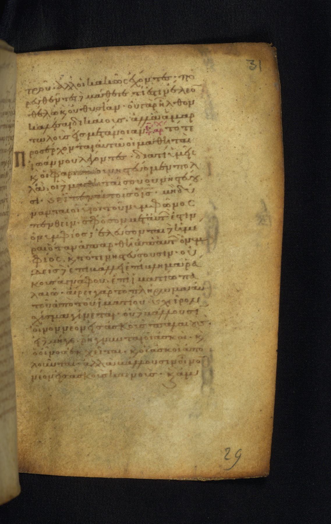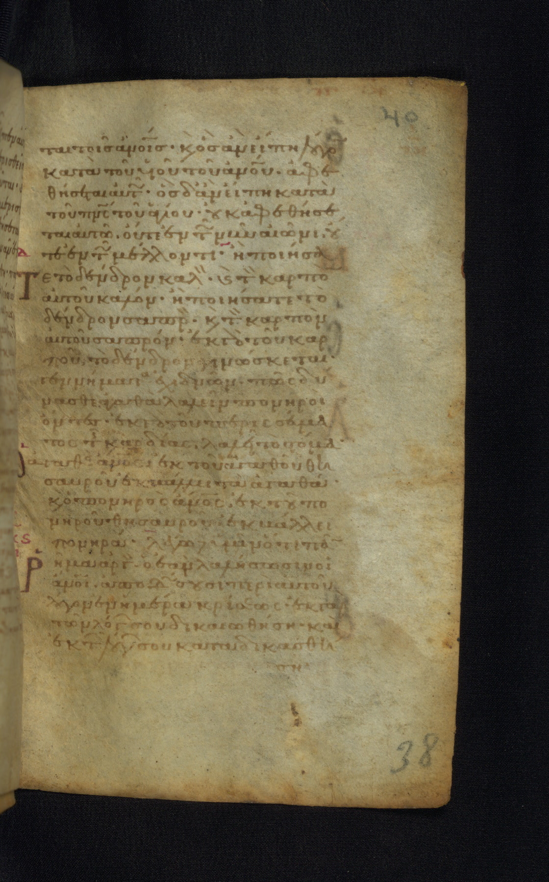 This Gospel book was likely created in the capital of the Byzantine Empire, Constantinople, in the eleventh century. The manuscript is remarkable on account of its exceptionally small size, as well as the high quality of its script and miniatures. Its extensive image cycle includes six full-page miniatures, four half-page miniatures, four historiated initials, and marginalia.