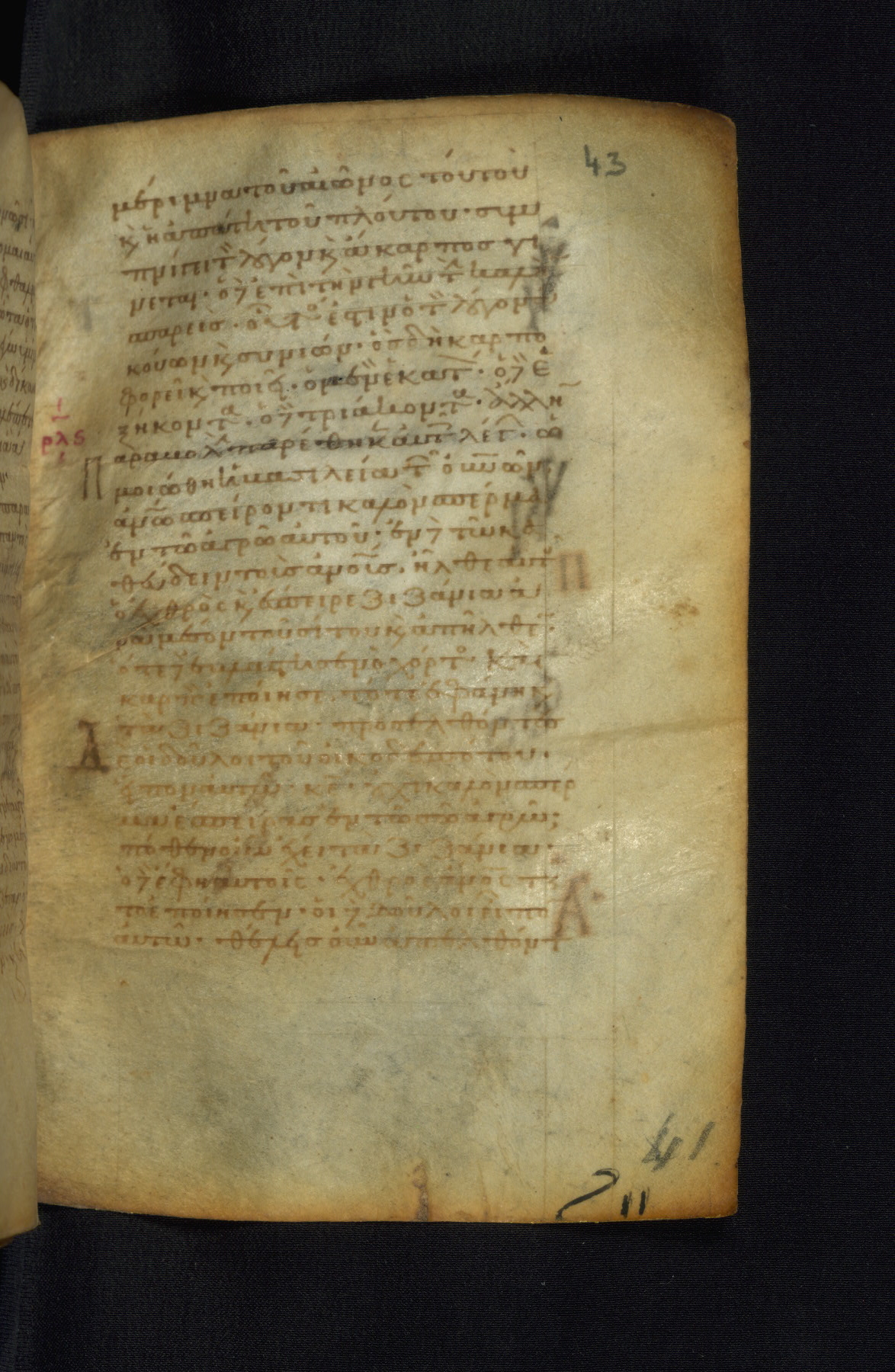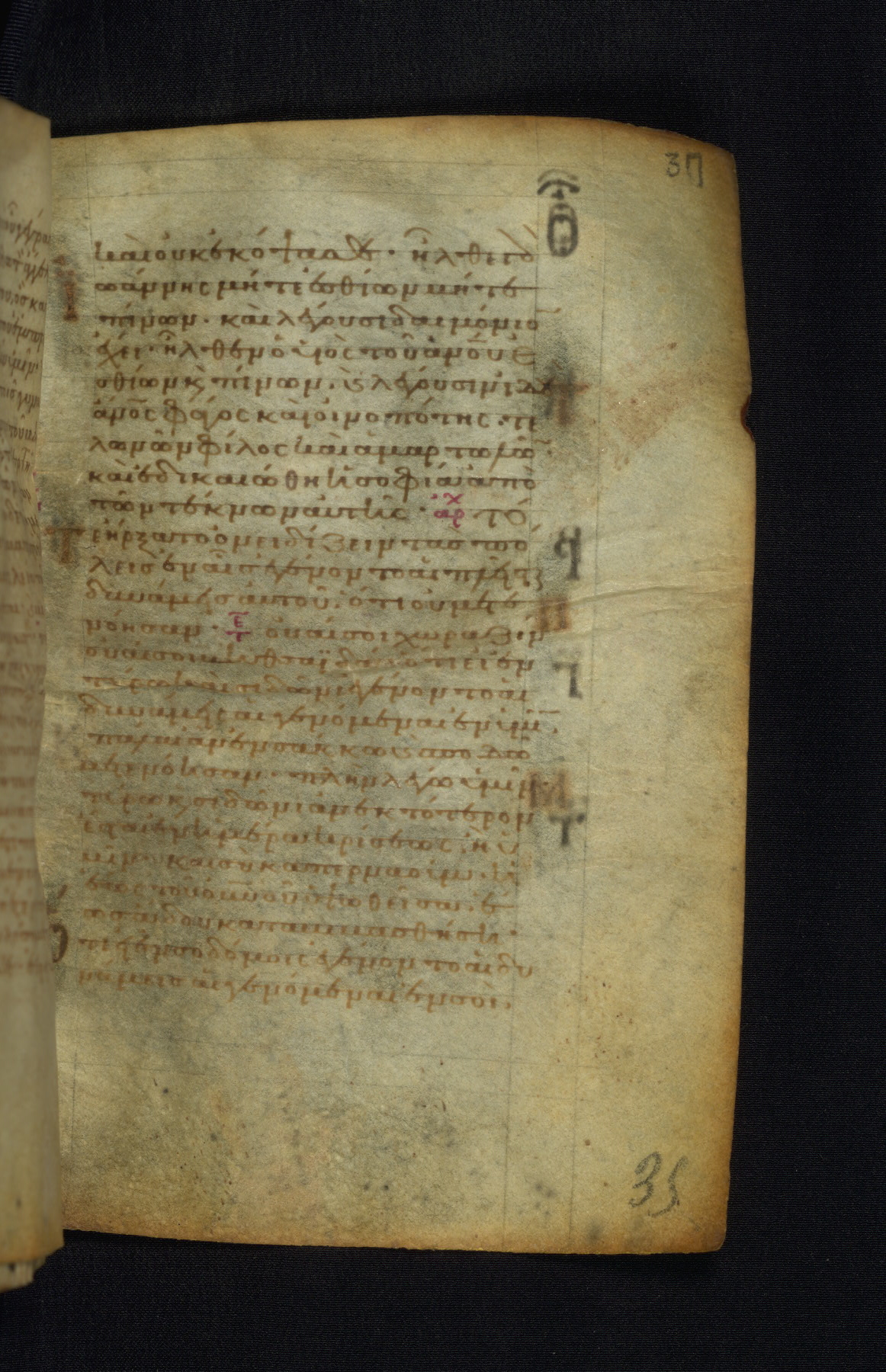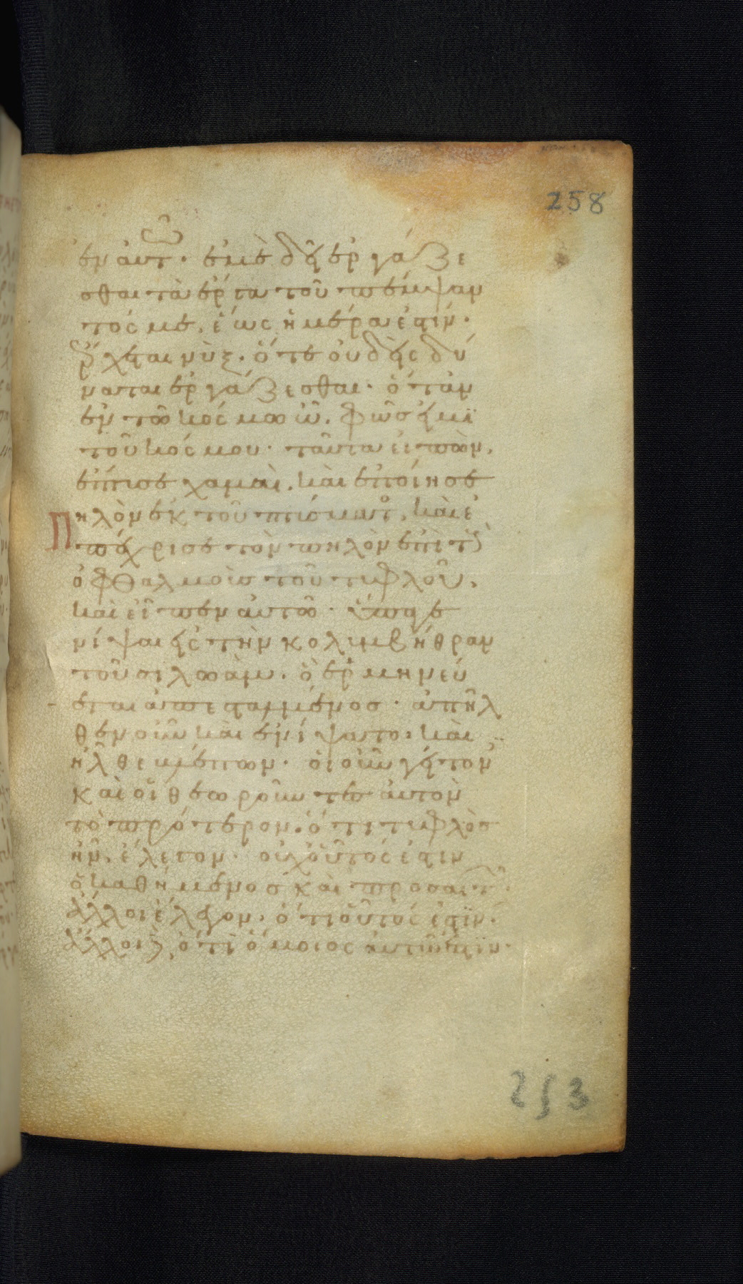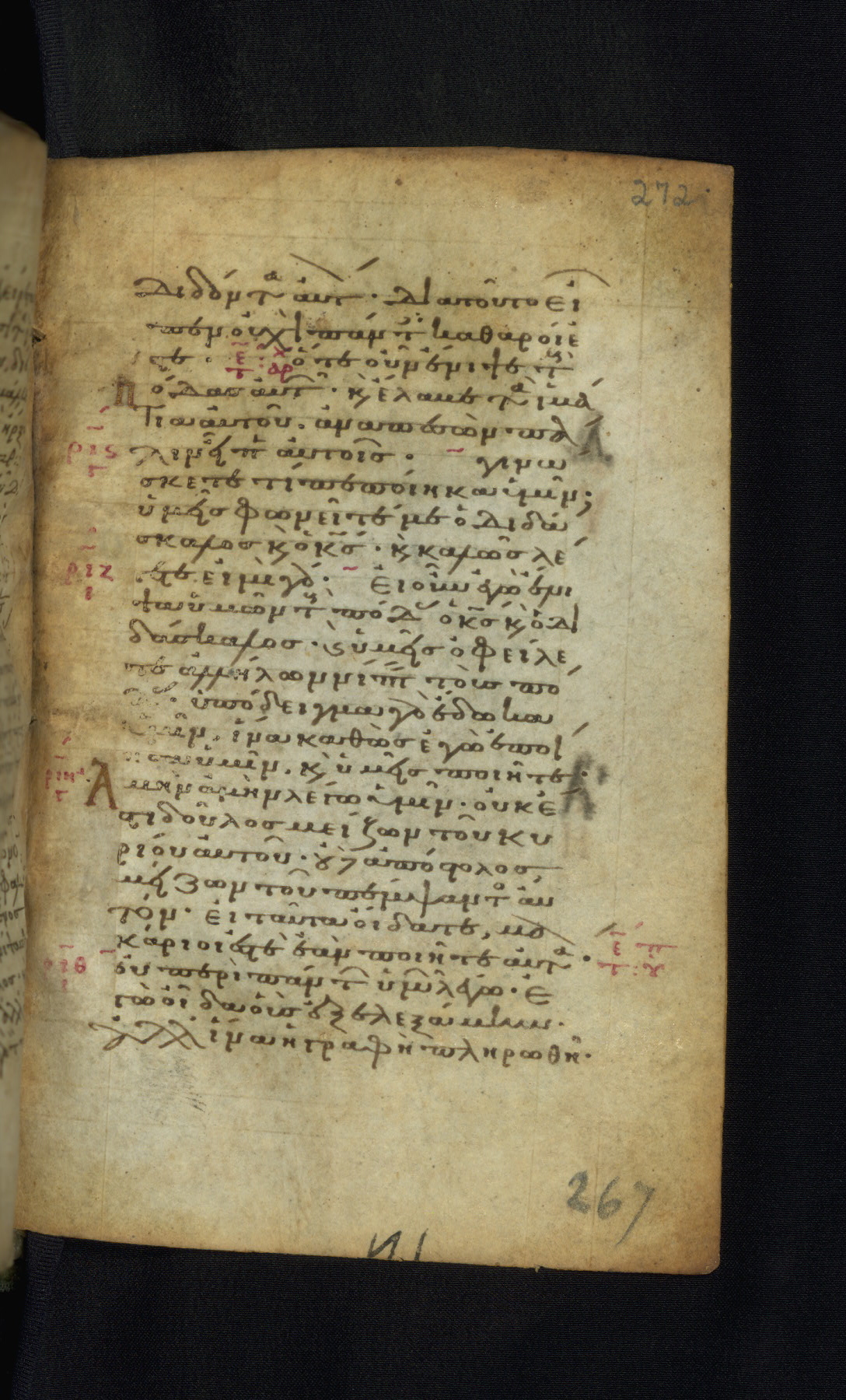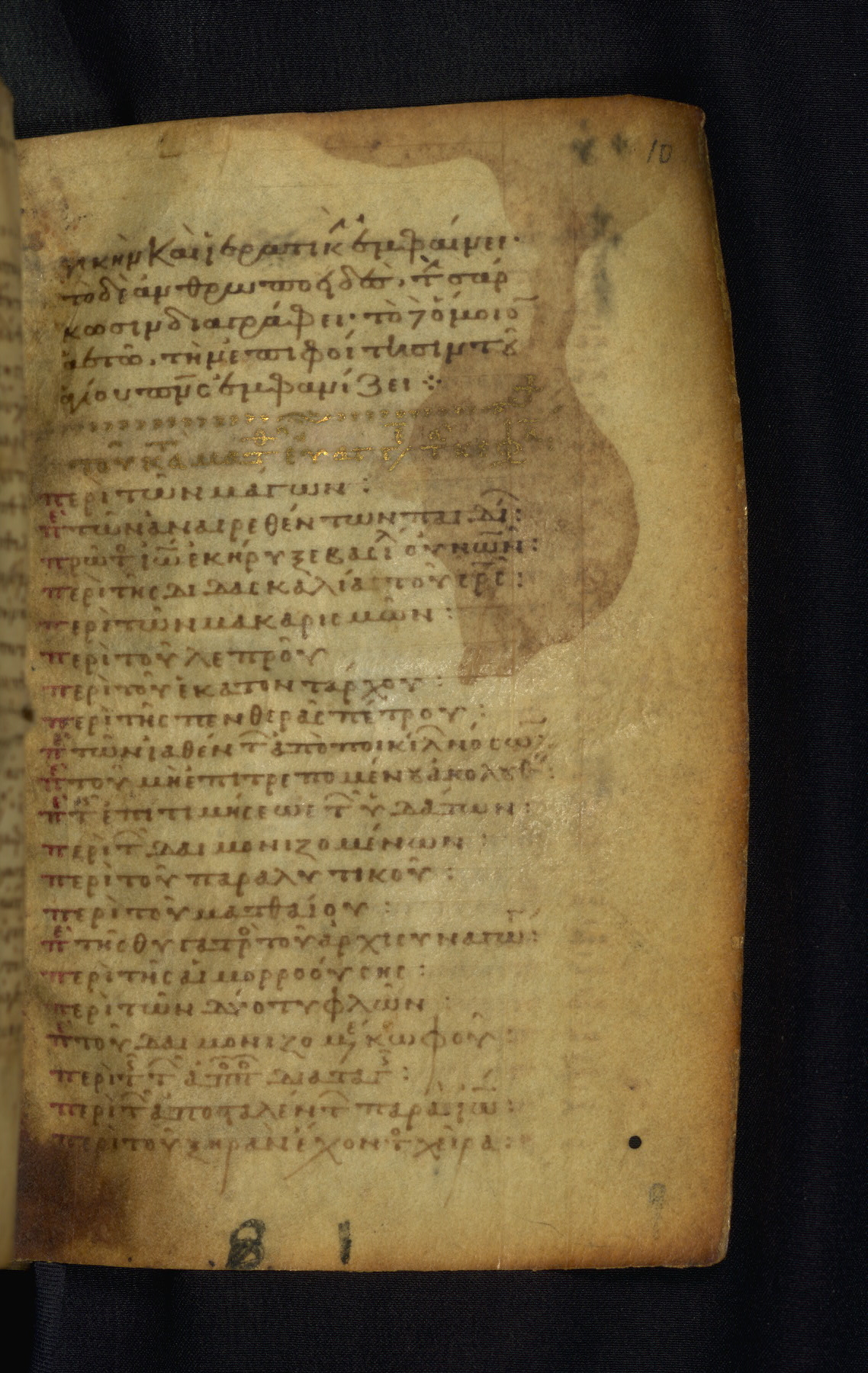 This Gospel book was likely created in the capital of the Byzantine Empire, Constantinople, in the eleventh century. The manuscript is remarkable on account of its exceptionally small size, as well as the high quality of its script and miniatures. Its extensive image cycle includes six full-page miniatures, four half-page miniatures, four historiated initials, and marginalia.