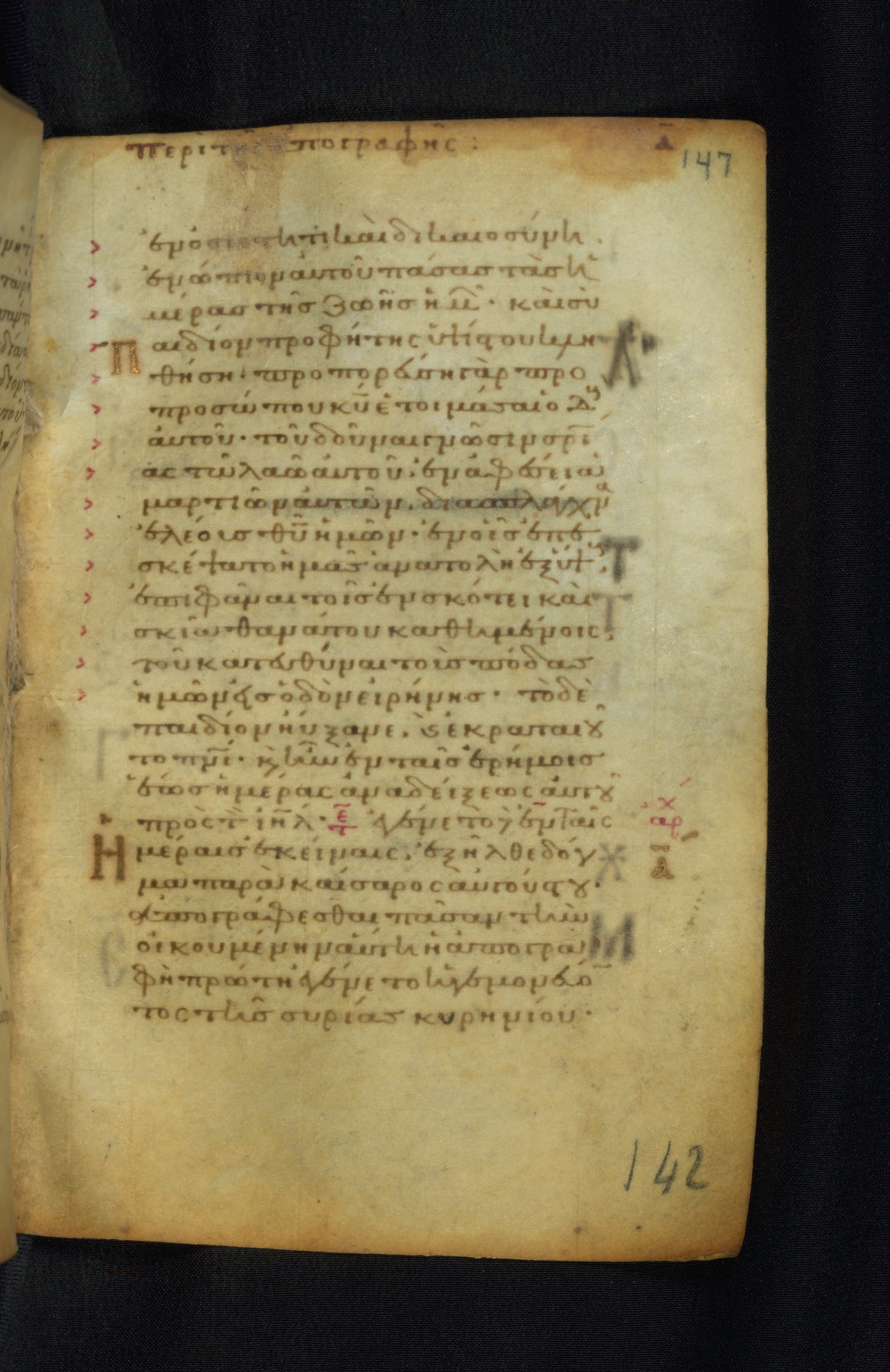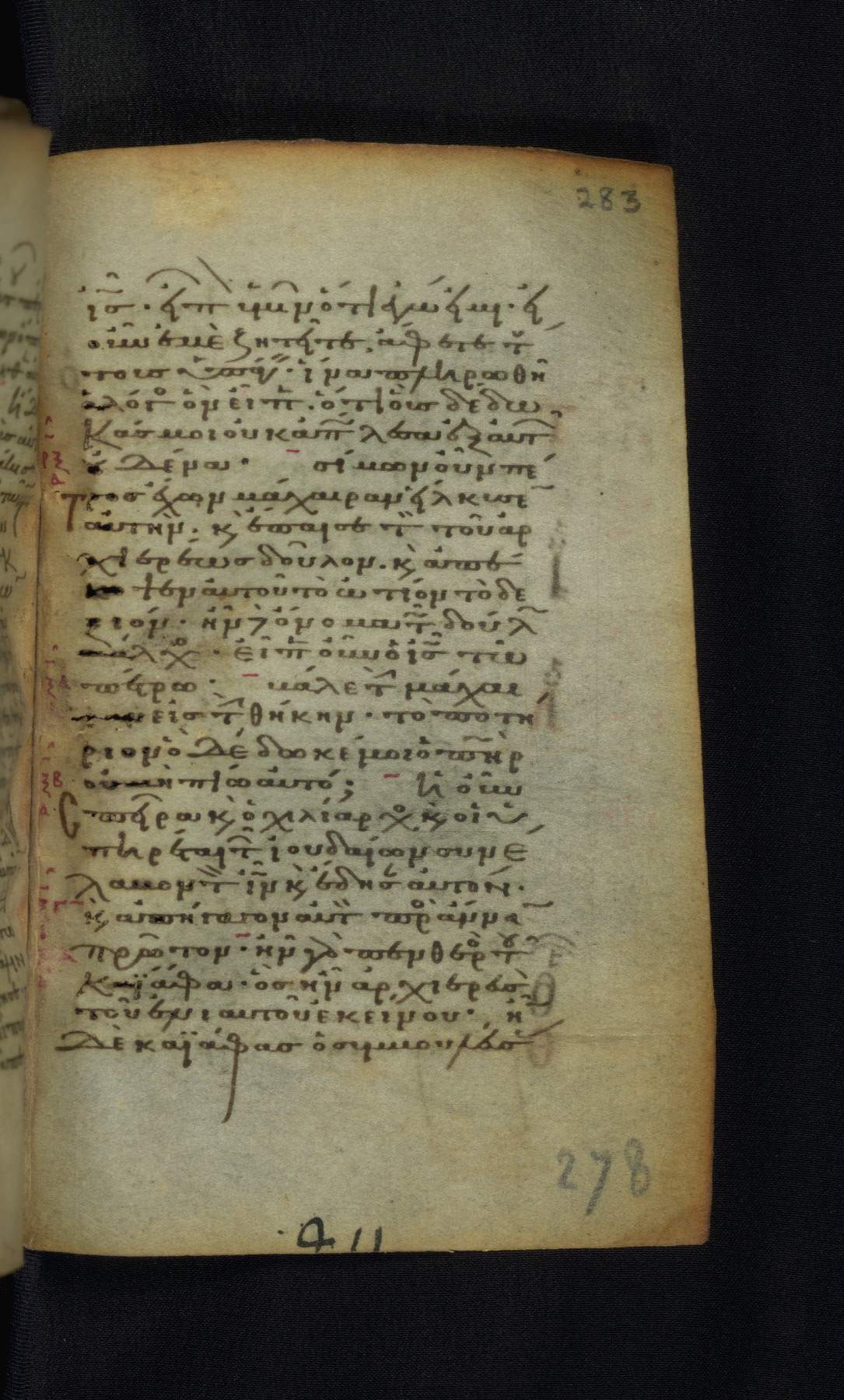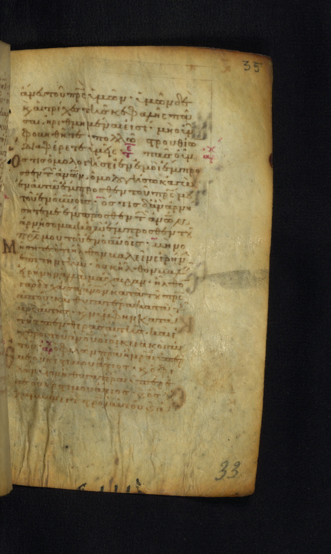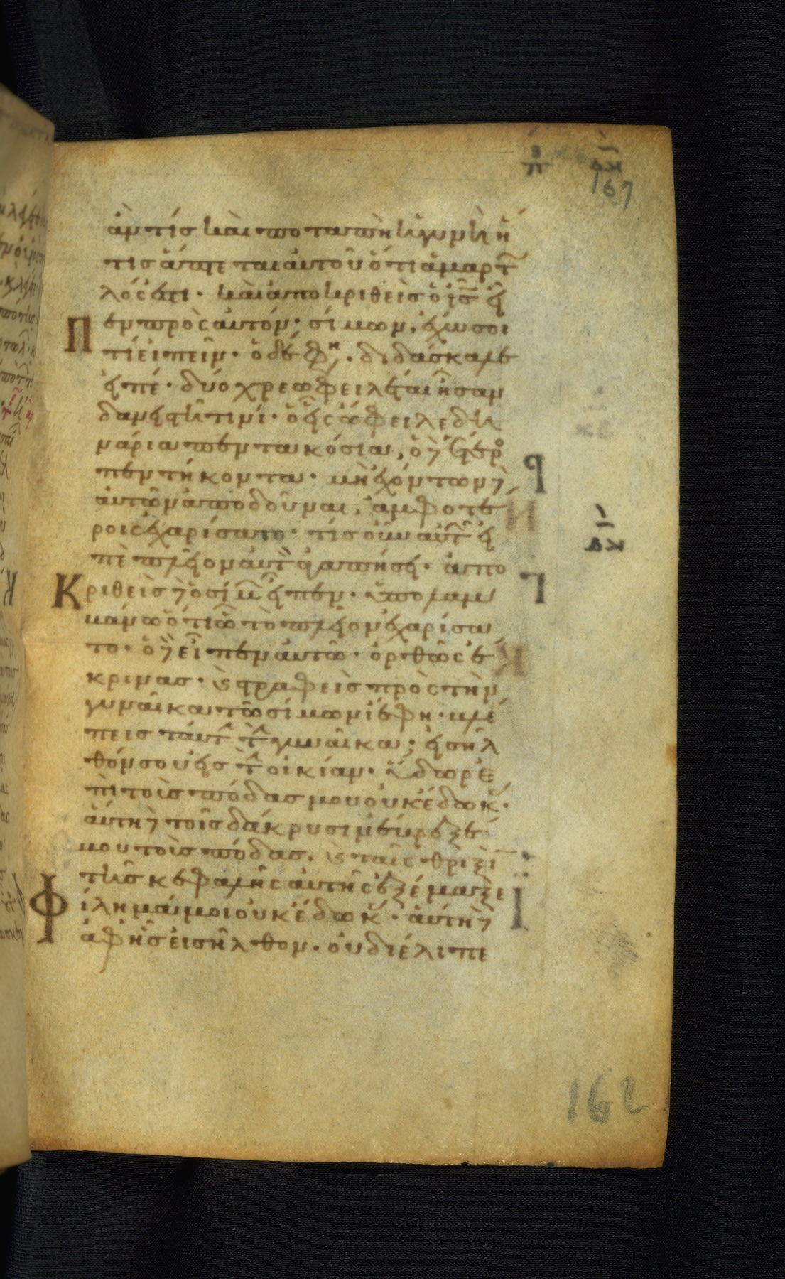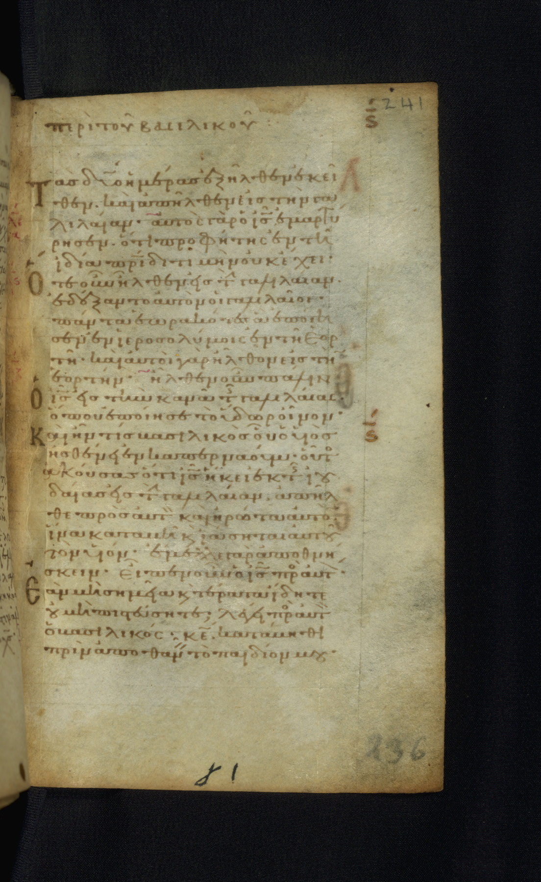 This Gospel book was likely created in the capital of the Byzantine Empire, Constantinople, in the eleventh century. The manuscript is remarkable on account of its exceptionally small size, as well as the high quality of its script and miniatures. Its extensive image cycle includes six full-page miniatures, four half-page miniatures, four historiated initials, and marginalia.