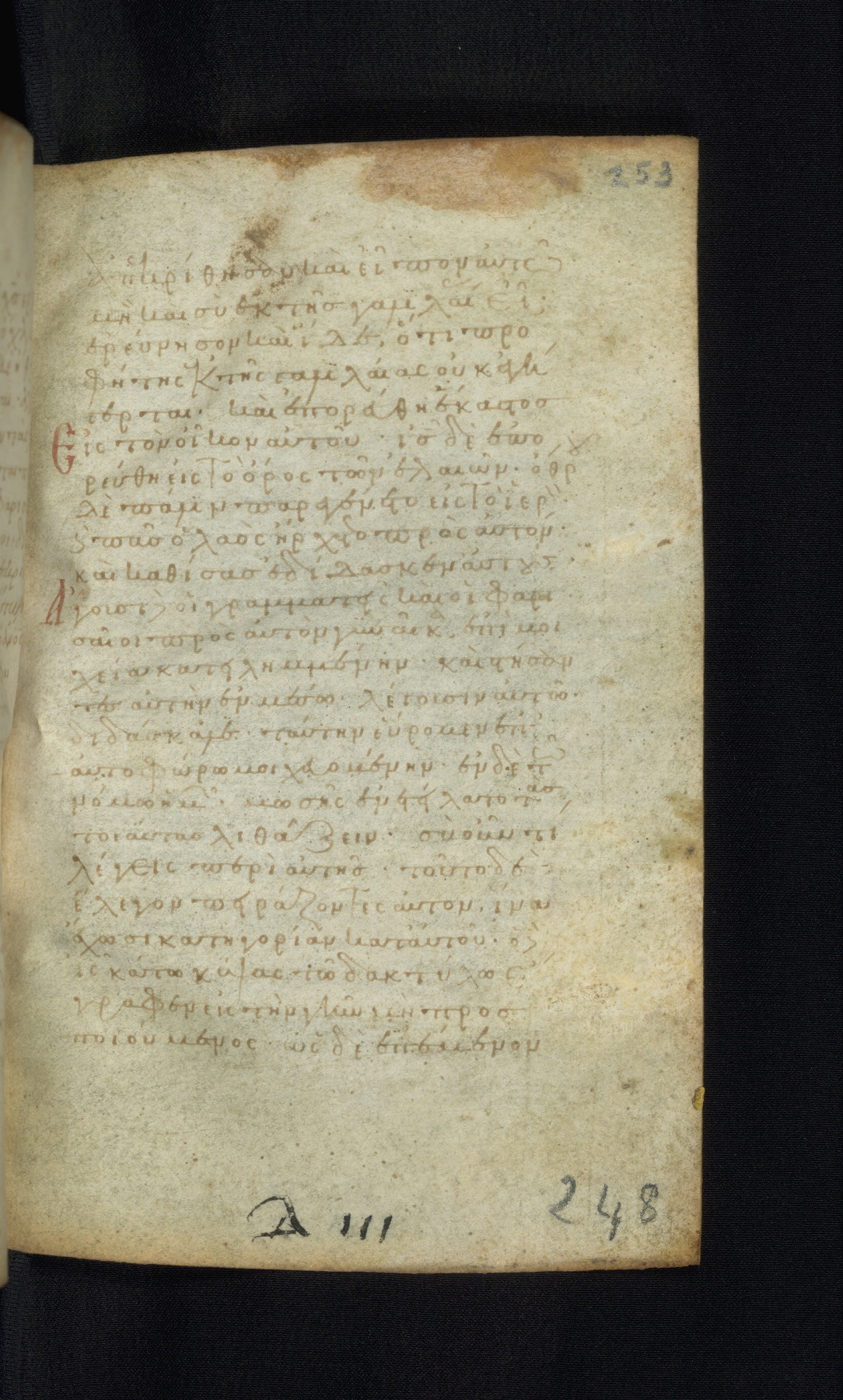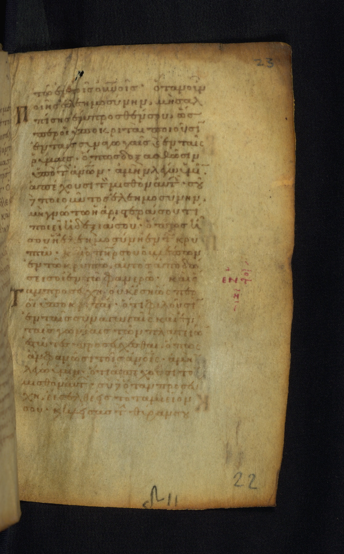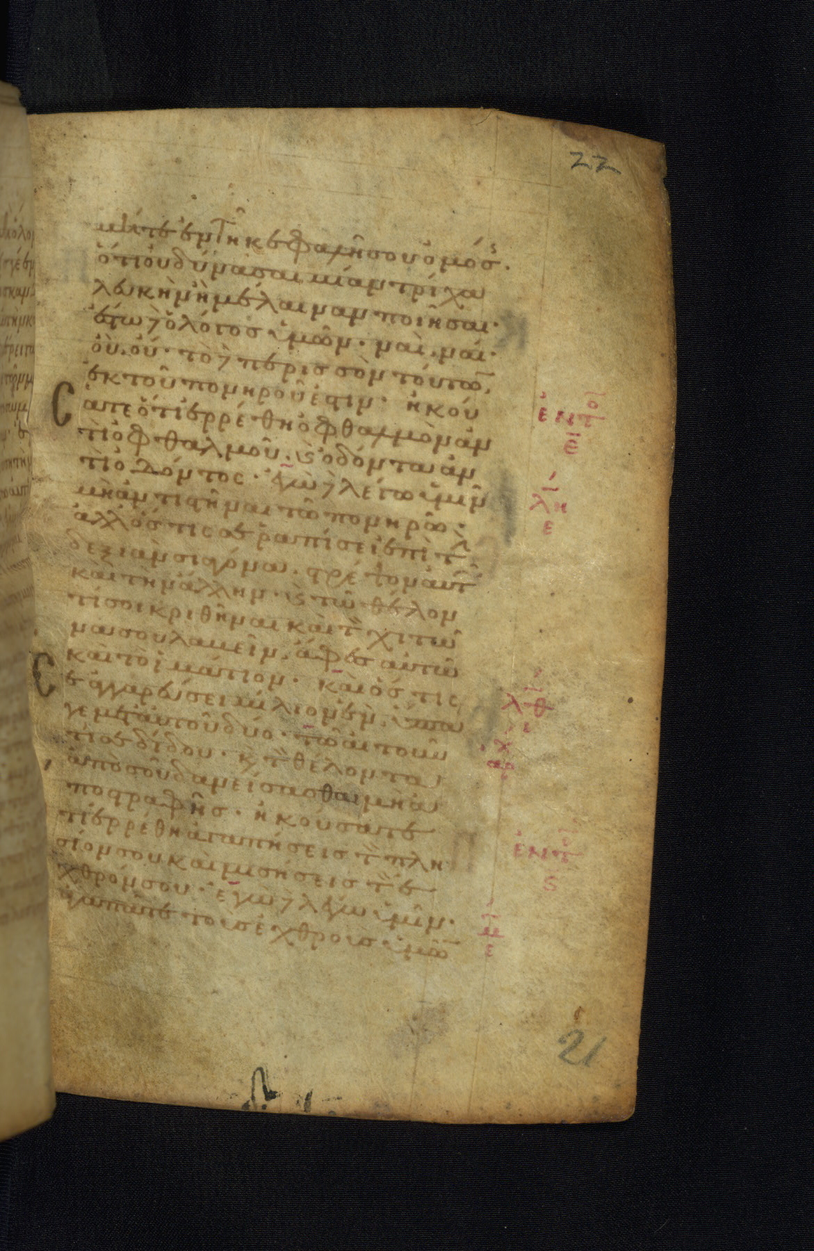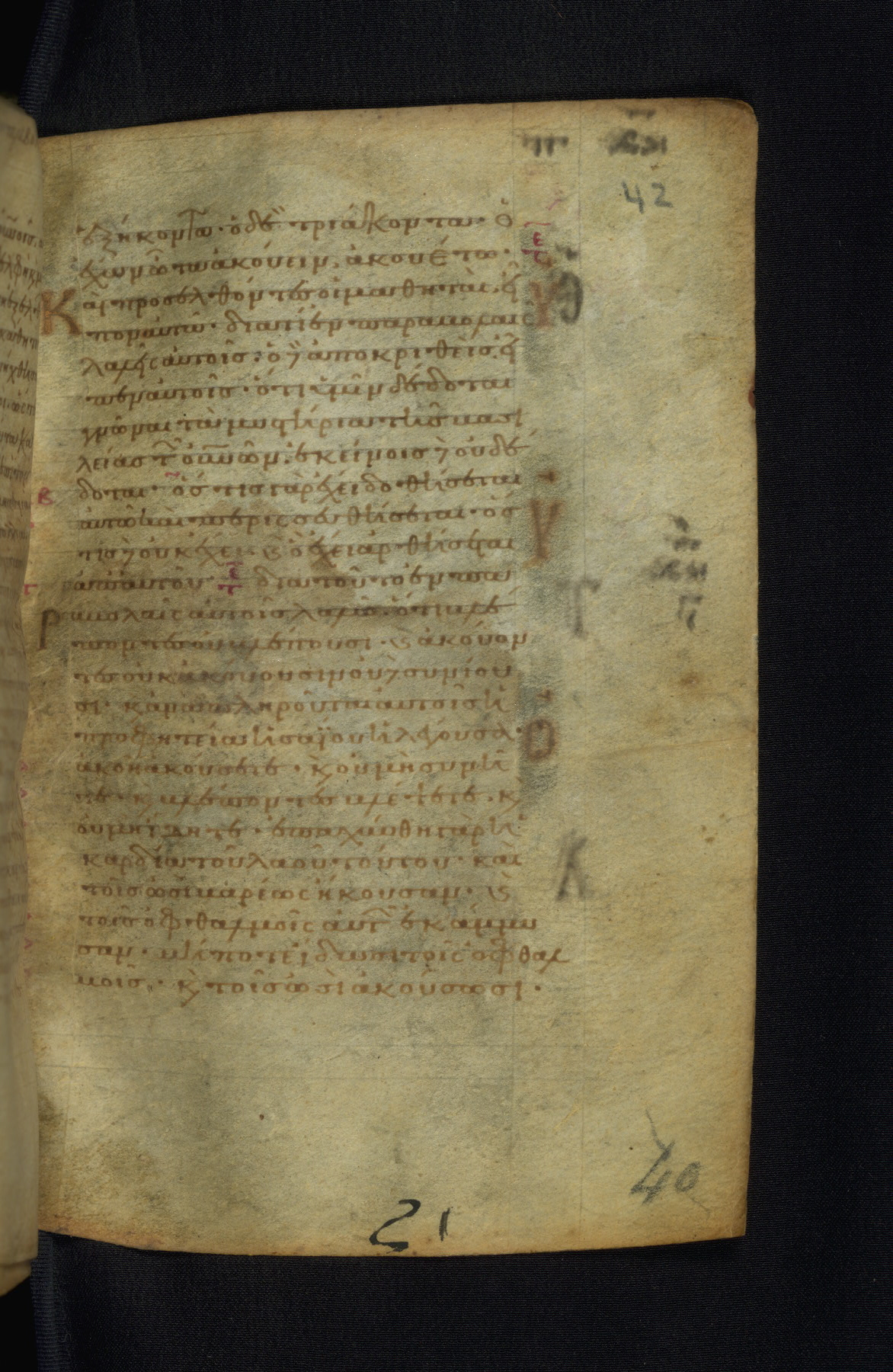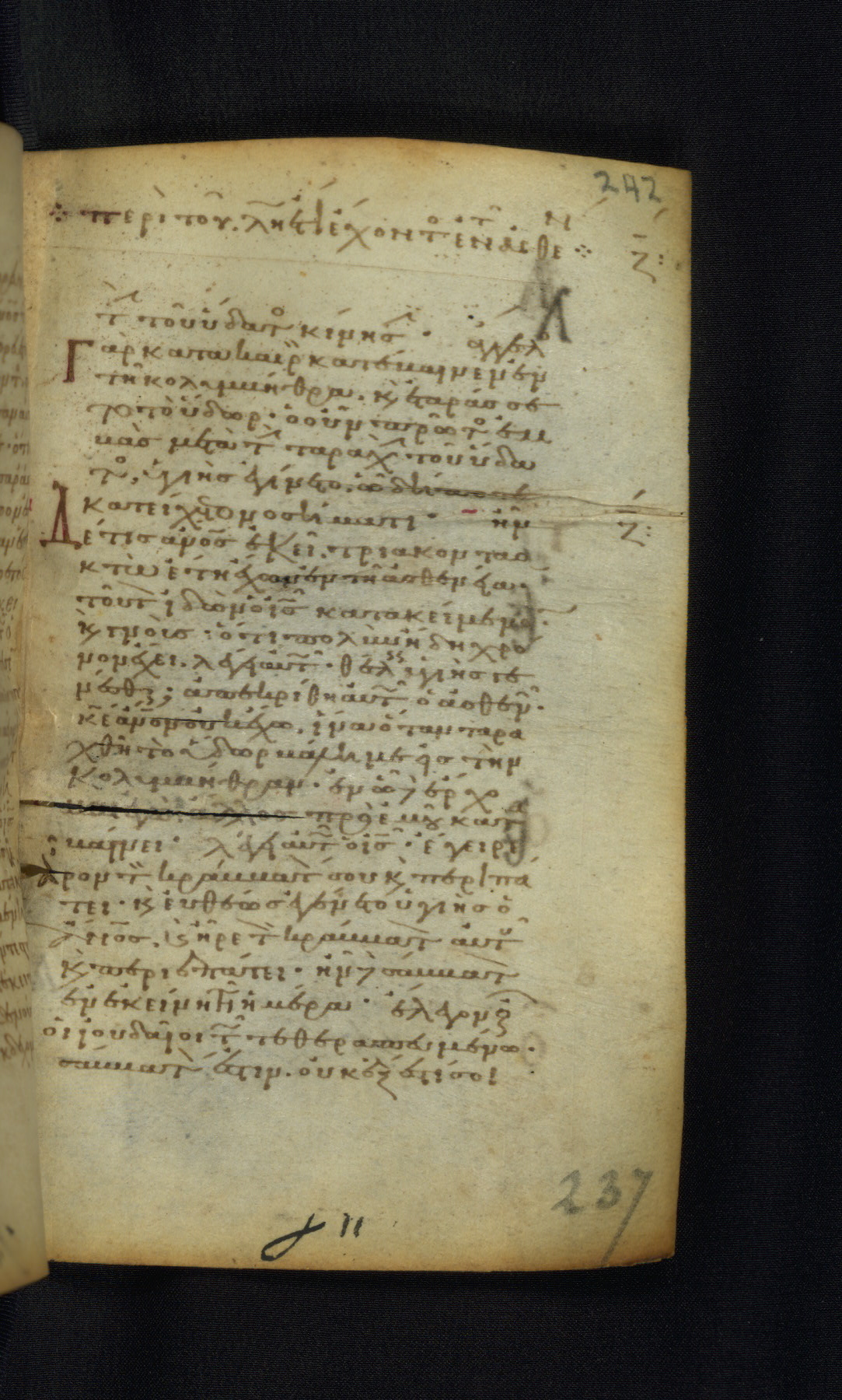 This Gospel book was likely created in the capital of the Byzantine Empire, Constantinople, in the eleventh century. The manuscript is remarkable on account of its exceptionally small size, as well as the high quality of its script and miniatures. Its extensive image cycle includes six full-page miniatures, four half-page miniatures, four historiated initials, and marginalia.