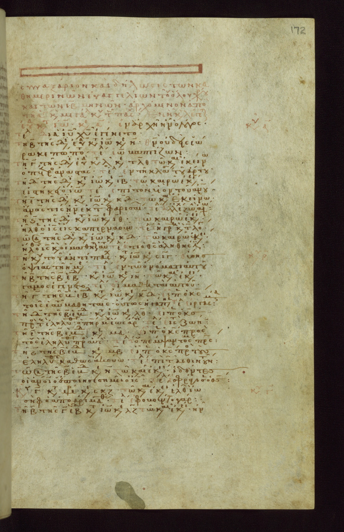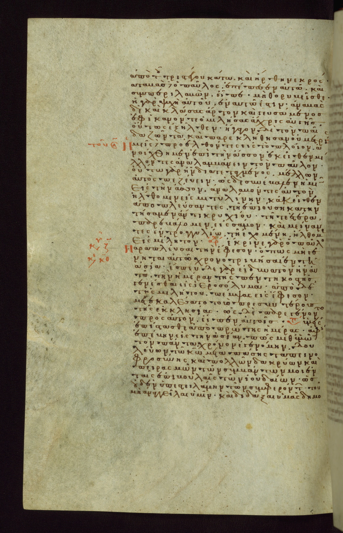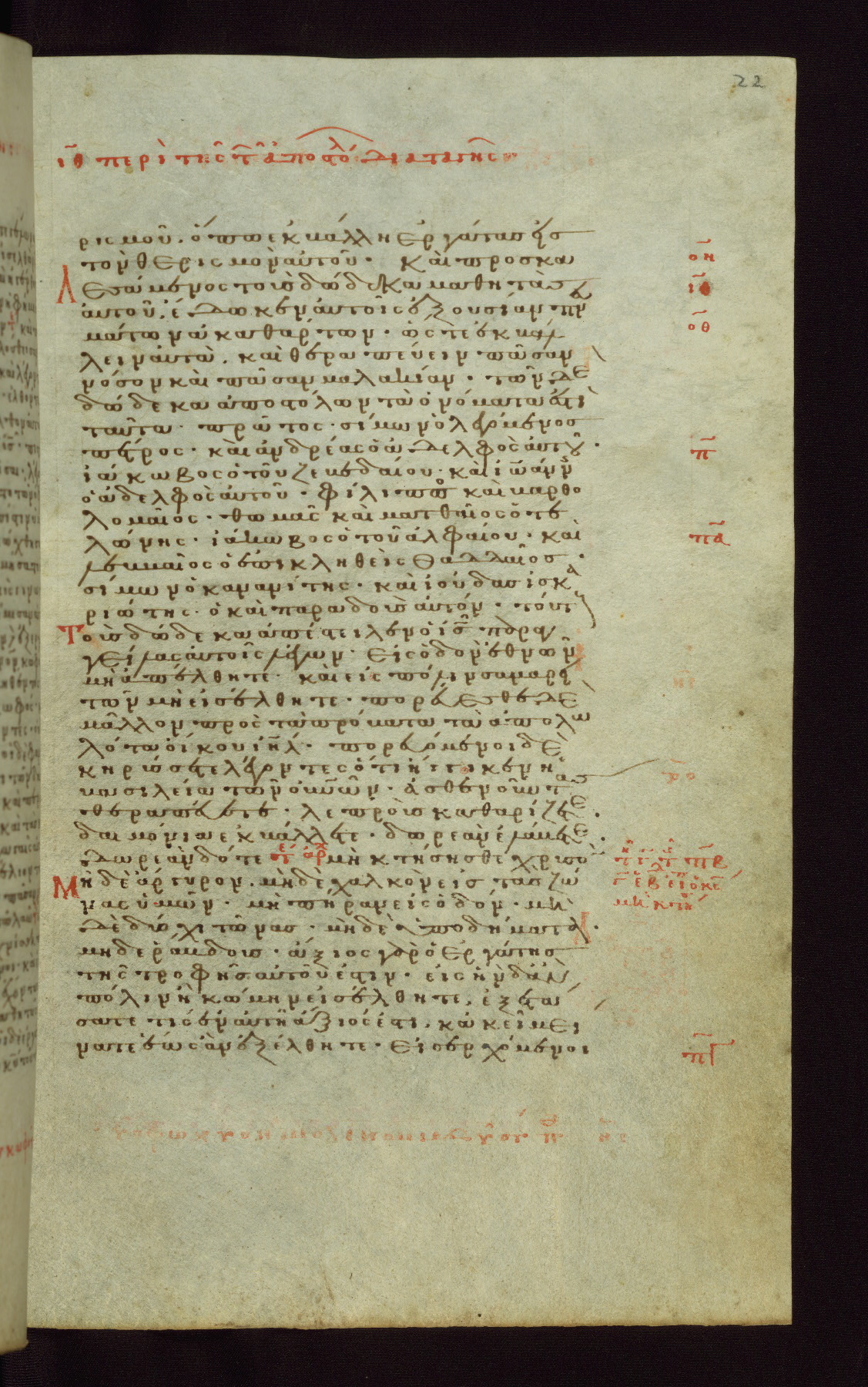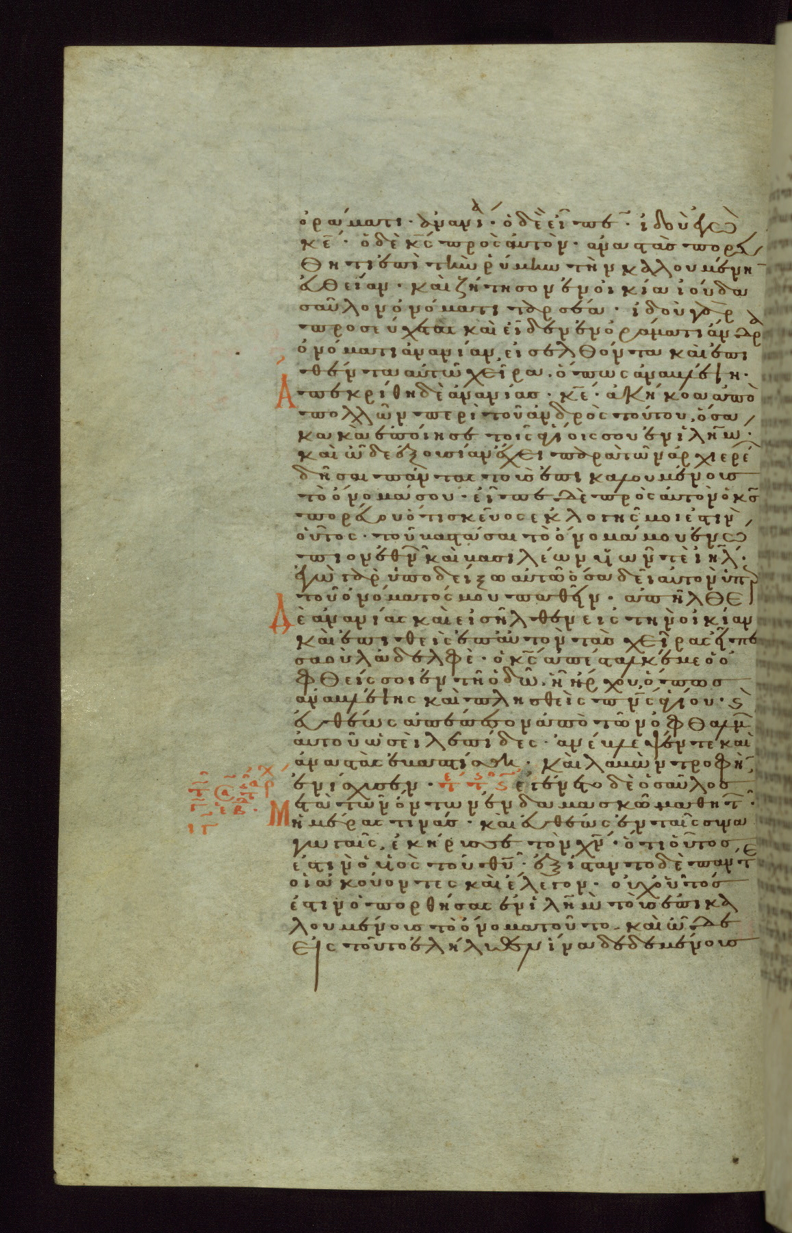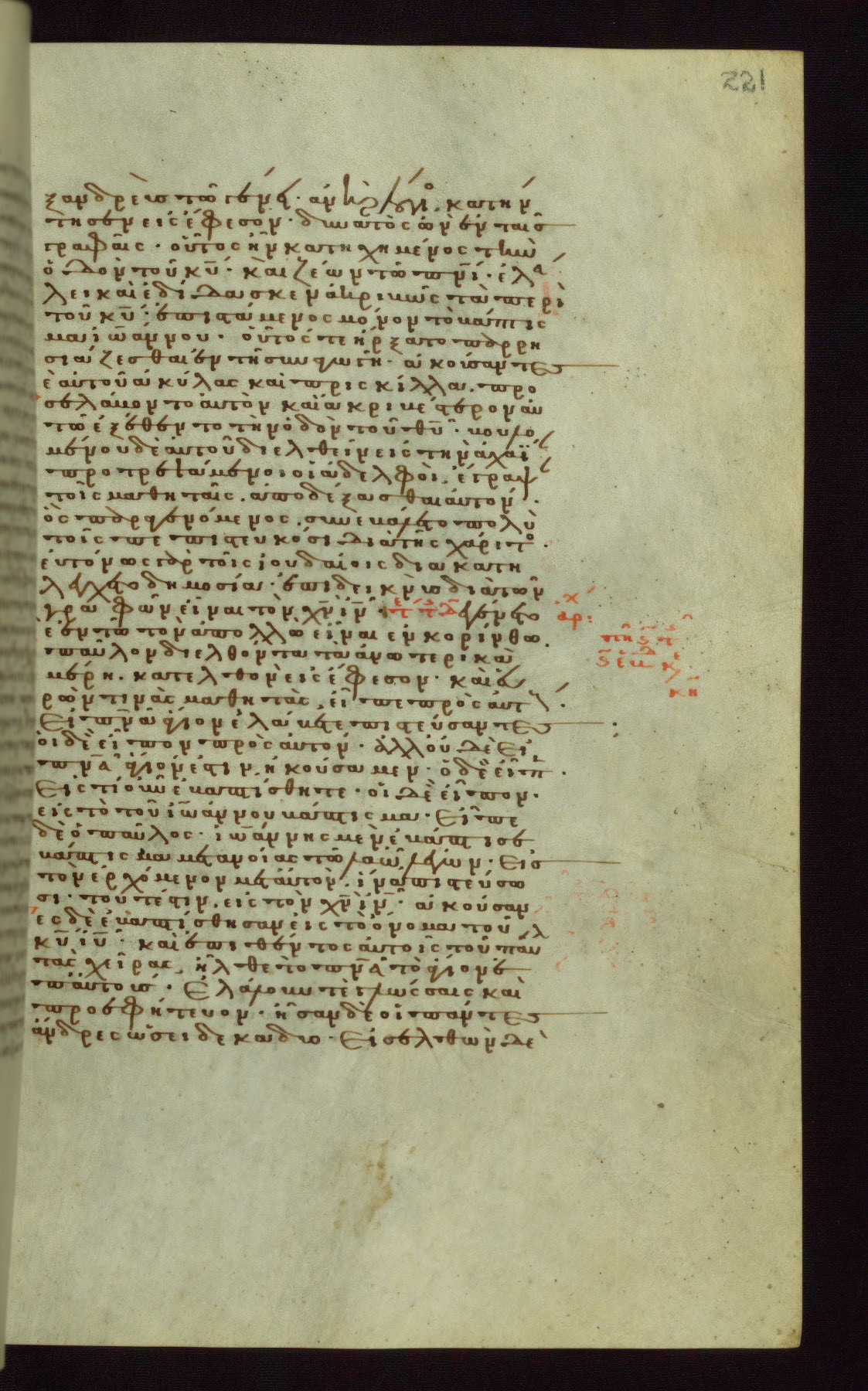 This small, densely written volume of the New Testament was evidently made for personal reading. It represents high-level manuscript production in the first decades of the late Byzantine period. ca. 1300. By 1628, it is known to have been in the Chilandari Monastery, or one of its dependencies, on Mount Athos.