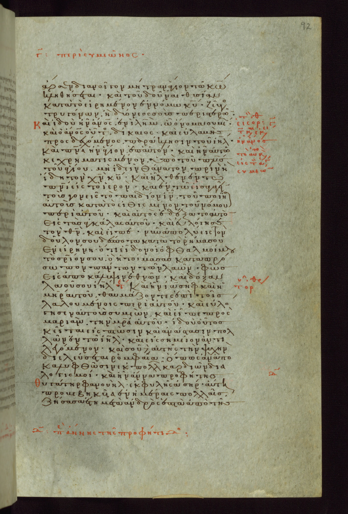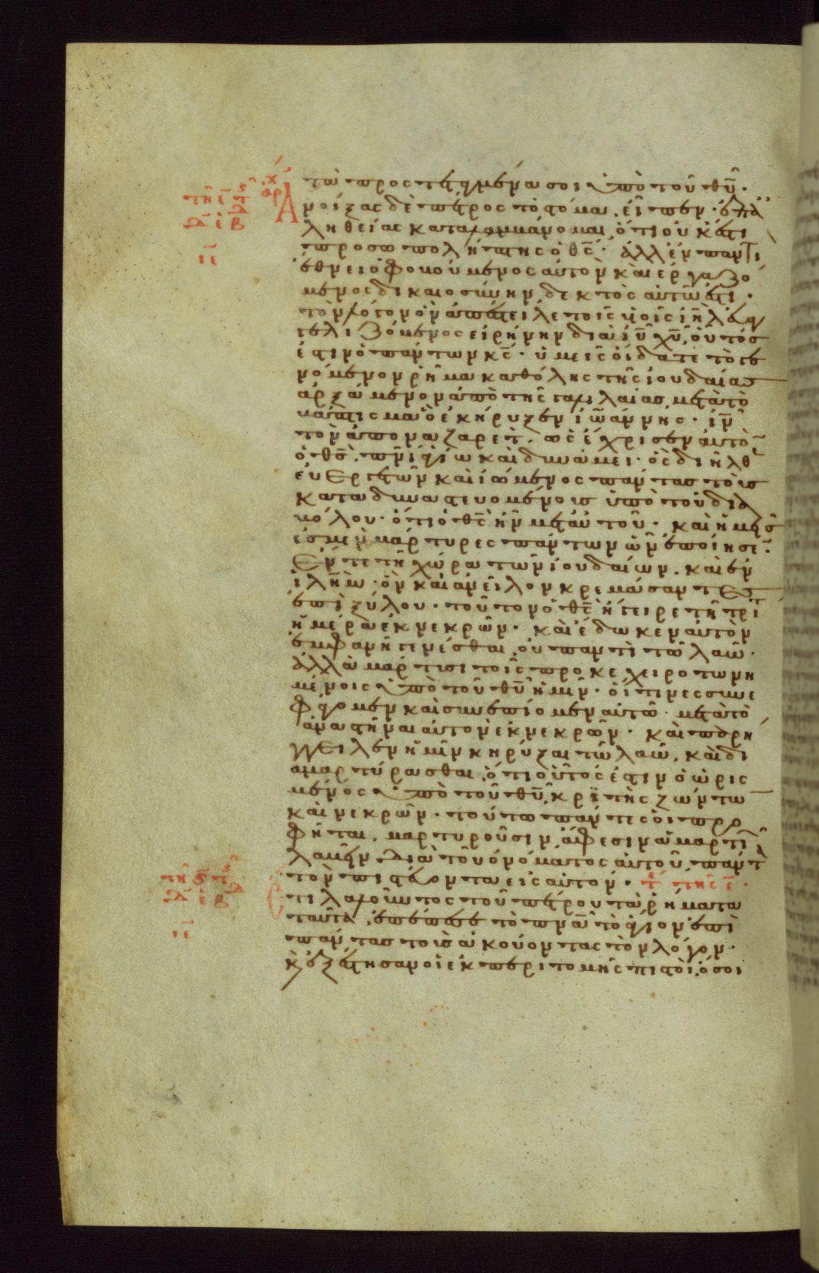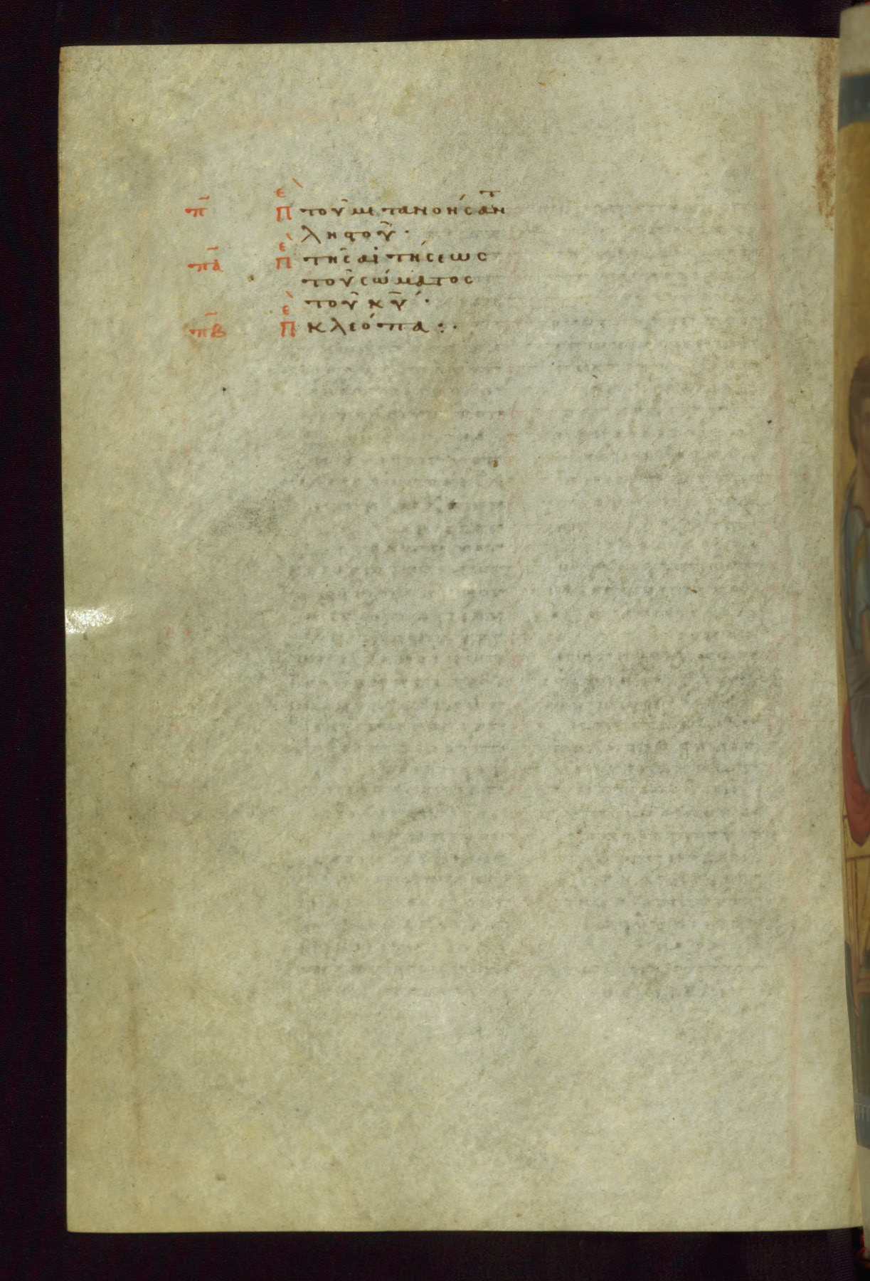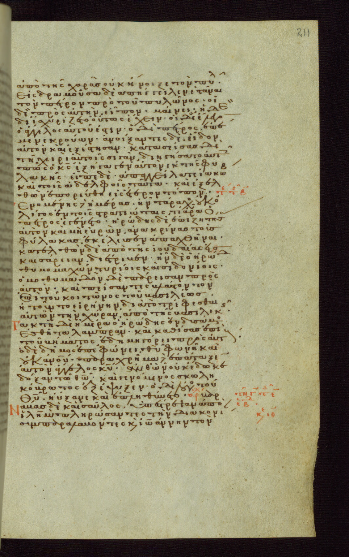 This small, densely written volume of the New Testament was evidently made for personal reading. It represents high-level manuscript production in the first decades of the late Byzantine period. ca. 1300. By 1628, it is known to have been in the Chilandari Monastery, or one of its dependencies, on Mount Athos.