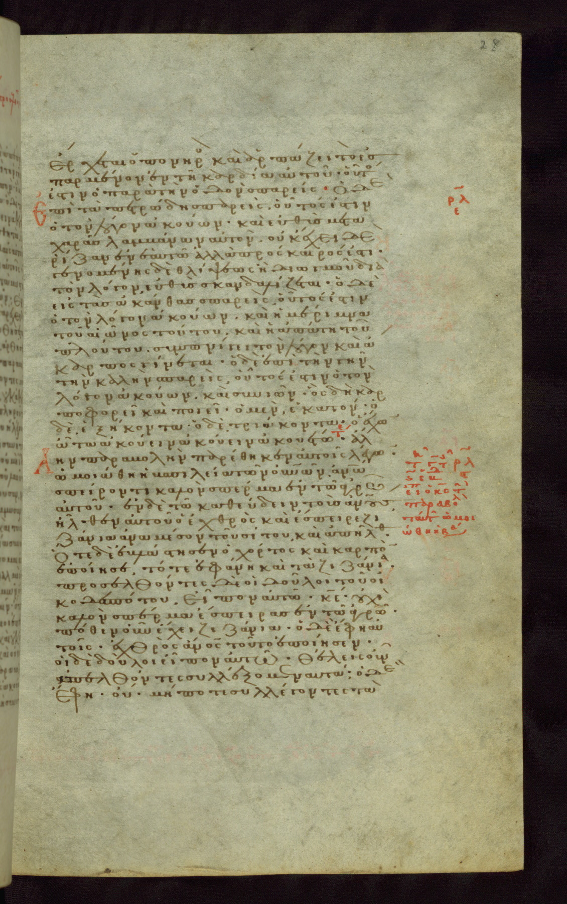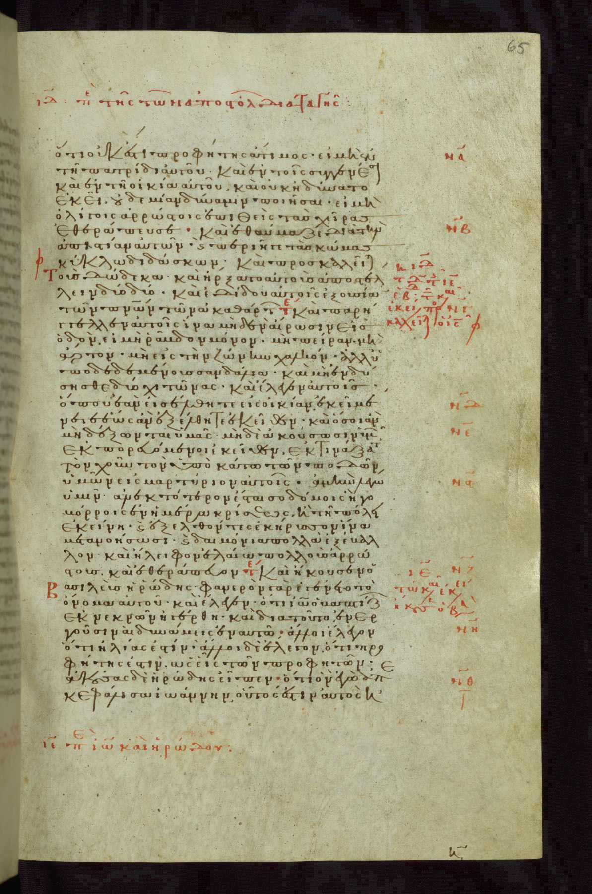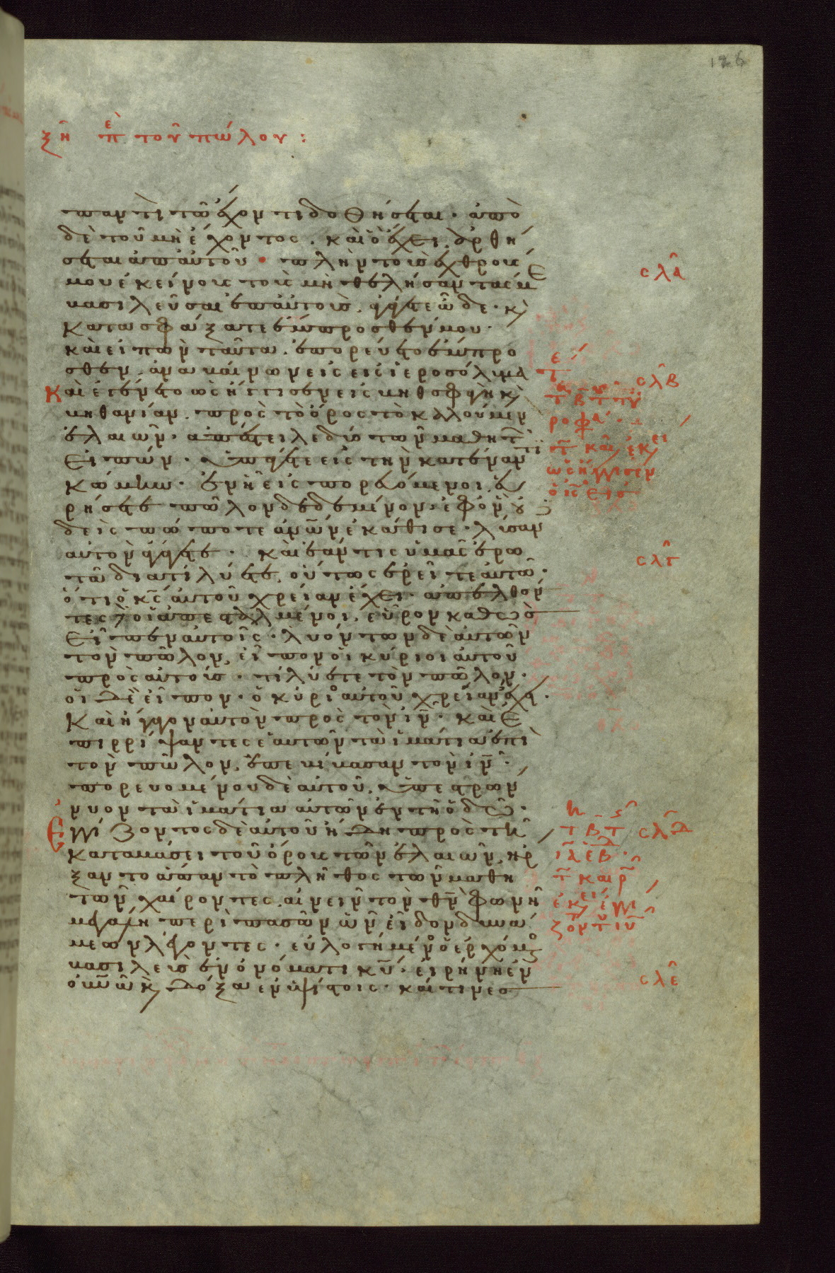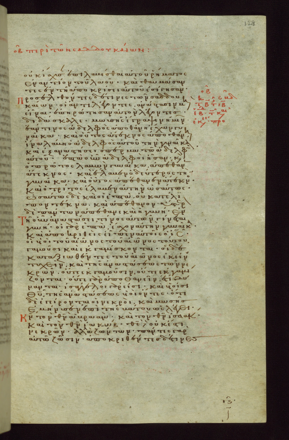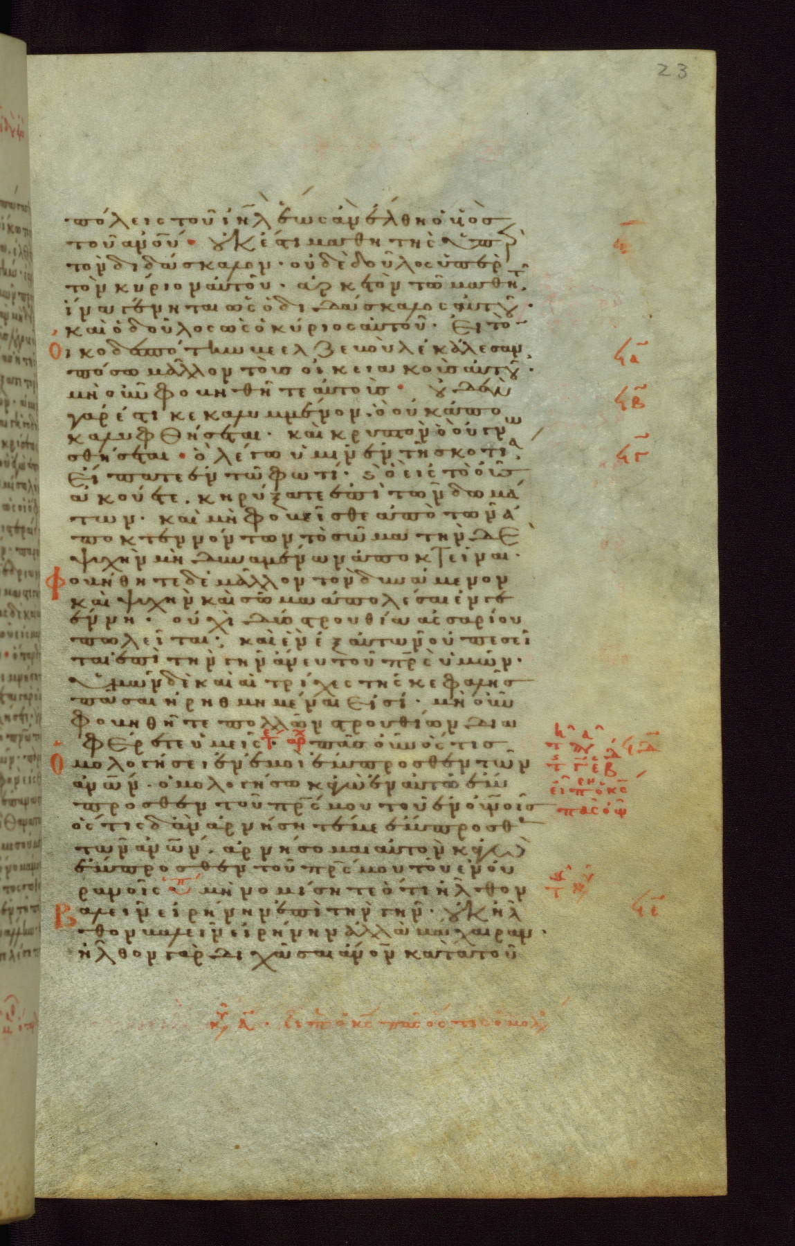 This small, densely written volume of the New Testament was evidently made for personal reading. It represents high-level manuscript production in the first decades of the late Byzantine period. ca. 1300. By 1628, it is known to have been in the Chilandari Monastery, or one of its dependencies, on Mount Athos.