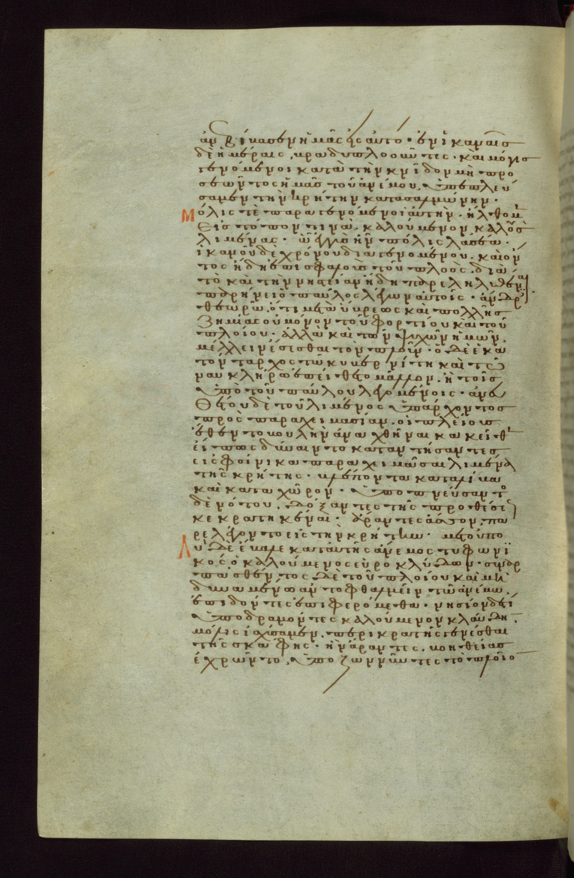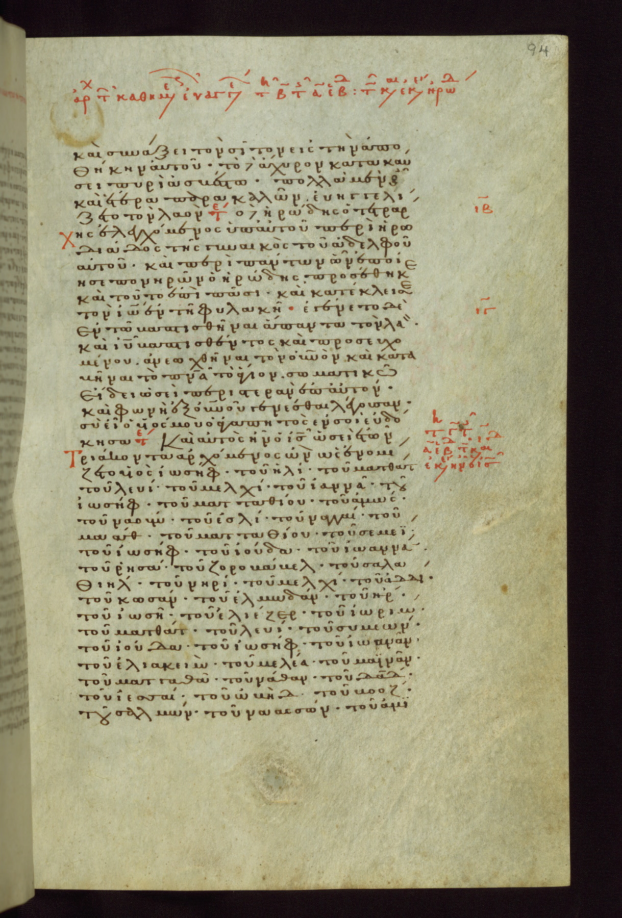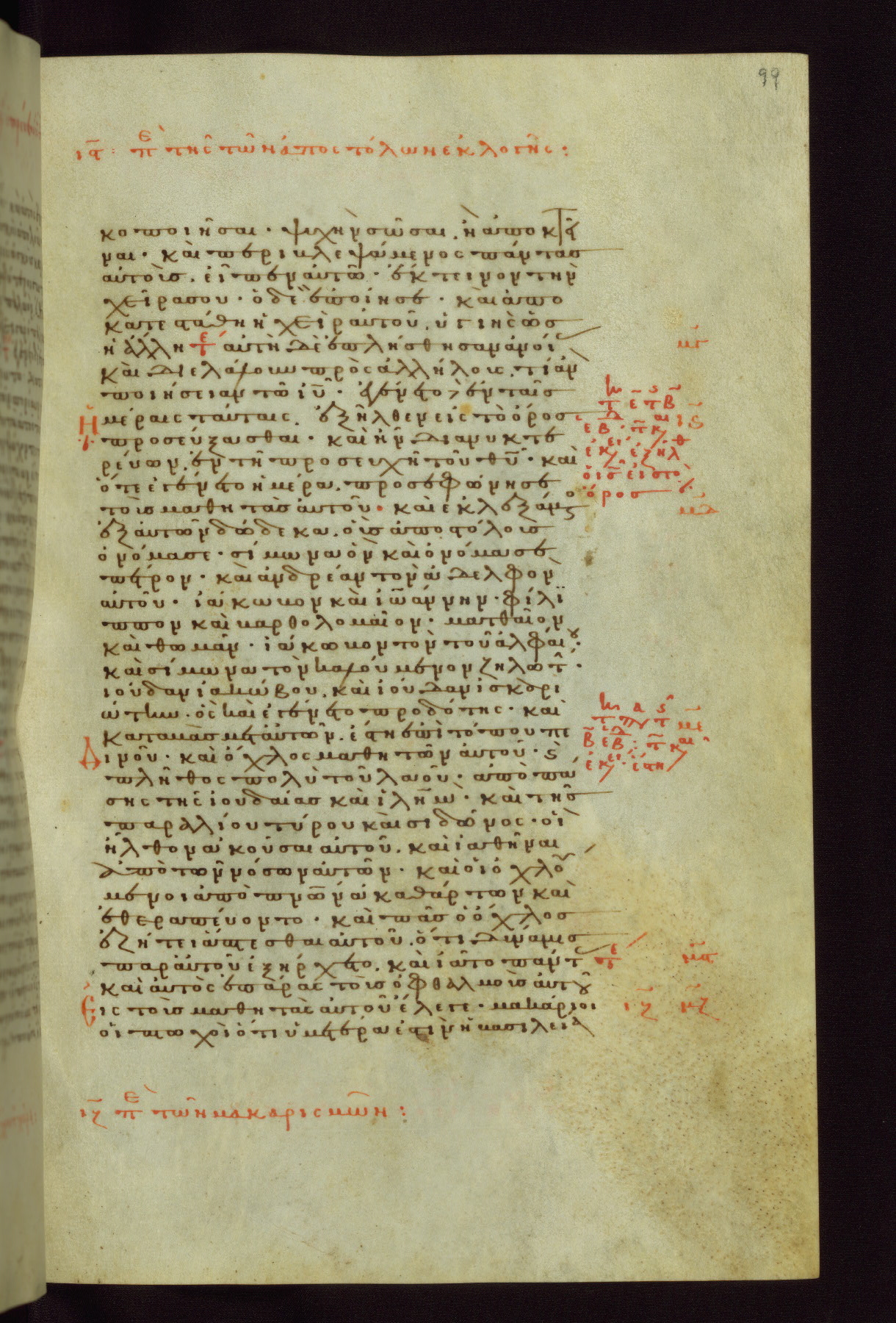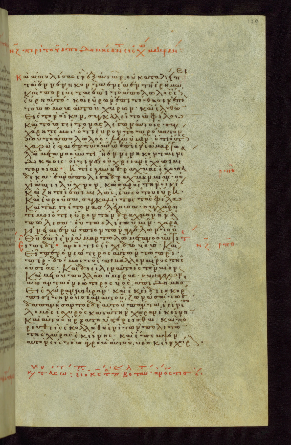 This small, densely written volume of the New Testament was evidently made for personal reading. It represents high-level manuscript production in the first decades of the late Byzantine period. ca. 1300. By 1628, it is known to have been in the Chilandari Monastery, or one of its dependencies, on Mount Athos.