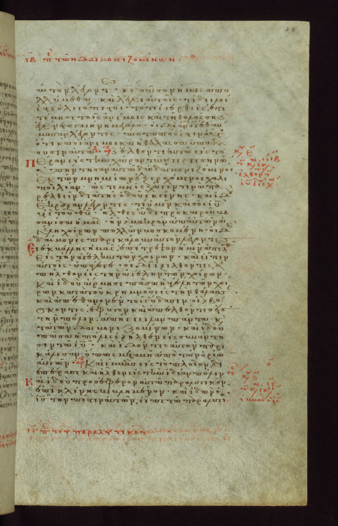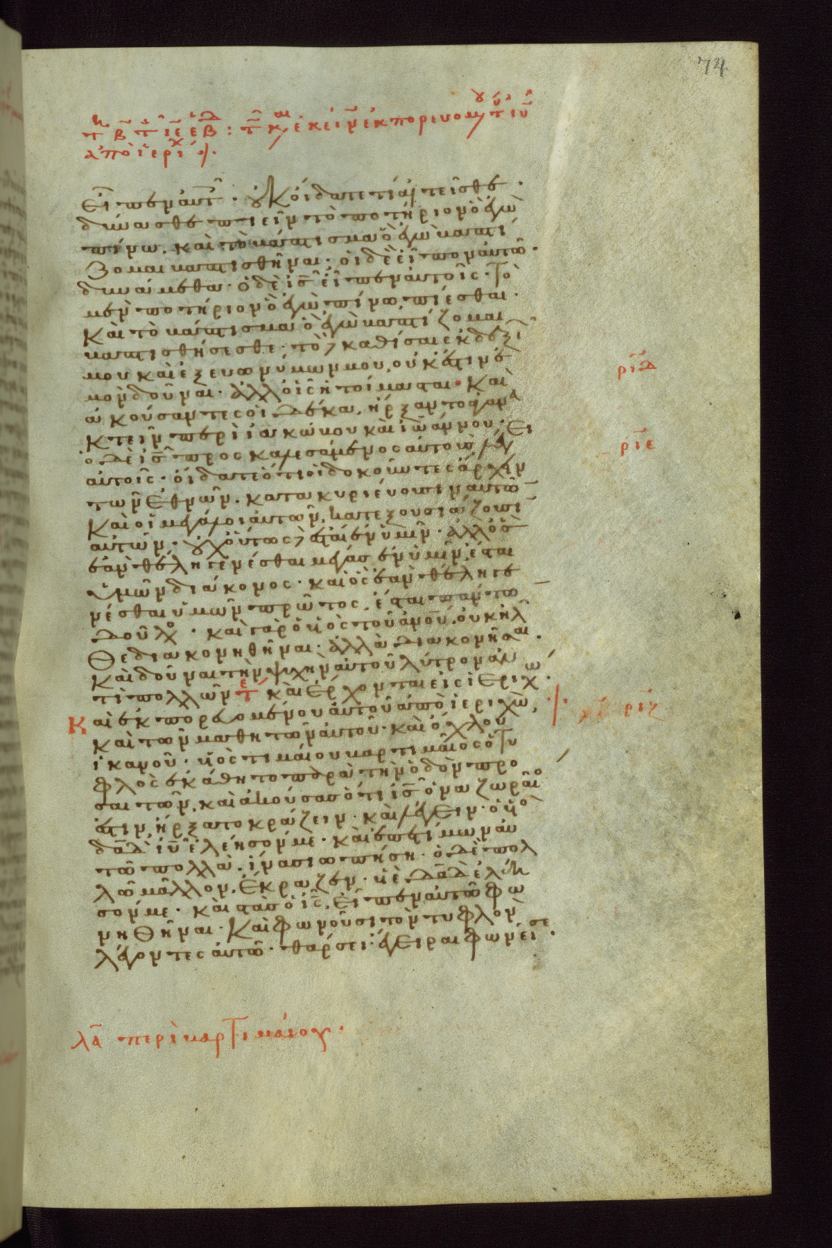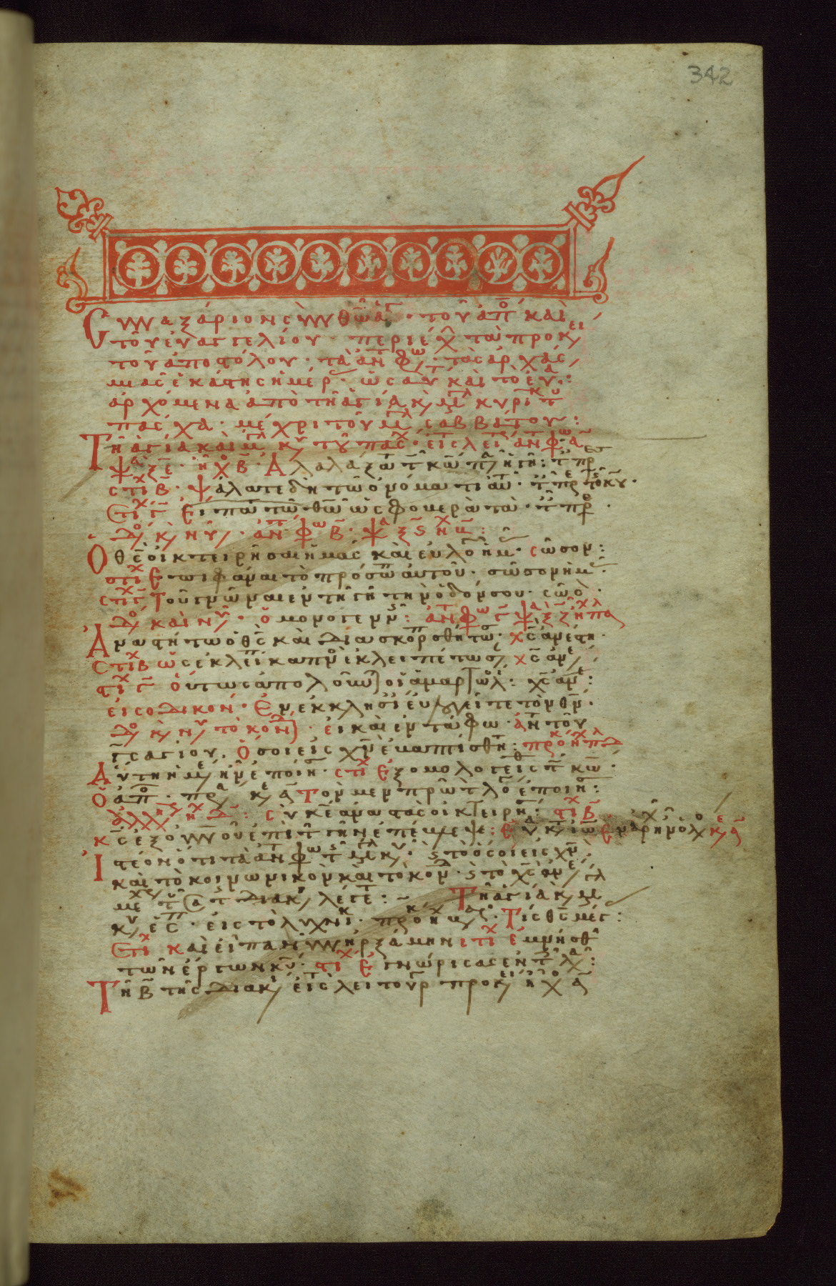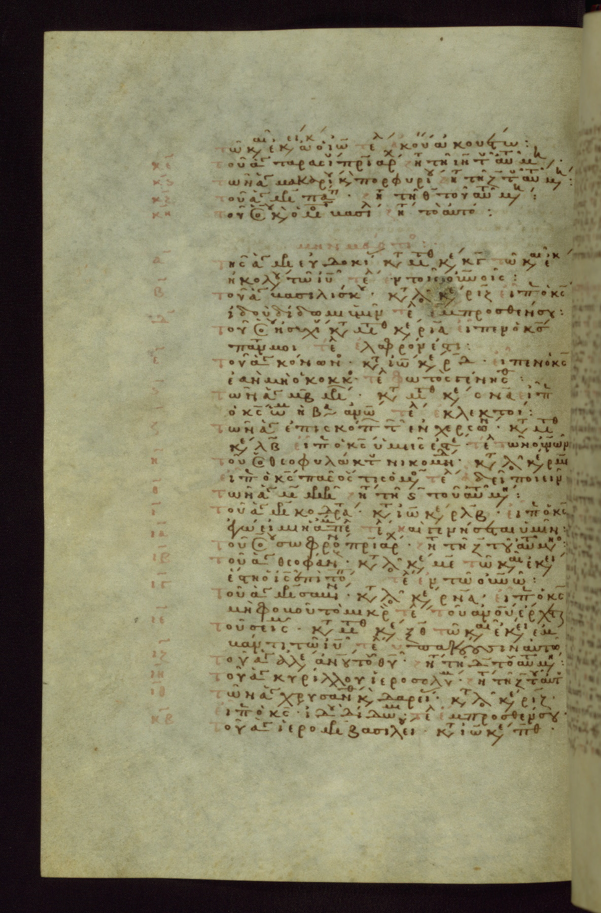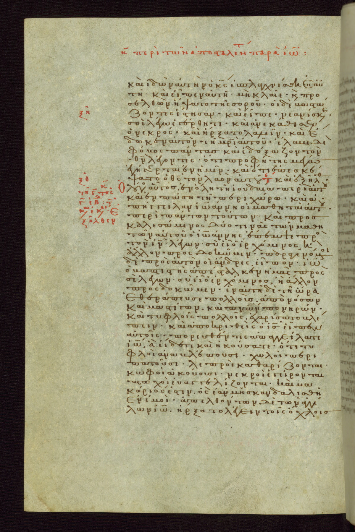 This small, densely written volume of the New Testament was evidently made for personal reading. It represents high-level manuscript production in the first decades of the late Byzantine period. ca. 1300. By 1628, it is known to have been in the Chilandari Monastery, or one of its dependencies, on Mount Athos.