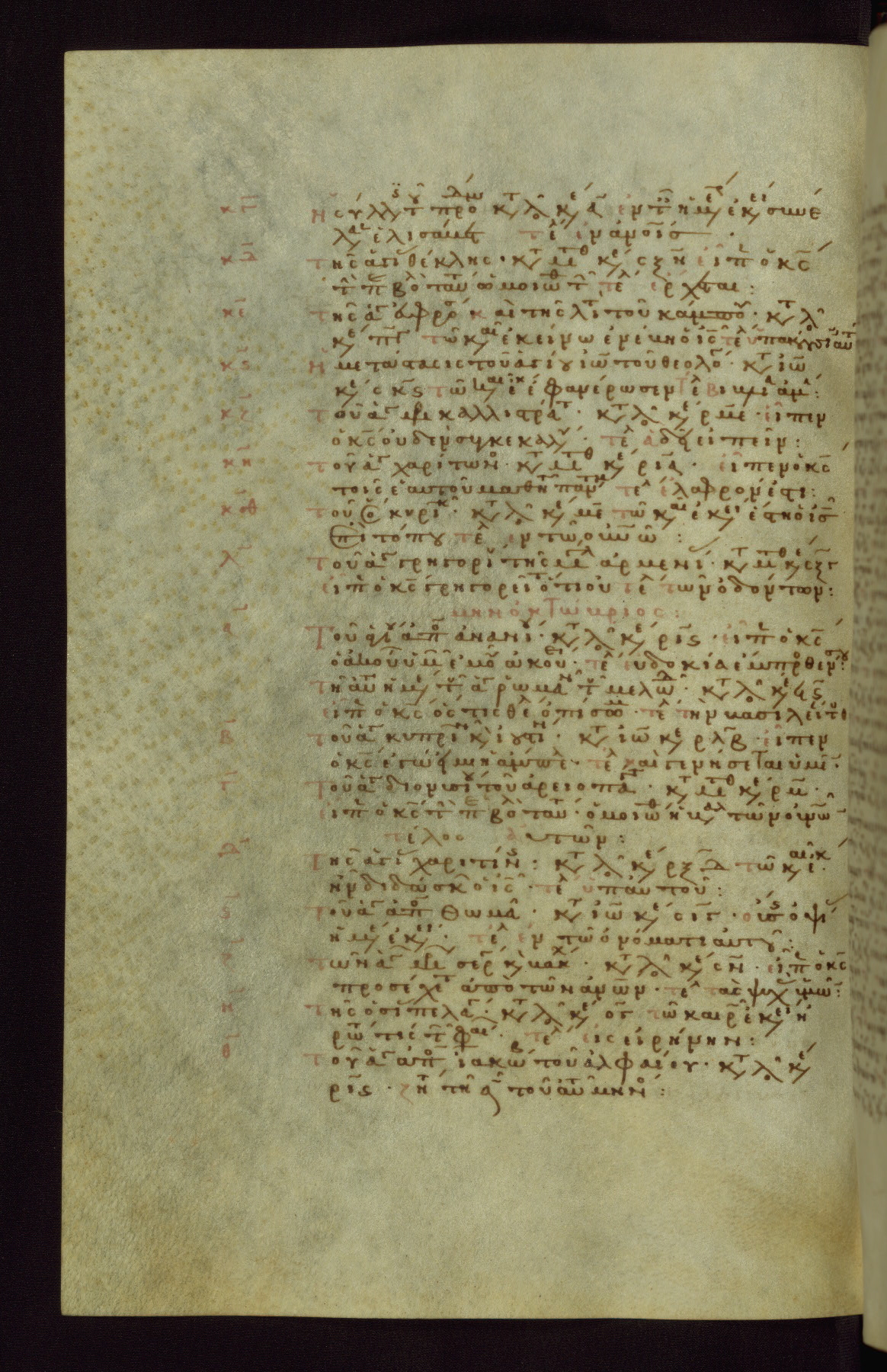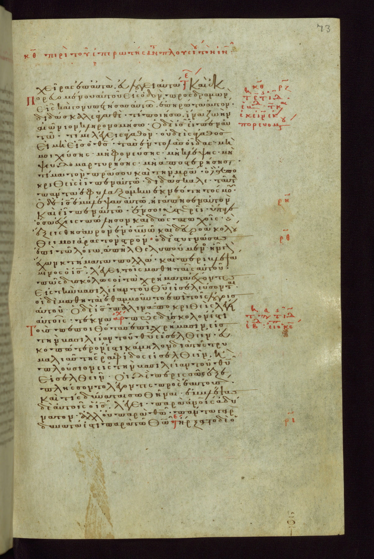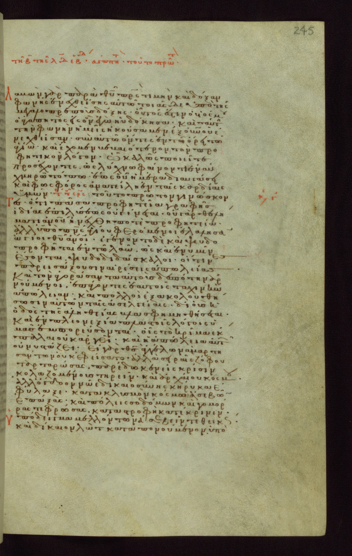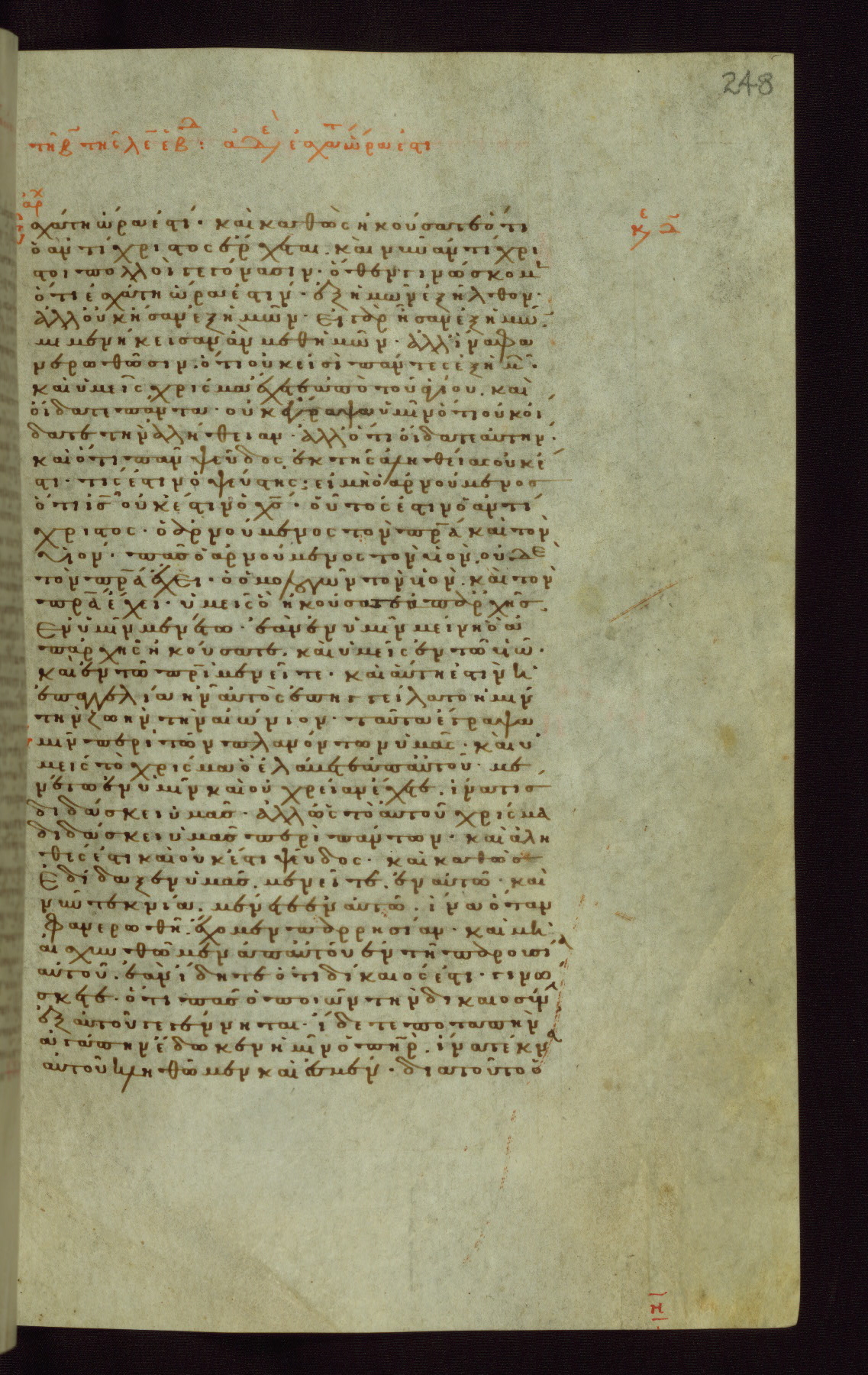This small, densely written volume of the New Testament was evidently made for personal reading. It represents high-level manuscript production in the first decades of the late Byzantine period. ca. 1300. By 1628, it is known to have been in the Chilandari Monastery, or one of its dependencies, on Mount Athos.