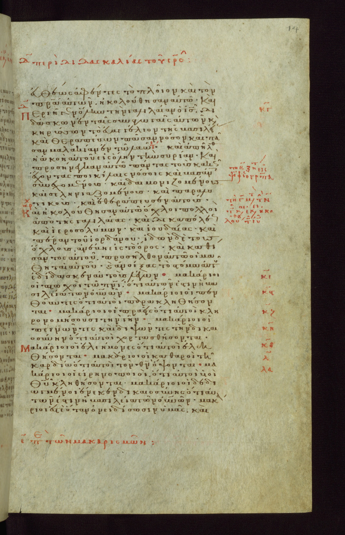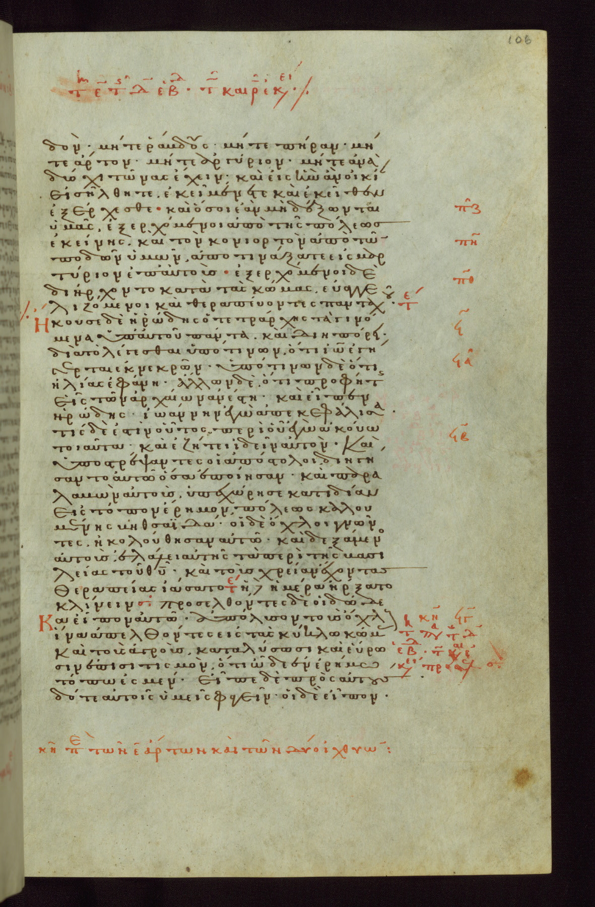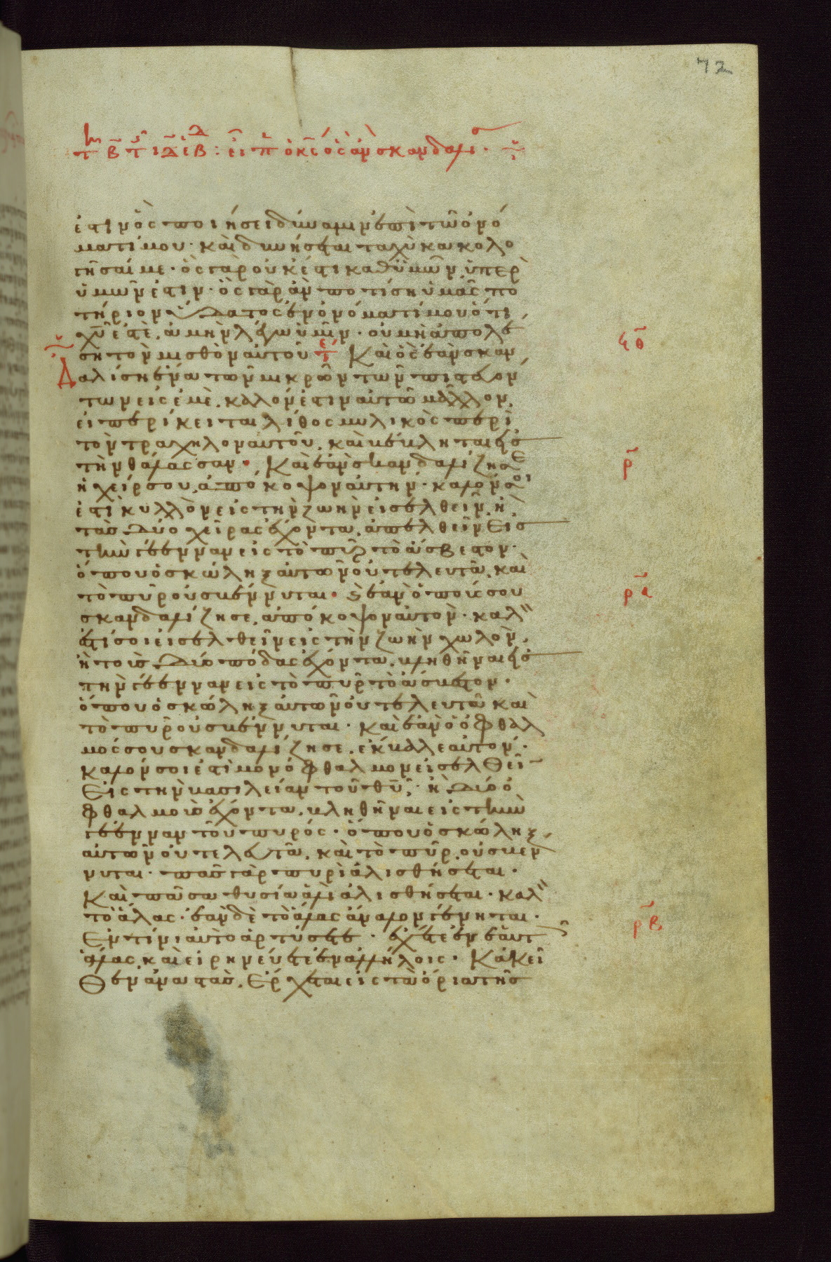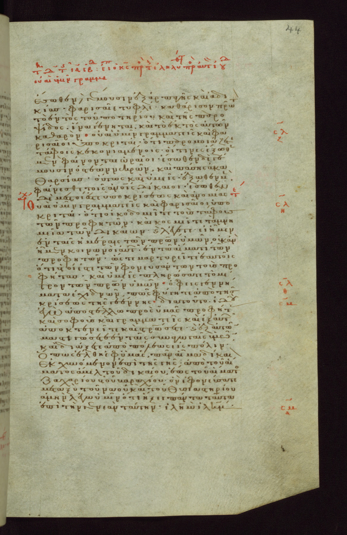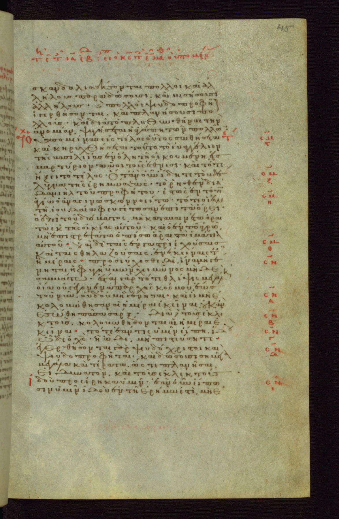 This small, densely written volume of the New Testament was evidently made for personal reading. It represents high-level manuscript production in the first decades of the late Byzantine period. ca. 1300. By 1628, it is known to have been in the Chilandari Monastery, or one of its dependencies, on Mount Athos.
