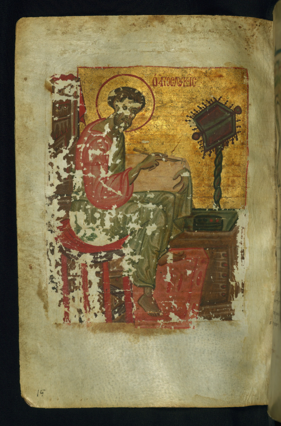 As usual, the Evangelist is shown in the act of writing his Gospel.