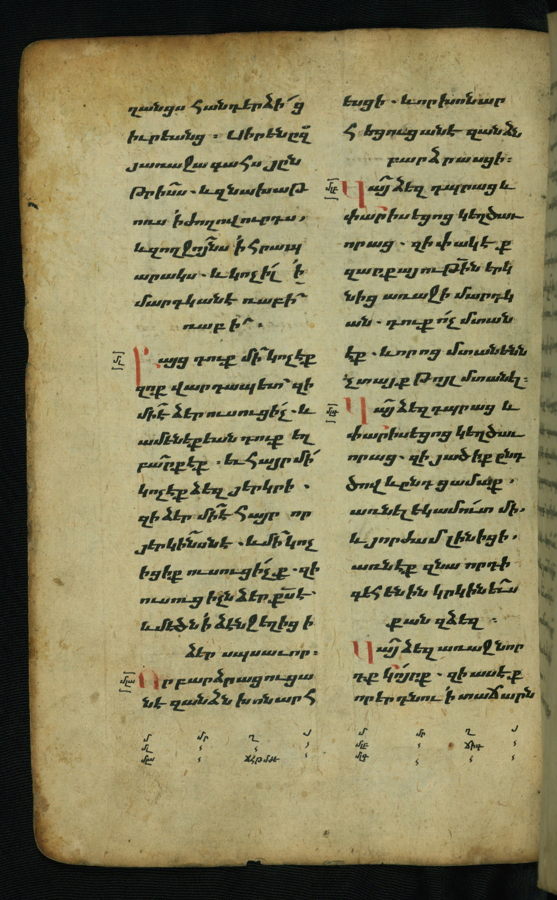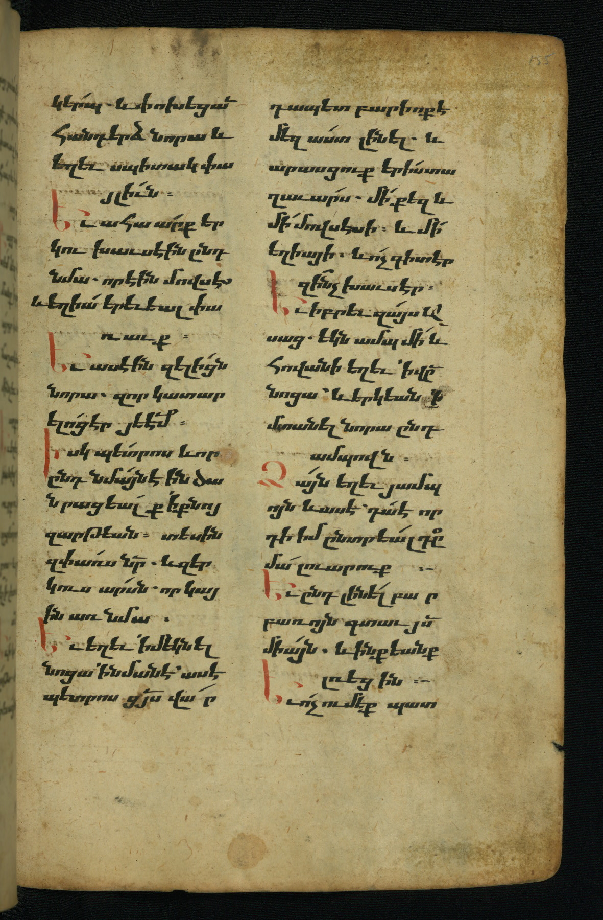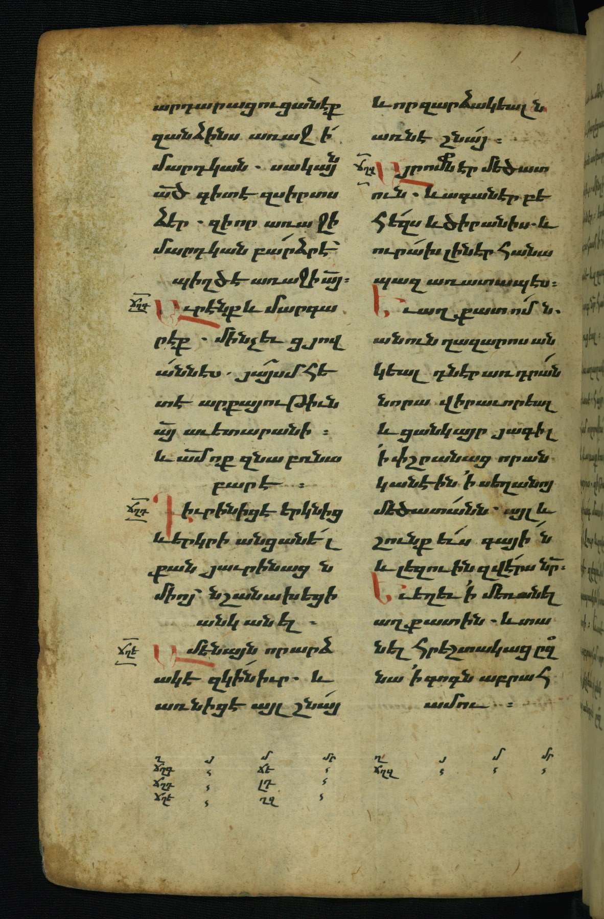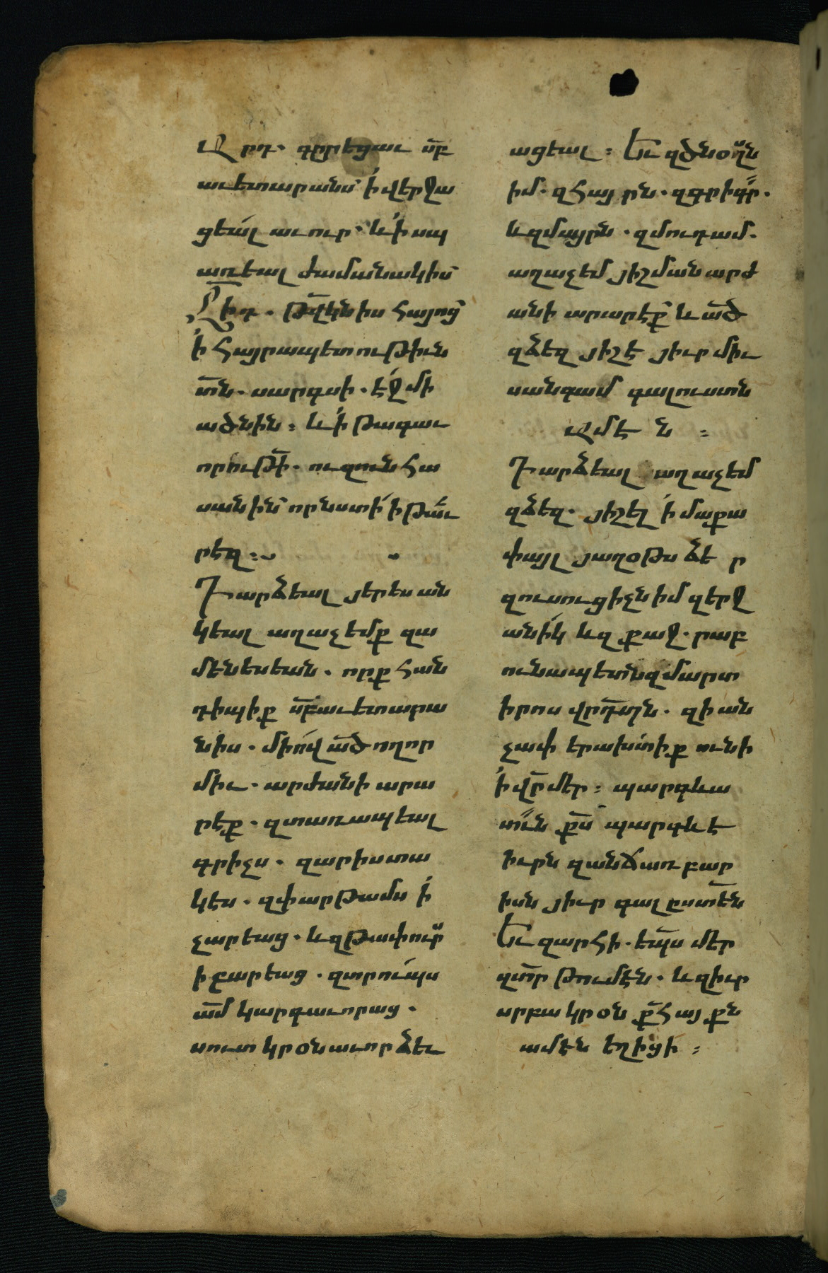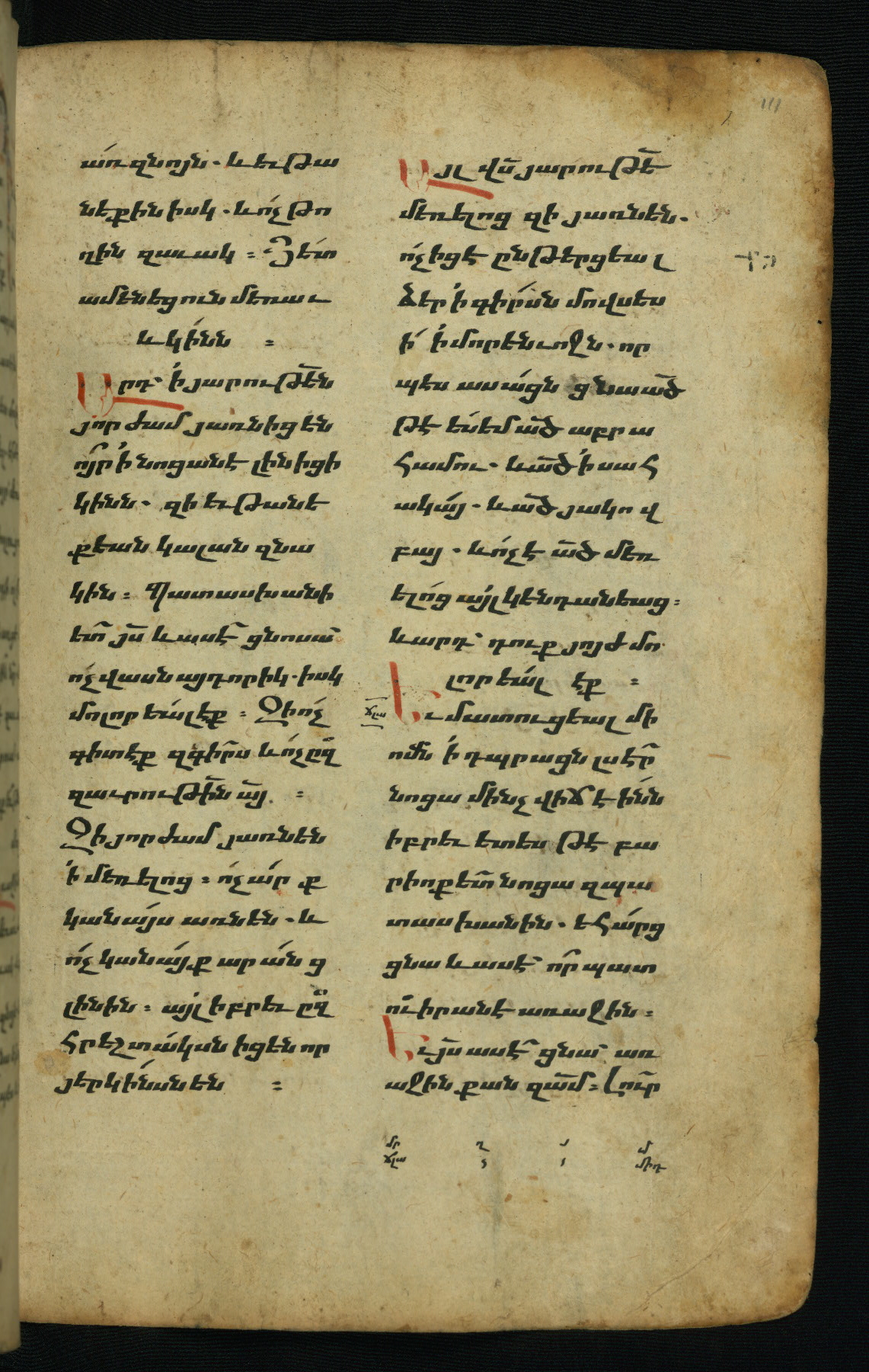 This manuscript was executed in 1475 CE by a scribe identified as Aristakes for a priest named Hakob. It contains a series of sixteen images on the life of Christ preceding the text of the Gospels, as well as the traditional Evangelist portraits, and there are marginal illustrations throughout. The style of the miniatures, which employ brilliant colors and emphasize decorative patterns, is characteristic of manuscript production in the region around Lake Van during the fifteenth century. The style of Lake Van has often been described in relation to schools of Islamic arts of the book. Numerous inscriptions (on fols. 258-260) spanning a few centuries attest to the manuscript's long history of use and revered preservation. The codex's later history included a rebinding with silver covers from Kayseri that date to approximately 1700. This jeweled and enameled silver binding bears a composition of the Adoration of the Magi on the front and the Ascension on the back.