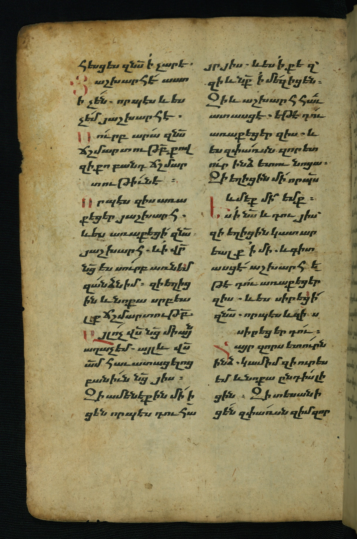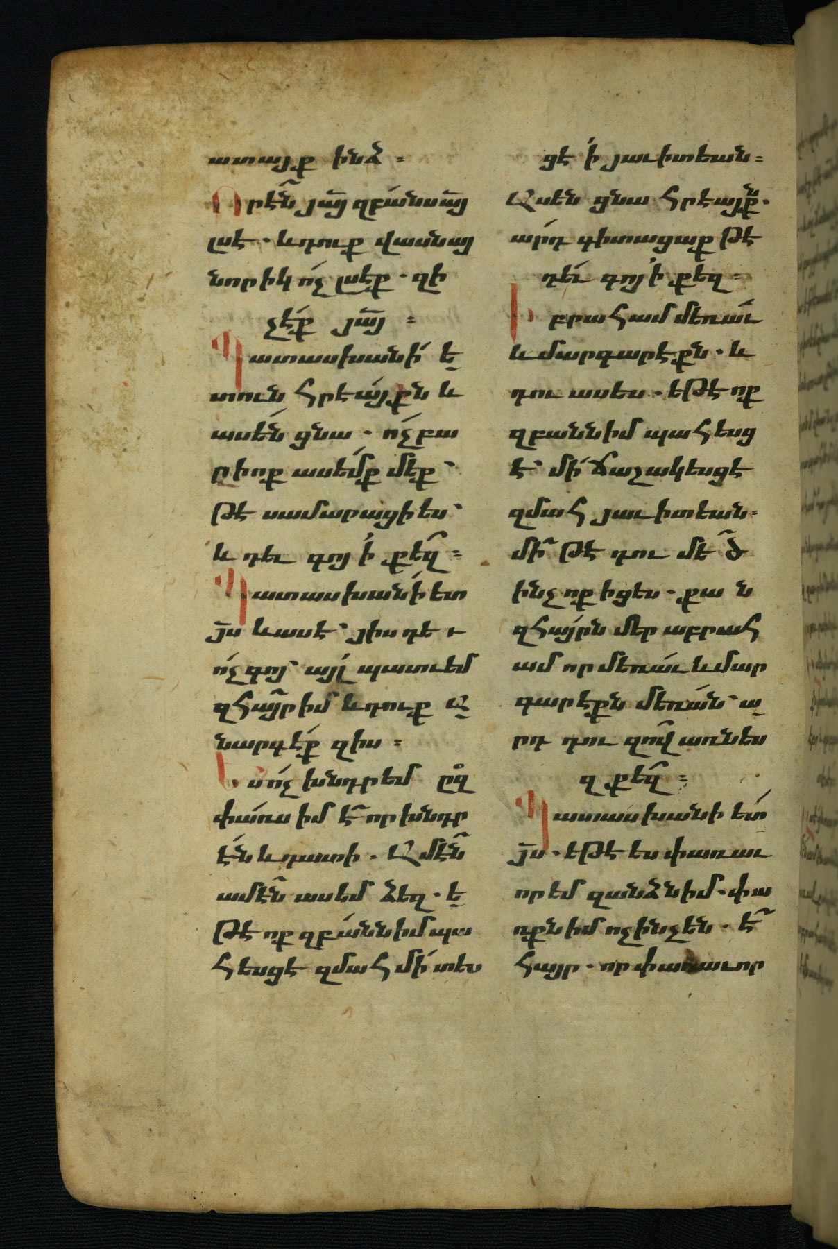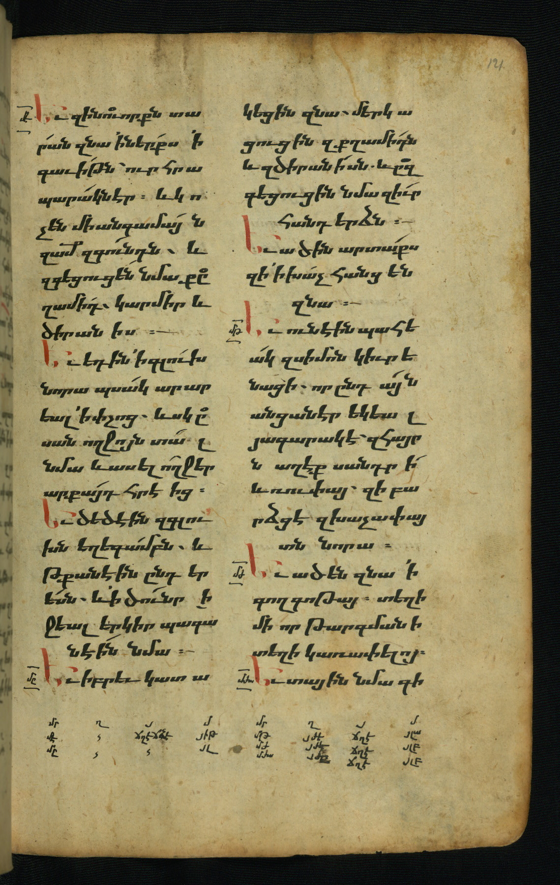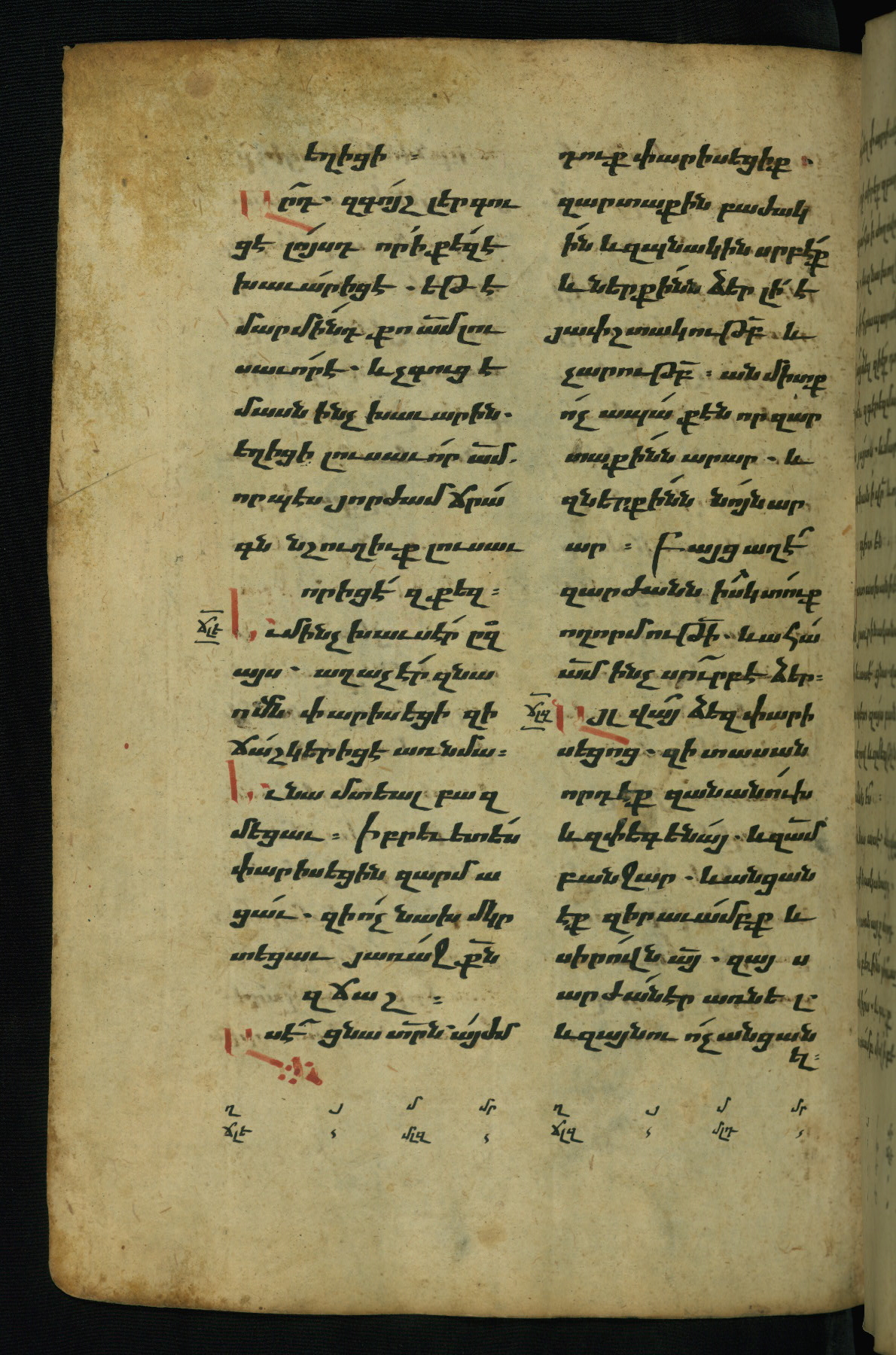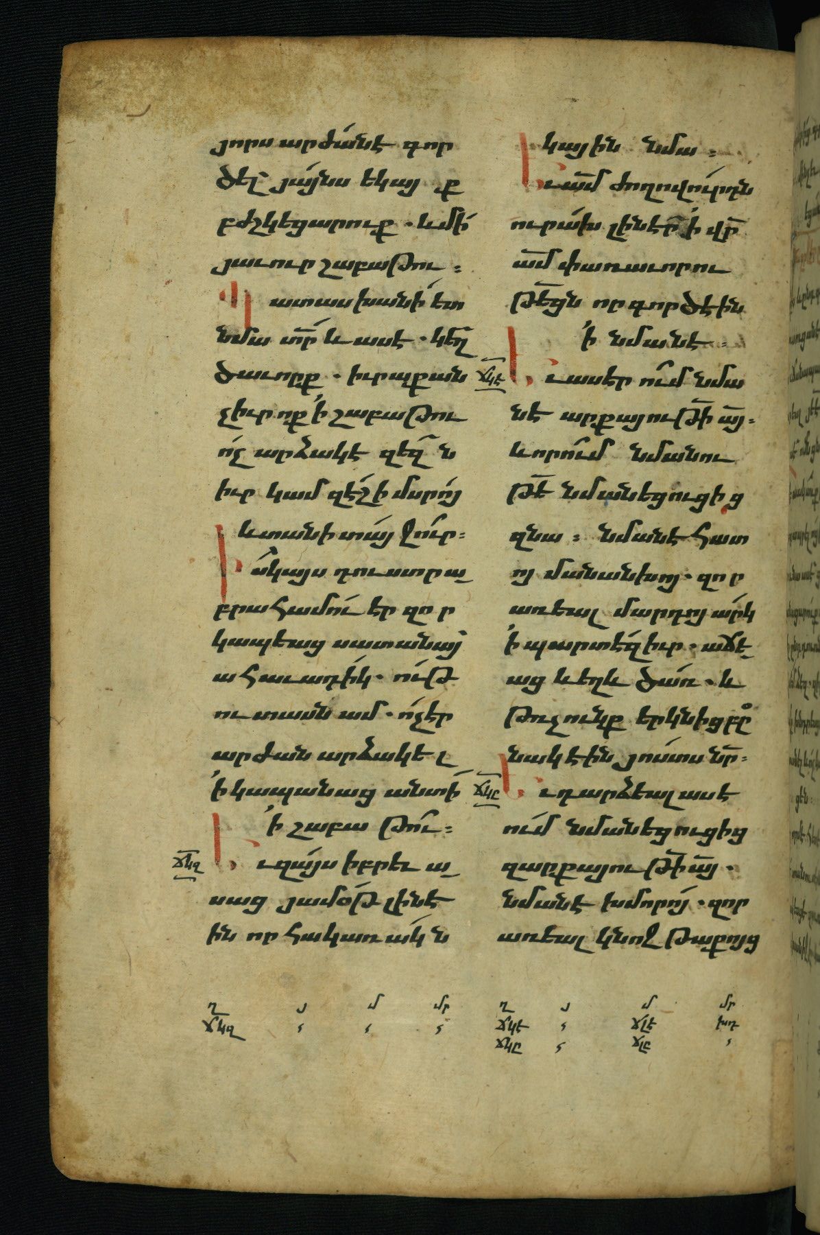 This manuscript was executed in 1475 CE by a scribe identified as Aristakes for a priest named Hakob. It contains a series of sixteen images on the life of Christ preceding the text of the Gospels, as well as the traditional Evangelist portraits, and there are marginal illustrations throughout. The style of the miniatures, which employ brilliant colors and emphasize decorative patterns, is characteristic of manuscript production in the region around Lake Van during the fifteenth century. The style of Lake Van has often been described in relation to schools of Islamic arts of the book. Numerous inscriptions (on fols. 258-260) spanning a few centuries attest to the manuscript's long history of use and revered preservation. The codex's later history included a rebinding with silver covers from Kayseri that date to approximately 1700. This jeweled and enameled silver binding bears a composition of the Adoration of the Magi on the front and the Ascension on the back.
