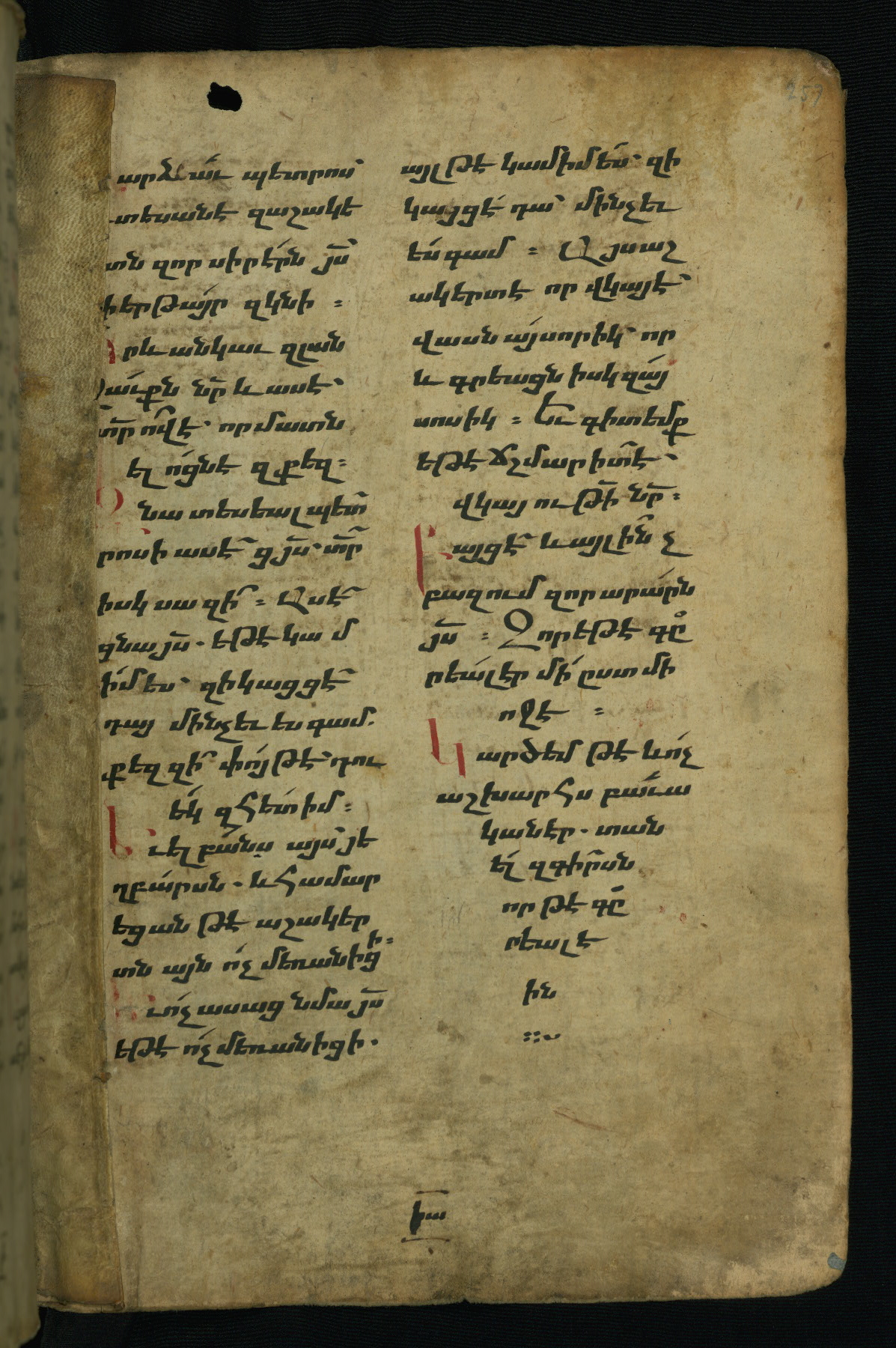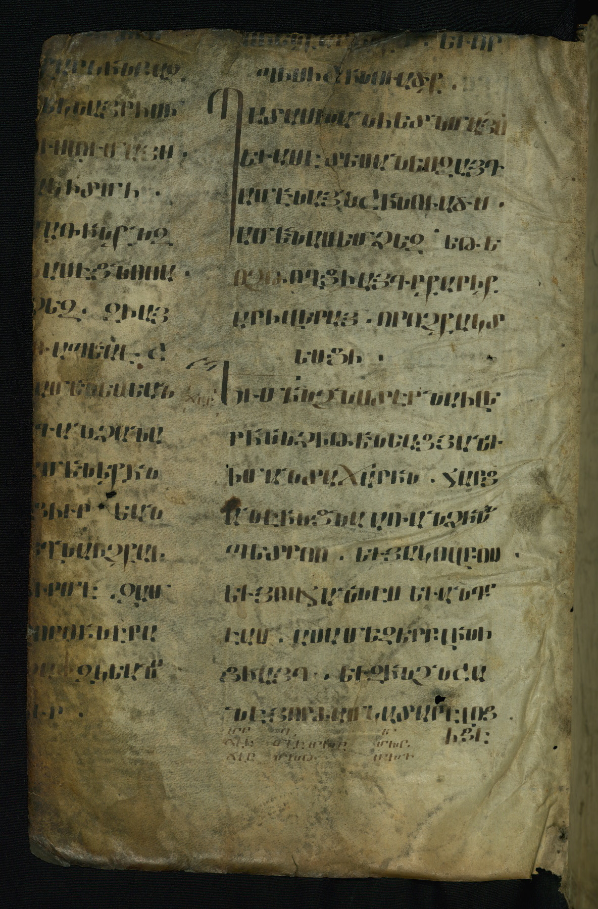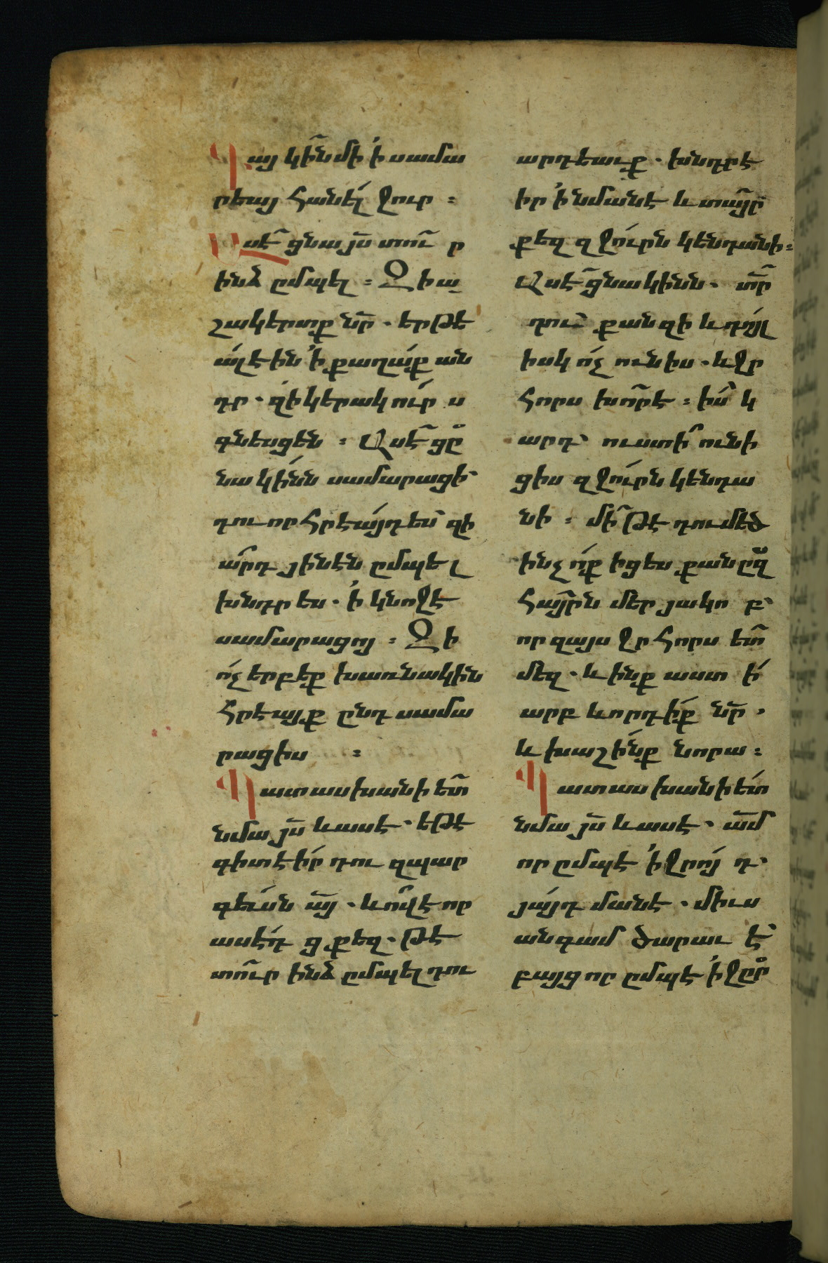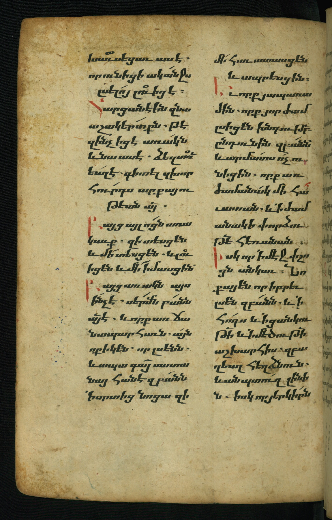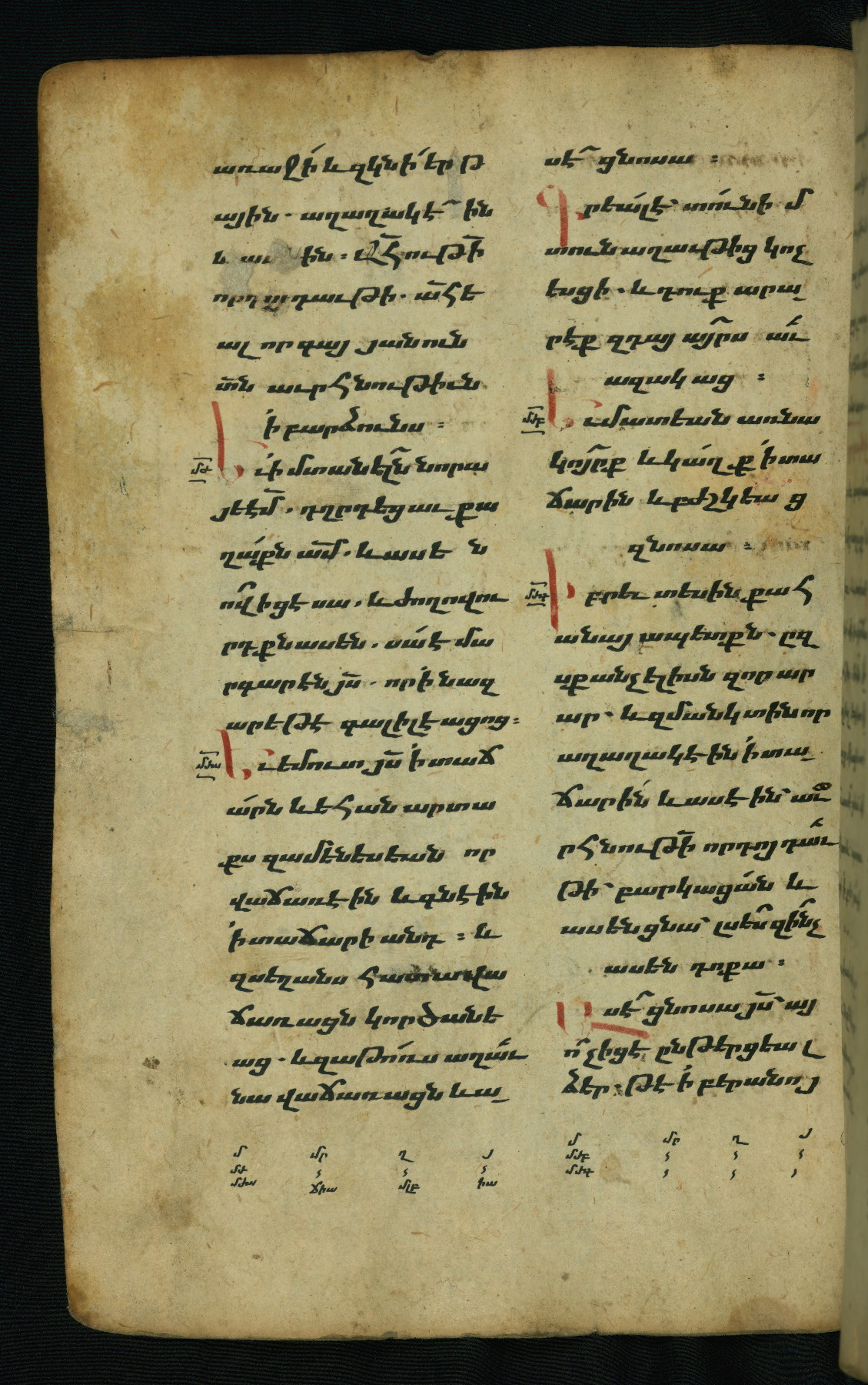 This manuscript was executed in 1475 CE by a scribe identified as Aristakes for a priest named Hakob. It contains a series of sixteen images on the life of Christ preceding the text of the Gospels, as well as the traditional Evangelist portraits, and there are marginal illustrations throughout. The style of the miniatures, which employ brilliant colors and emphasize decorative patterns, is characteristic of manuscript production in the region around Lake Van during the fifteenth century. The style of Lake Van has often been described in relation to schools of Islamic arts of the book. Numerous inscriptions (on fols. 258-260) spanning a few centuries attest to the manuscript's long history of use and revered preservation. The codex's later history included a rebinding with silver covers from Kayseri that date to approximately 1700. This jeweled and enameled silver binding bears a composition of the Adoration of the Magi on the front and the Ascension on the back.
