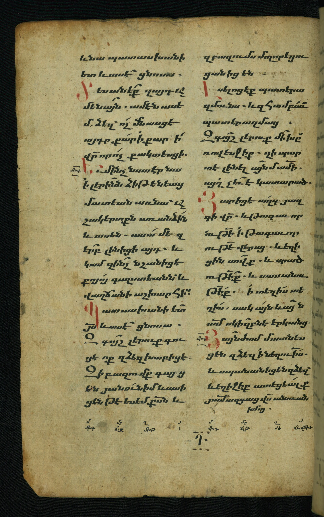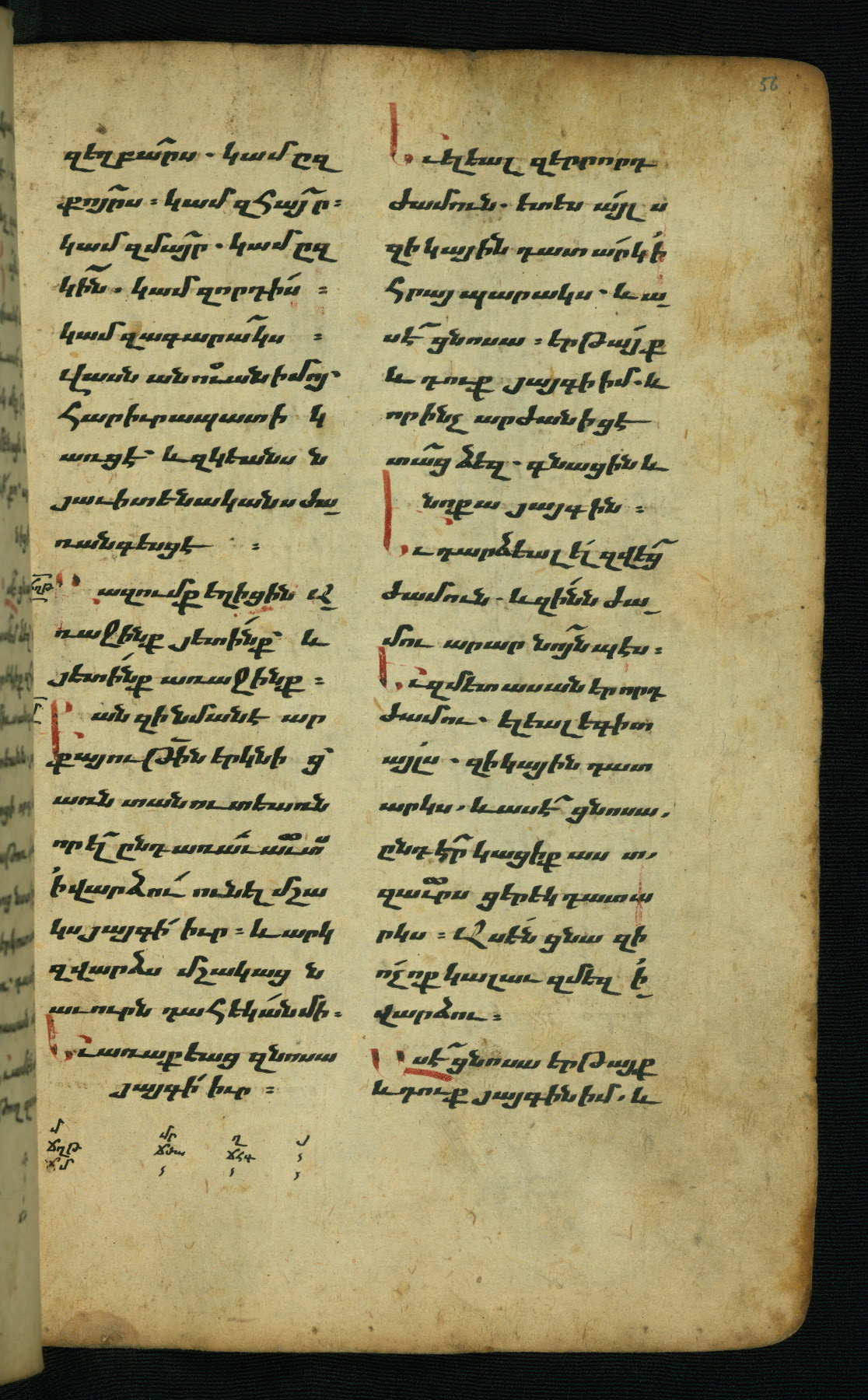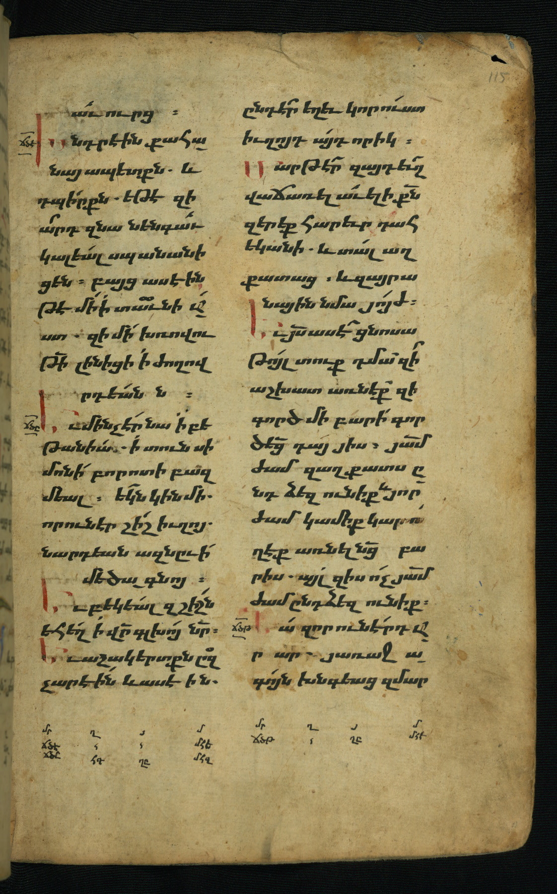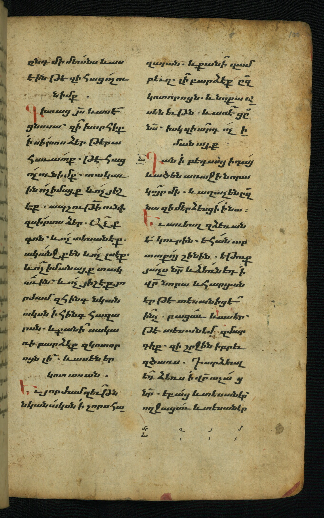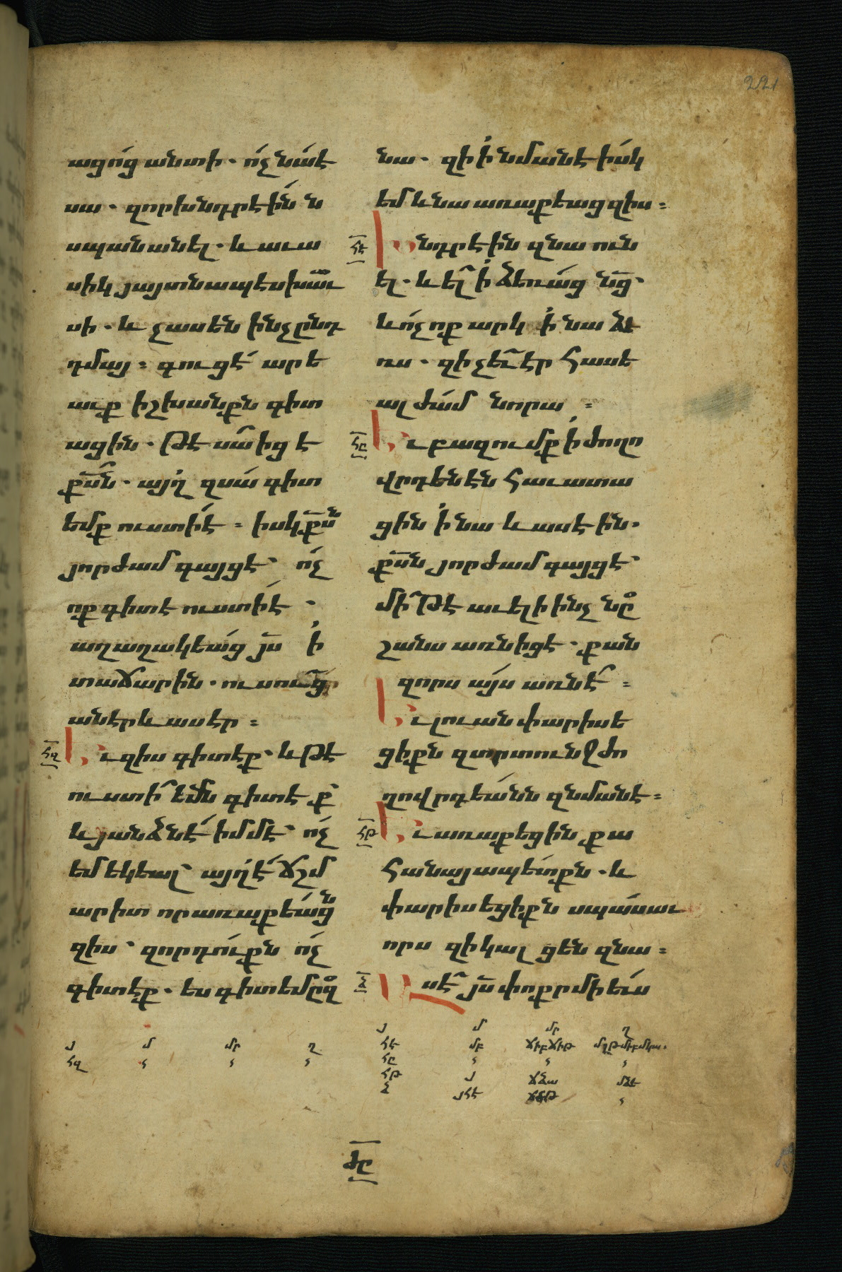 This manuscript was executed in 1475 CE by a scribe identified as Aristakes for a priest named Hakob. It contains a series of sixteen images on the life of Christ preceding the text of the Gospels, as well as the traditional Evangelist portraits, and there are marginal illustrations throughout. The style of the miniatures, which employ brilliant colors and emphasize decorative patterns, is characteristic of manuscript production in the region around Lake Van during the fifteenth century. The style of Lake Van has often been described in relation to schools of Islamic arts of the book. Numerous inscriptions (on fols. 258-260) spanning a few centuries attest to the manuscript's long history of use and revered preservation. The codex's later history included a rebinding with silver covers from Kayseri that date to approximately 1700. This jeweled and enameled silver binding bears a composition of the Adoration of the Magi on the front and the Ascension on the back.