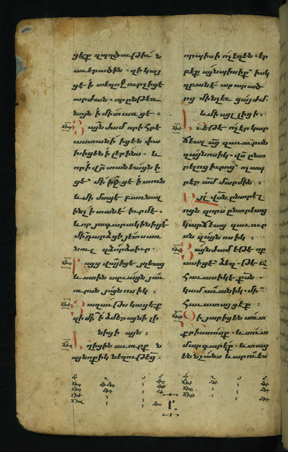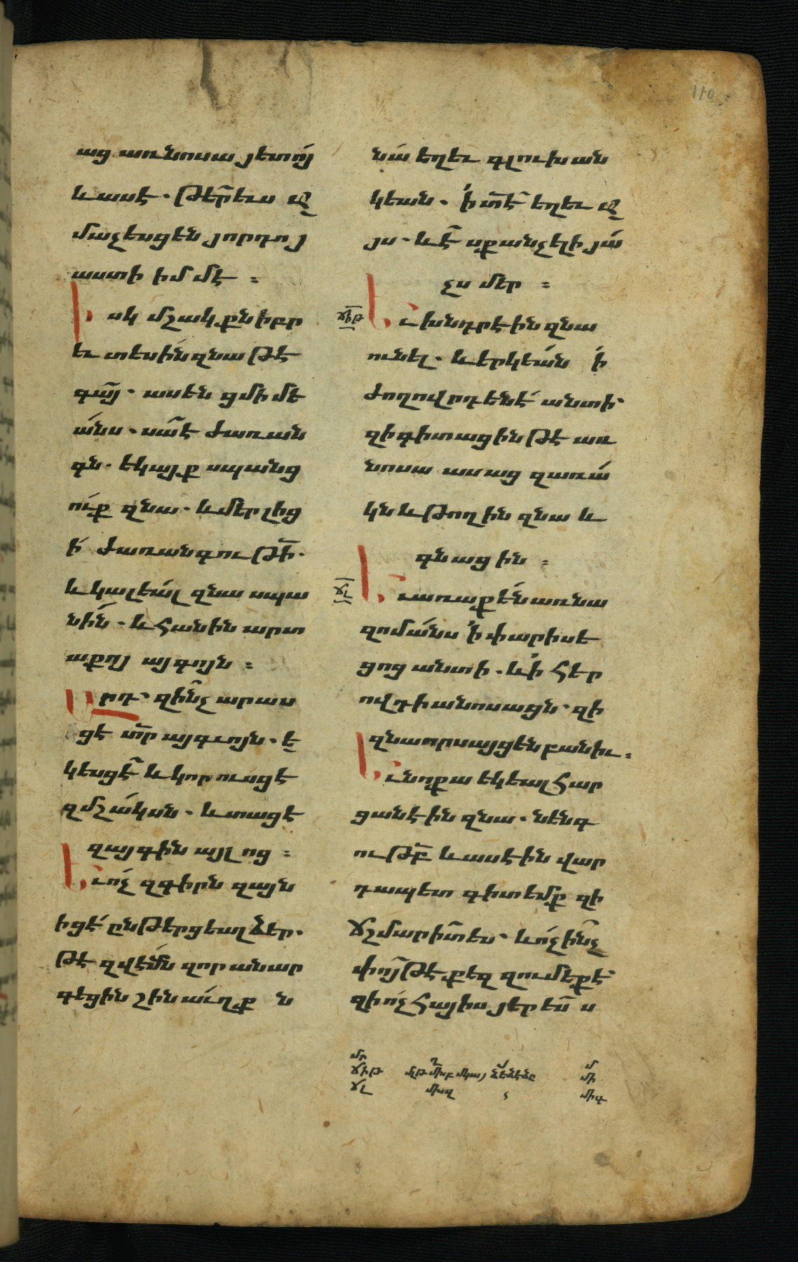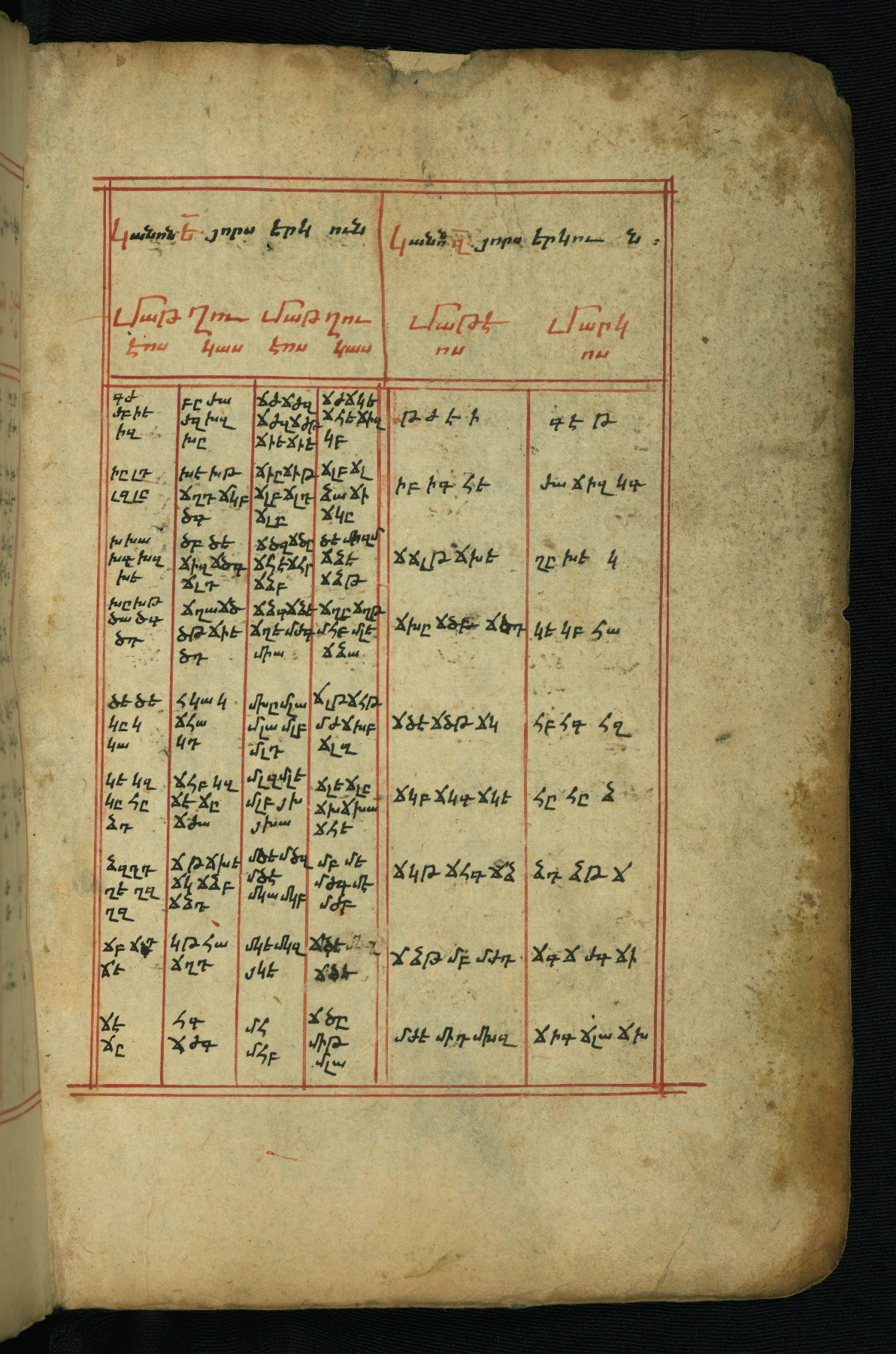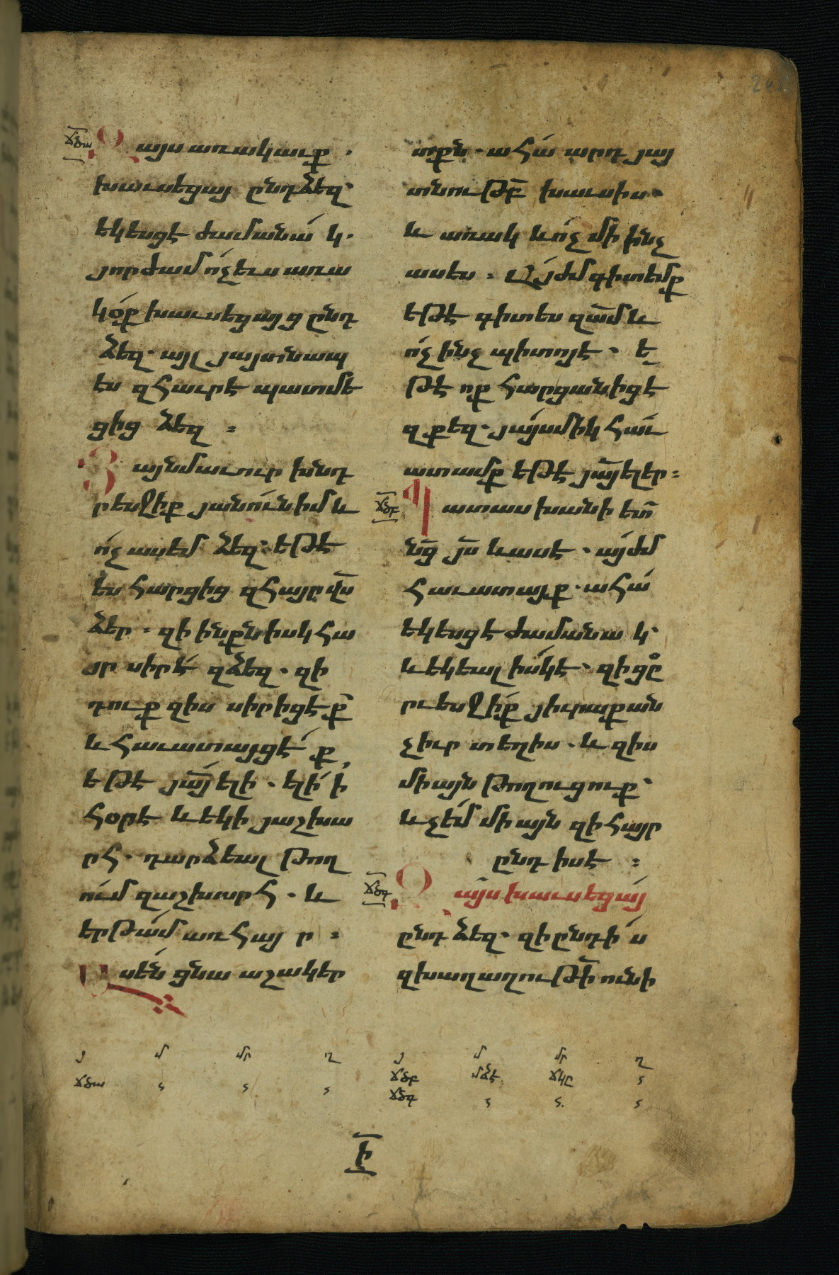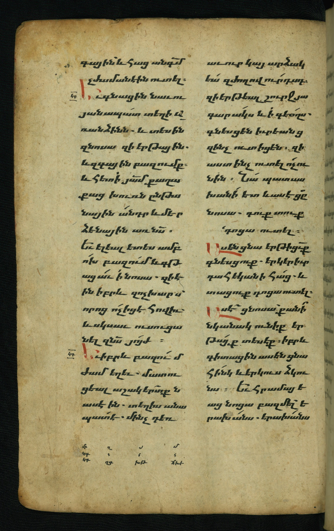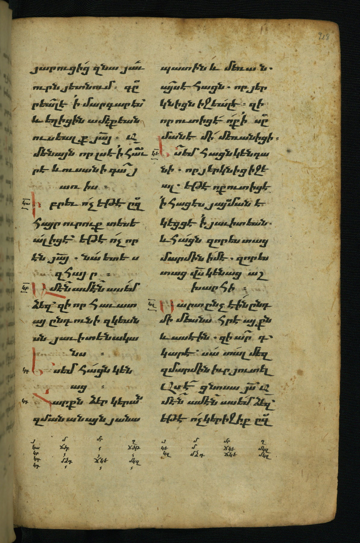 This manuscript was executed in 1475 CE by a scribe identified as Aristakes for a priest named Hakob. It contains a series of sixteen images on the life of Christ preceding the text of the Gospels, as well as the traditional Evangelist portraits, and there are marginal illustrations throughout. The style of the miniatures, which employ brilliant colors and emphasize decorative patterns, is characteristic of manuscript production in the region around Lake Van during the fifteenth century. The style of Lake Van has often been described in relation to schools of Islamic arts of the book. Numerous inscriptions (on fols. 258-260) spanning a few centuries attest to the manuscript's long history of use and revered preservation. The codex's later history included a rebinding with silver covers from Kayseri that date to approximately 1700. This jeweled and enameled silver binding bears a composition of the Adoration of the Magi on the front and the Ascension on the back.