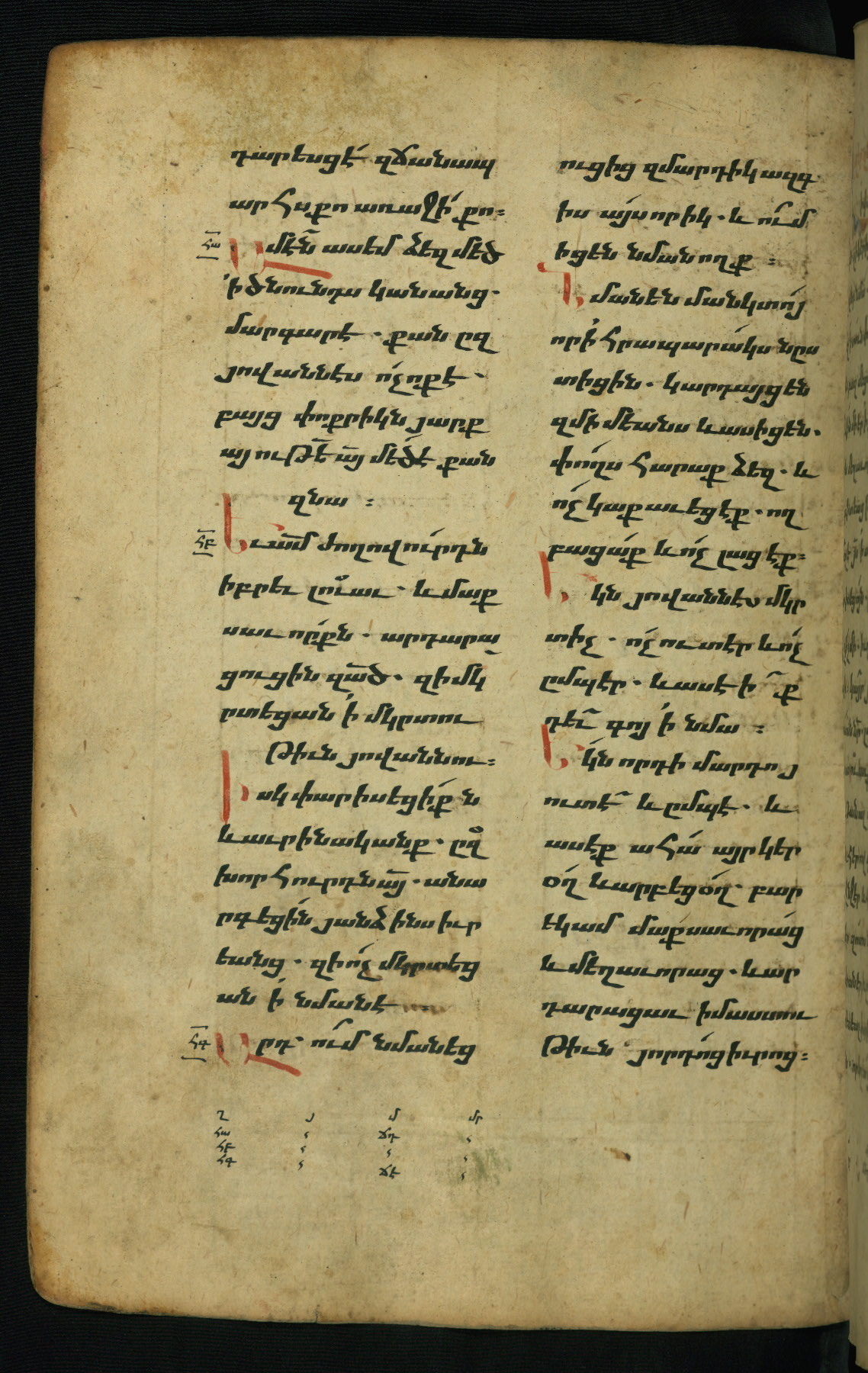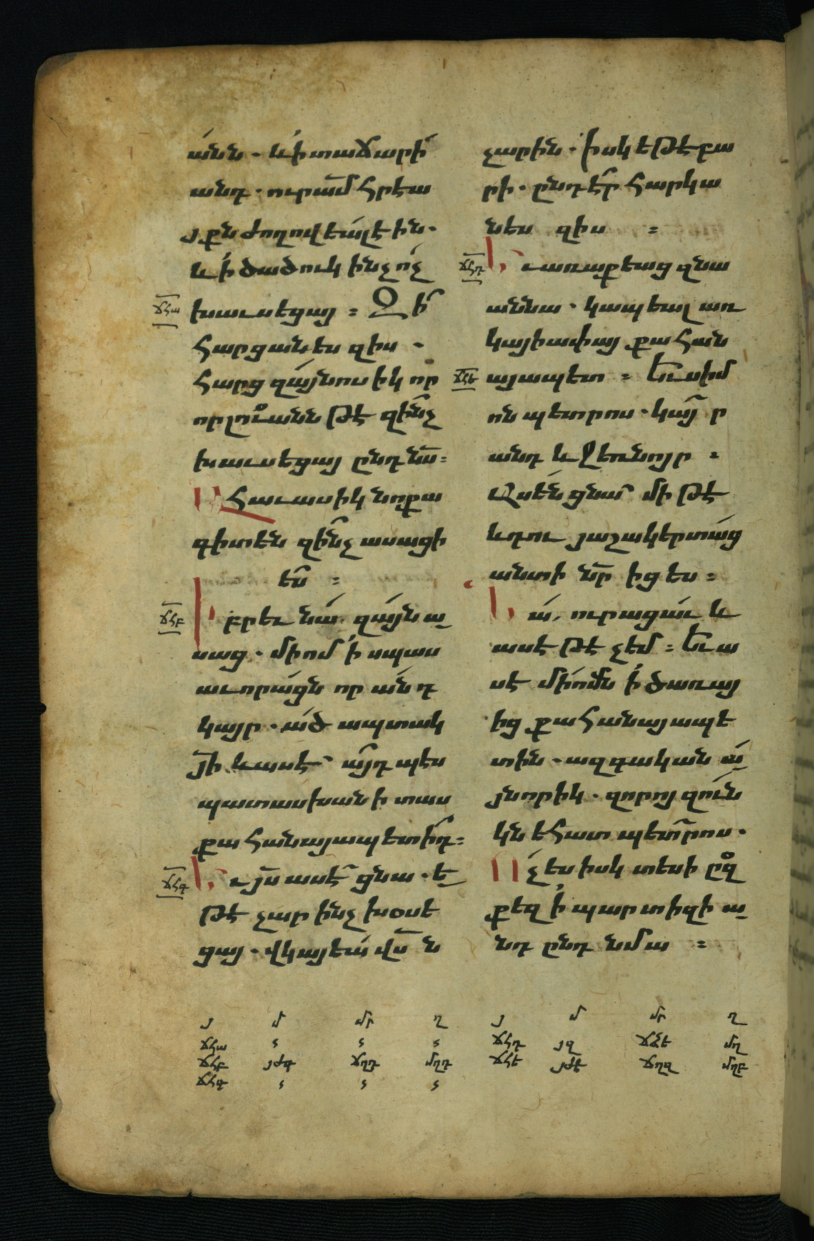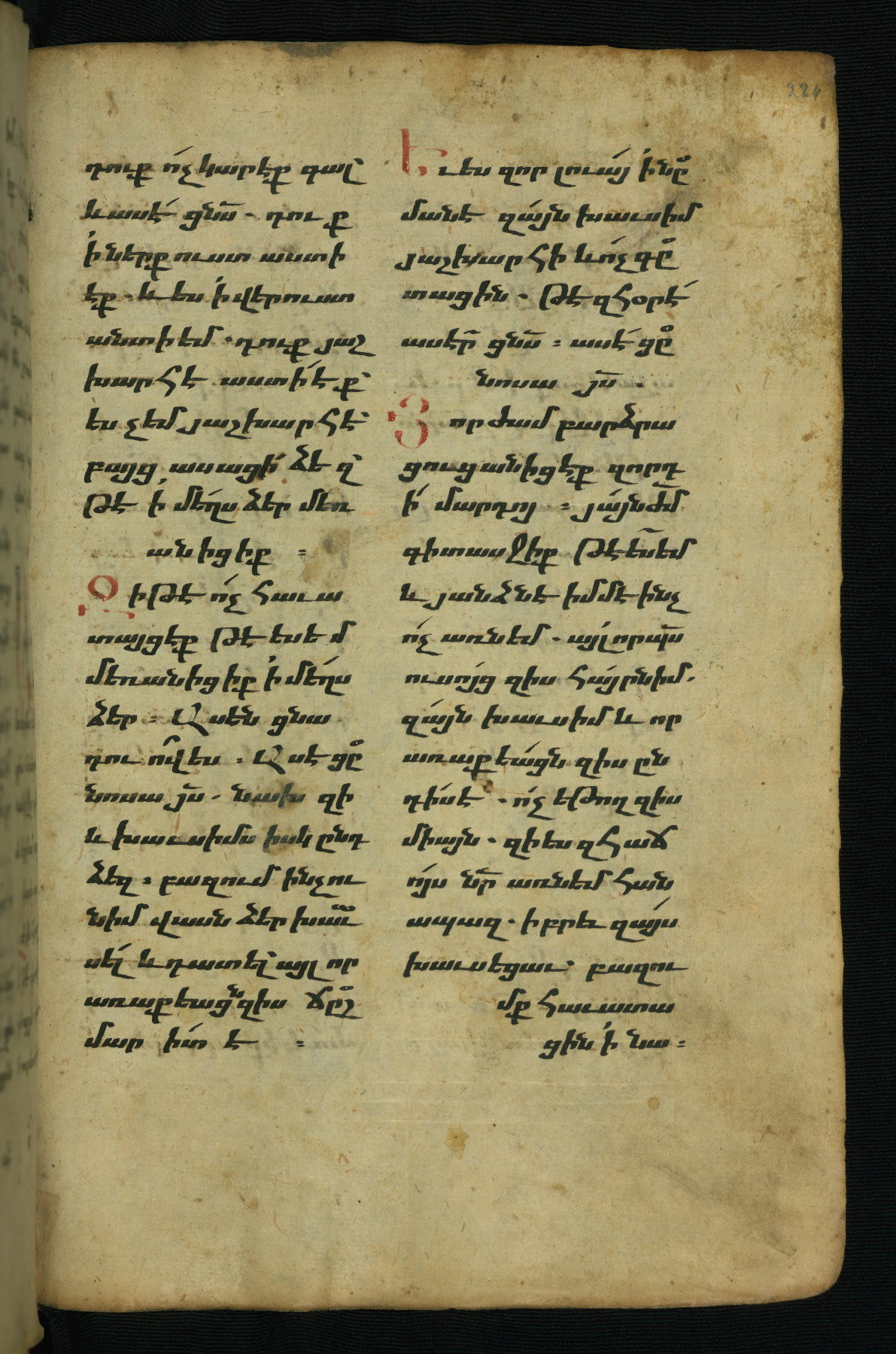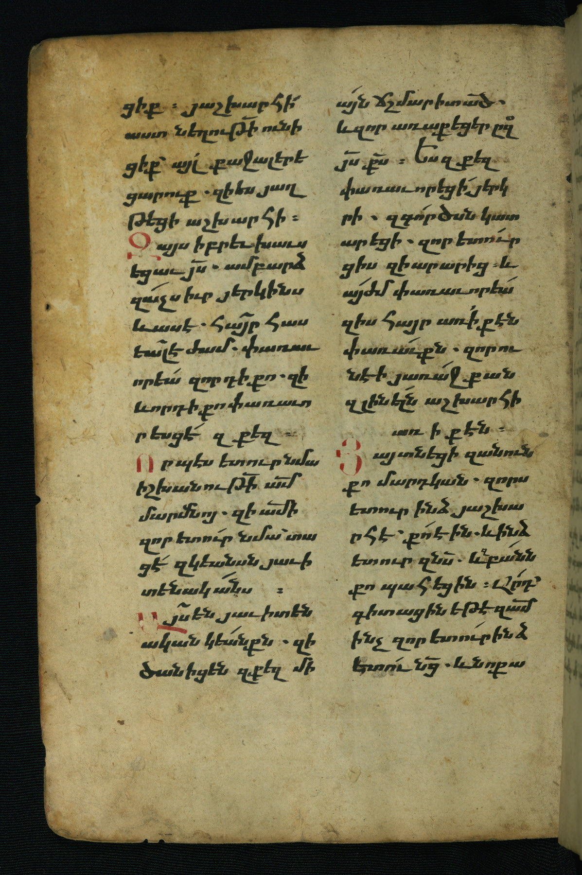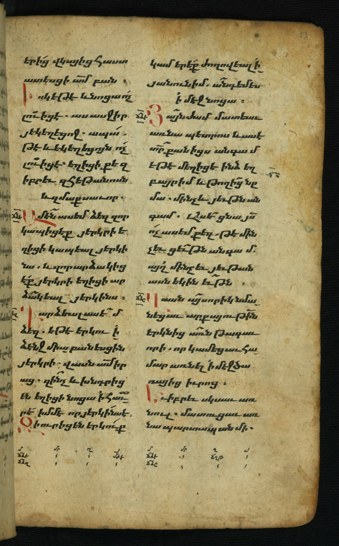 This manuscript was executed in 1475 CE by a scribe identified as Aristakes for a priest named Hakob. It contains a series of sixteen images on the life of Christ preceding the text of the Gospels, as well as the traditional Evangelist portraits, and there are marginal illustrations throughout. The style of the miniatures, which employ brilliant colors and emphasize decorative patterns, is characteristic of manuscript production in the region around Lake Van during the fifteenth century. The style of Lake Van has often been described in relation to schools of Islamic arts of the book. Numerous inscriptions (on fols. 258-260) spanning a few centuries attest to the manuscript's long history of use and revered preservation. The codex's later history included a rebinding with silver covers from Kayseri that date to approximately 1700. This jeweled and enameled silver binding bears a composition of the Adoration of the Magi on the front and the Ascension on the back.