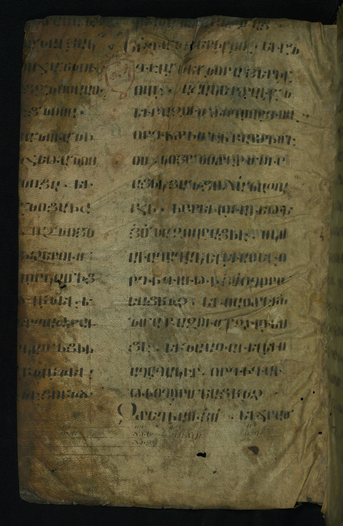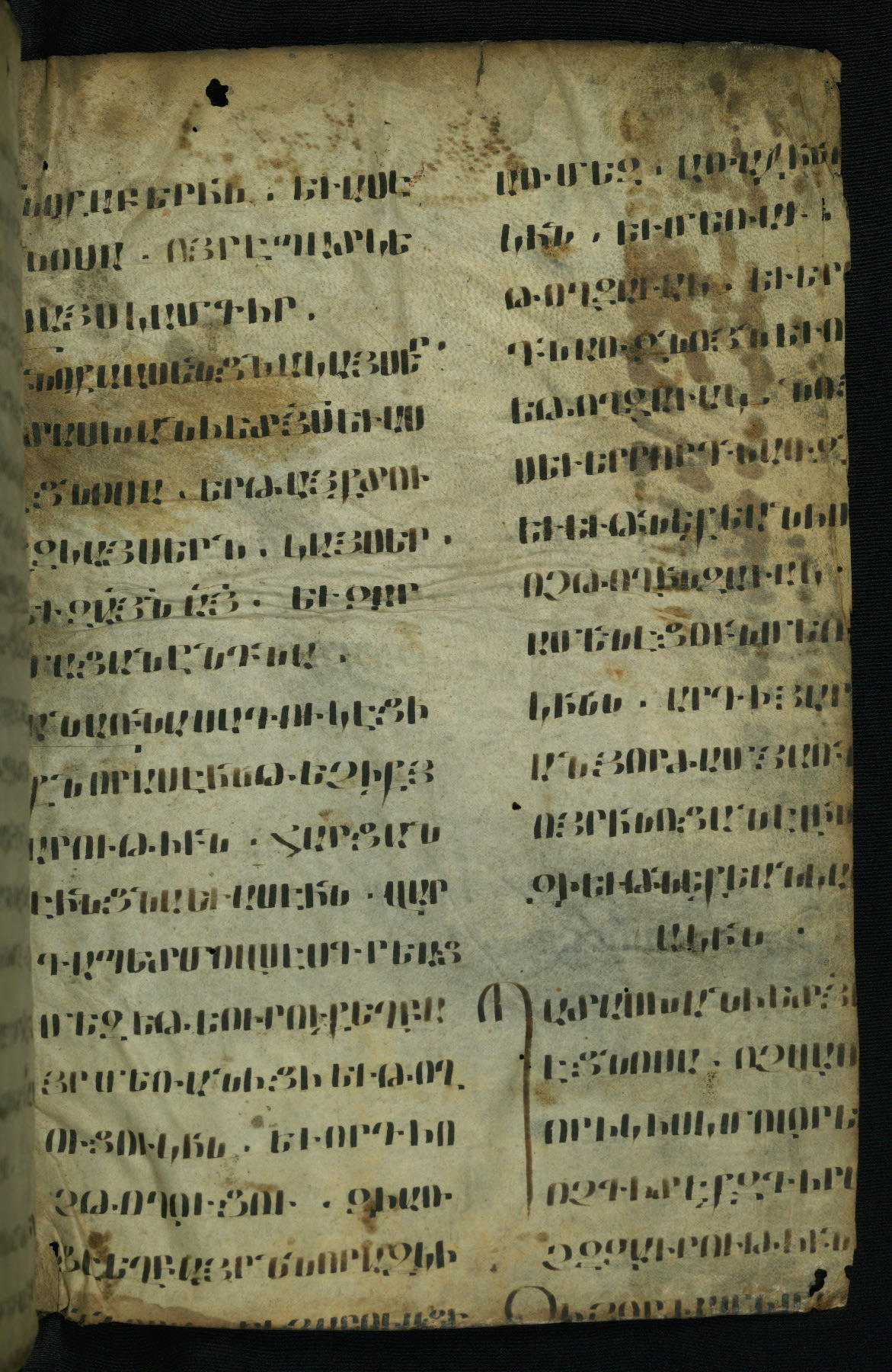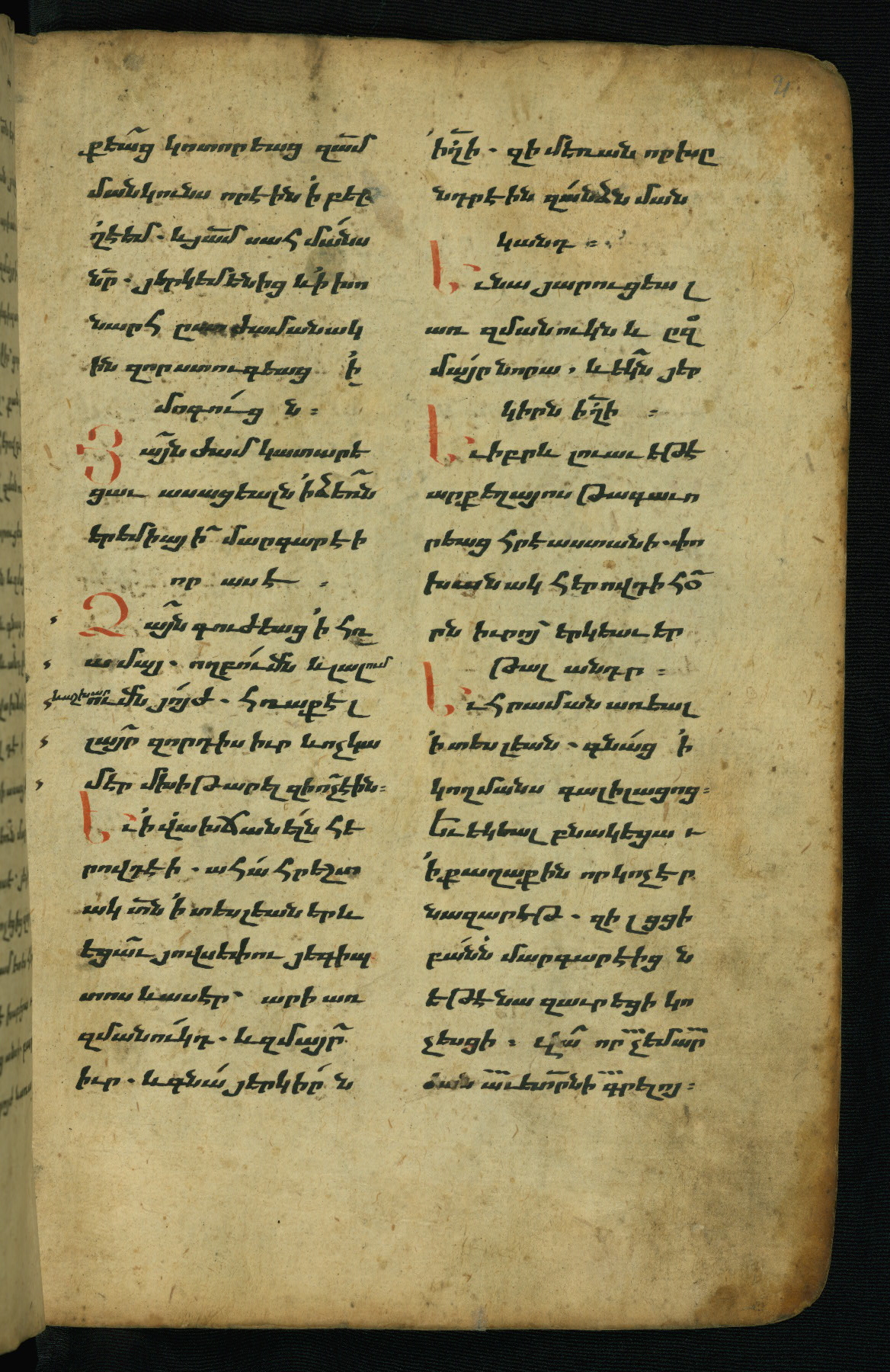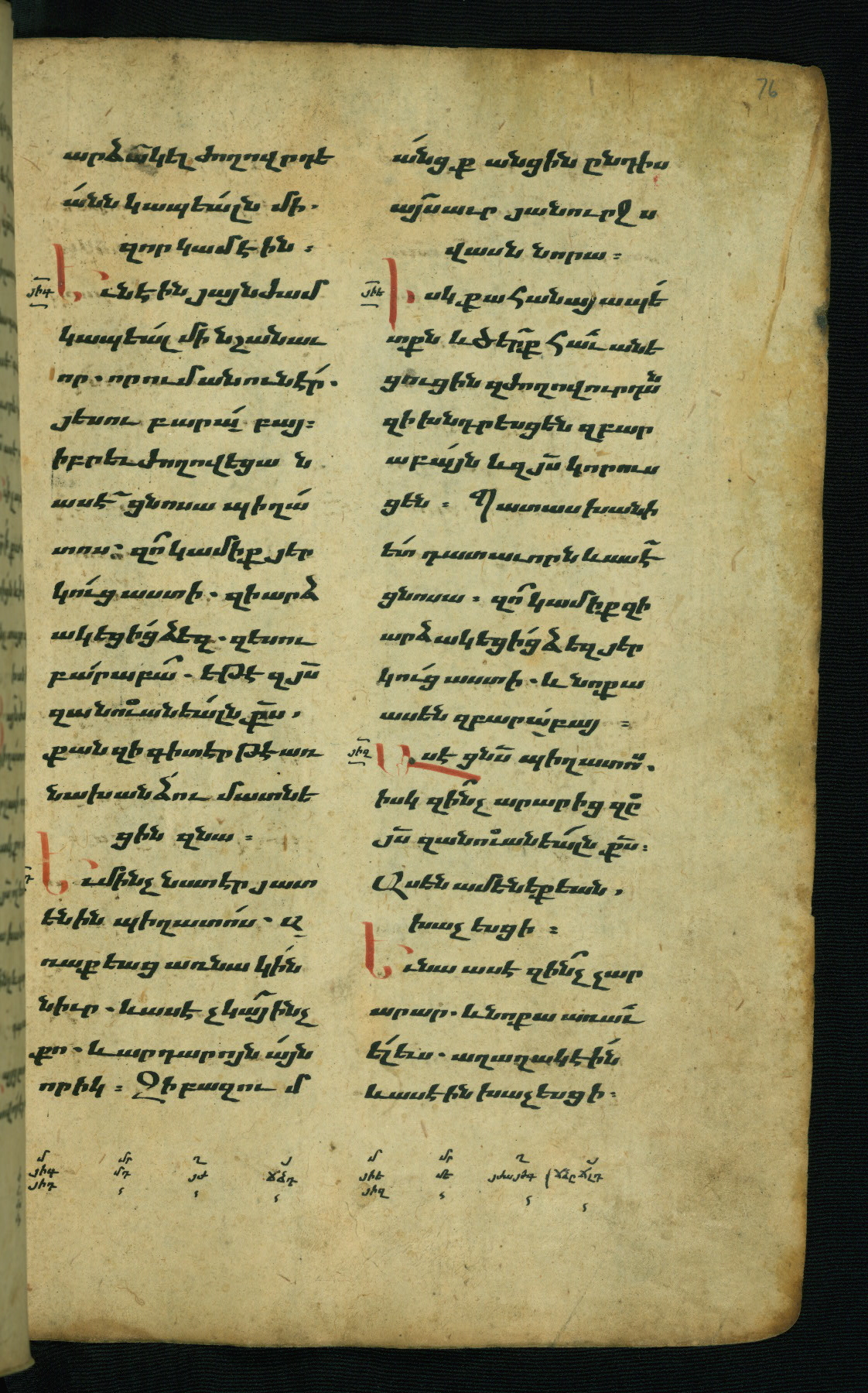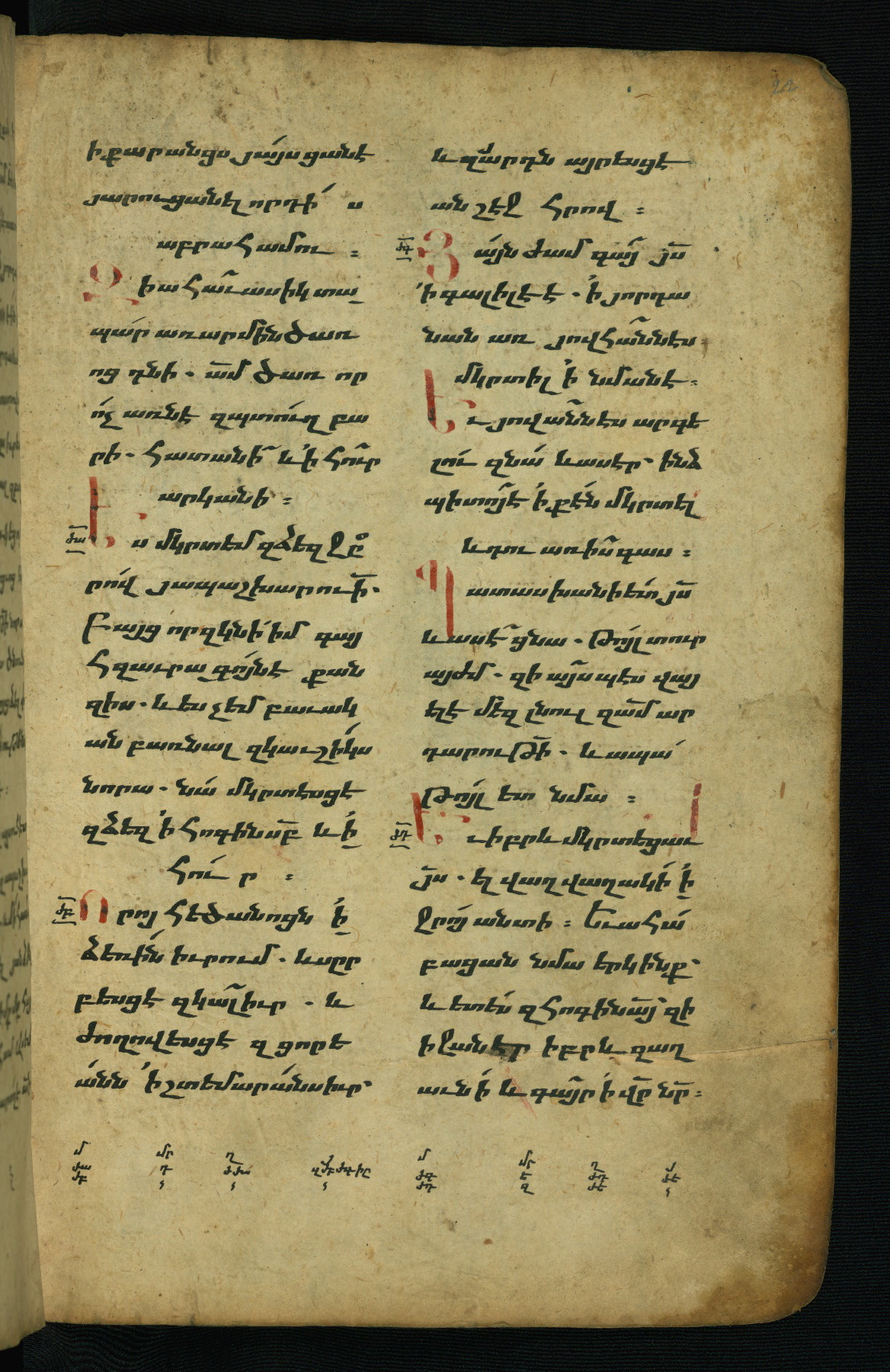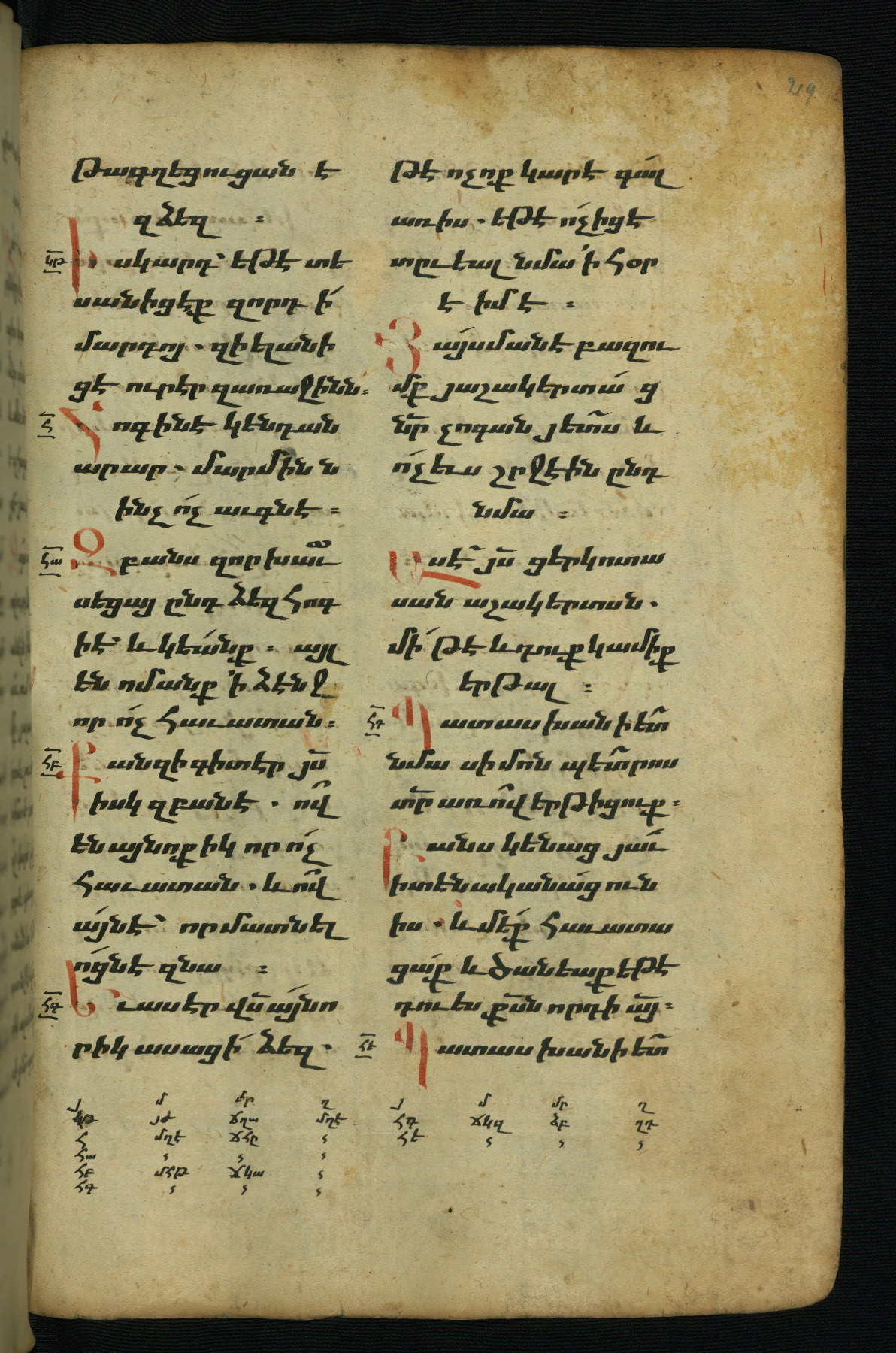 This manuscript was executed in 1475 CE by a scribe identified as Aristakes for a priest named Hakob. It contains a series of sixteen images on the life of Christ preceding the text of the Gospels, as well as the traditional Evangelist portraits, and there are marginal illustrations throughout. The style of the miniatures, which employ brilliant colors and emphasize decorative patterns, is characteristic of manuscript production in the region around Lake Van during the fifteenth century. The style of Lake Van has often been described in relation to schools of Islamic arts of the book. Numerous inscriptions (on fols. 258-260) spanning a few centuries attest to the manuscript's long history of use and revered preservation. The codex's later history included a rebinding with silver covers from Kayseri that date to approximately 1700. This jeweled and enameled silver binding bears a composition of the Adoration of the Magi on the front and the Ascension on the back.