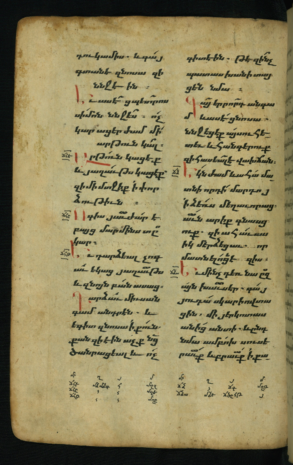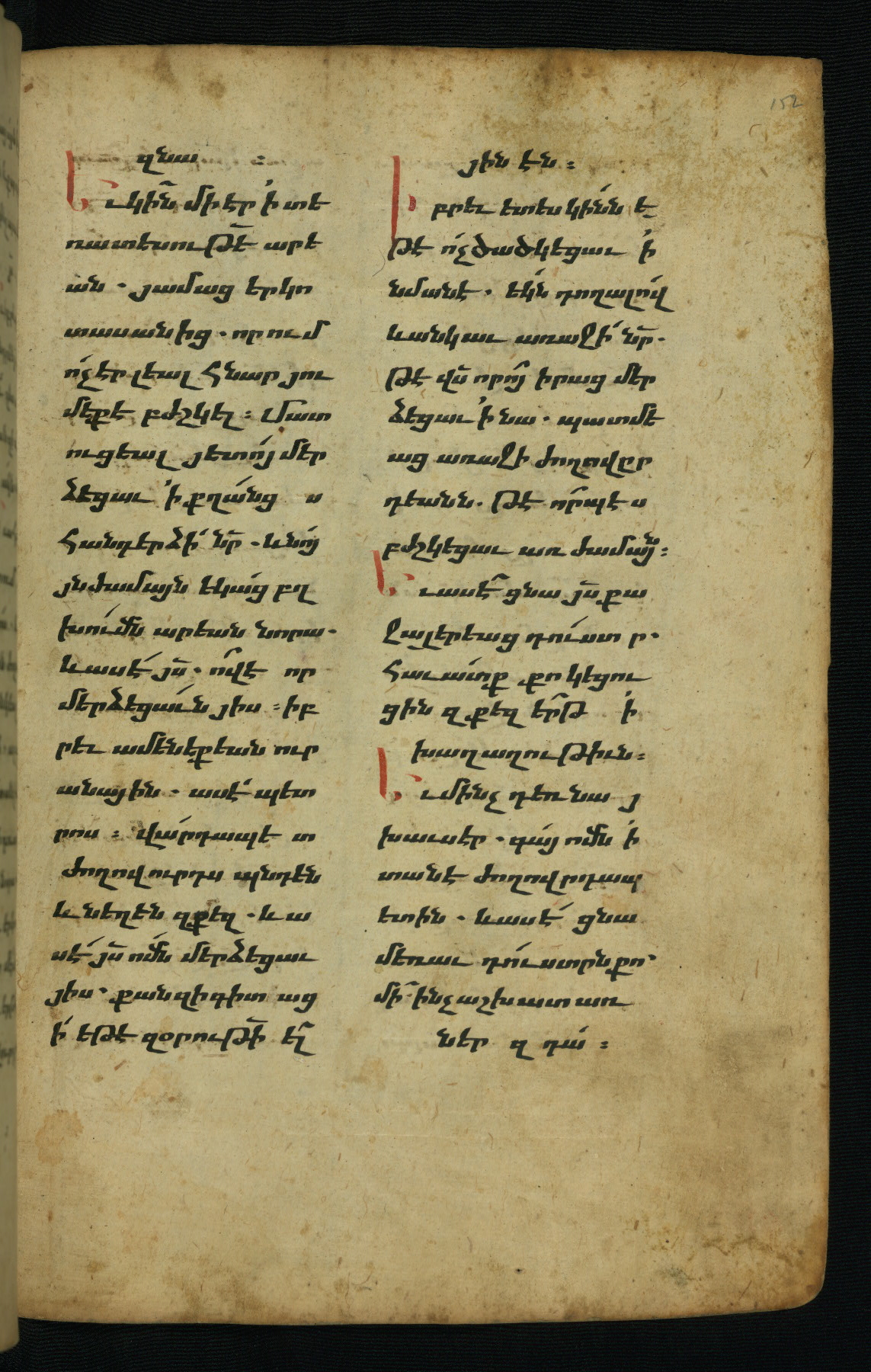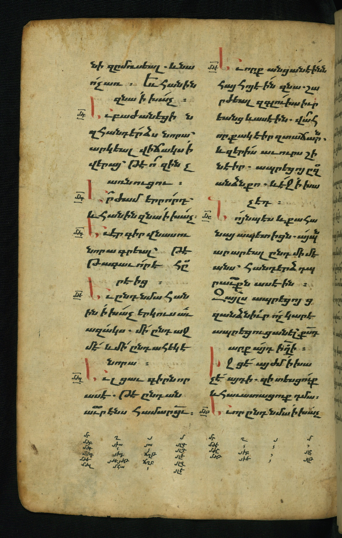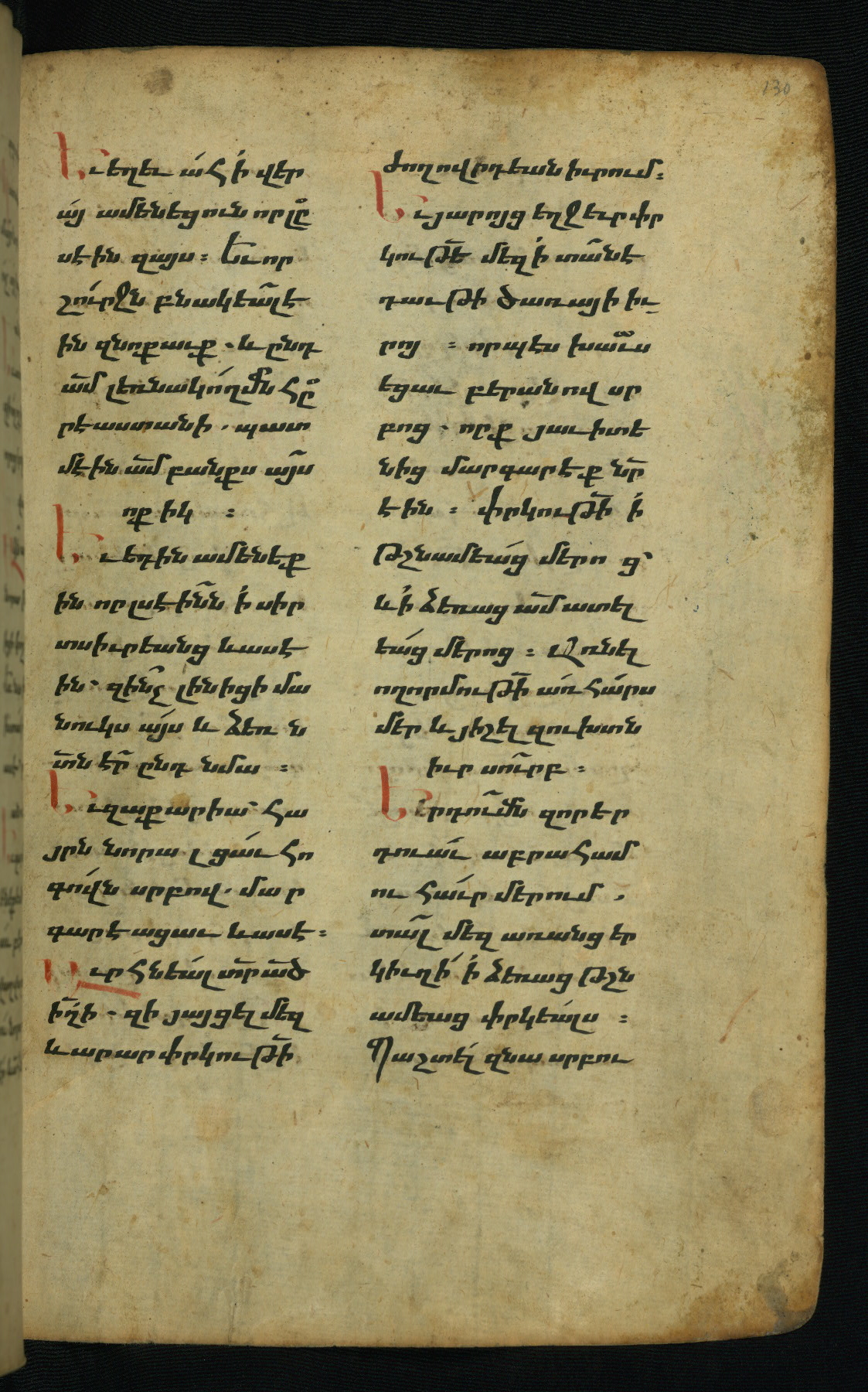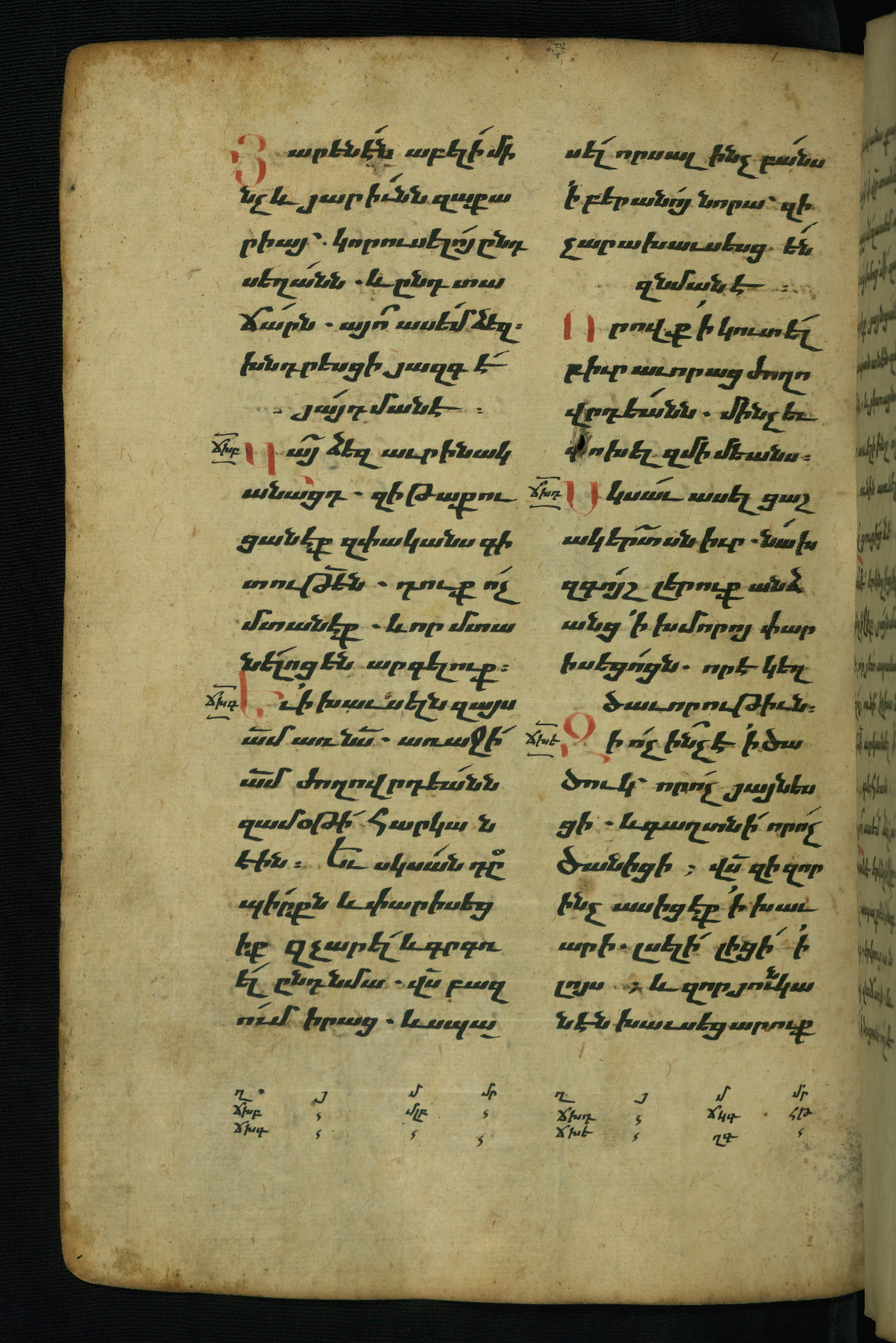 This manuscript was executed in 1475 CE by a scribe identified as Aristakes for a priest named Hakob. It contains a series of sixteen images on the life of Christ preceding the text of the Gospels, as well as the traditional Evangelist portraits, and there are marginal illustrations throughout. The style of the miniatures, which employ brilliant colors and emphasize decorative patterns, is characteristic of manuscript production in the region around Lake Van during the fifteenth century. The style of Lake Van has often been described in relation to schools of Islamic arts of the book. Numerous inscriptions (on fols. 258-260) spanning a few centuries attest to the manuscript's long history of use and revered preservation. The codex's later history included a rebinding with silver covers from Kayseri that date to approximately 1700. This jeweled and enameled silver binding bears a composition of the Adoration of the Magi on the front and the Ascension on the back.