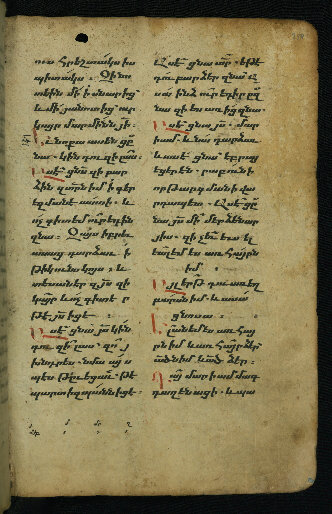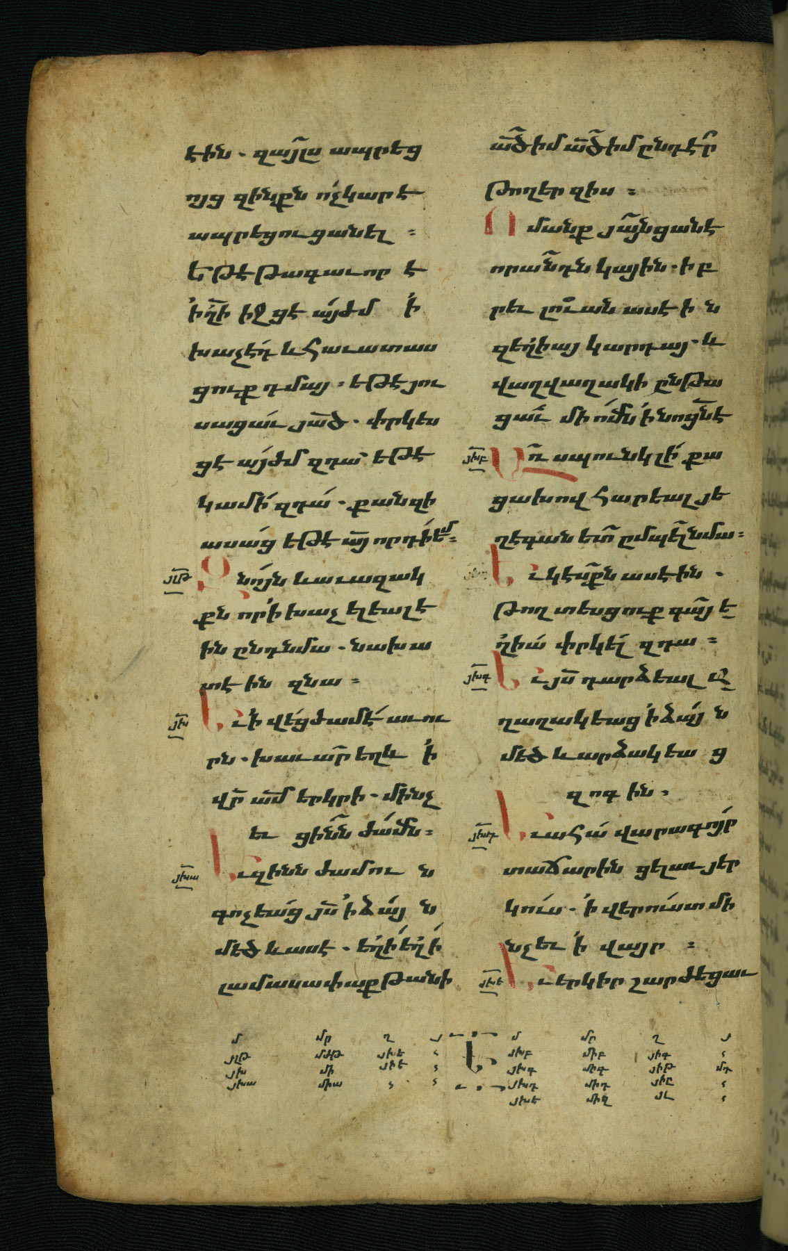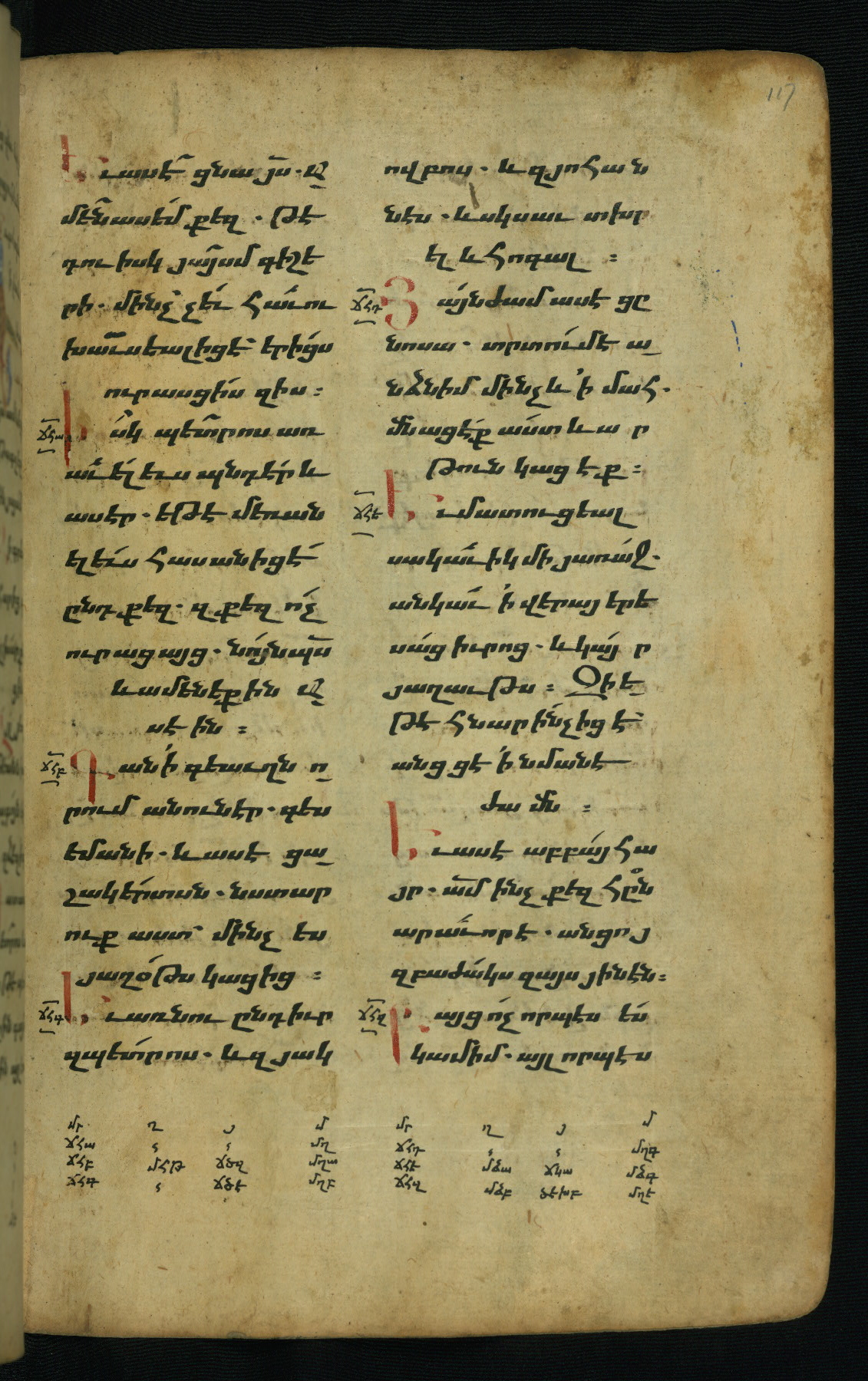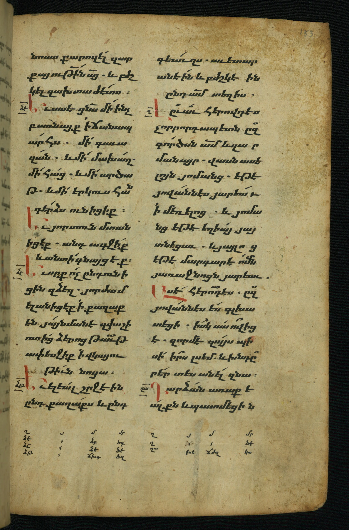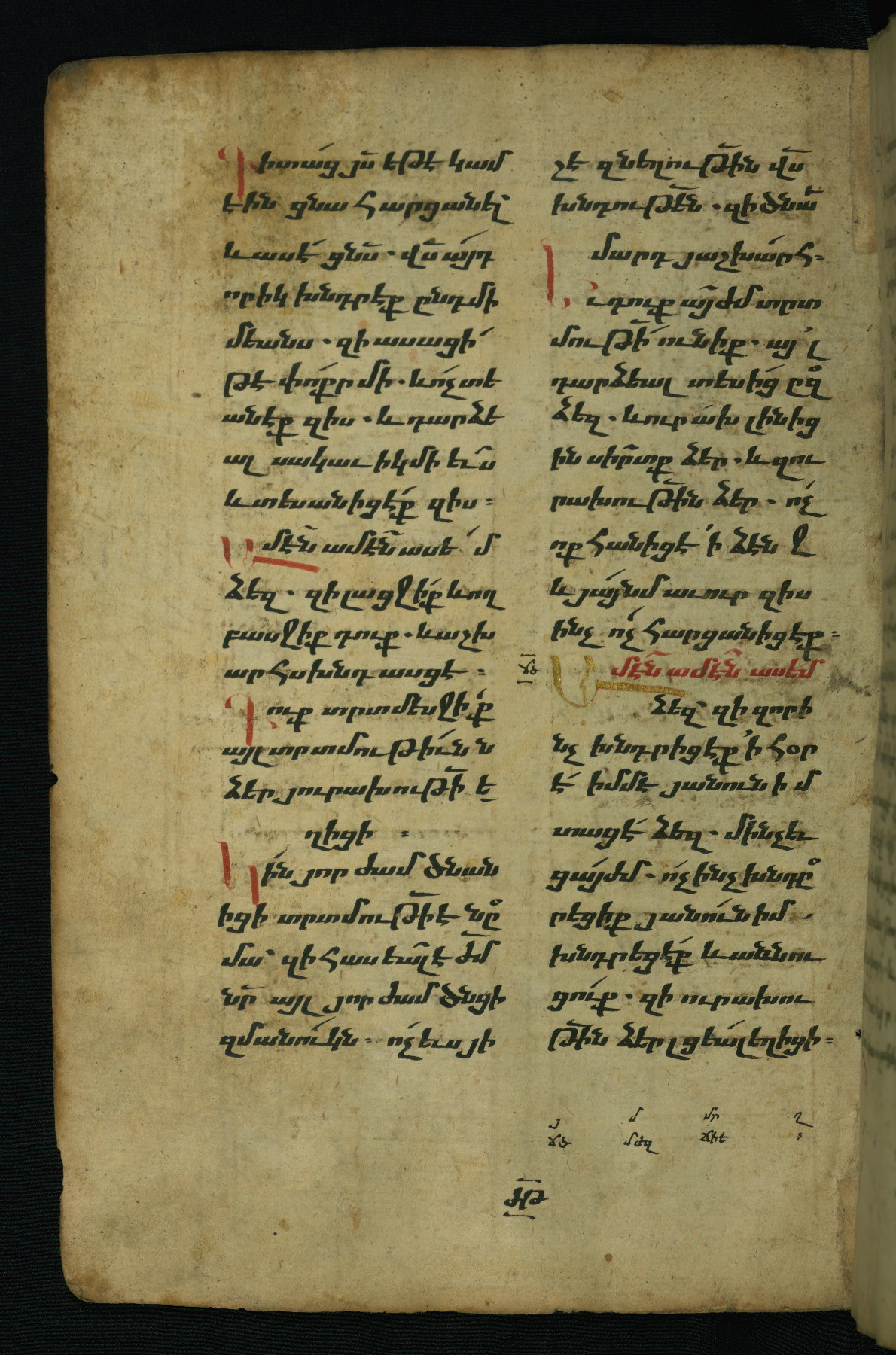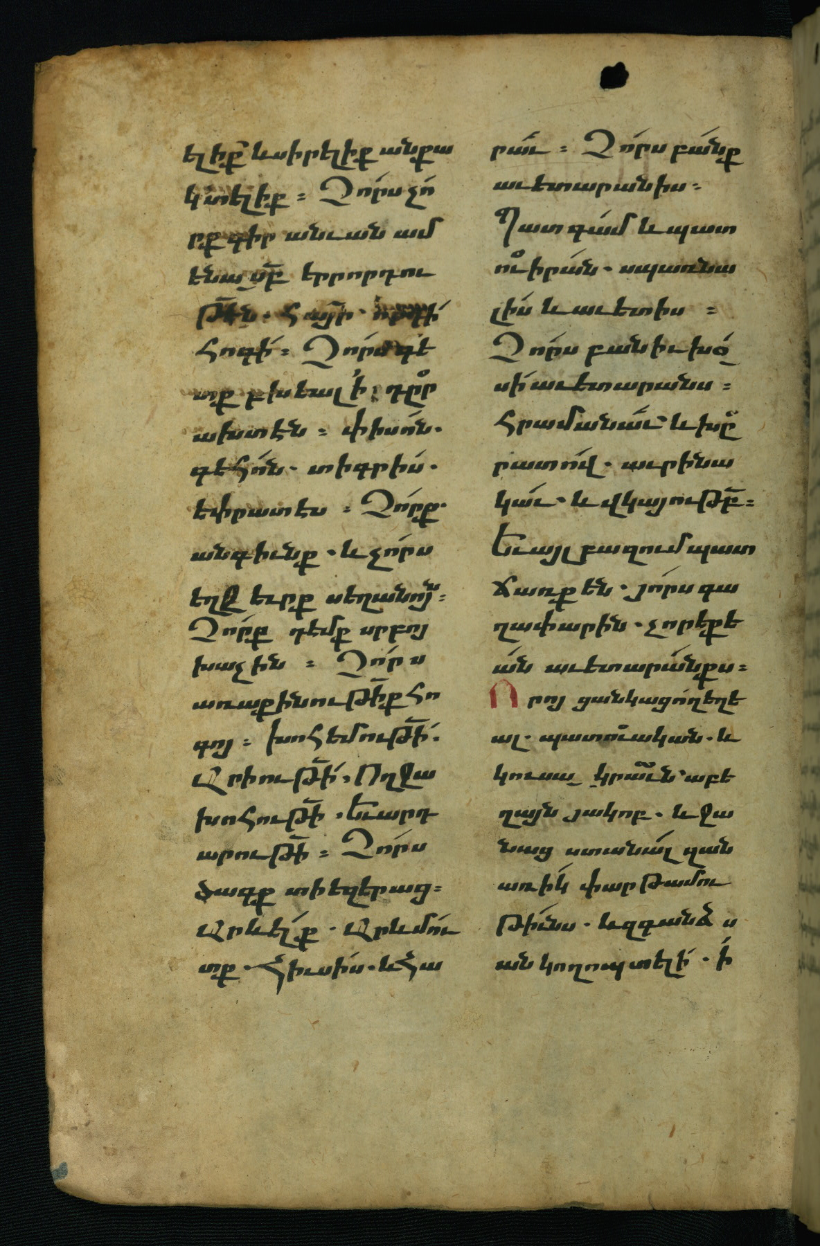 This manuscript was executed in 1475 CE by a scribe identified as Aristakes for a priest named Hakob. It contains a series of sixteen images on the life of Christ preceding the text of the Gospels, as well as the traditional Evangelist portraits, and there are marginal illustrations throughout. The style of the miniatures, which employ brilliant colors and emphasize decorative patterns, is characteristic of manuscript production in the region around Lake Van during the fifteenth century. The style of Lake Van has often been described in relation to schools of Islamic arts of the book. Numerous inscriptions (on fols. 258-260) spanning a few centuries attest to the manuscript's long history of use and revered preservation. The codex's later history included a rebinding with silver covers from Kayseri that date to approximately 1700. This jeweled and enameled silver binding bears a composition of the Adoration of the Magi on the front and the Ascension on the back.