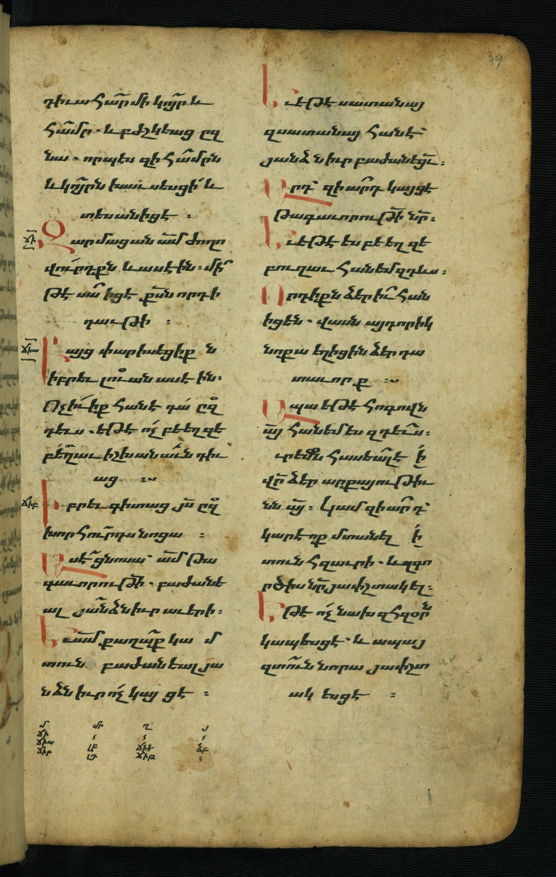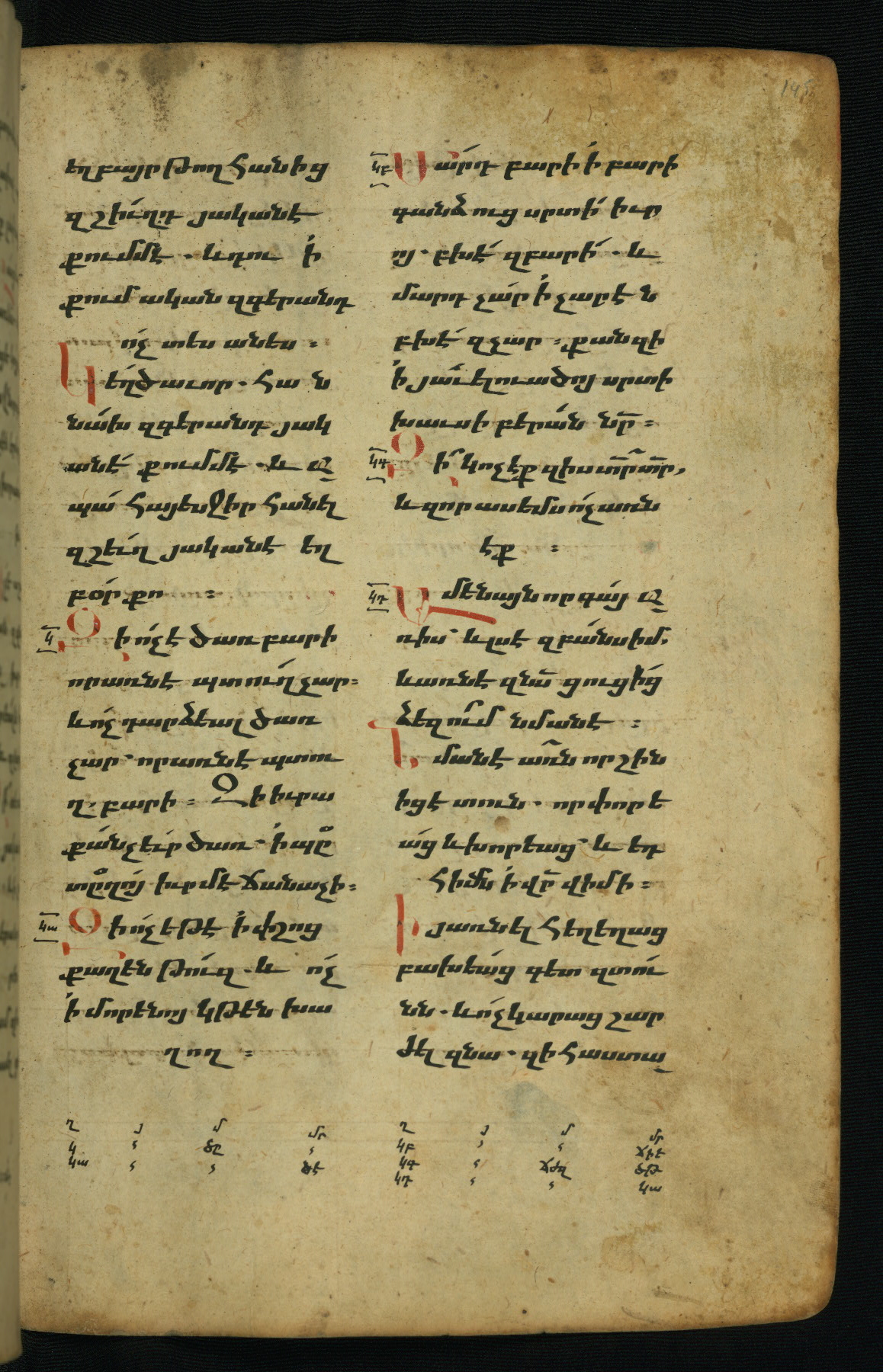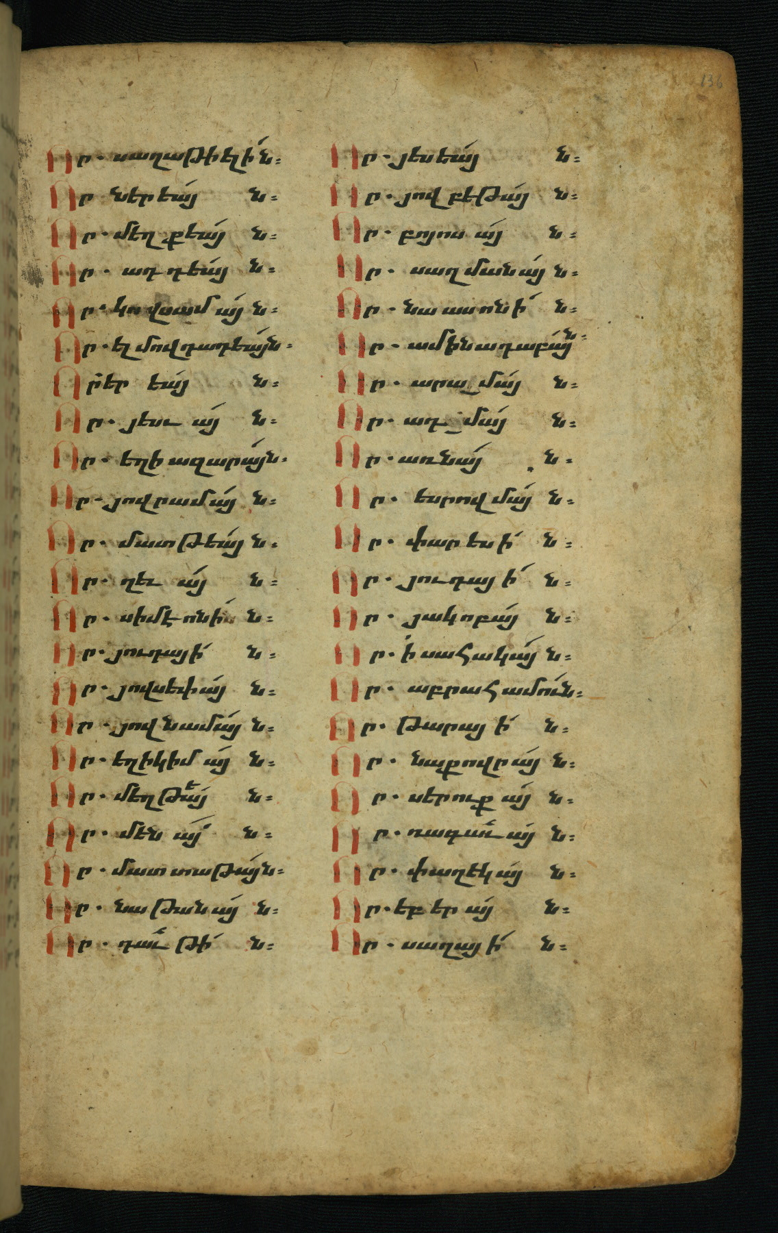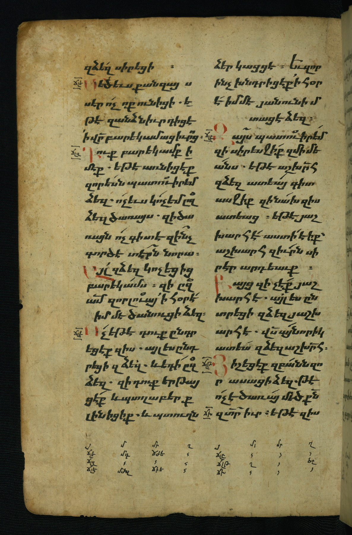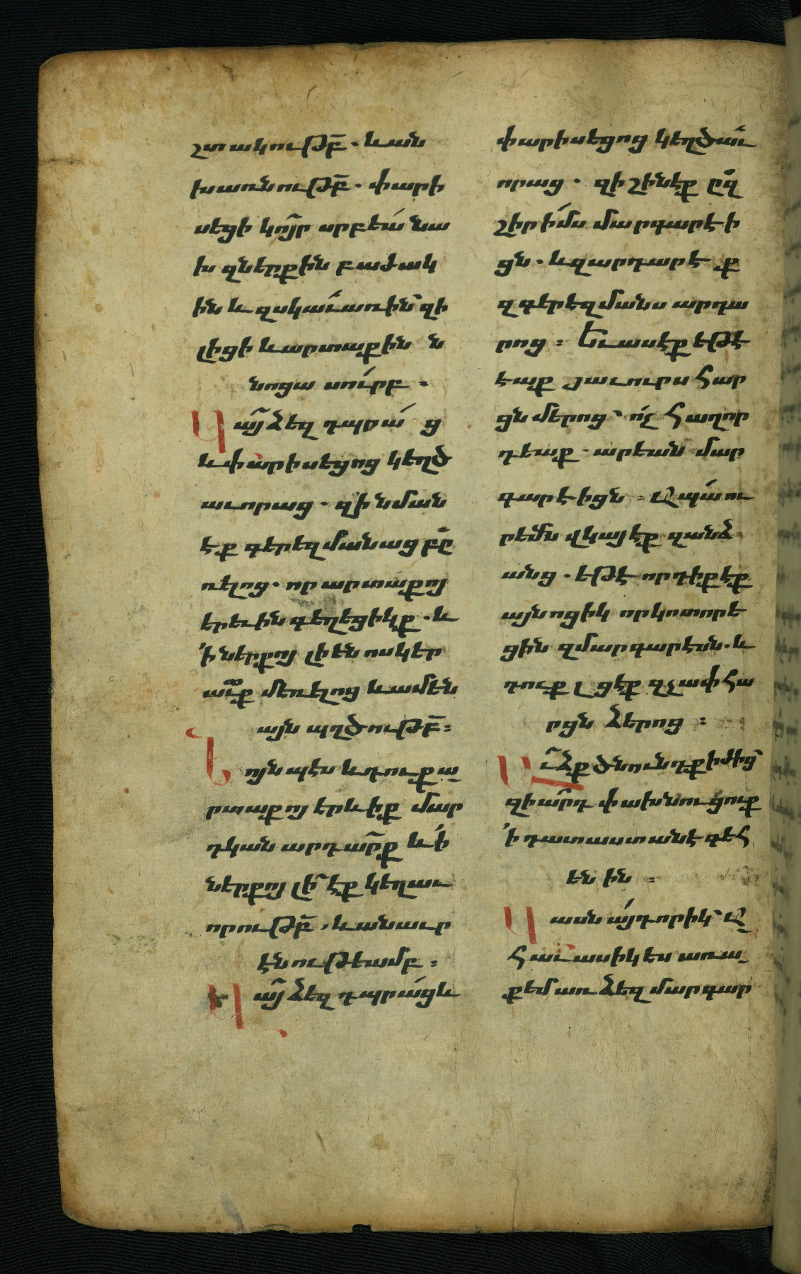 This manuscript was executed in 1475 CE by a scribe identified as Aristakes for a priest named Hakob. It contains a series of sixteen images on the life of Christ preceding the text of the Gospels, as well as the traditional Evangelist portraits, and there are marginal illustrations throughout. The style of the miniatures, which employ brilliant colors and emphasize decorative patterns, is characteristic of manuscript production in the region around Lake Van during the fifteenth century. The style of Lake Van has often been described in relation to schools of Islamic arts of the book. Numerous inscriptions (on fols. 258-260) spanning a few centuries attest to the manuscript's long history of use and revered preservation. The codex's later history included a rebinding with silver covers from Kayseri that date to approximately 1700. This jeweled and enameled silver binding bears a composition of the Adoration of the Magi on the front and the Ascension on the back.