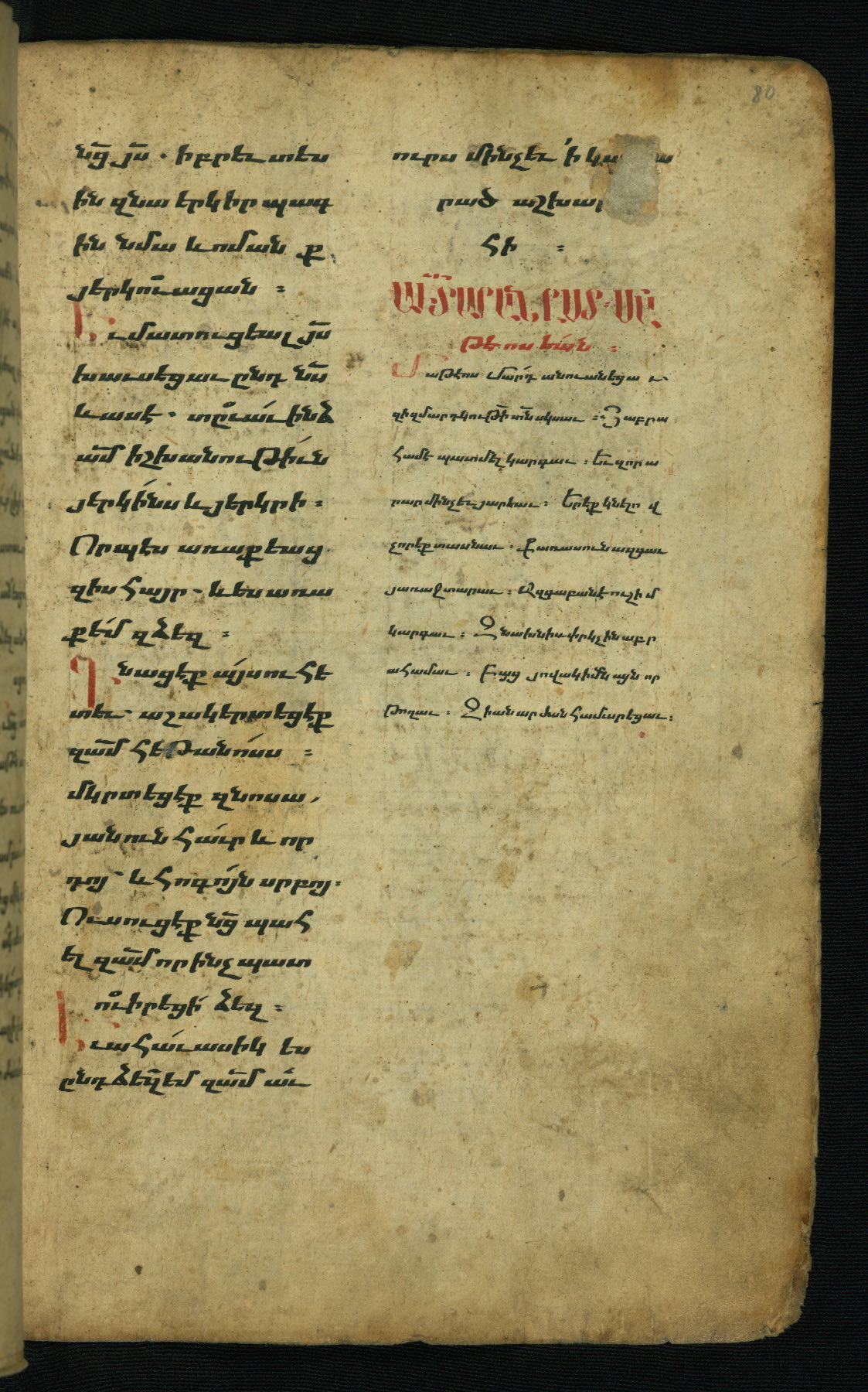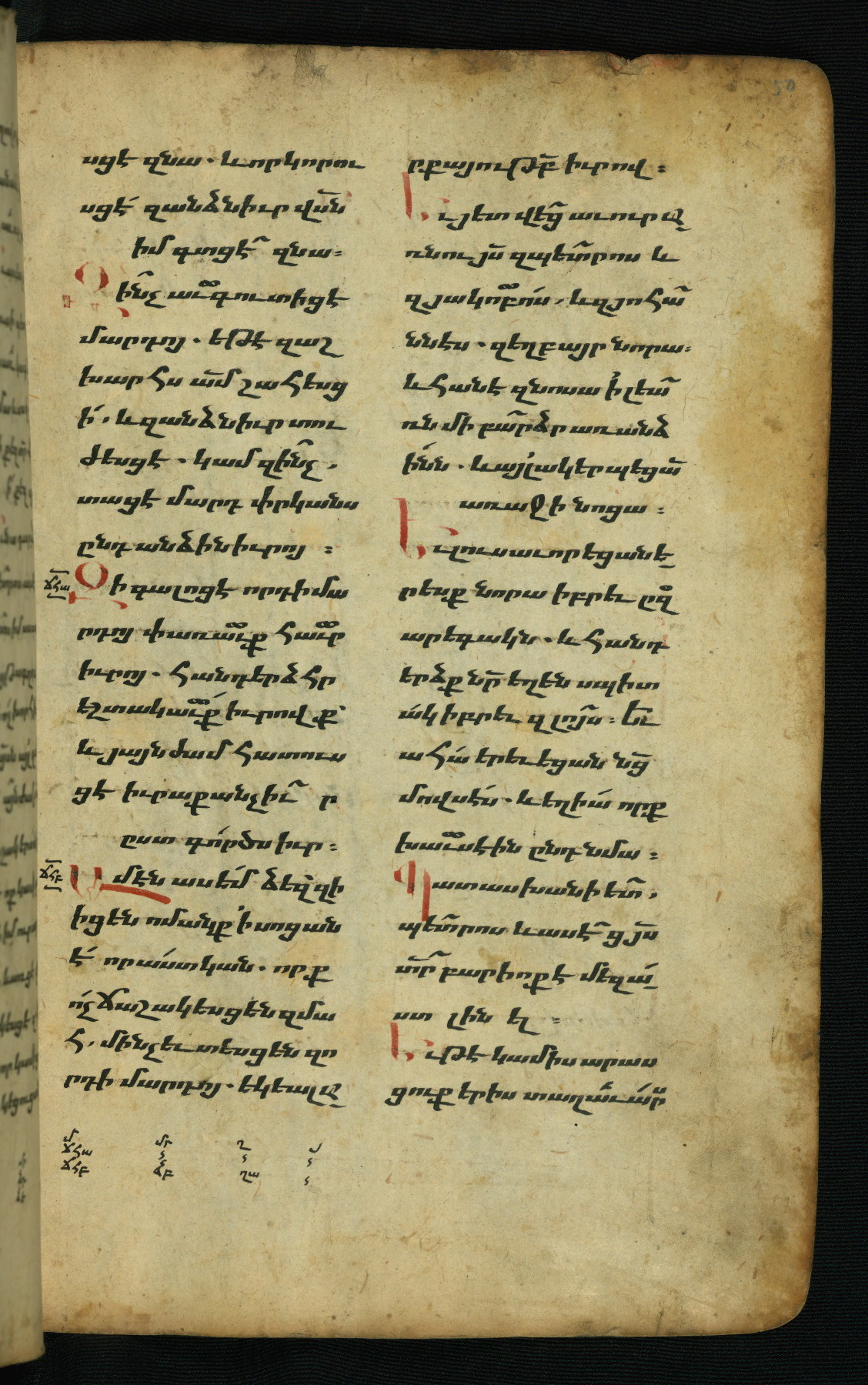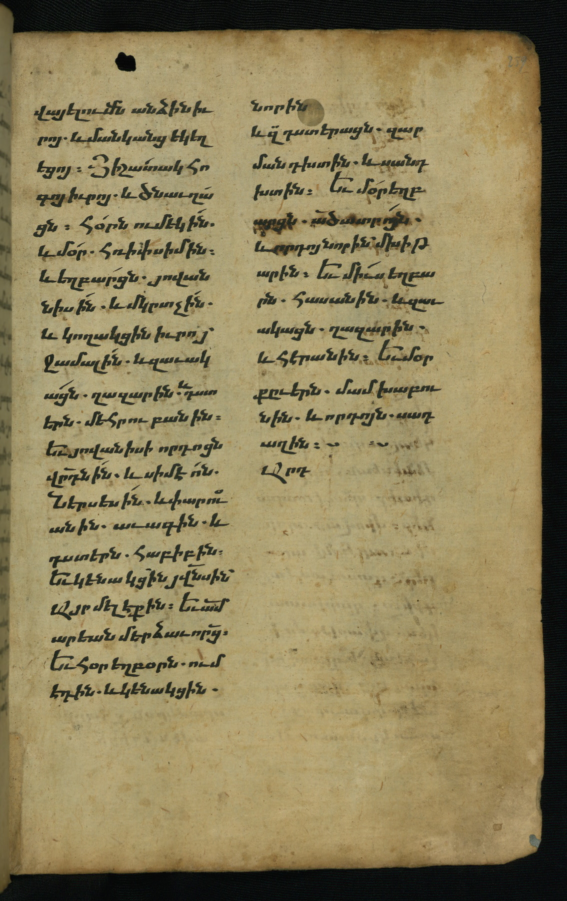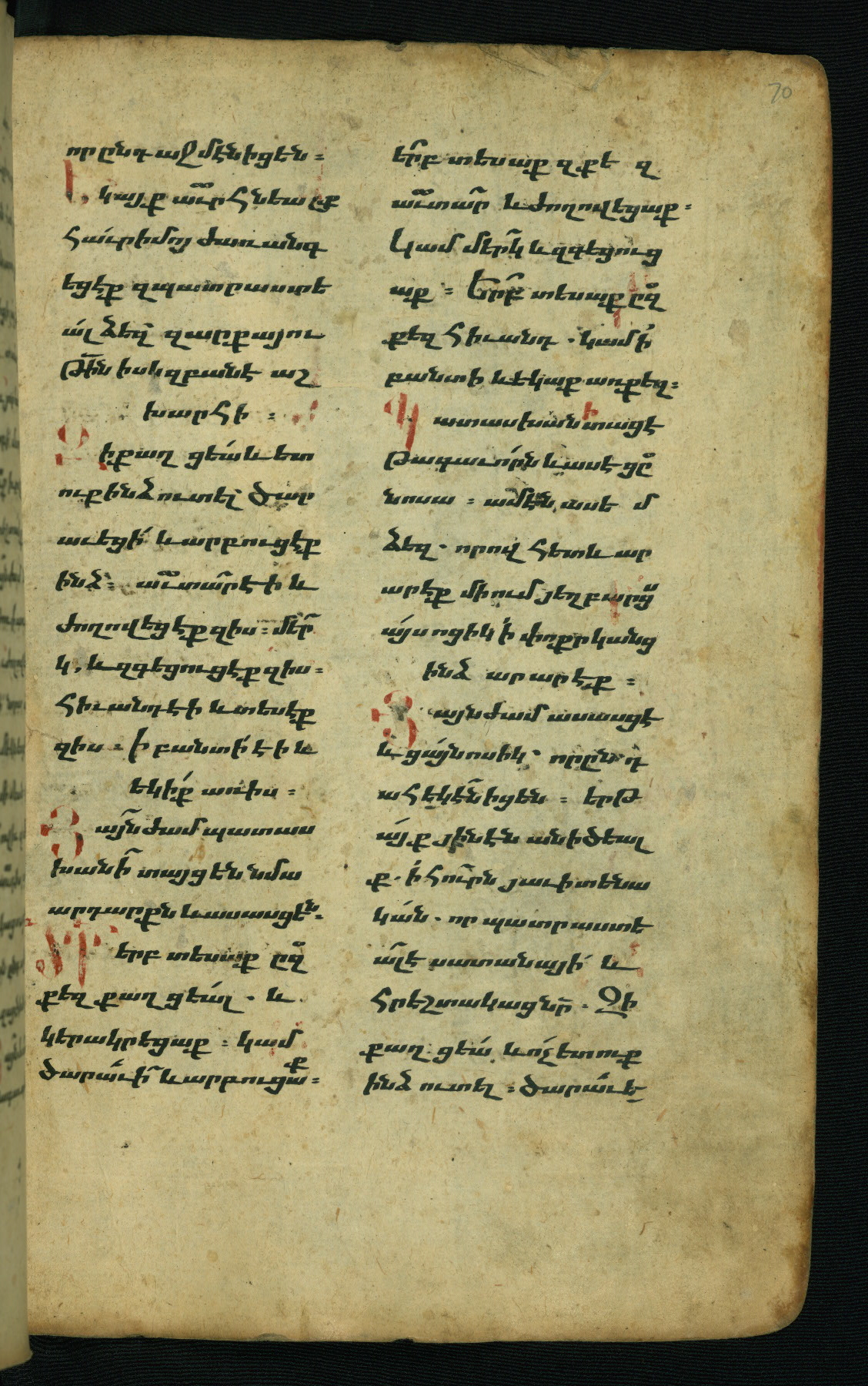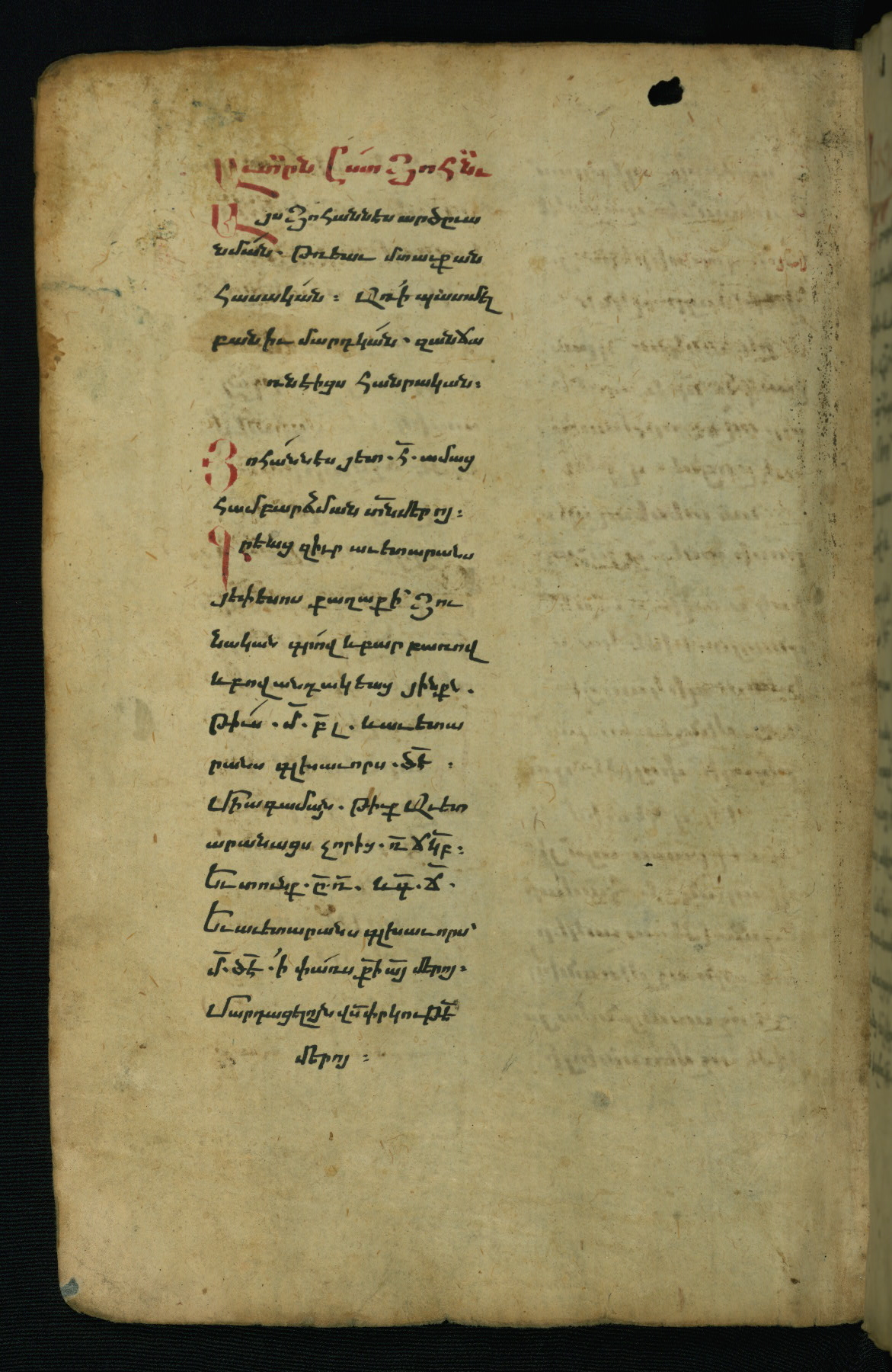 This manuscript was executed in 1475 CE by a scribe identified as Aristakes for a priest named Hakob. It contains a series of sixteen images on the life of Christ preceding the text of the Gospels, as well as the traditional Evangelist portraits, and there are marginal illustrations throughout. The style of the miniatures, which employ brilliant colors and emphasize decorative patterns, is characteristic of manuscript production in the region around Lake Van during the fifteenth century. The style of Lake Van has often been described in relation to schools of Islamic arts of the book. Numerous inscriptions (on fols. 258-260) spanning a few centuries attest to the manuscript's long history of use and revered preservation. The codex's later history included a rebinding with silver covers from Kayseri that date to approximately 1700. This jeweled and enameled silver binding bears a composition of the Adoration of the Magi on the front and the Ascension on the back.