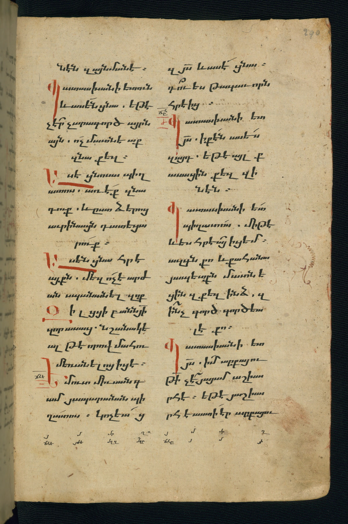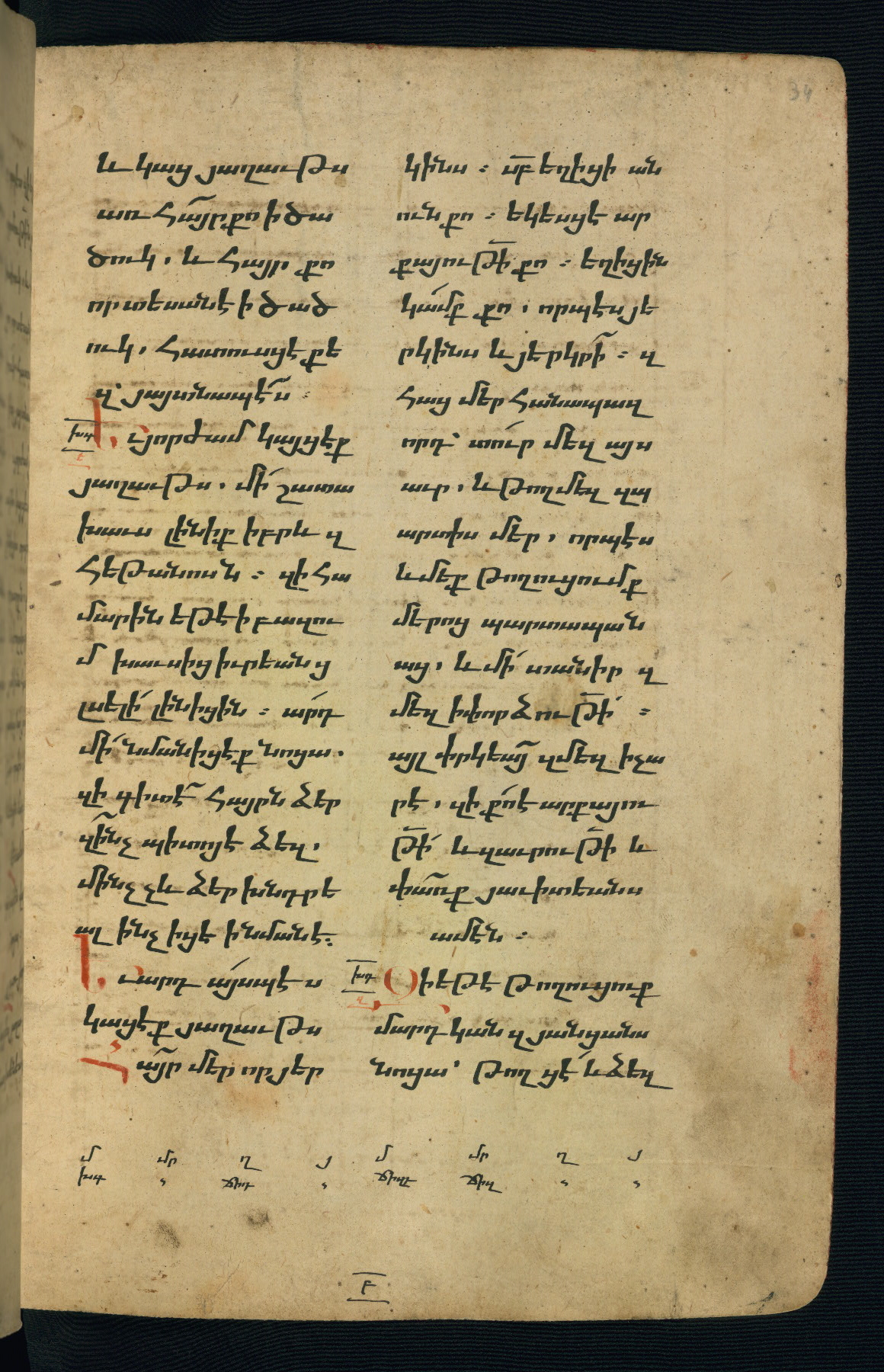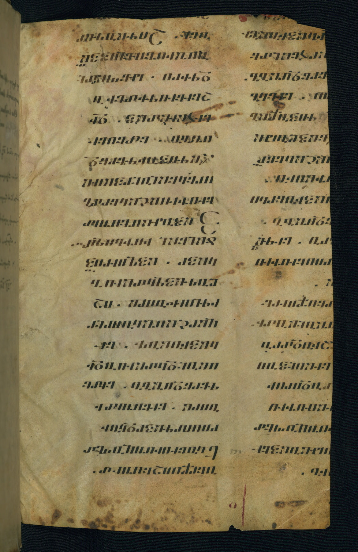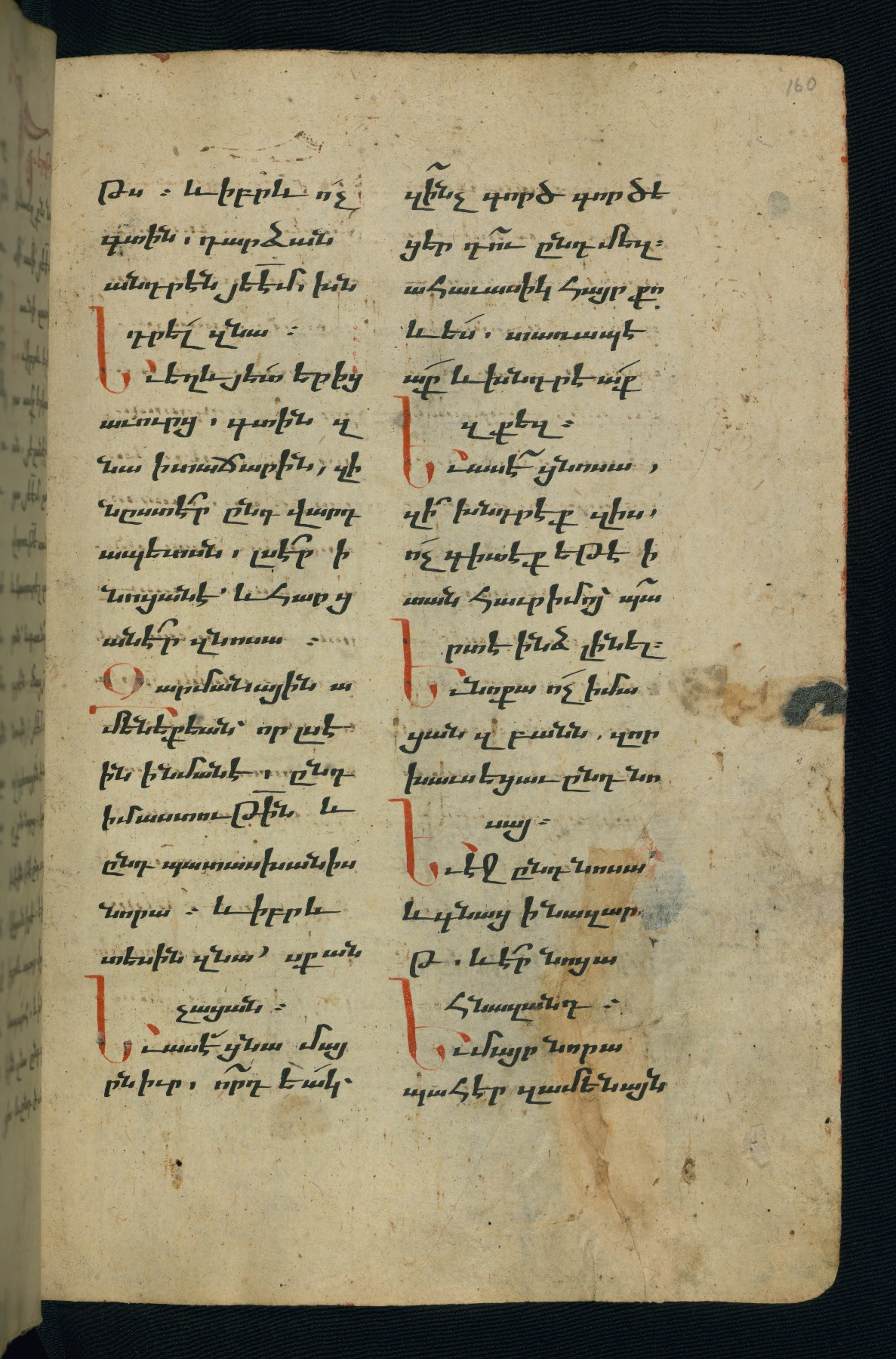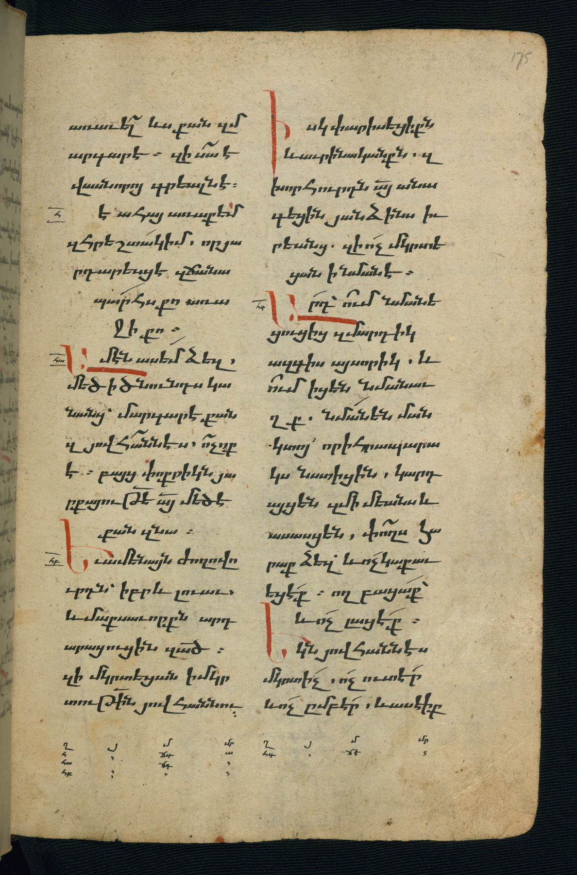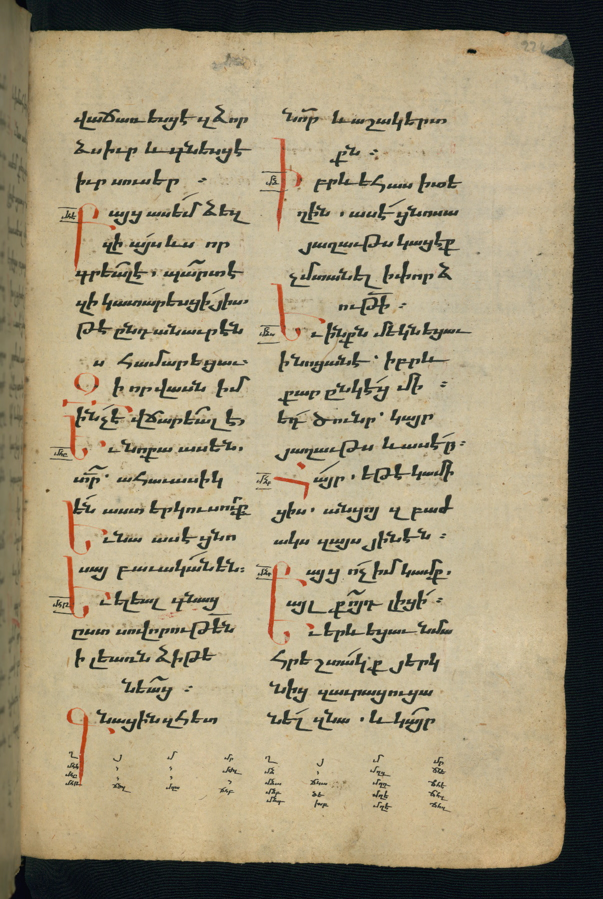 This Armenian Gospel book was produced in 904 of the Armenian era (1455 CE) at the monastery of Gamałiēl in Xizan by the scribe Yohannēs Vardapet, son of Vardan and Dilšat, and was illuminated by the priest Xačʿatur. The priest Pʿilipos commissioned the manuscript as a memorial to himself, his parents Łazar and Xutʿlumēlikʿ, and other relatives listed in the colophon on fols. 300r to 301v. Pʿilipos is depicted on fol. 14v alongside his brothers Yusēpʿ and Sultanša, as they kneel before the Virgin and Child enthroned (Theotokos). The book contains twenty-six full-page polychrome miniatures, including four Evangelist portraits; ornately designed canon tables; four decorated incipit pages; numerous marginal miniatures of floral and faunal motifs; and nineteen marginal miniatures of biblical characters or allusions to biblical narratives.
