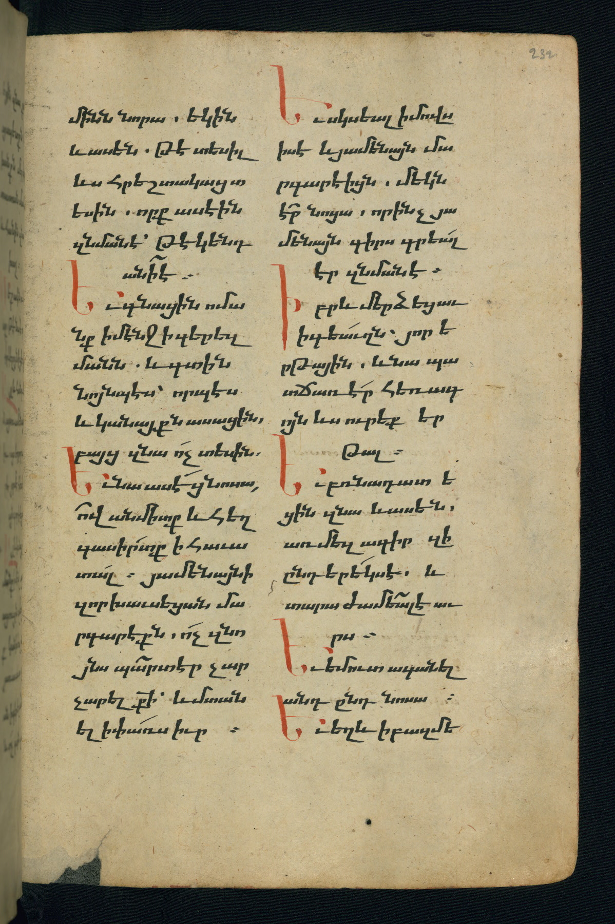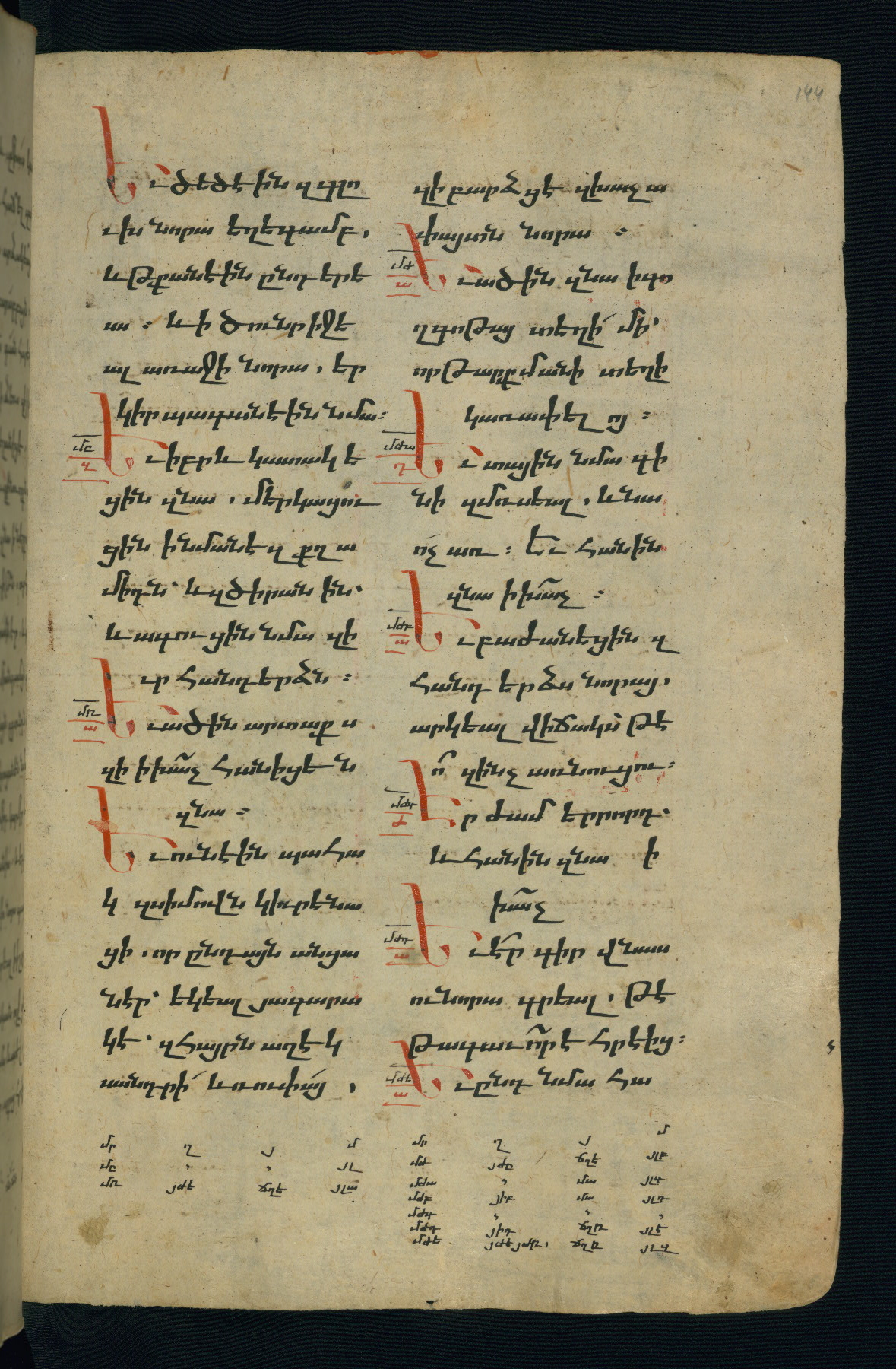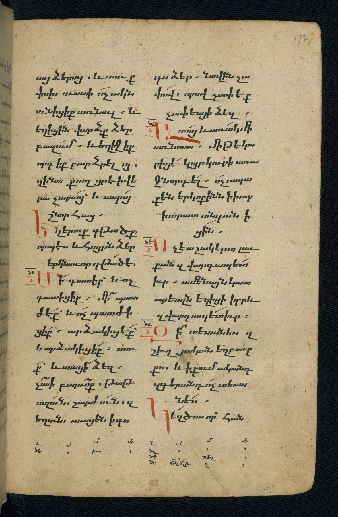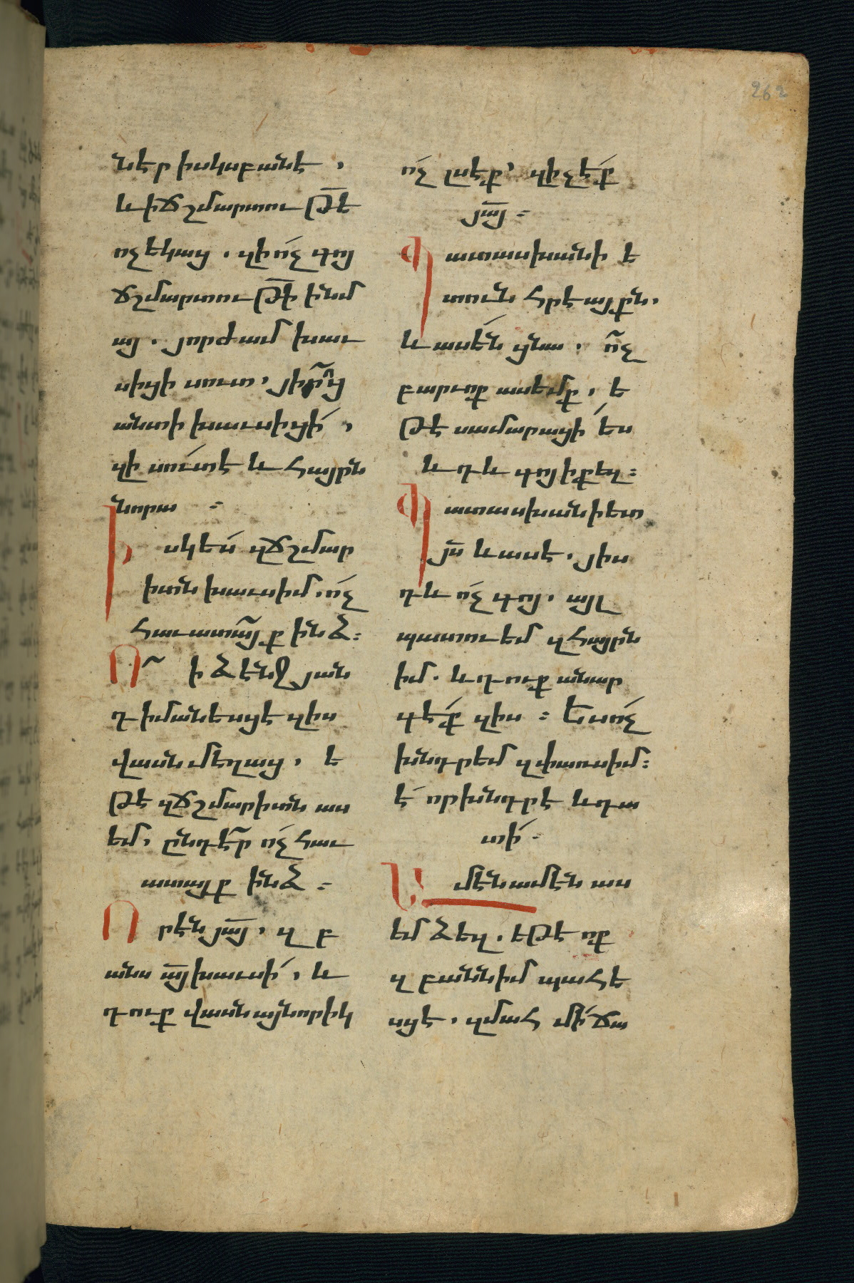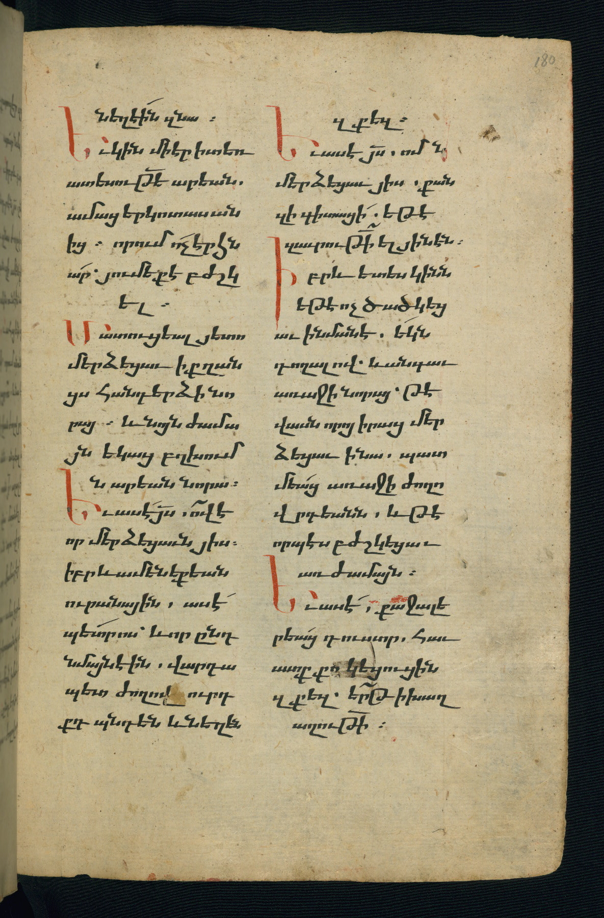 This Armenian Gospel book was produced in 904 of the Armenian era (1455 CE) at the monastery of Gamałiēl in Xizan by the scribe Yohannēs Vardapet, son of Vardan and Dilšat, and was illuminated by the priest Xačʿatur. The priest Pʿilipos commissioned the manuscript as a memorial to himself, his parents Łazar and Xutʿlumēlikʿ, and other relatives listed in the colophon on fols. 300r to 301v. Pʿilipos is depicted on fol. 14v alongside his brothers Yusēpʿ and Sultanša, as they kneel before the Virgin and Child enthroned (Theotokos). The book contains twenty-six full-page polychrome miniatures, including four Evangelist portraits; ornately designed canon tables; four decorated incipit pages; numerous marginal miniatures of floral and faunal motifs; and nineteen marginal miniatures of biblical characters or allusions to biblical narratives.