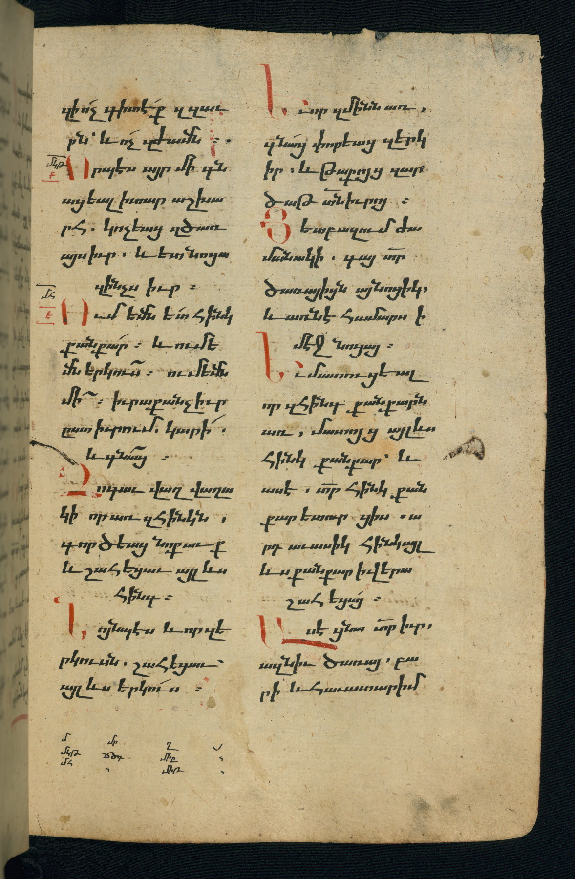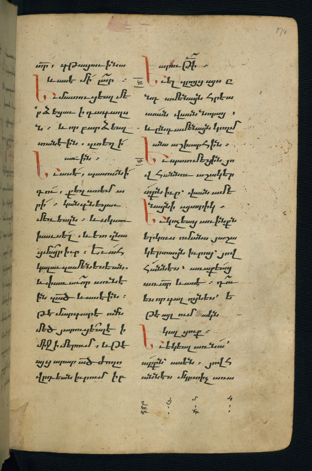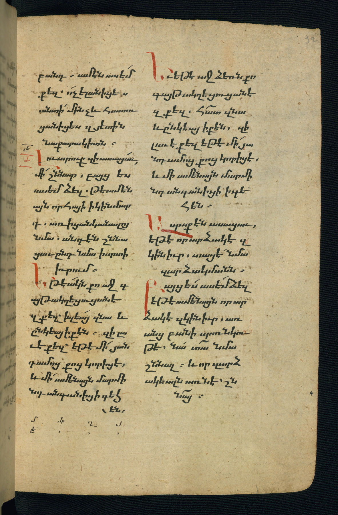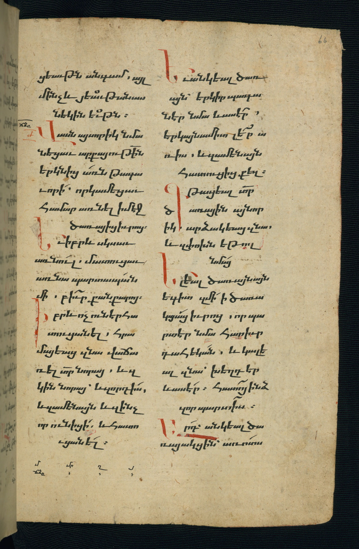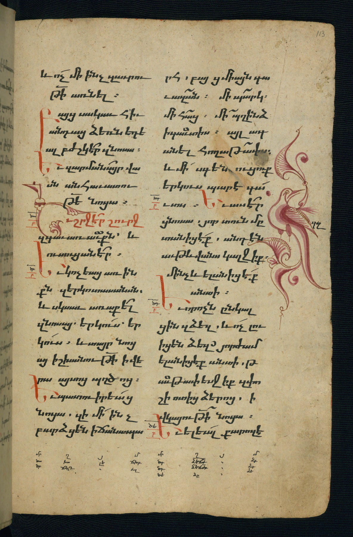 This Armenian Gospel book was produced in 904 of the Armenian era (1455 CE) at the monastery of Gamałiēl in Xizan by the scribe Yohannēs Vardapet, son of Vardan and Dilšat, and was illuminated by the priest Xačʿatur. The priest Pʿilipos commissioned the manuscript as a memorial to himself, his parents Łazar and Xutʿlumēlikʿ, and other relatives listed in the colophon on fols. 300r to 301v. Pʿilipos is depicted on fol. 14v alongside his brothers Yusēpʿ and Sultanša, as they kneel before the Virgin and Child enthroned (Theotokos). The book contains twenty-six full-page polychrome miniatures, including four Evangelist portraits; ornately designed canon tables; four decorated incipit pages; numerous marginal miniatures of floral and faunal motifs; and nineteen marginal miniatures of biblical characters or allusions to biblical narratives.