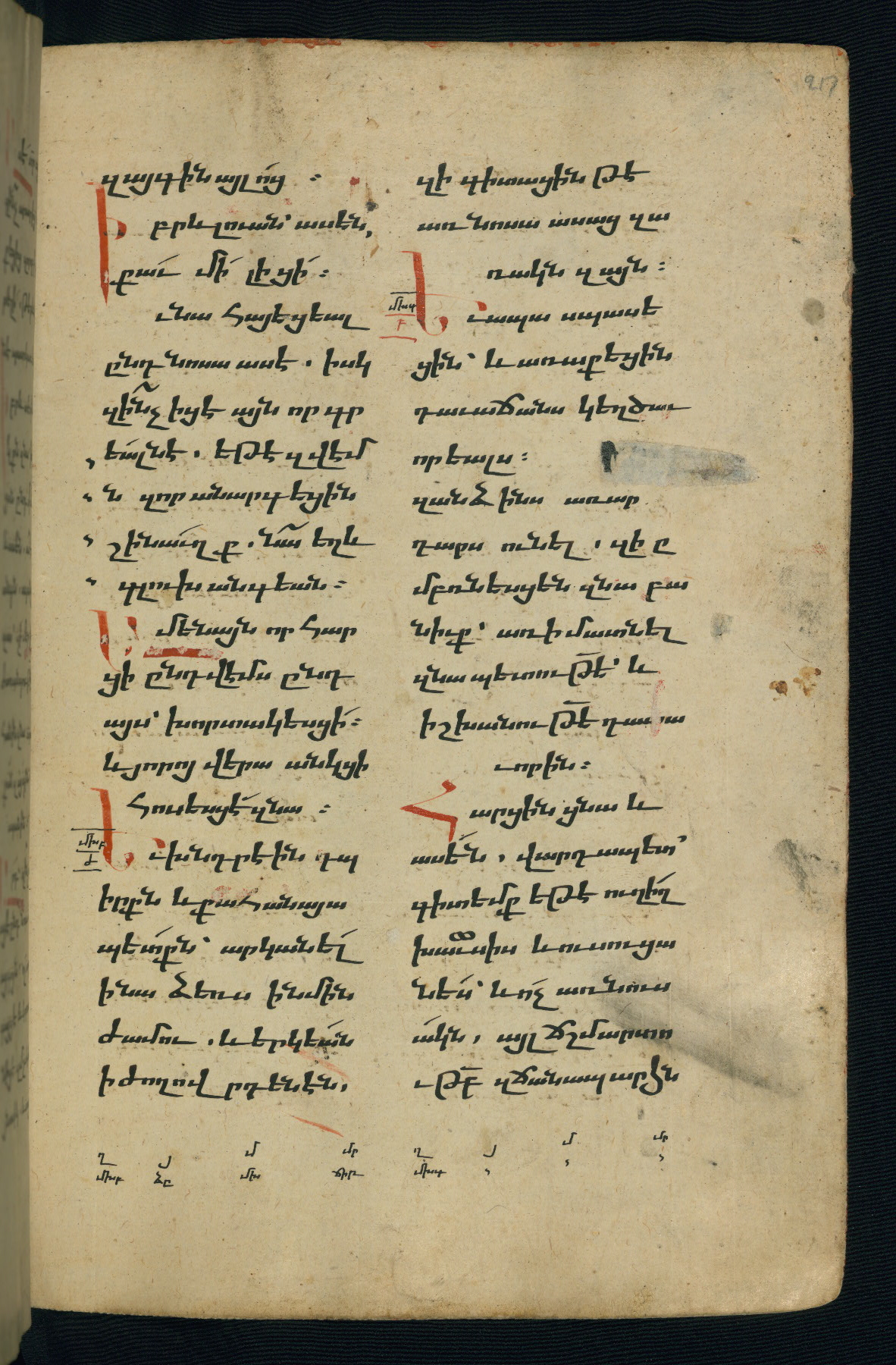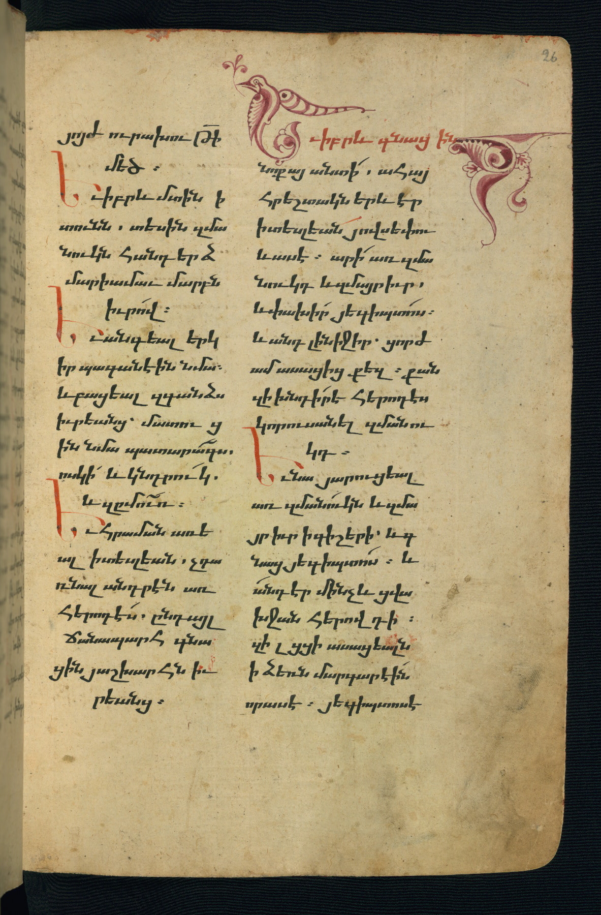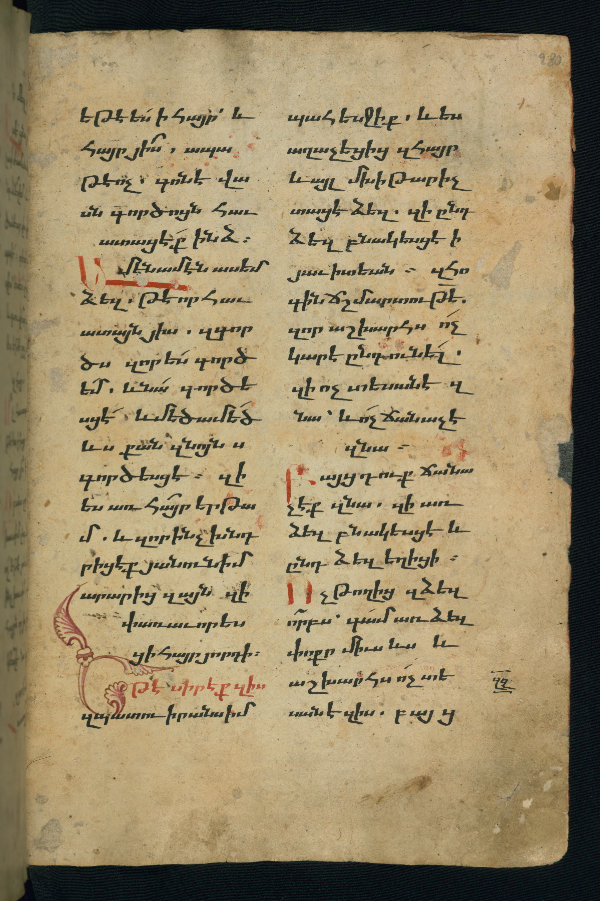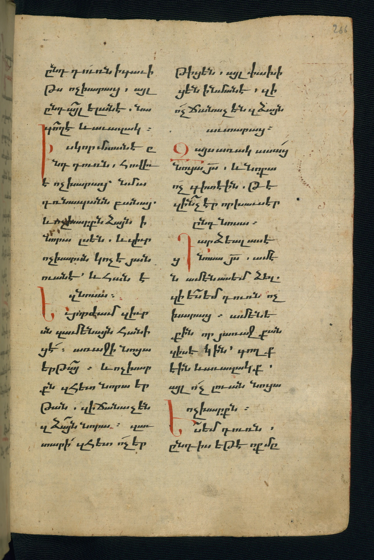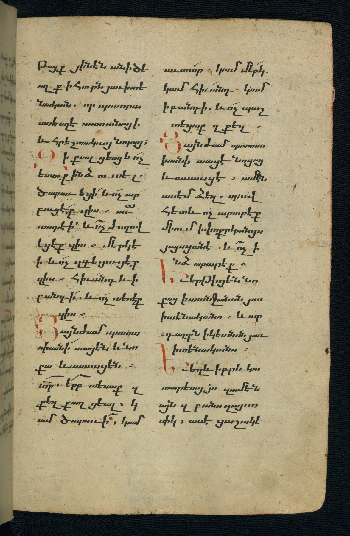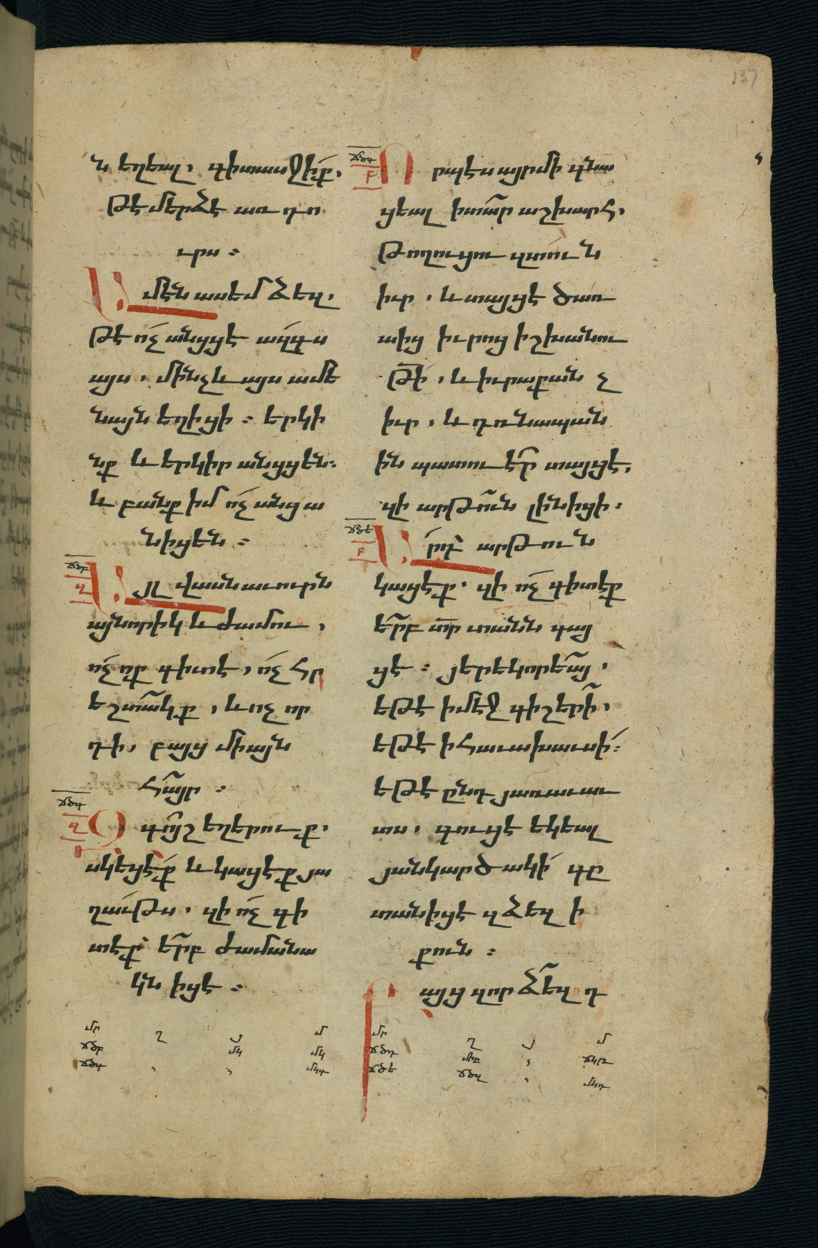 This Armenian Gospel book was produced in 904 of the Armenian era (1455 CE) at the monastery of Gamałiēl in Xizan by the scribe Yohannēs Vardapet, son of Vardan and Dilšat, and was illuminated by the priest Xačʿatur. The priest Pʿilipos commissioned the manuscript as a memorial to himself, his parents Łazar and Xutʿlumēlikʿ, and other relatives listed in the colophon on fols. 300r to 301v. Pʿilipos is depicted on fol. 14v alongside his brothers Yusēpʿ and Sultanša, as they kneel before the Virgin and Child enthroned (Theotokos). The book contains twenty-six full-page polychrome miniatures, including four Evangelist portraits; ornately designed canon tables; four decorated incipit pages; numerous marginal miniatures of floral and faunal motifs; and nineteen marginal miniatures of biblical characters or allusions to biblical narratives.