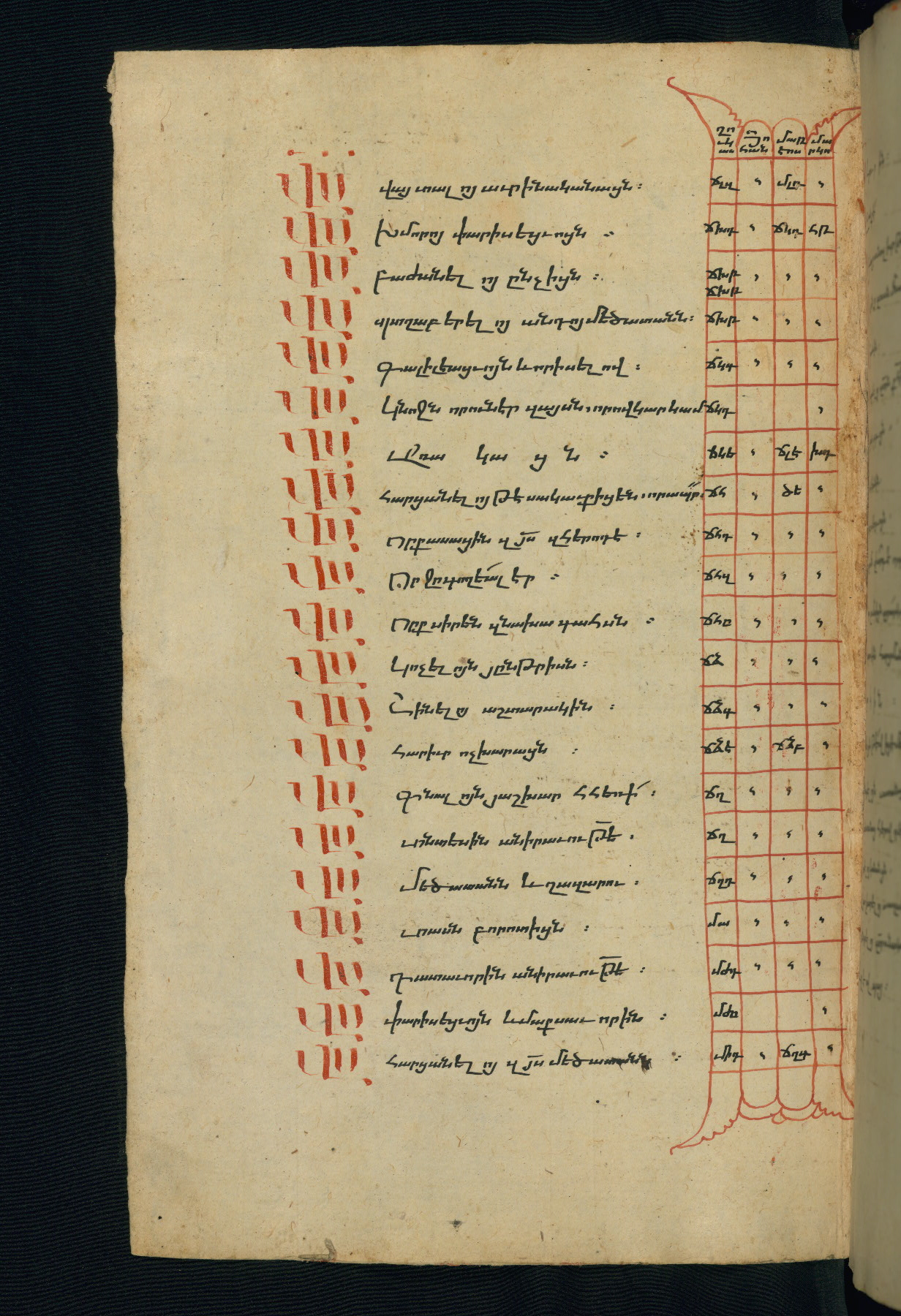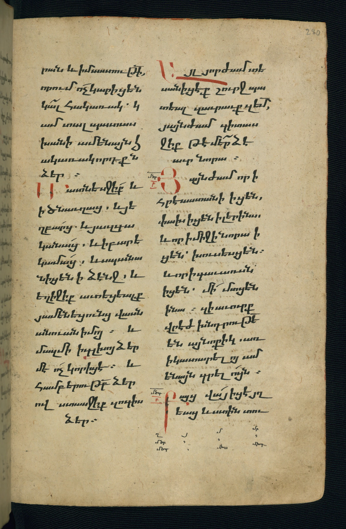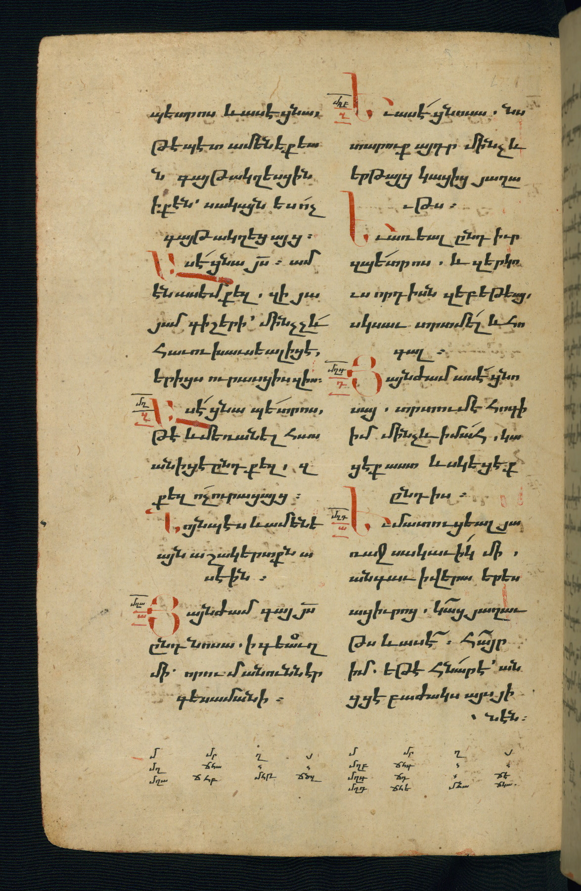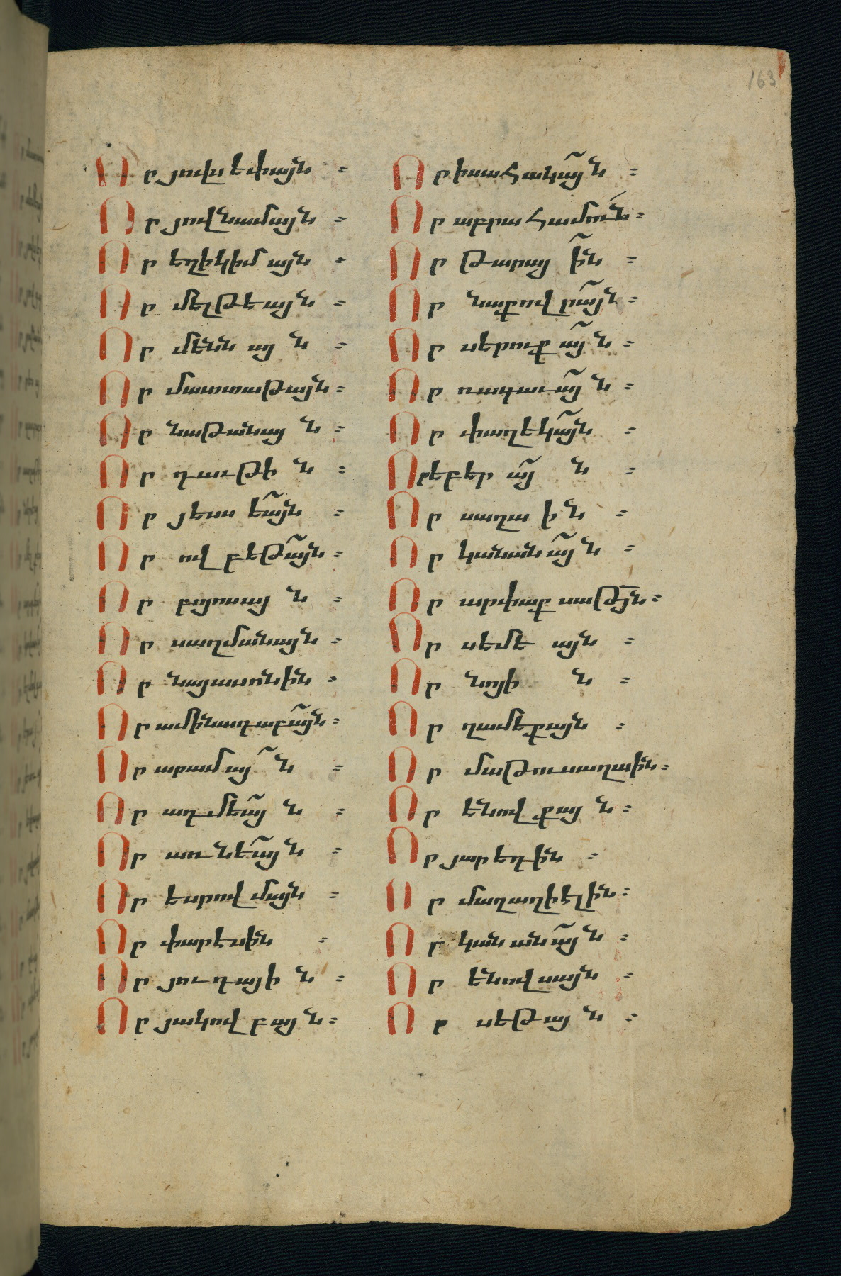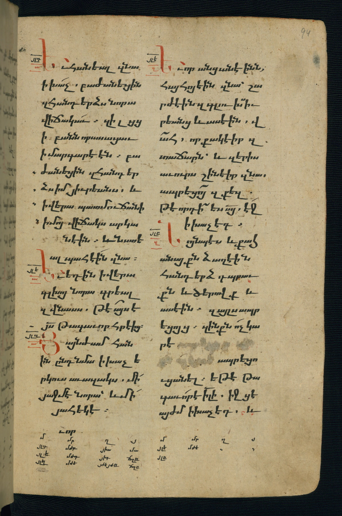 This Armenian Gospel book was produced in 904 of the Armenian era (1455 CE) at the monastery of Gamałiēl in Xizan by the scribe Yohannēs Vardapet, son of Vardan and Dilšat, and was illuminated by the priest Xačʿatur. The priest Pʿilipos commissioned the manuscript as a memorial to himself, his parents Łazar and Xutʿlumēlikʿ, and other relatives listed in the colophon on fols. 300r to 301v. Pʿilipos is depicted on fol. 14v alongside his brothers Yusēpʿ and Sultanša, as they kneel before the Virgin and Child enthroned (Theotokos). The book contains twenty-six full-page polychrome miniatures, including four Evangelist portraits; ornately designed canon tables; four decorated incipit pages; numerous marginal miniatures of floral and faunal motifs; and nineteen marginal miniatures of biblical characters or allusions to biblical narratives.