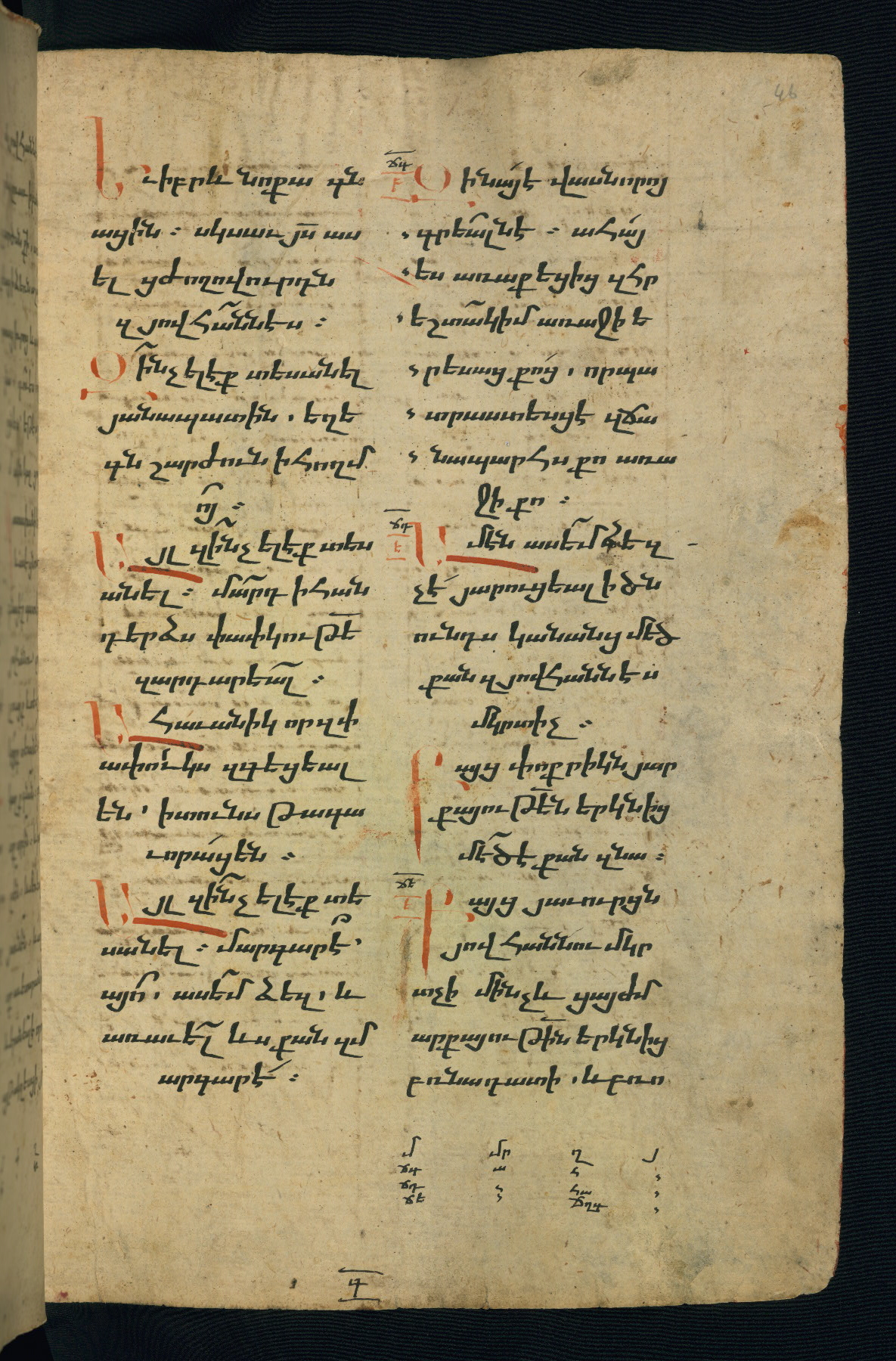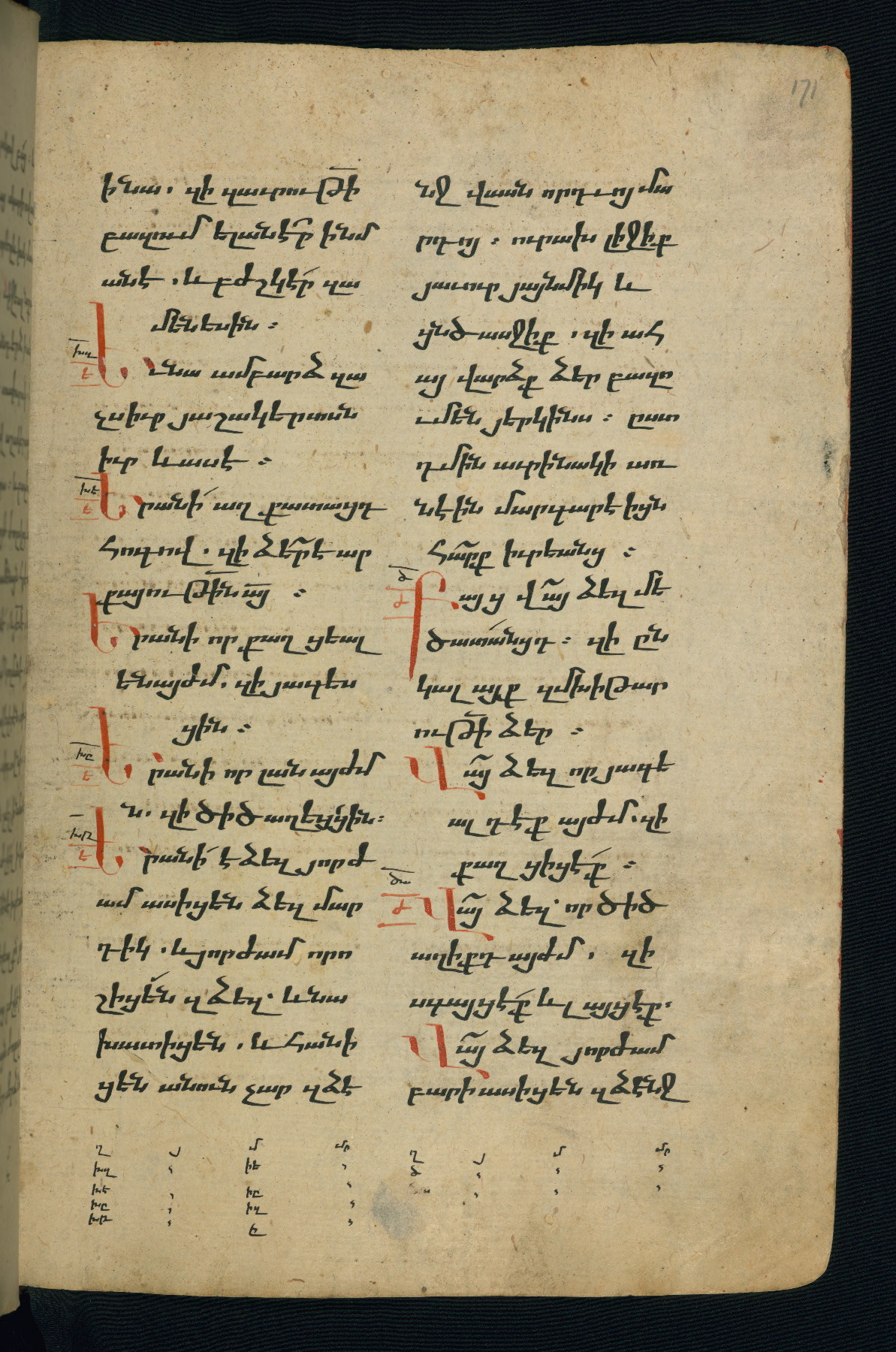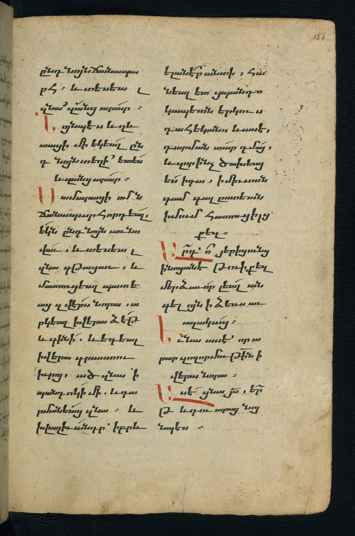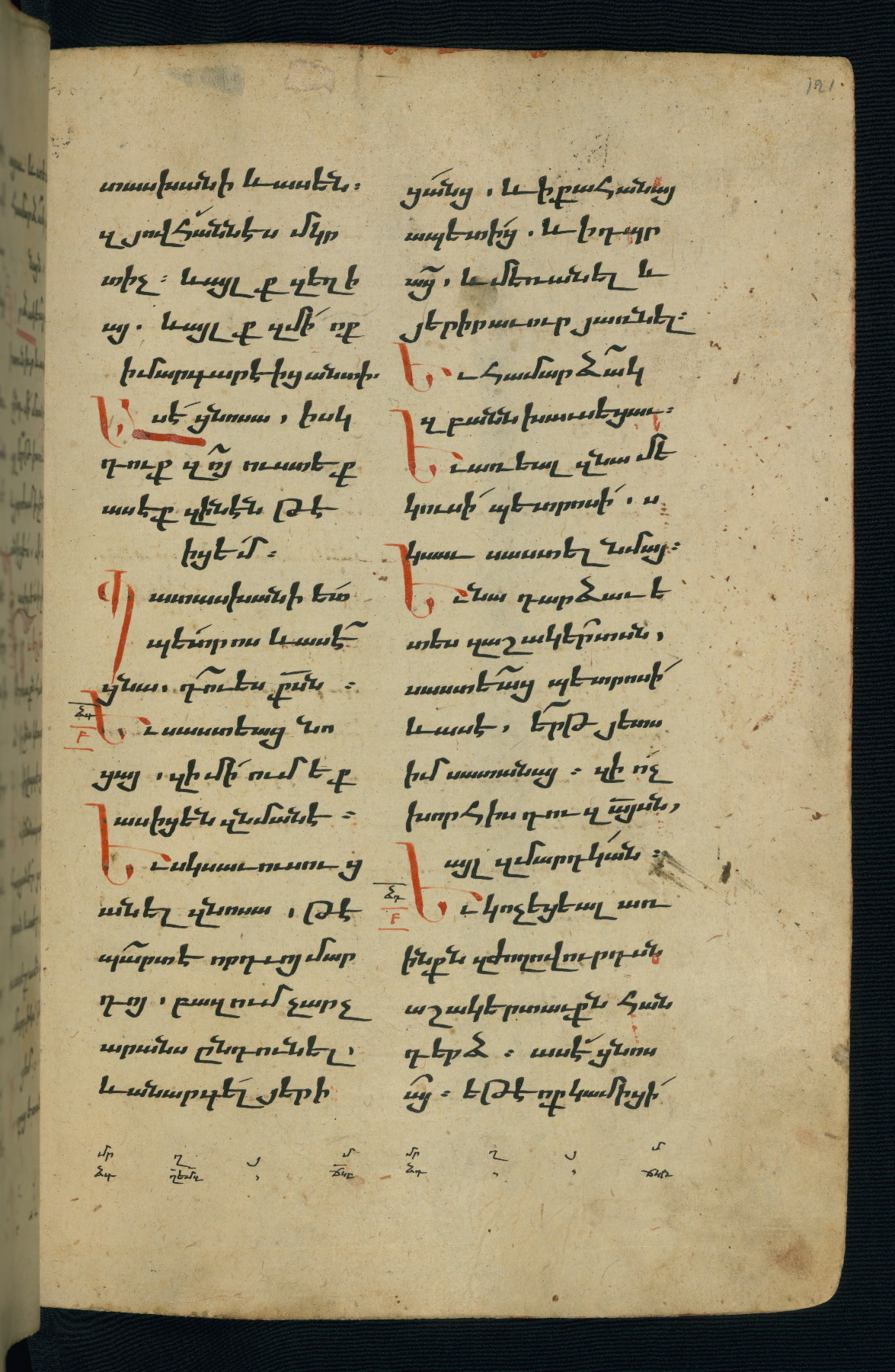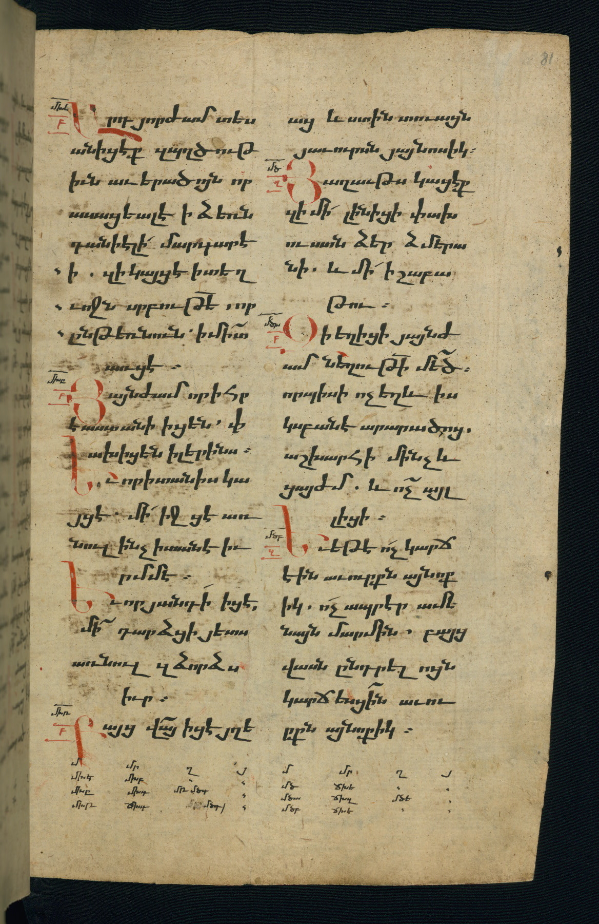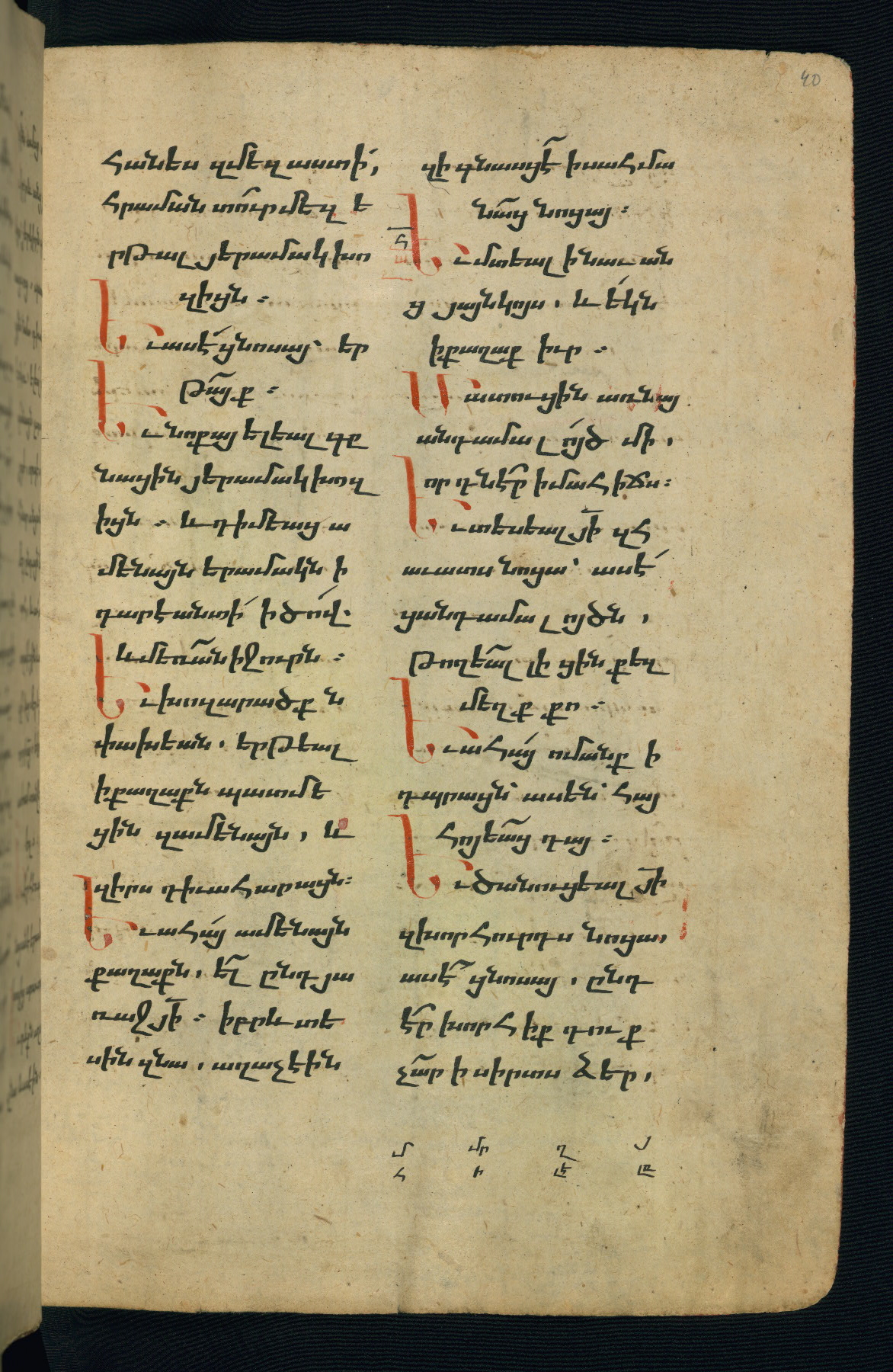 This Armenian Gospel book was produced in 904 of the Armenian era (1455 CE) at the monastery of Gamałiēl in Xizan by the scribe Yohannēs Vardapet, son of Vardan and Dilšat, and was illuminated by the priest Xačʿatur. The priest Pʿilipos commissioned the manuscript as a memorial to himself, his parents Łazar and Xutʿlumēlikʿ, and other relatives listed in the colophon on fols. 300r to 301v. Pʿilipos is depicted on fol. 14v alongside his brothers Yusēpʿ and Sultanša, as they kneel before the Virgin and Child enthroned (Theotokos). The book contains twenty-six full-page polychrome miniatures, including four Evangelist portraits; ornately designed canon tables; four decorated incipit pages; numerous marginal miniatures of floral and faunal motifs; and nineteen marginal miniatures of biblical characters or allusions to biblical narratives.