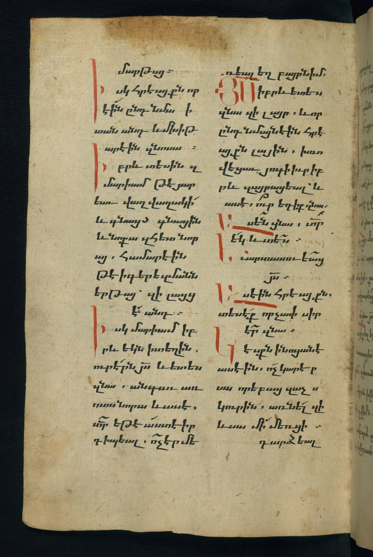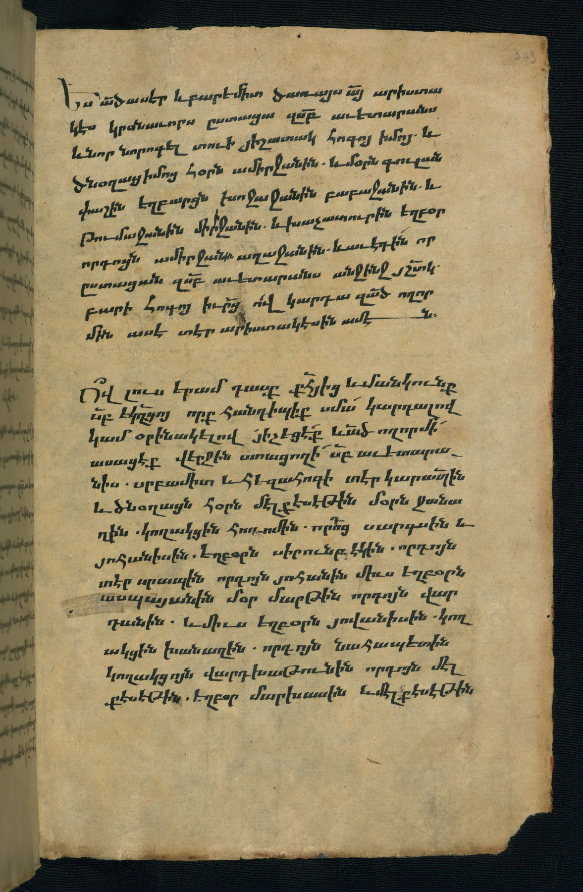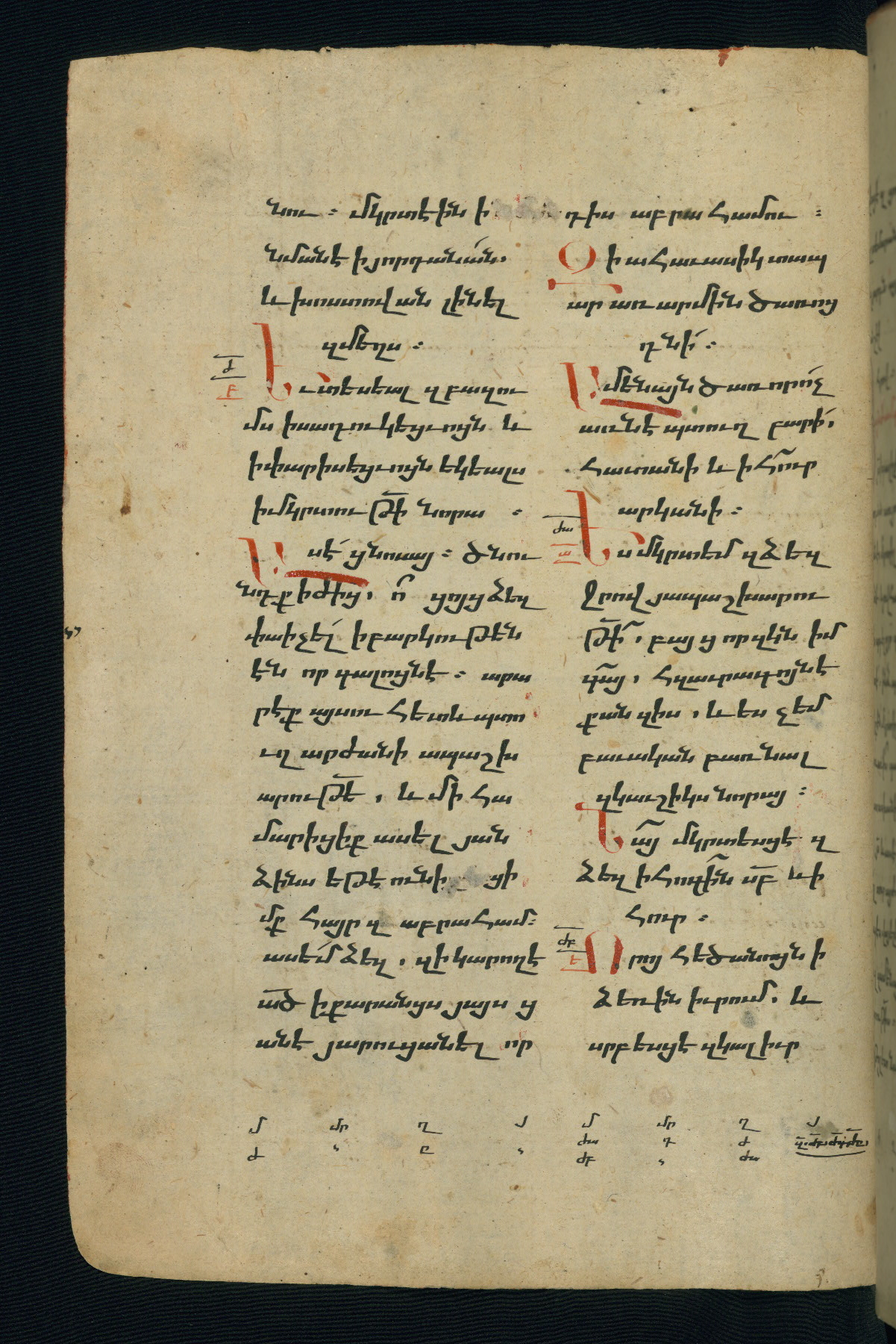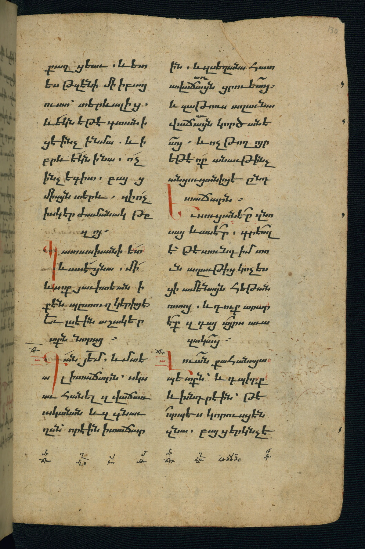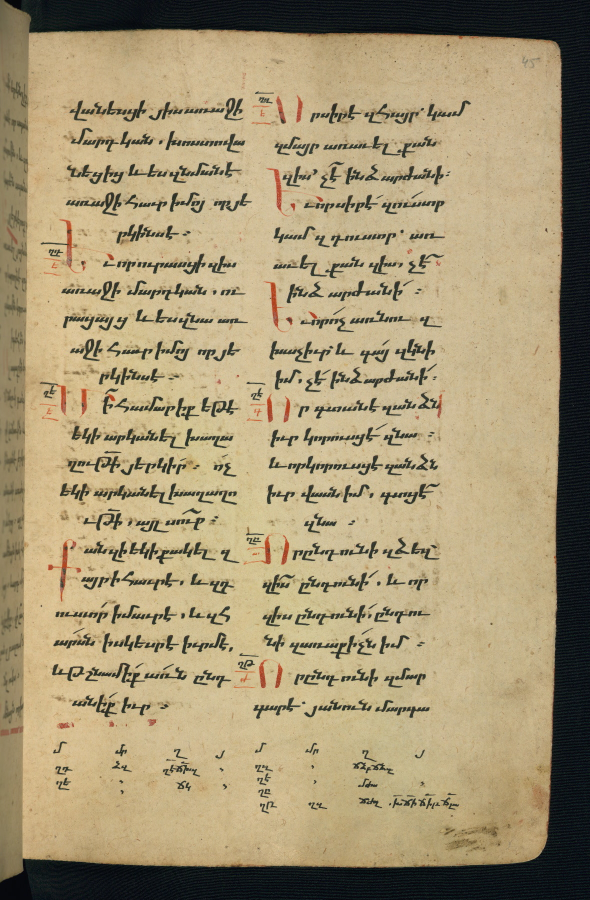 This Armenian Gospel book was produced in 904 of the Armenian era (1455 CE) at the monastery of Gamałiēl in Xizan by the scribe Yohannēs Vardapet, son of Vardan and Dilšat, and was illuminated by the priest Xačʿatur. The priest Pʿilipos commissioned the manuscript as a memorial to himself, his parents Łazar and Xutʿlumēlikʿ, and other relatives listed in the colophon on fols. 300r to 301v. Pʿilipos is depicted on fol. 14v alongside his brothers Yusēpʿ and Sultanša, as they kneel before the Virgin and Child enthroned (Theotokos). The book contains twenty-six full-page polychrome miniatures, including four Evangelist portraits; ornately designed canon tables; four decorated incipit pages; numerous marginal miniatures of floral and faunal motifs; and nineteen marginal miniatures of biblical characters or allusions to biblical narratives.