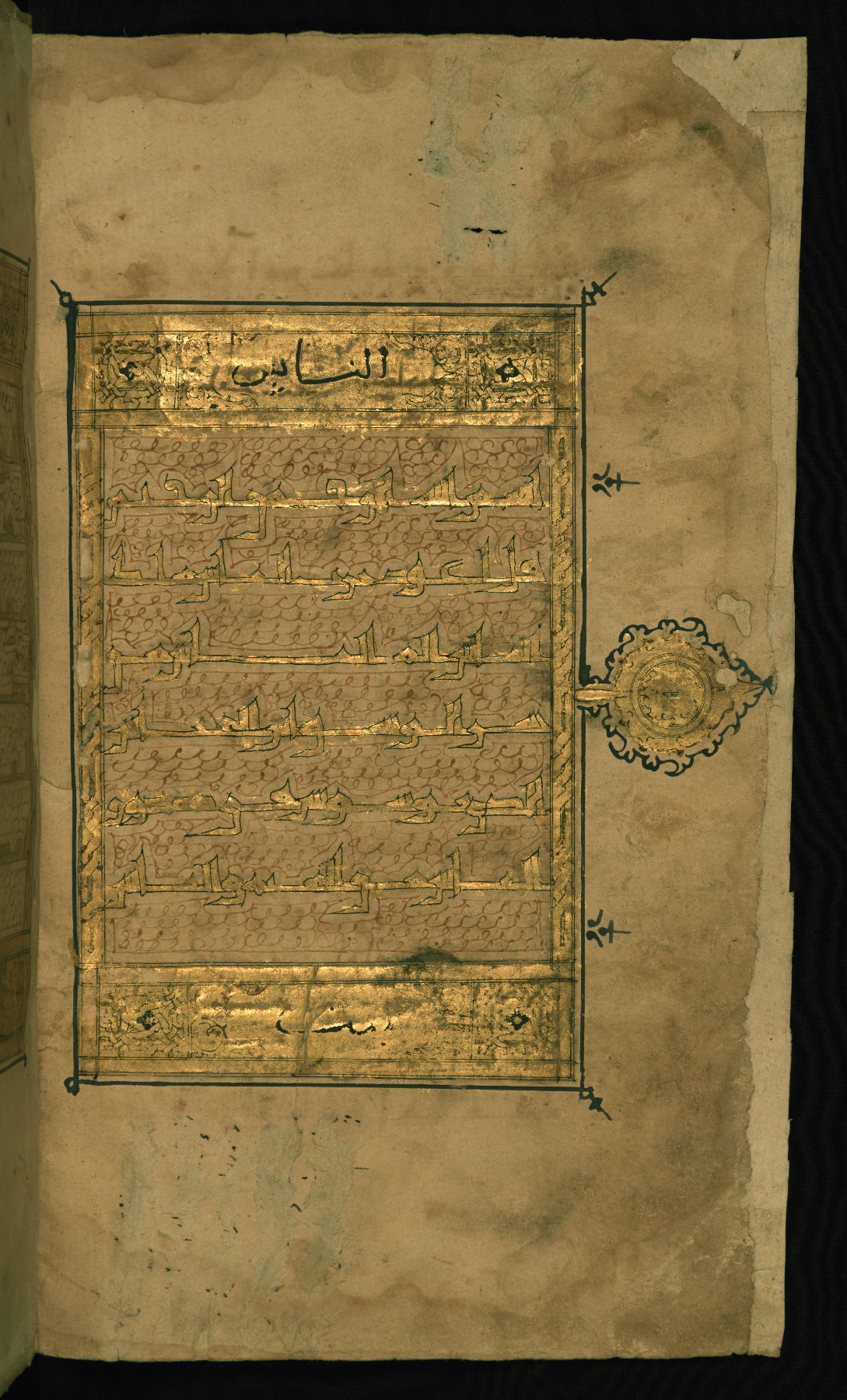 - Title: Right side of a double-page illuminated incipit for the first two chapters of the Qur'an