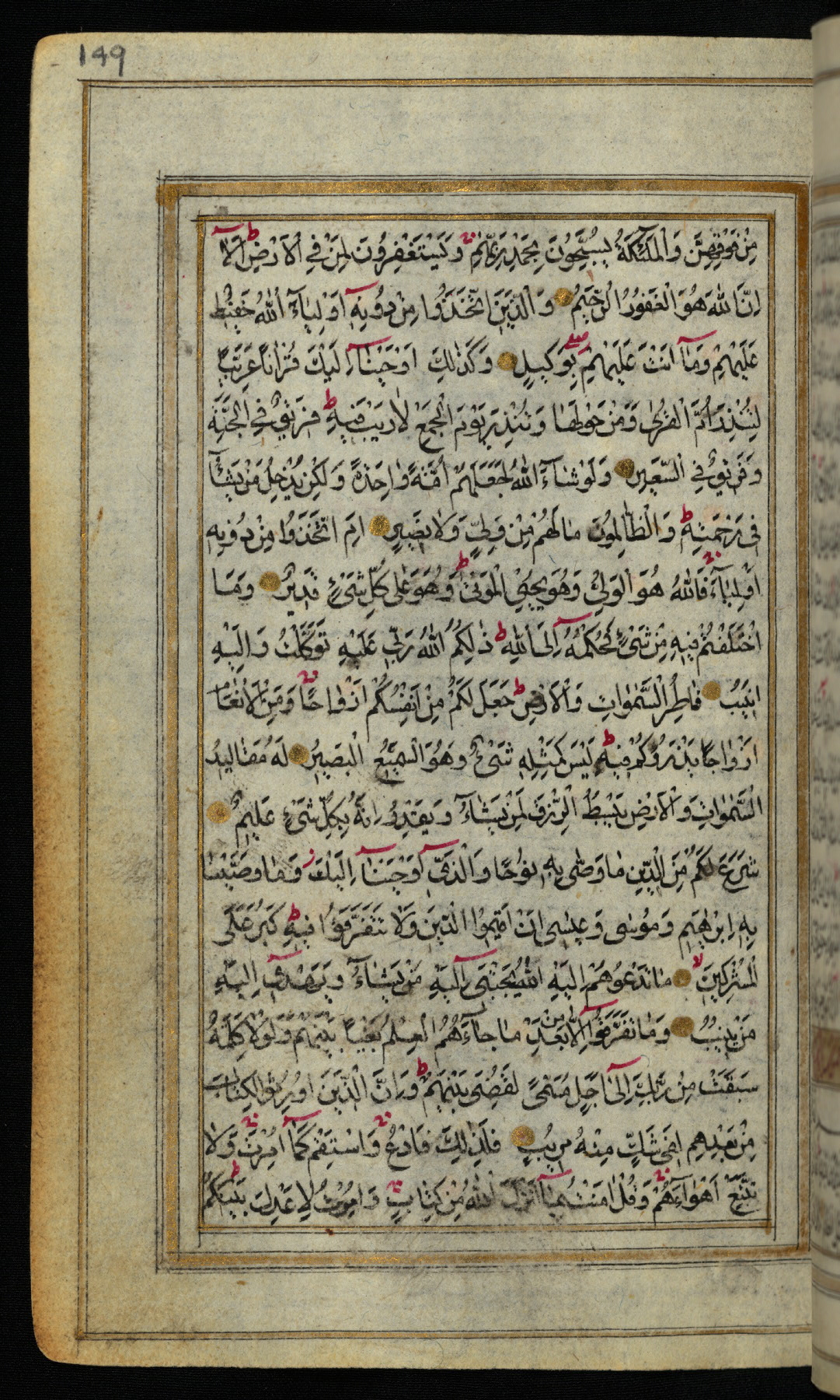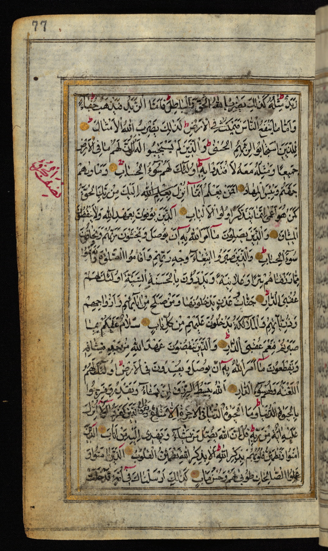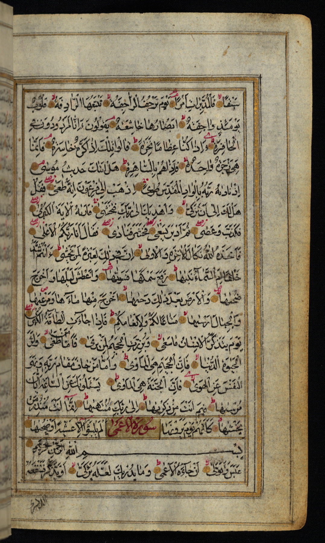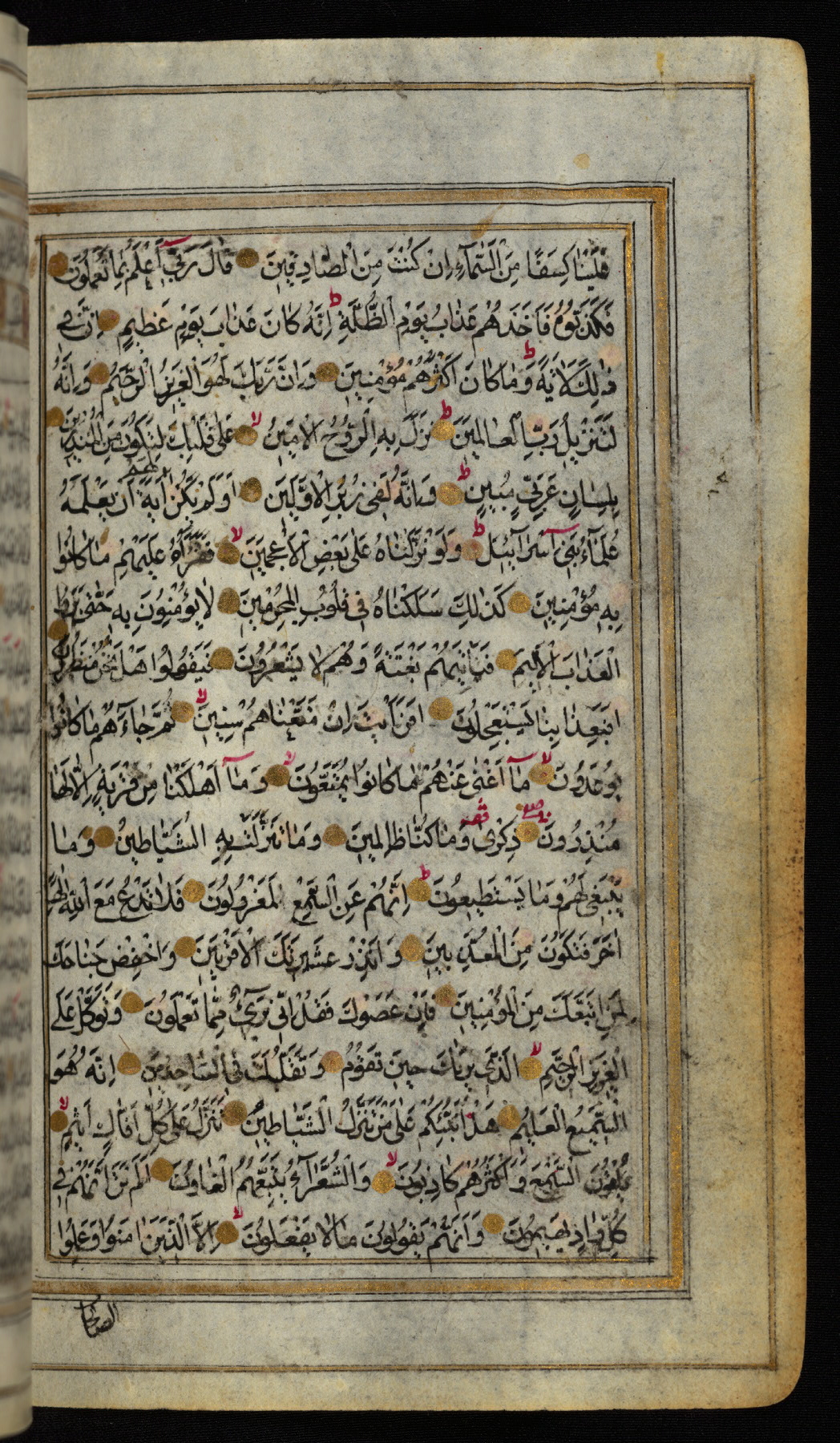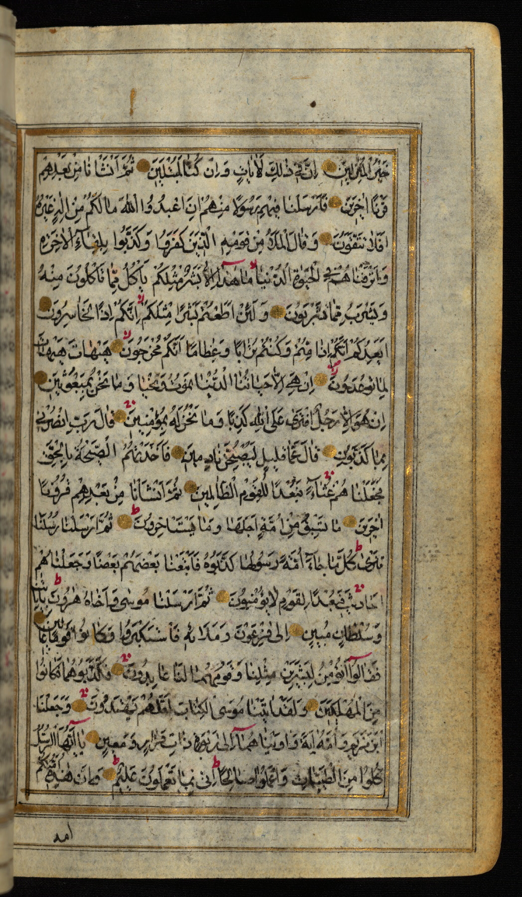 This small copy of the Qur'an was penned by an anonymous scribe in Iran in the thirteenth century AH / nineteenth century CE.
