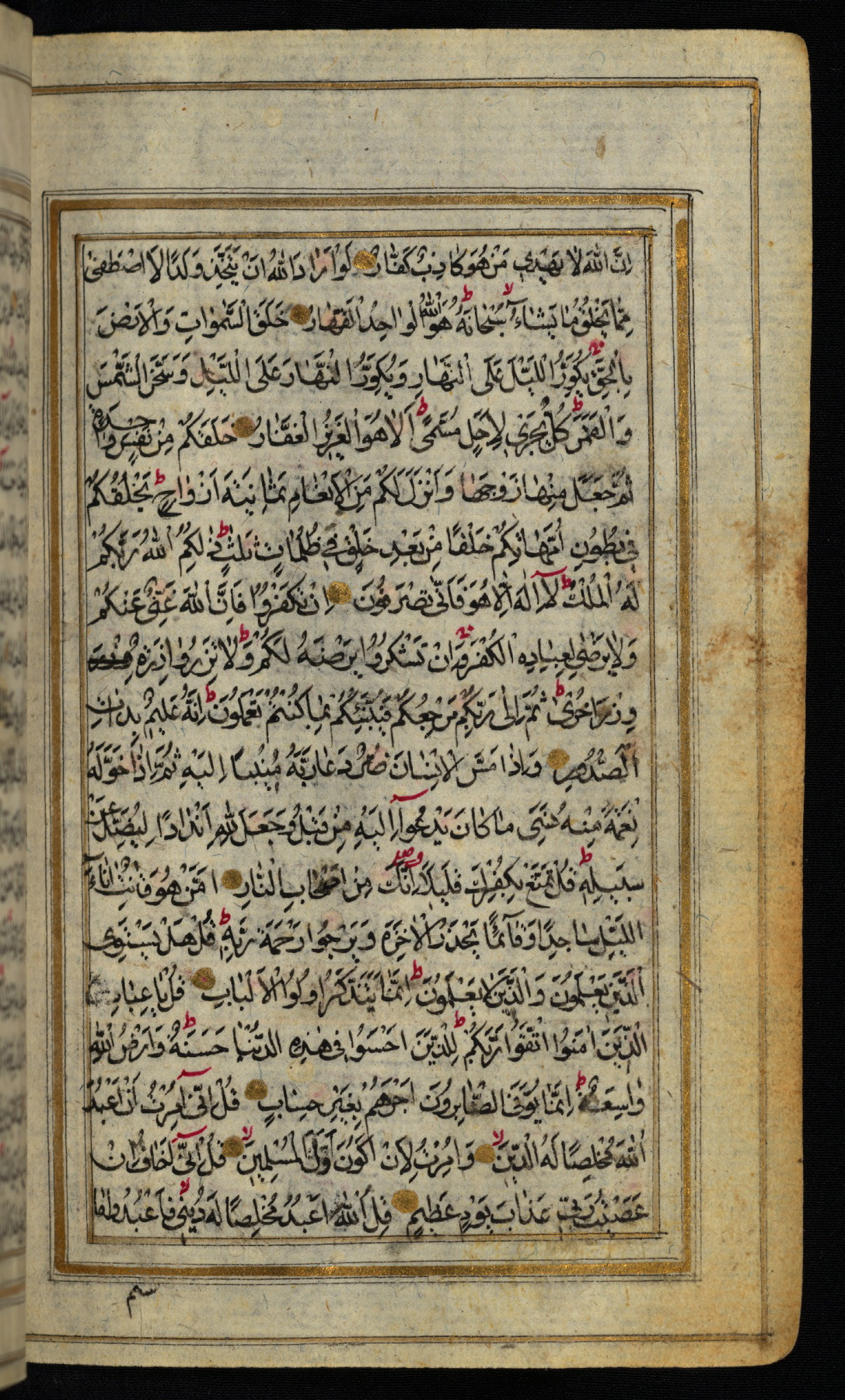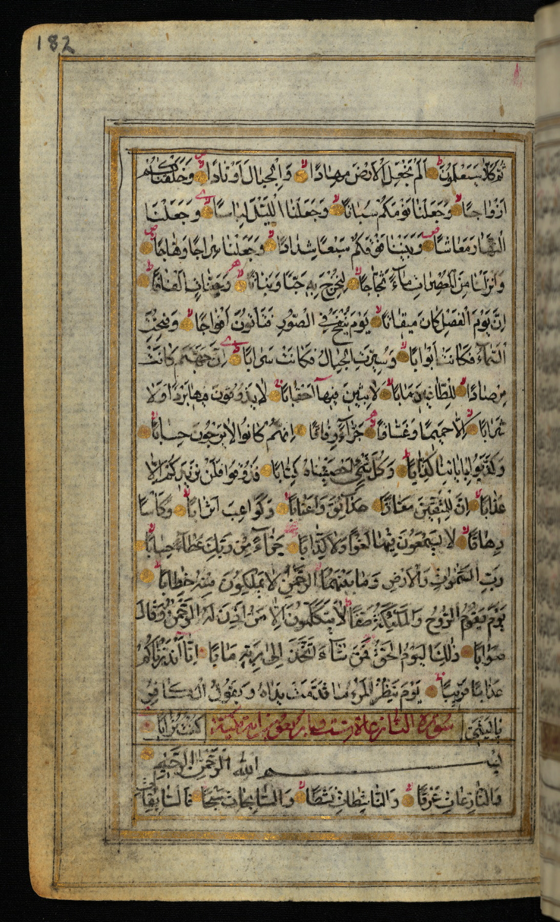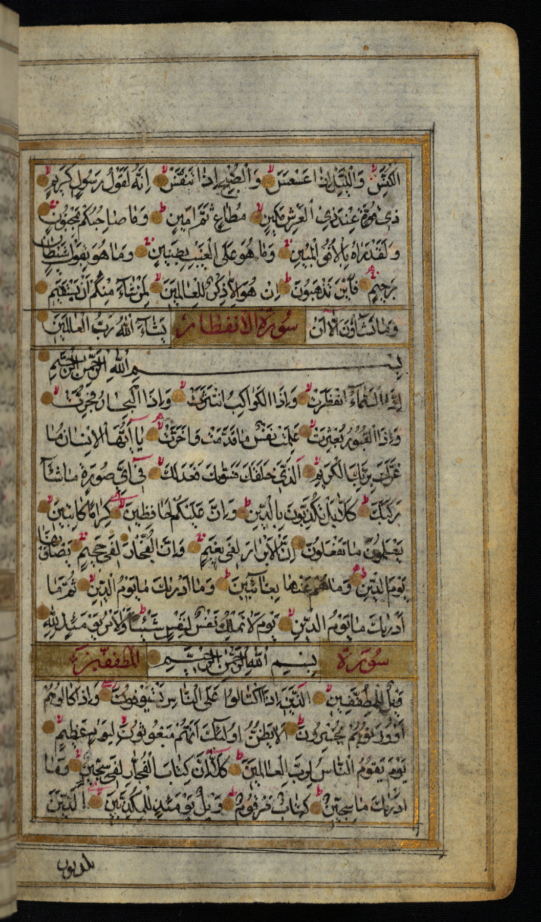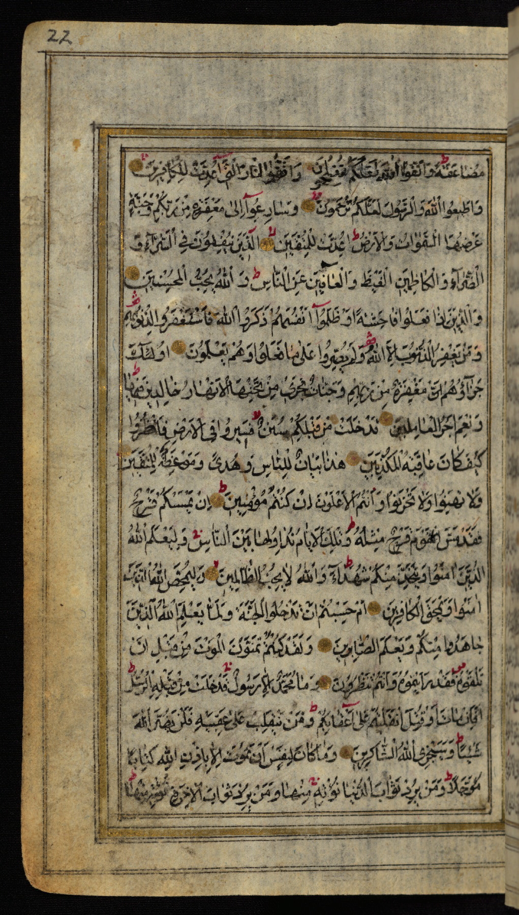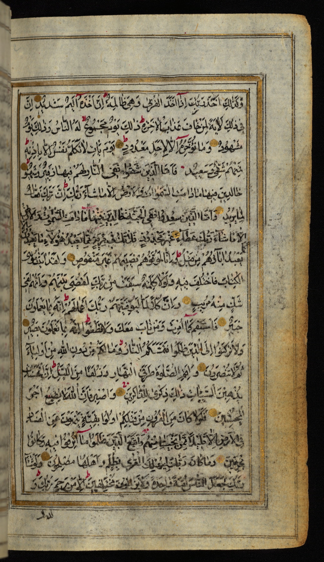 This small copy of the Qur'an was penned by an anonymous scribe in Iran in the thirteenth century AH / nineteenth century CE.